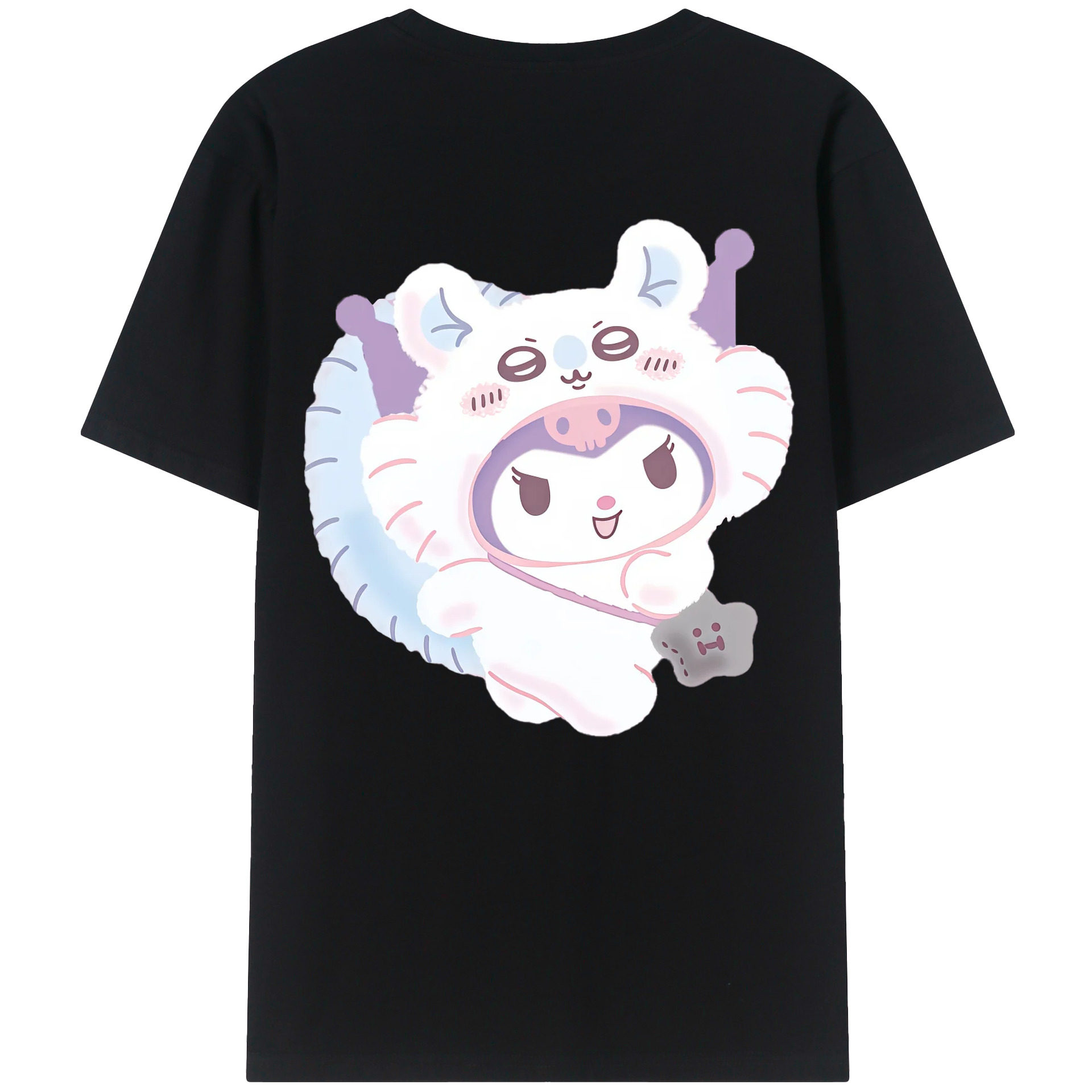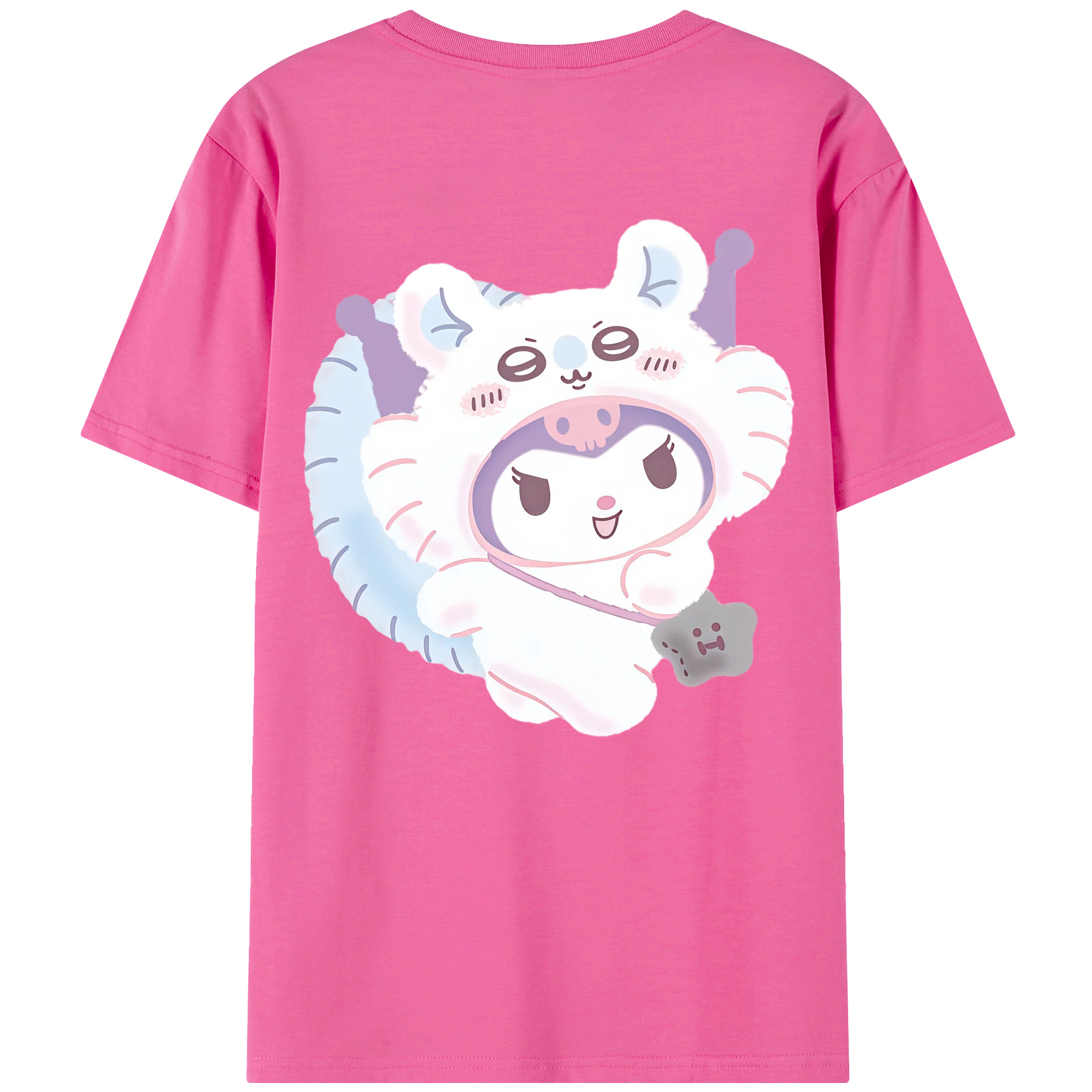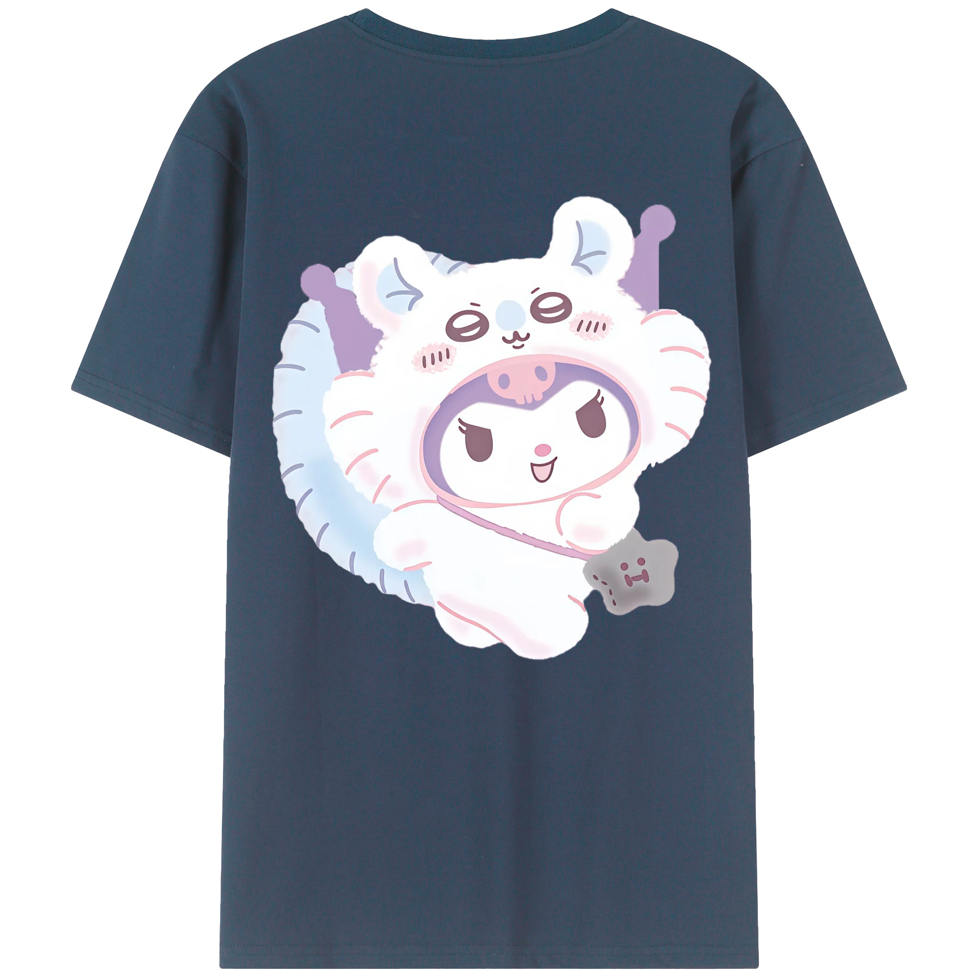 クロミ&ちいかわ - レディース半袖Tシャツ ・ 綿100% ・ バックプリント ・ 強化クルーネック ・ 二重折り袖口 ・ 快適 通気性 ・ フィットネス カジュアル 旅行用