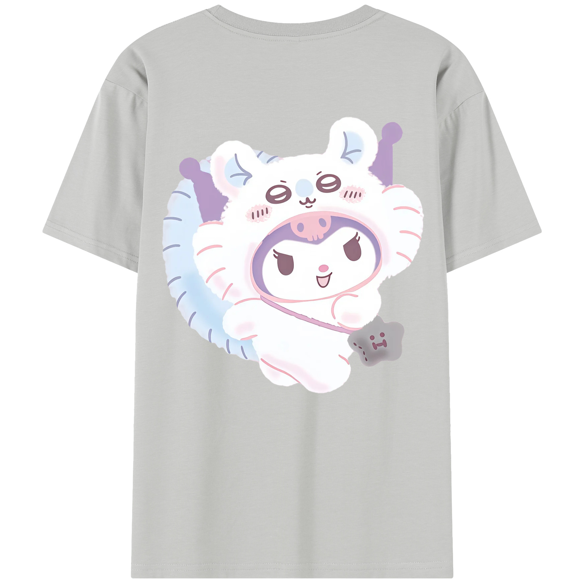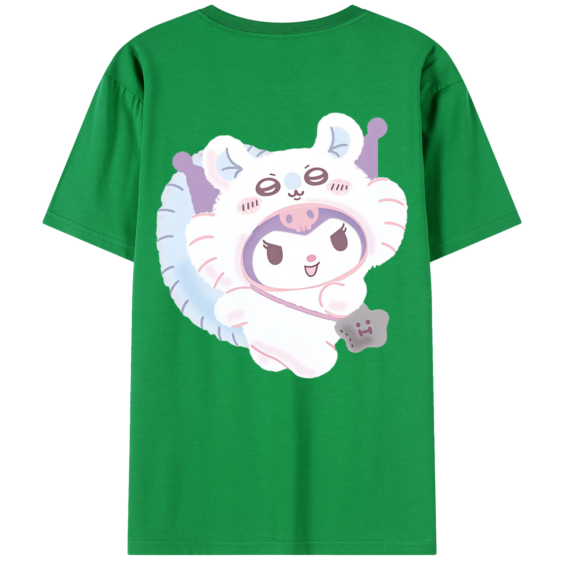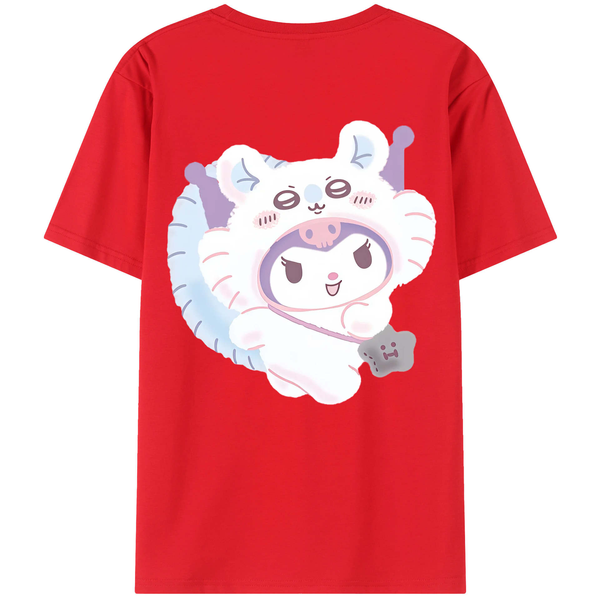 クロミ&ちいかわ - レディース半袖Tシャツ ・ 綿100% ・ バックプリント ・ 強化クルーネック ・ 二重折り袖口 ・ 快適 通気性 ・ フィットネス カジュアル 旅行用
