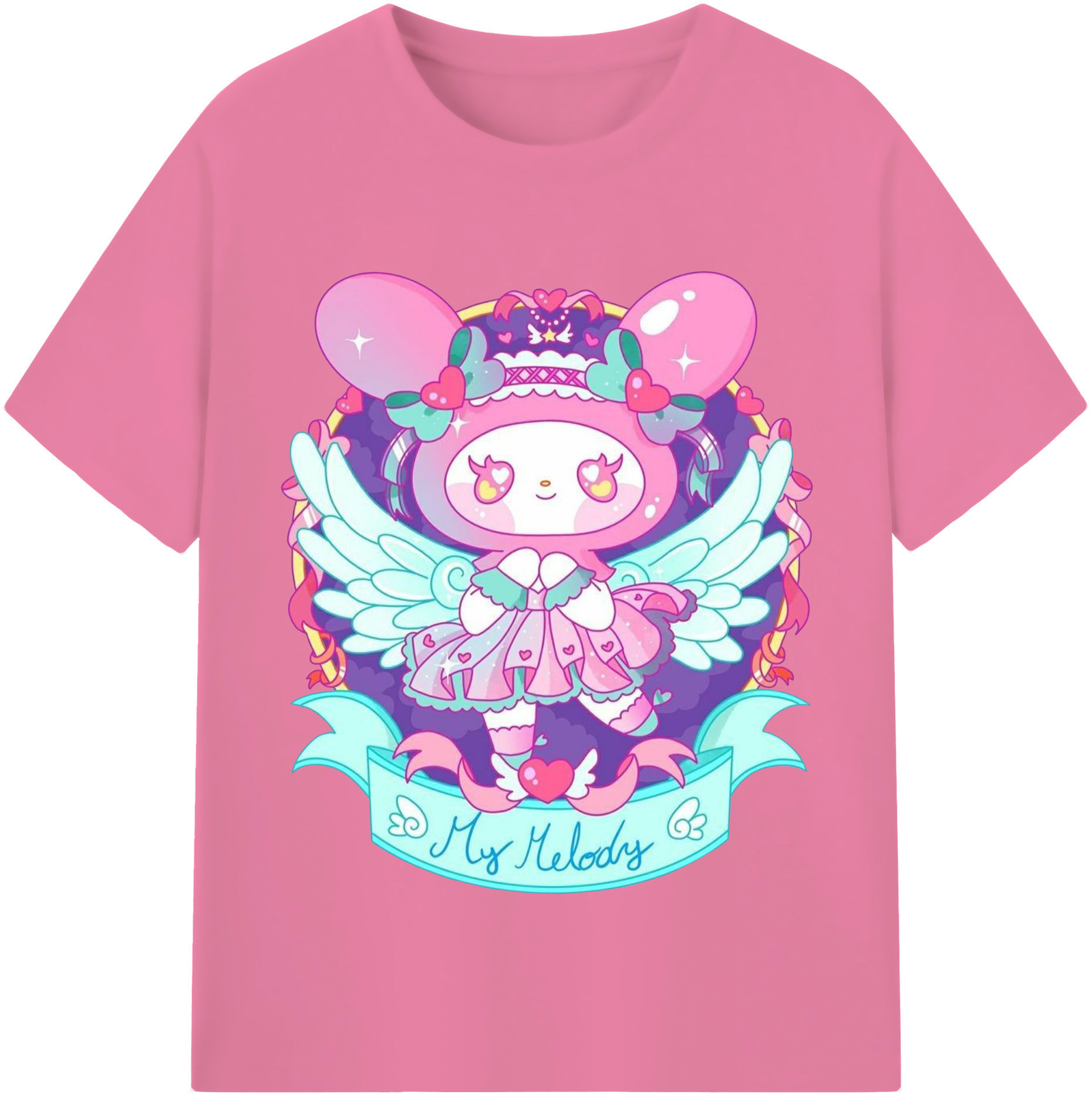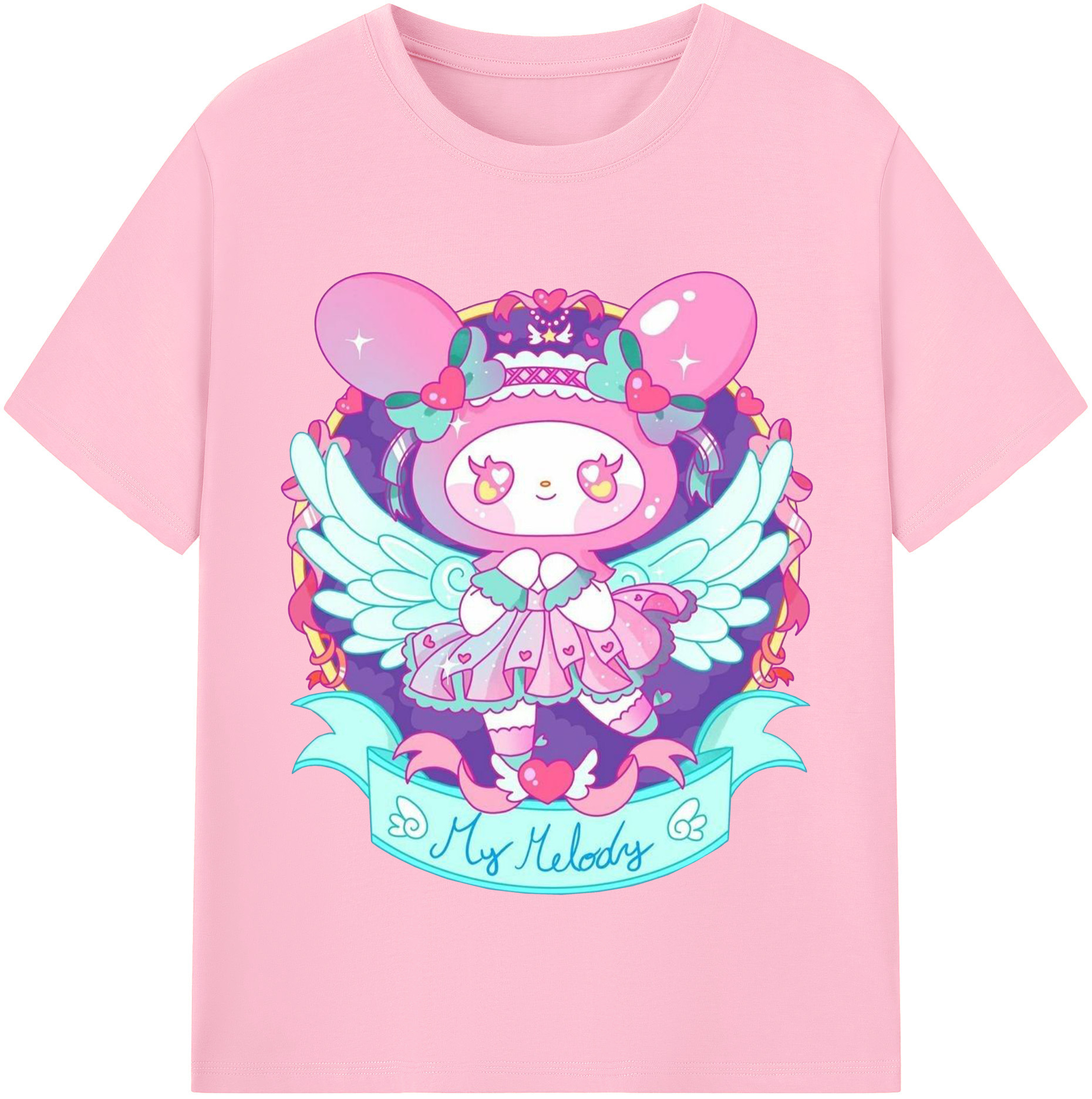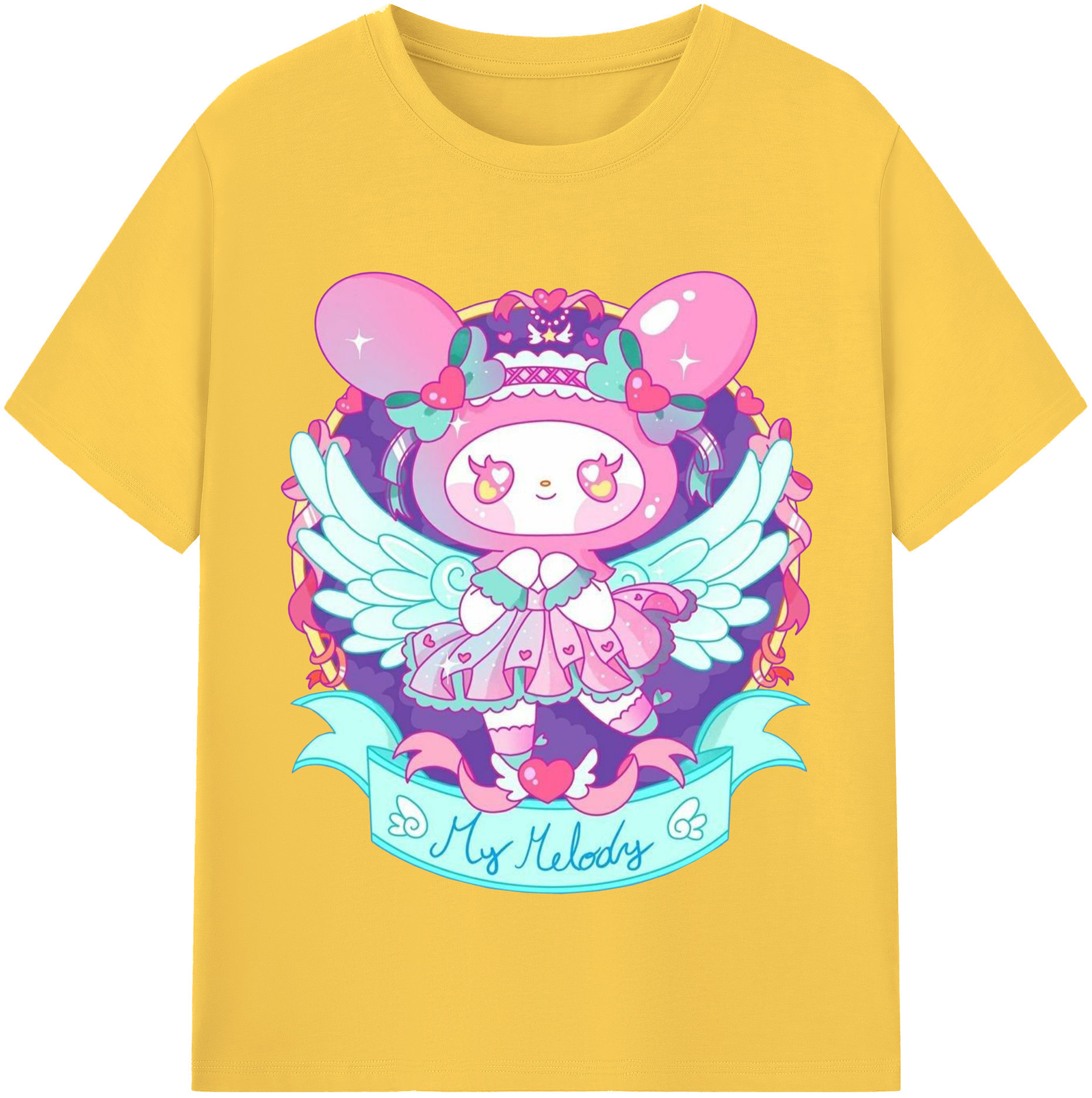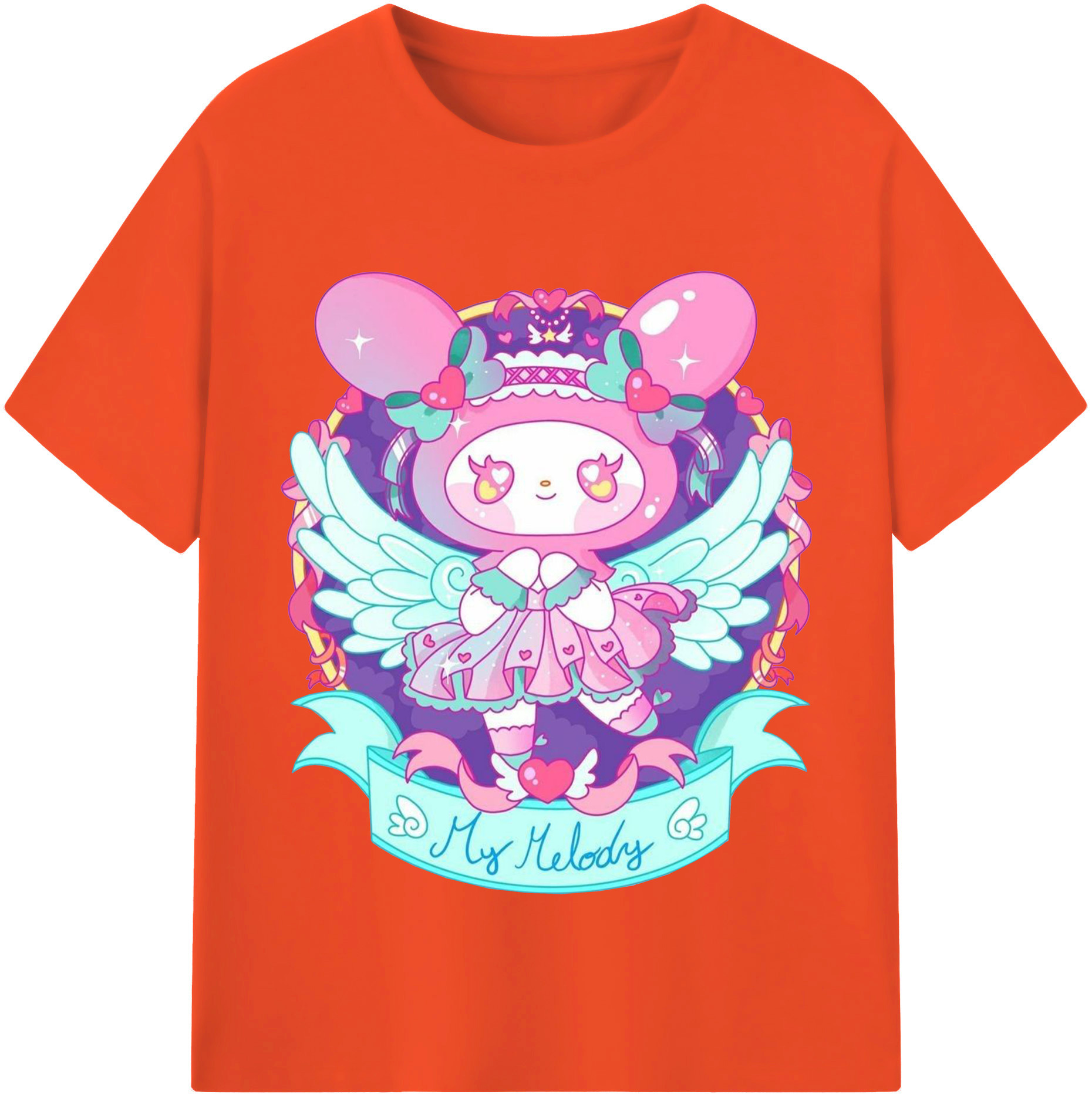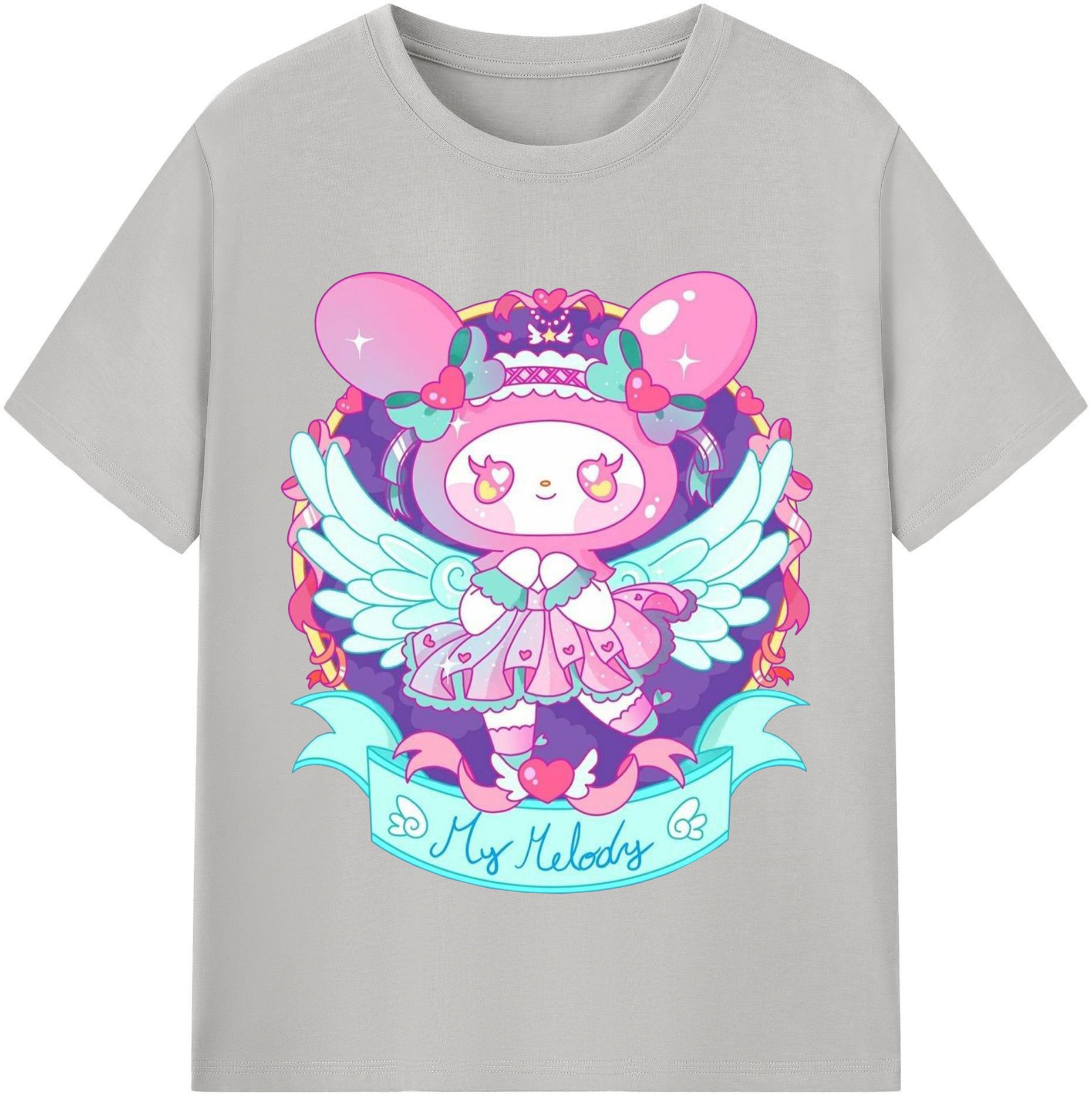 サンリオマイメロディ - 綿100% 半袖Tシャツ ・ フロントプリント ・ 快適 通気性 ・ 日常使い 散歩 スポーツ用