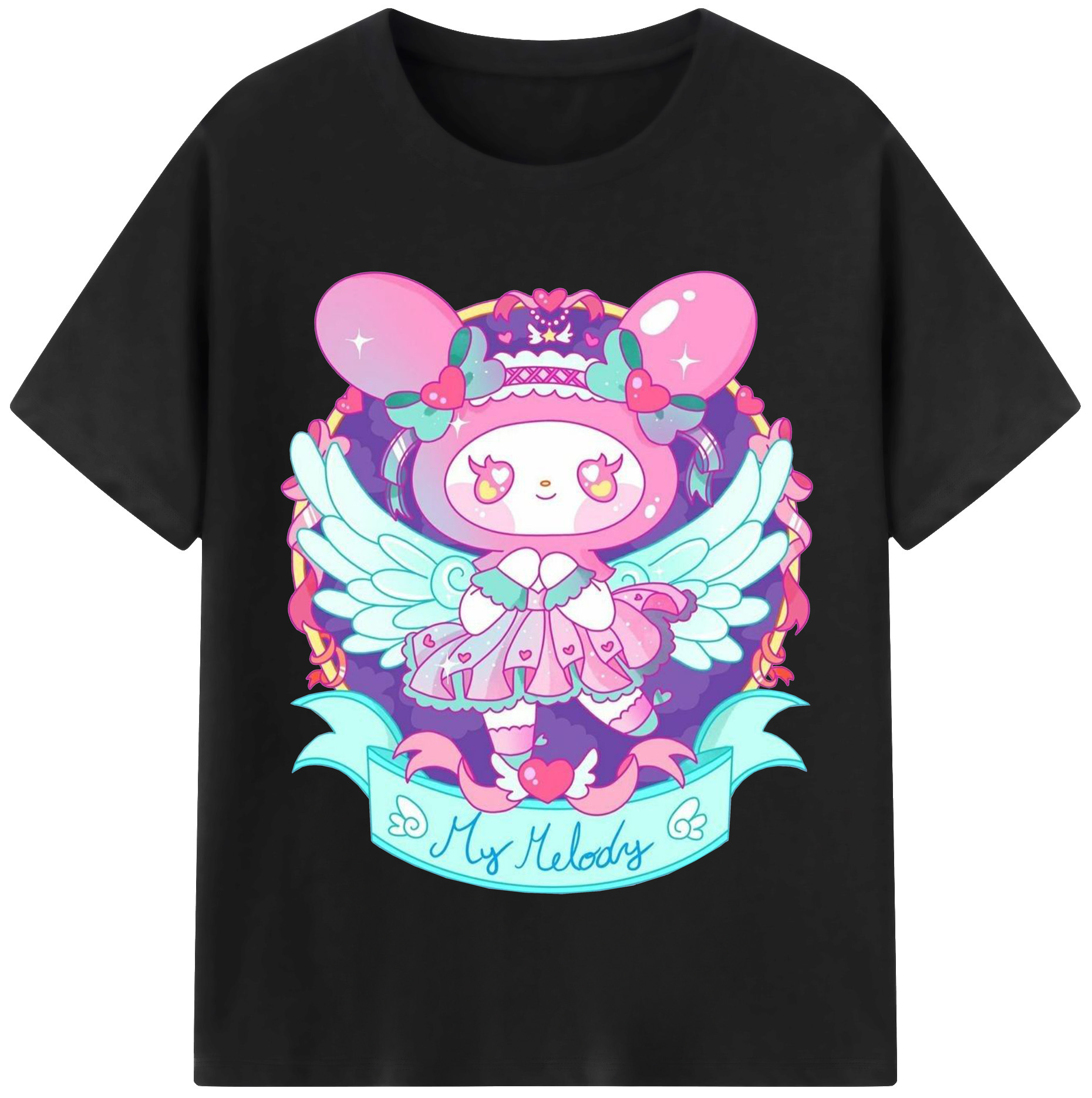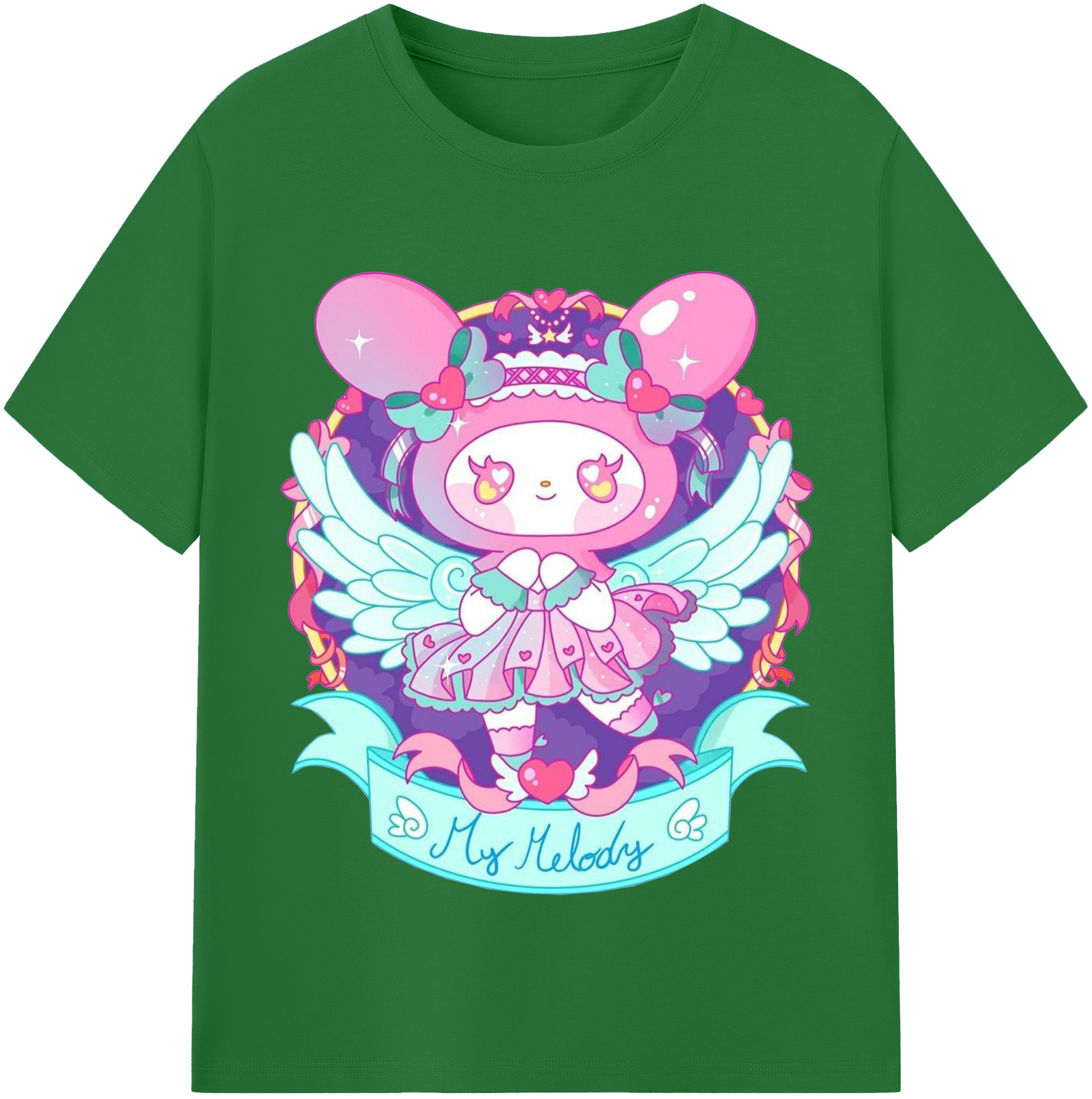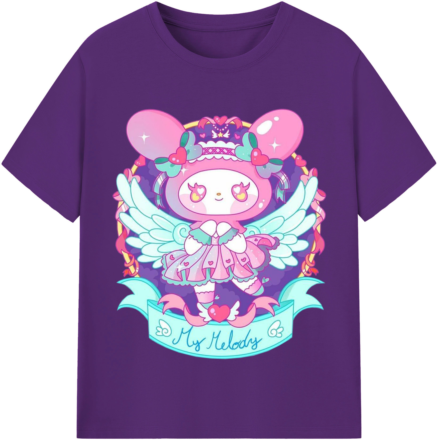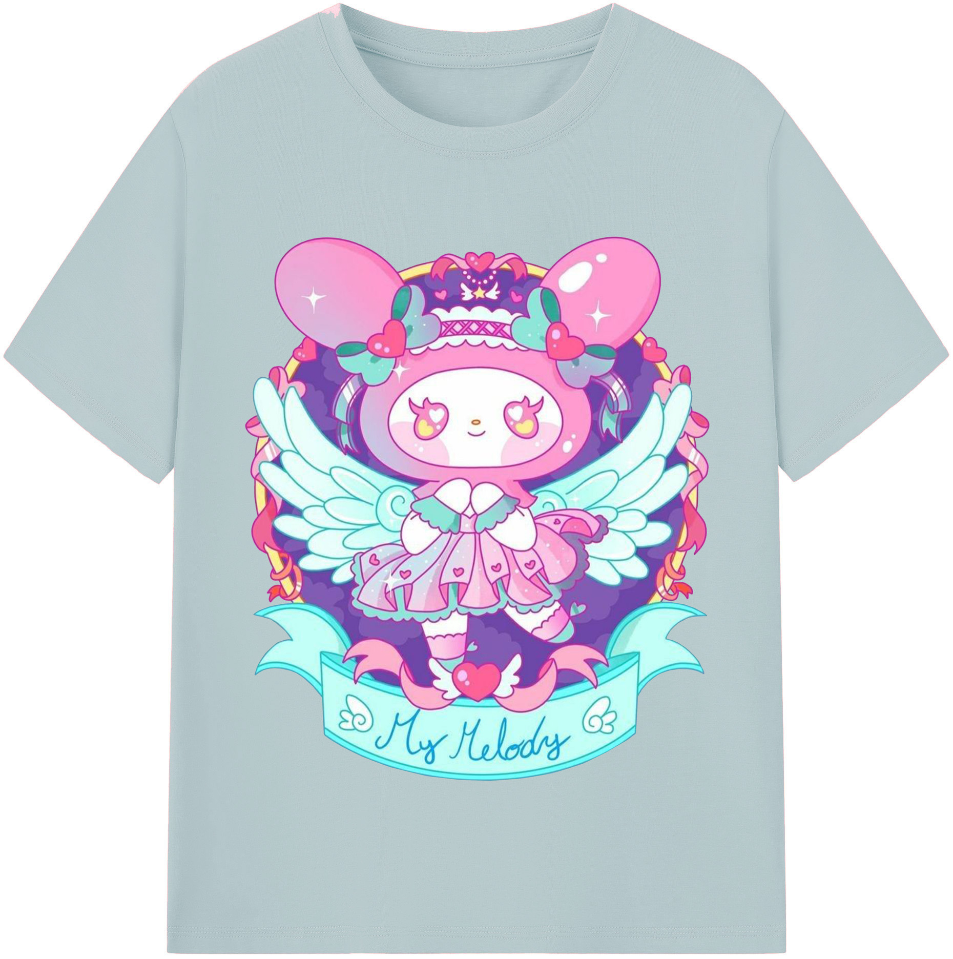 サンリオマイメロディ - 綿100% 半袖Tシャツ ・ フロントプリント ・ 快適 通気性 ・ 日常使い 散歩 スポーツ用