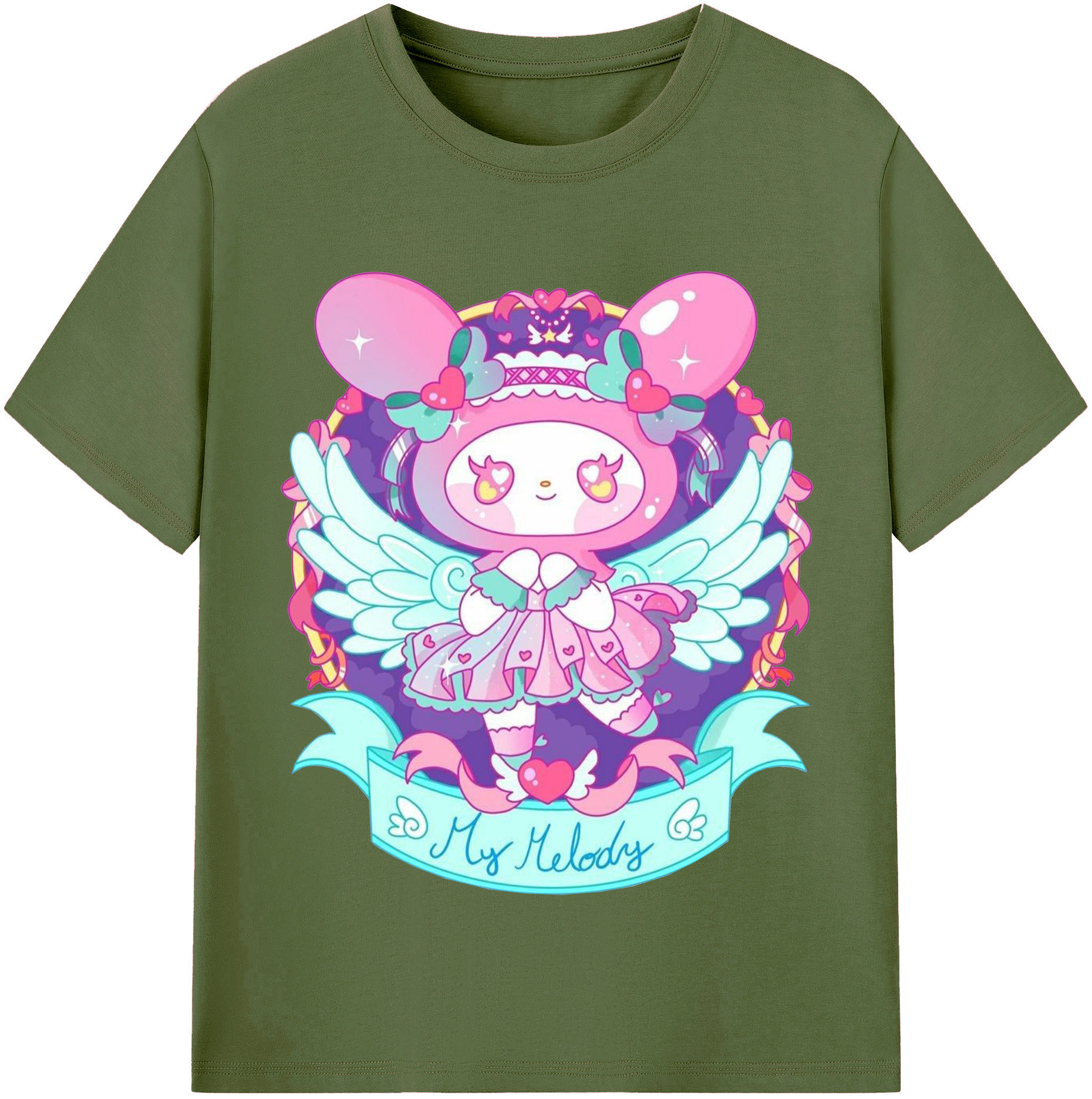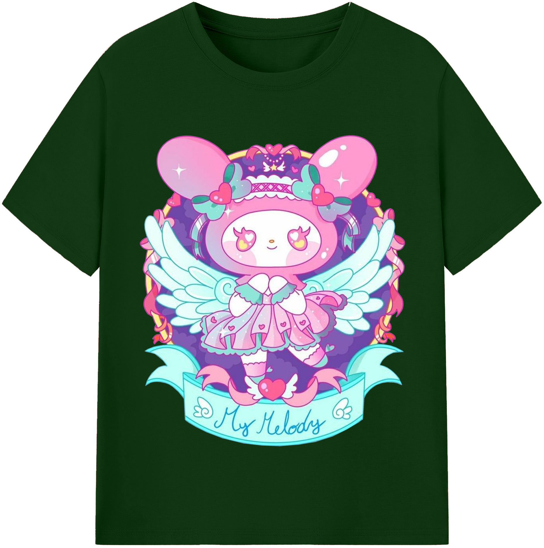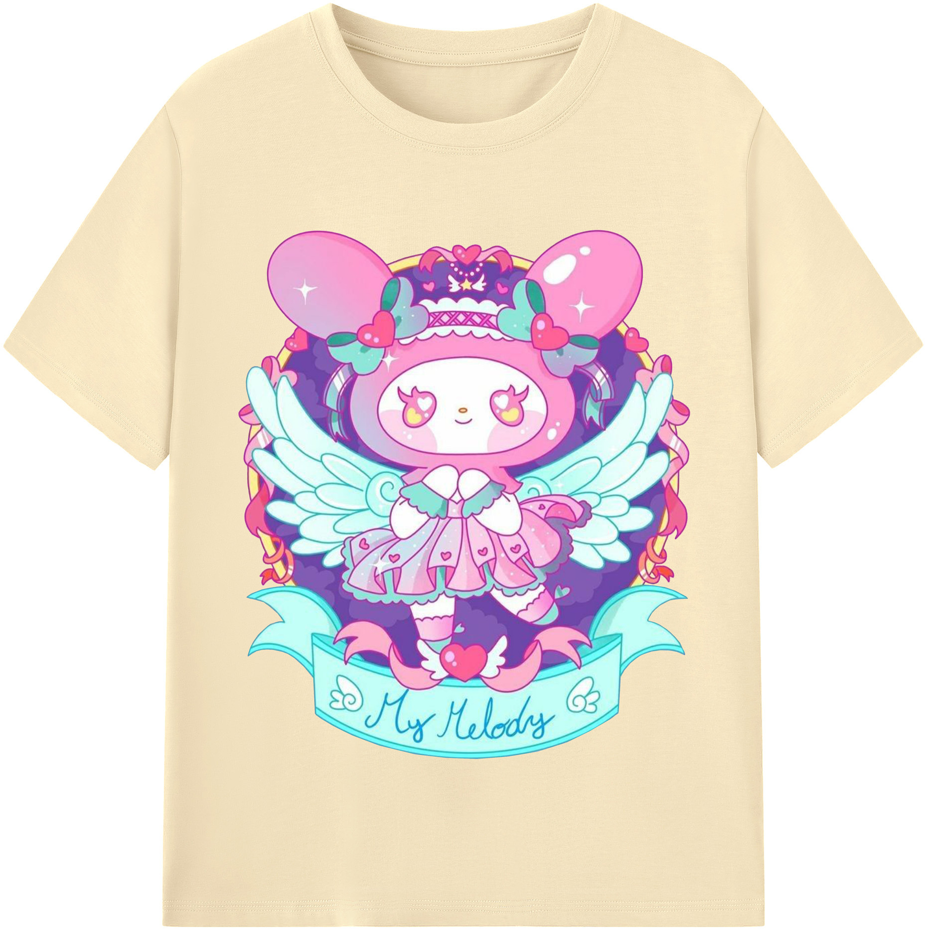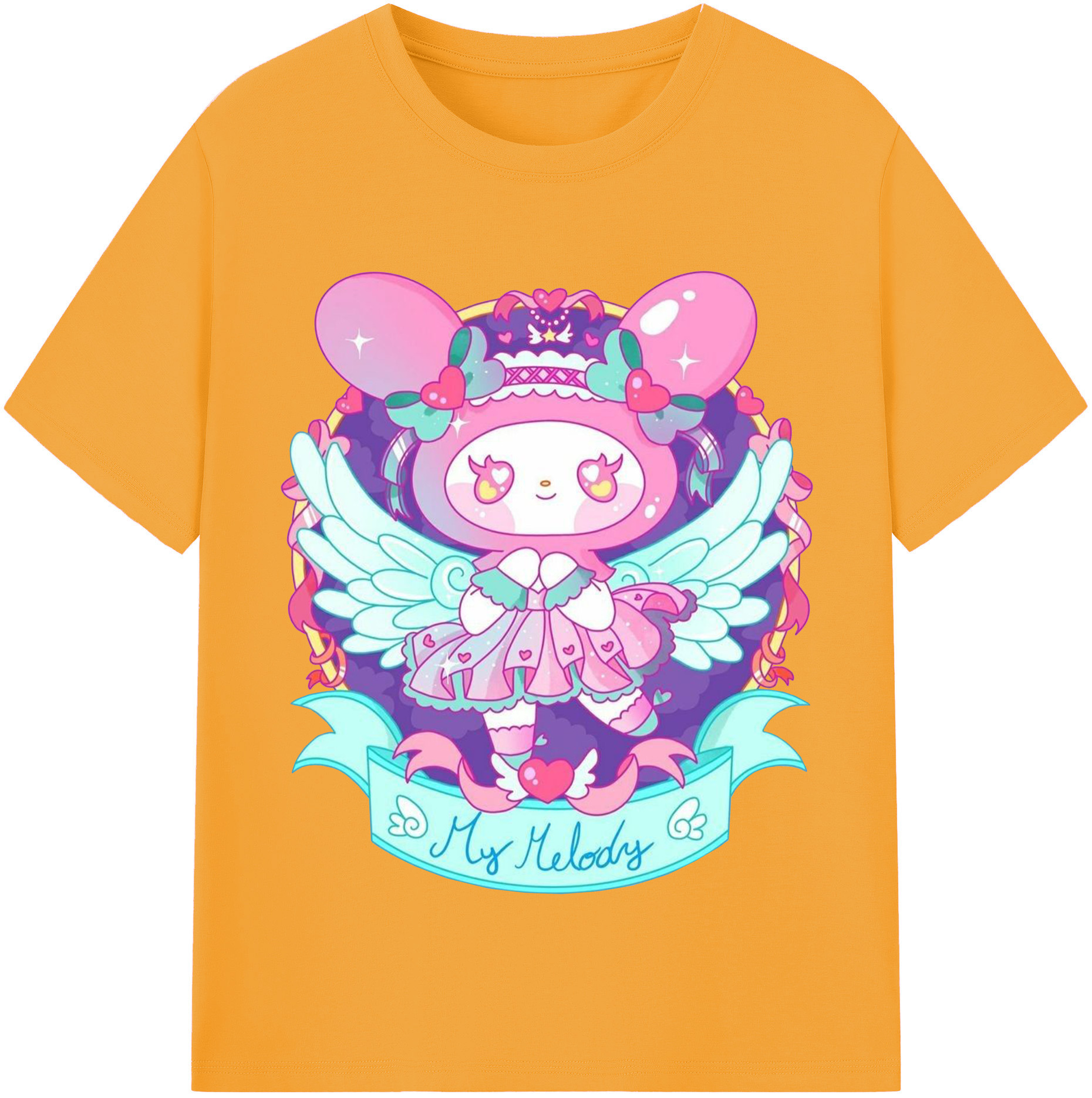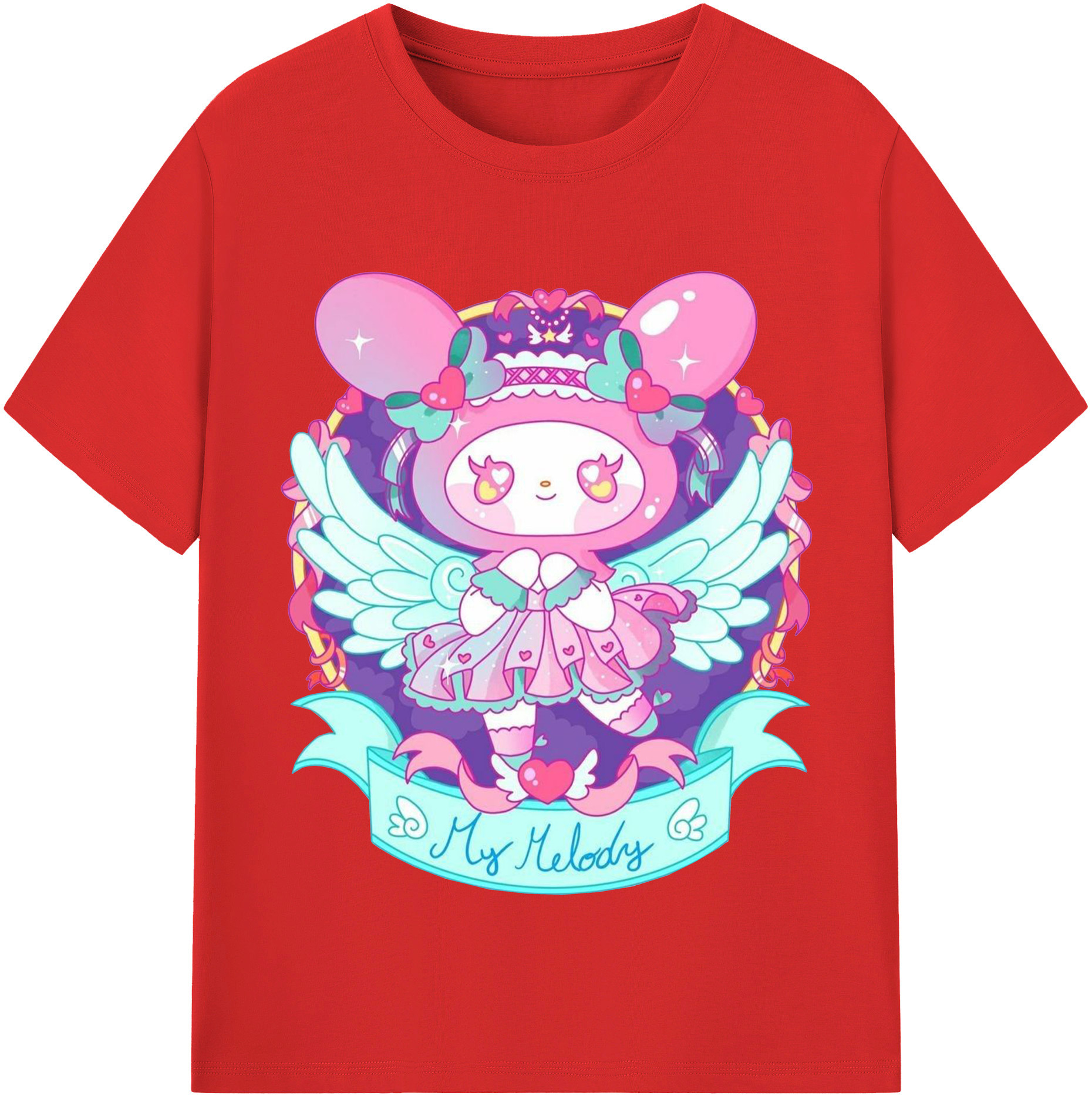 サンリオマイメロディ - 綿100% 半袖Tシャツ ・ フロントプリント ・ 快適 通気性 ・ 日常使い 散歩 スポーツ用