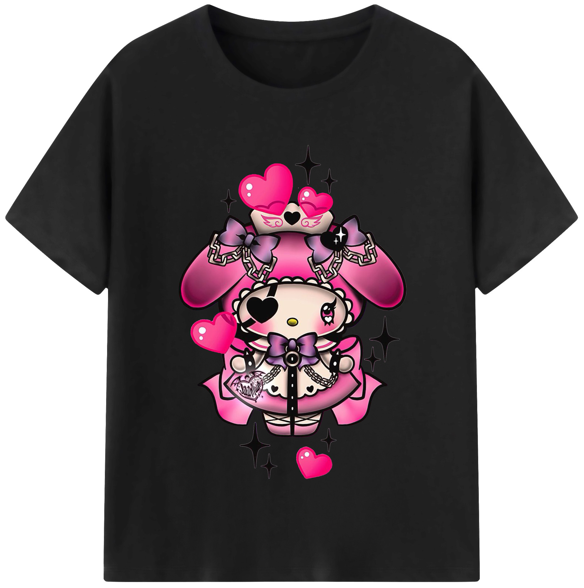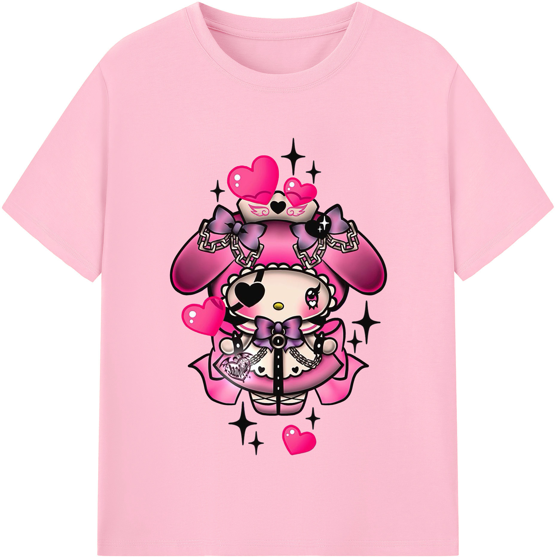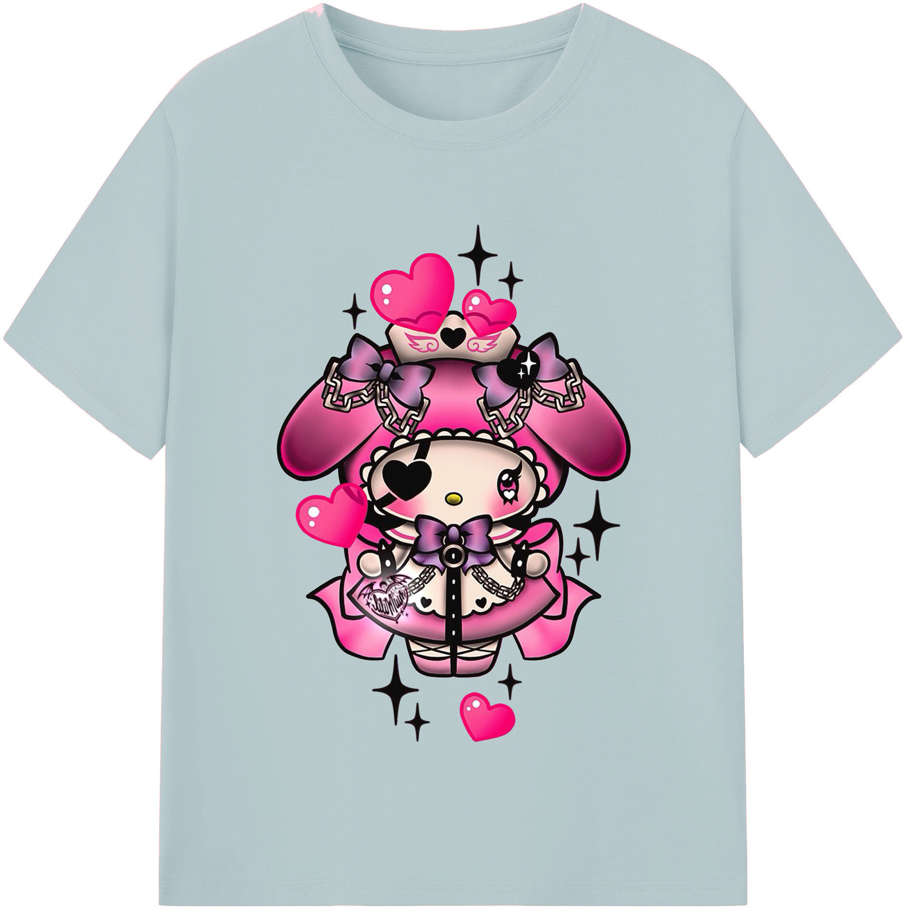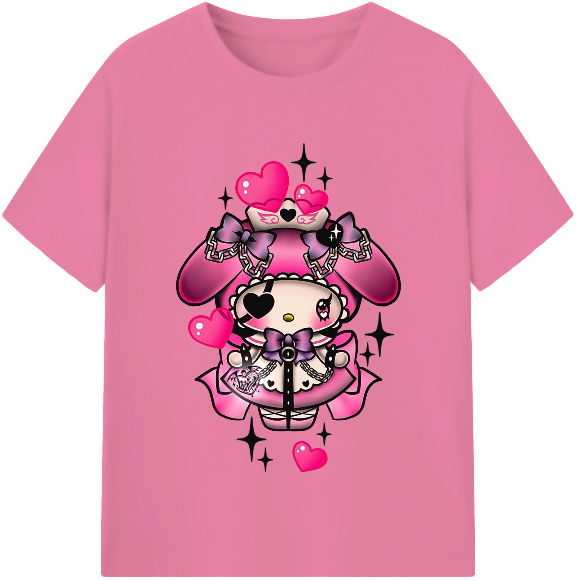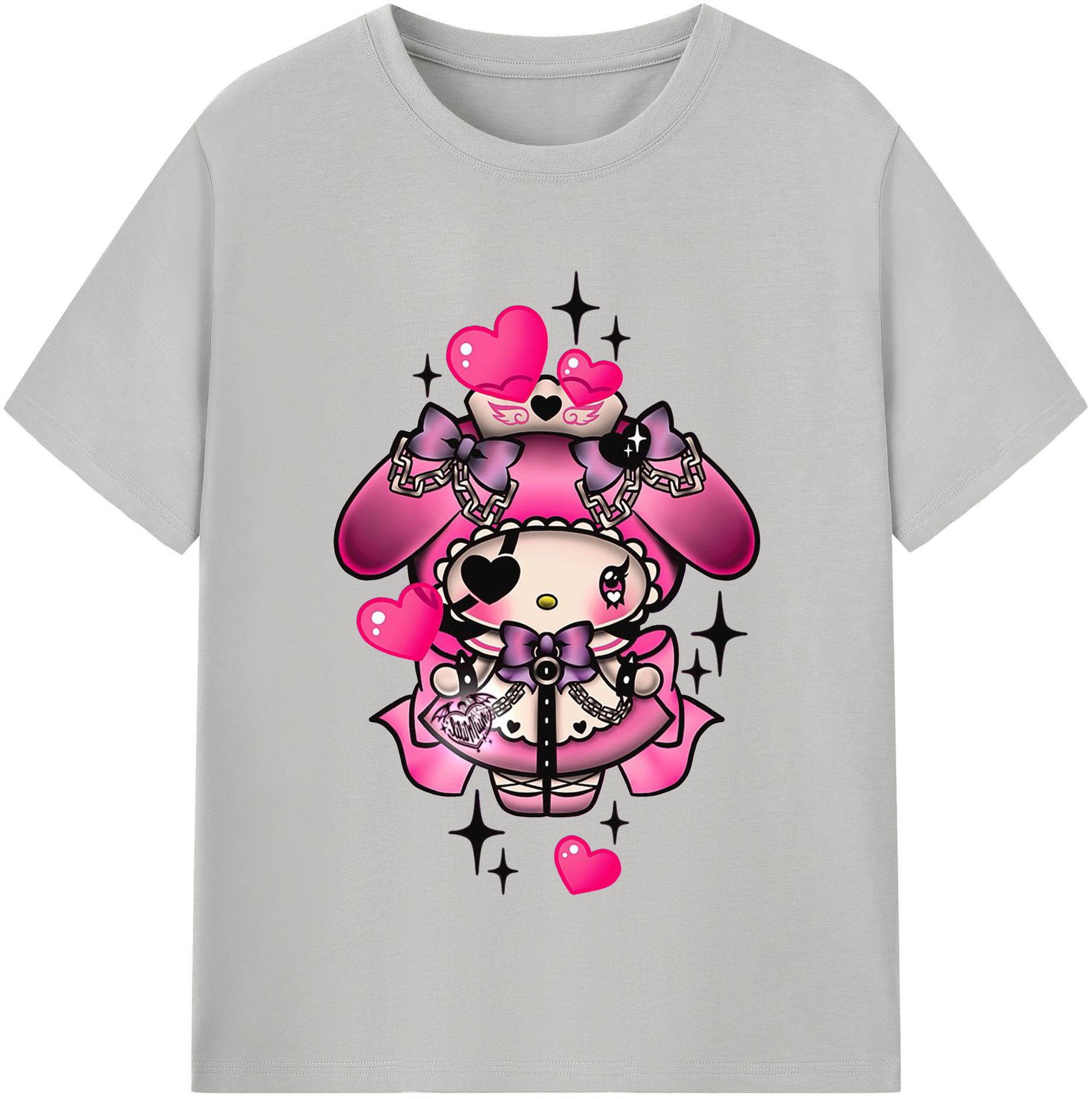 クールなマイメロディ - 綿100% 半袖Tシャツ ・ バックプリント ・ 快適 通気性 ・ 日常使い 散歩 スポーツ用
