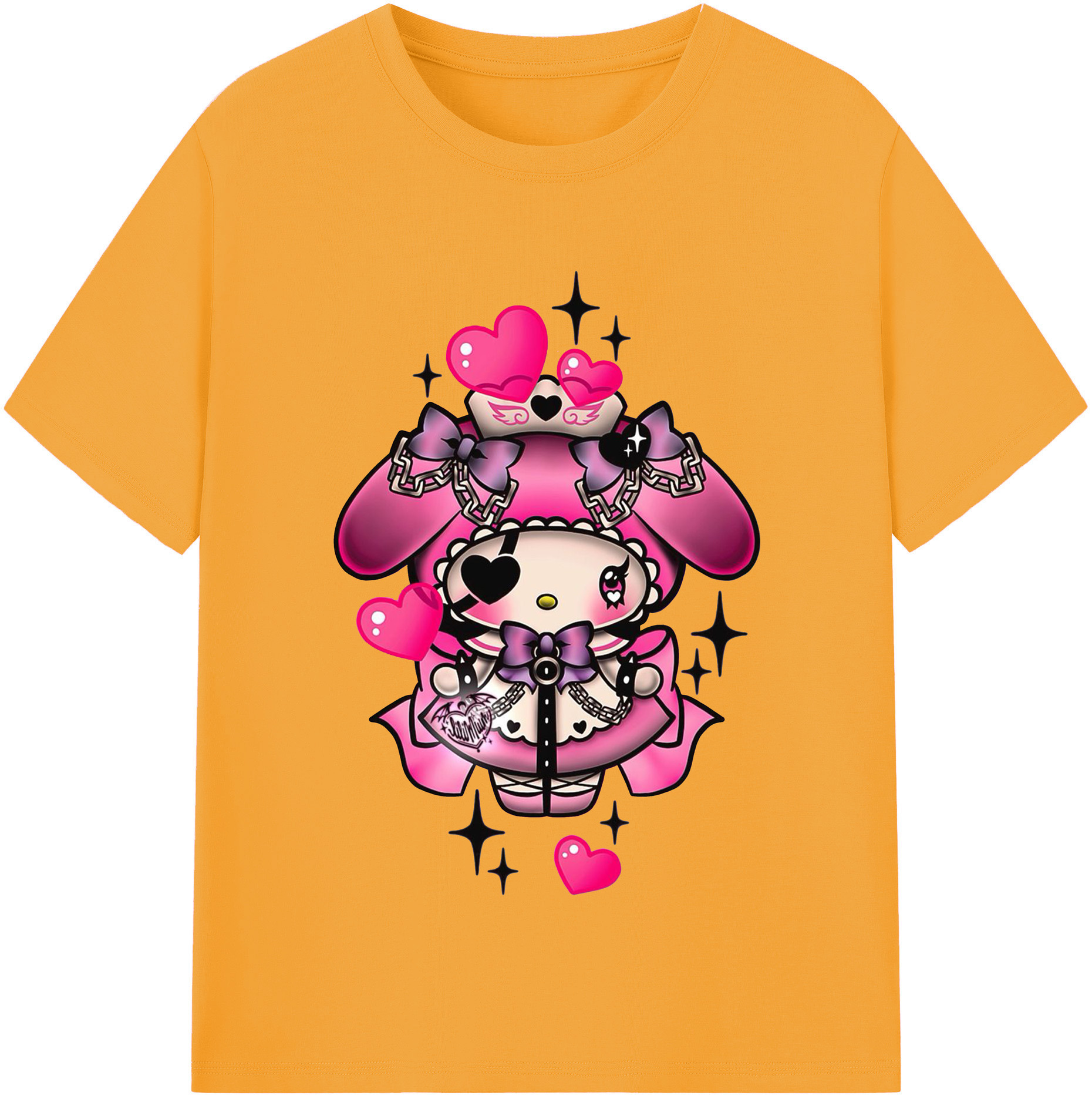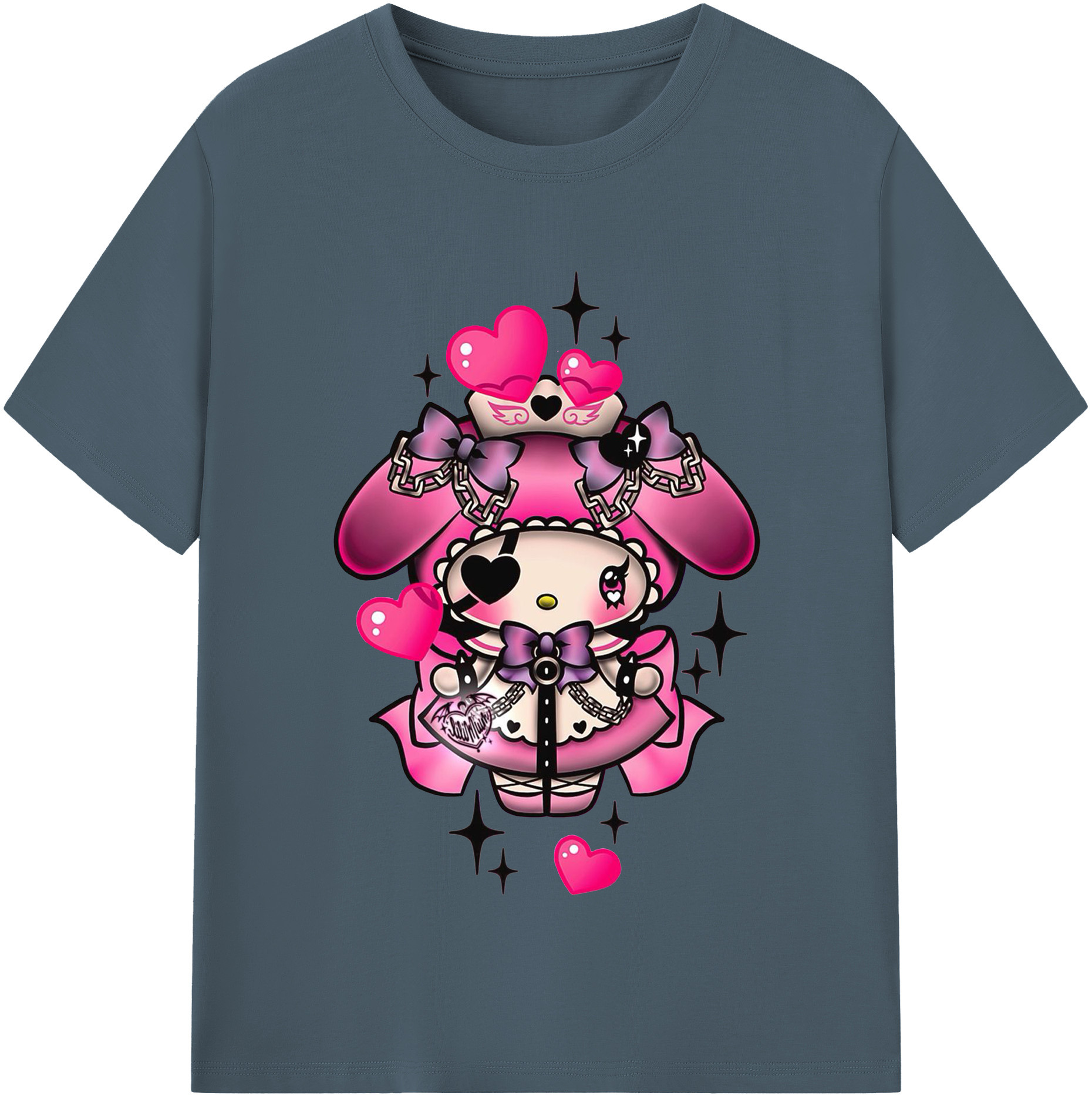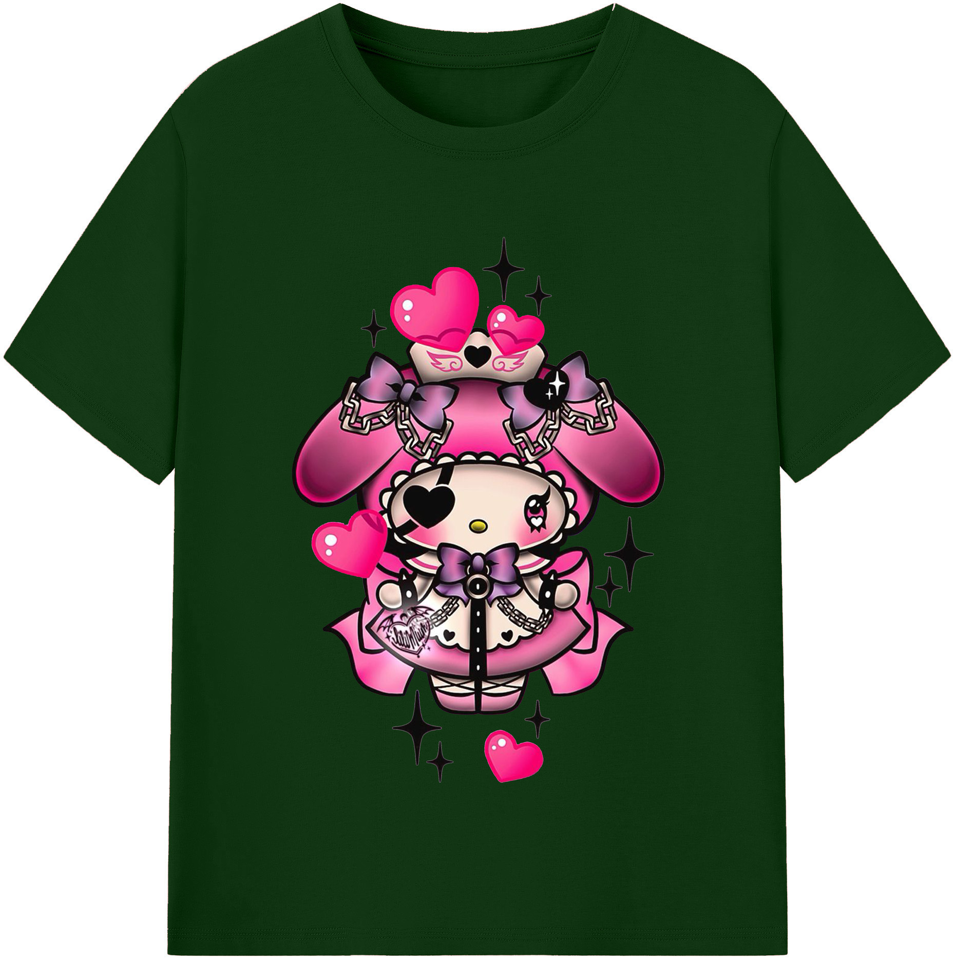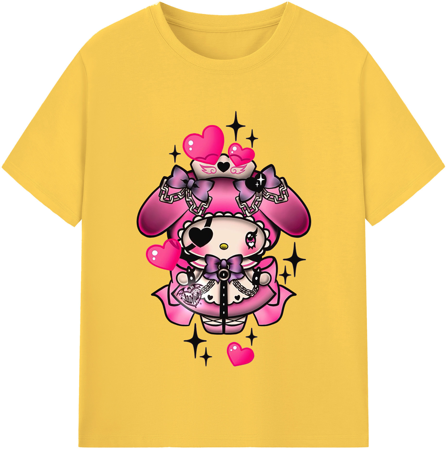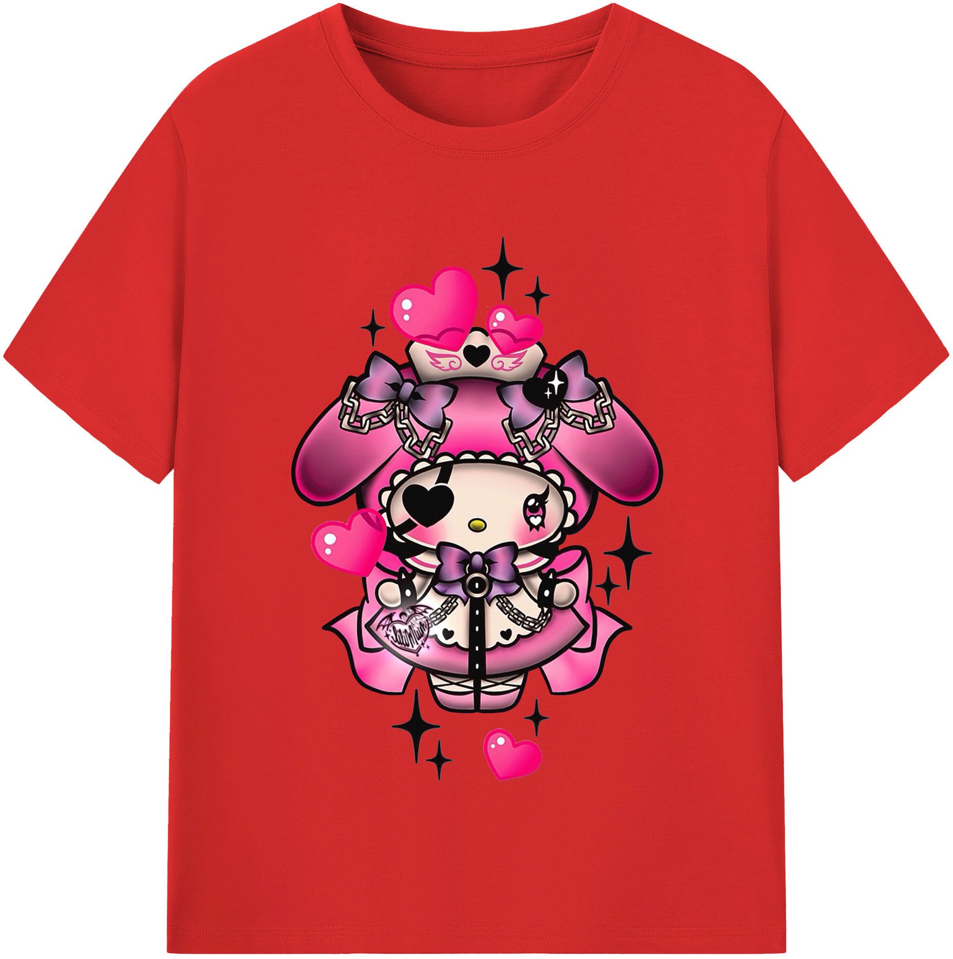 クールなマイメロディ - 綿100% 半袖Tシャツ ・ バックプリント ・ 快適 通気性 ・ 日常使い 散歩 スポーツ用