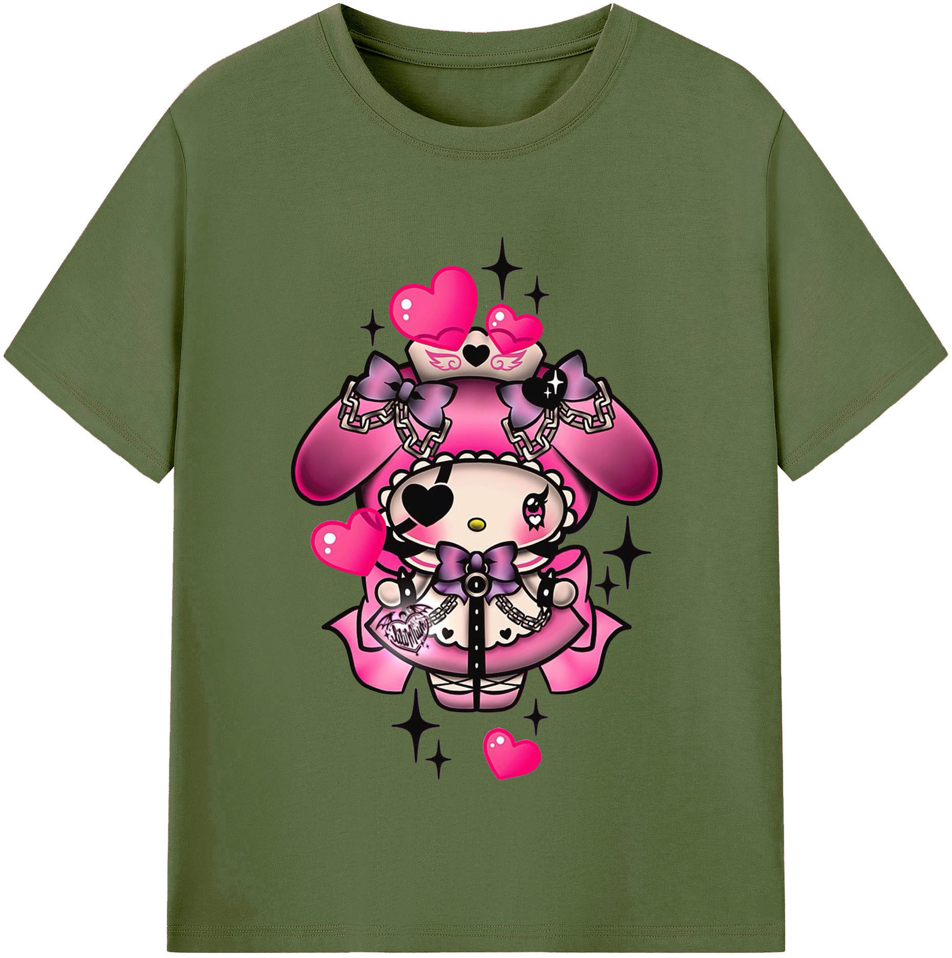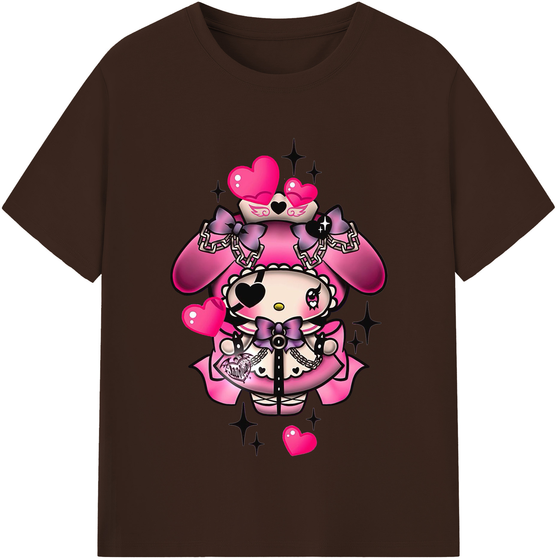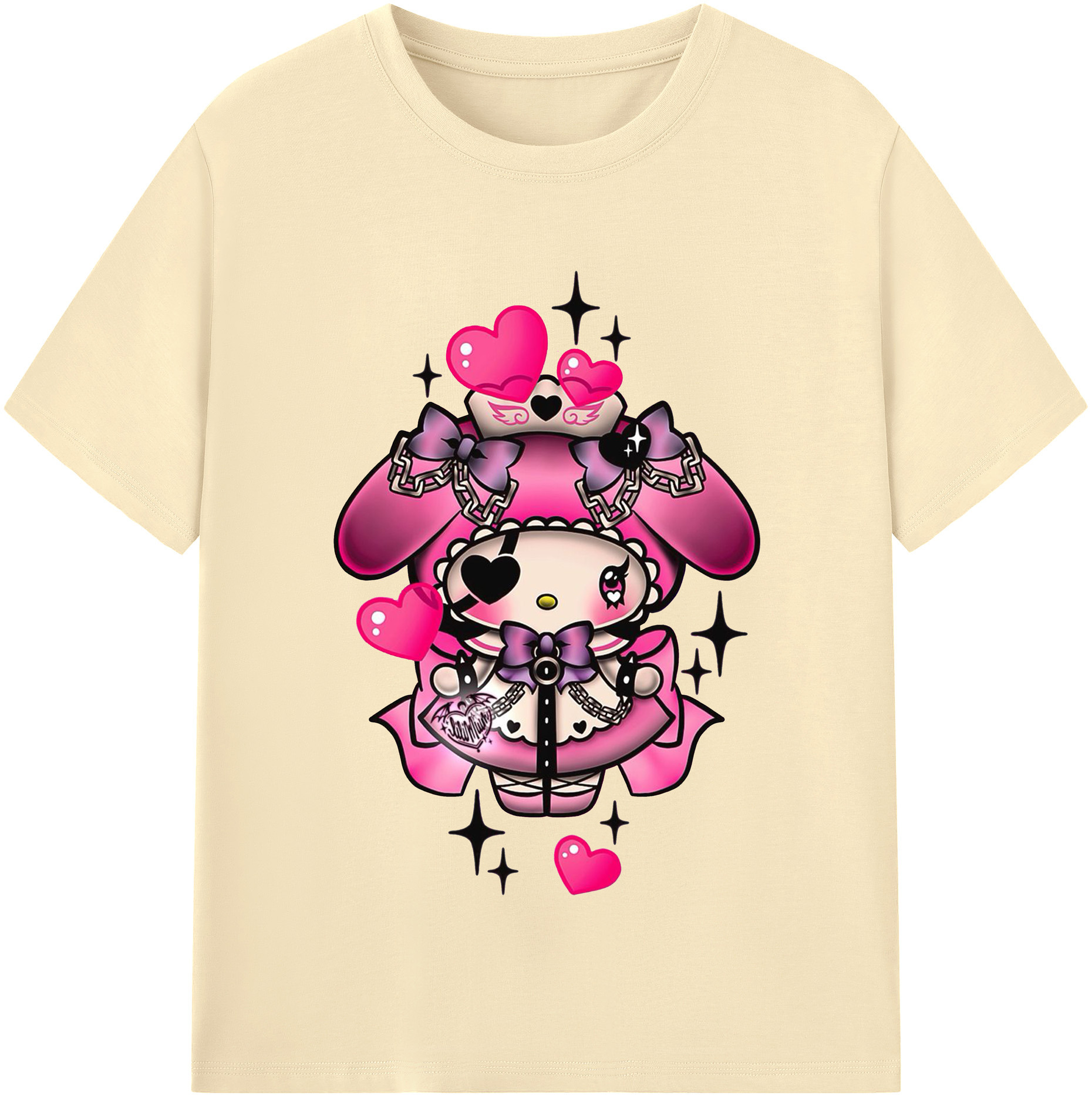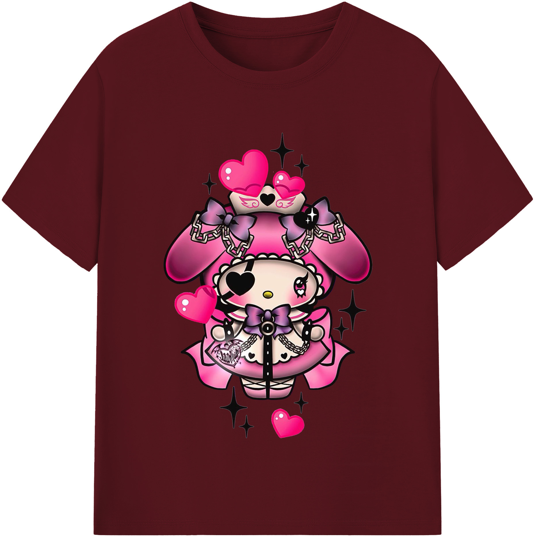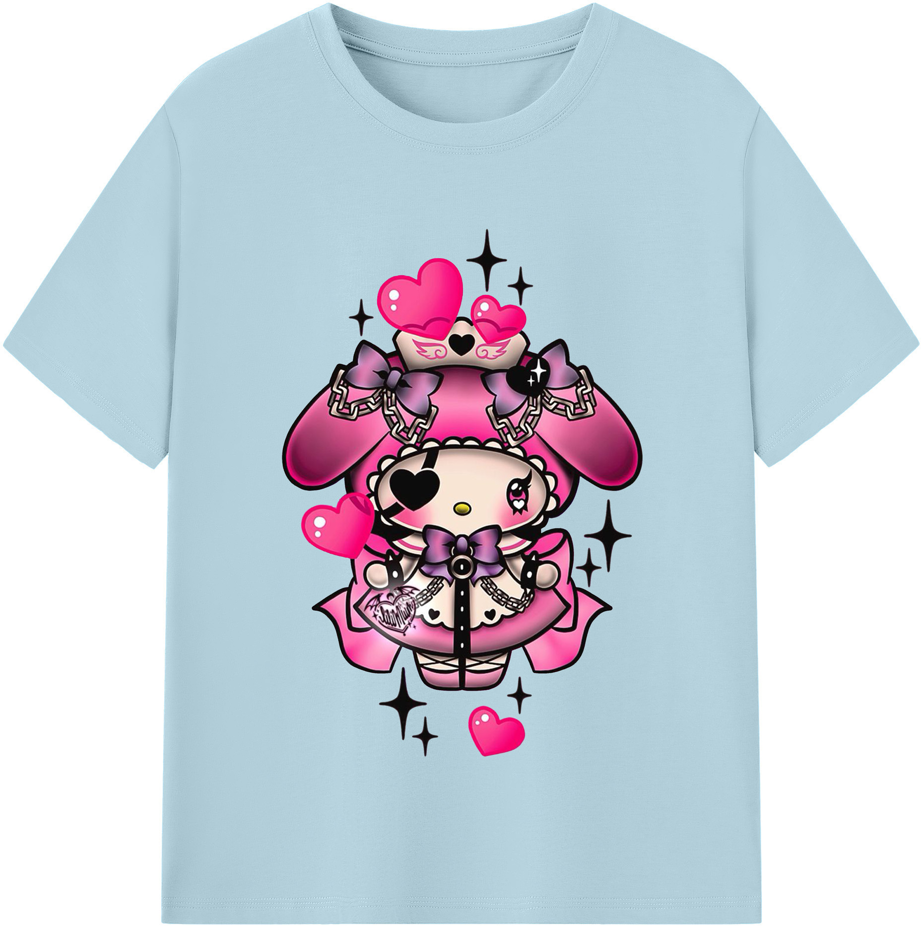 クールなマイメロディ - 綿100% 半袖Tシャツ ・ バックプリント ・ 快適 通気性 ・ 日常使い 散歩 スポーツ用
