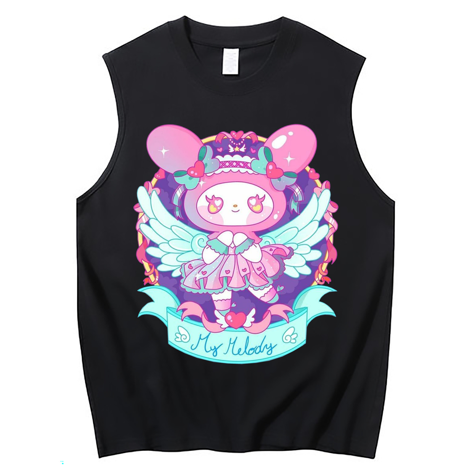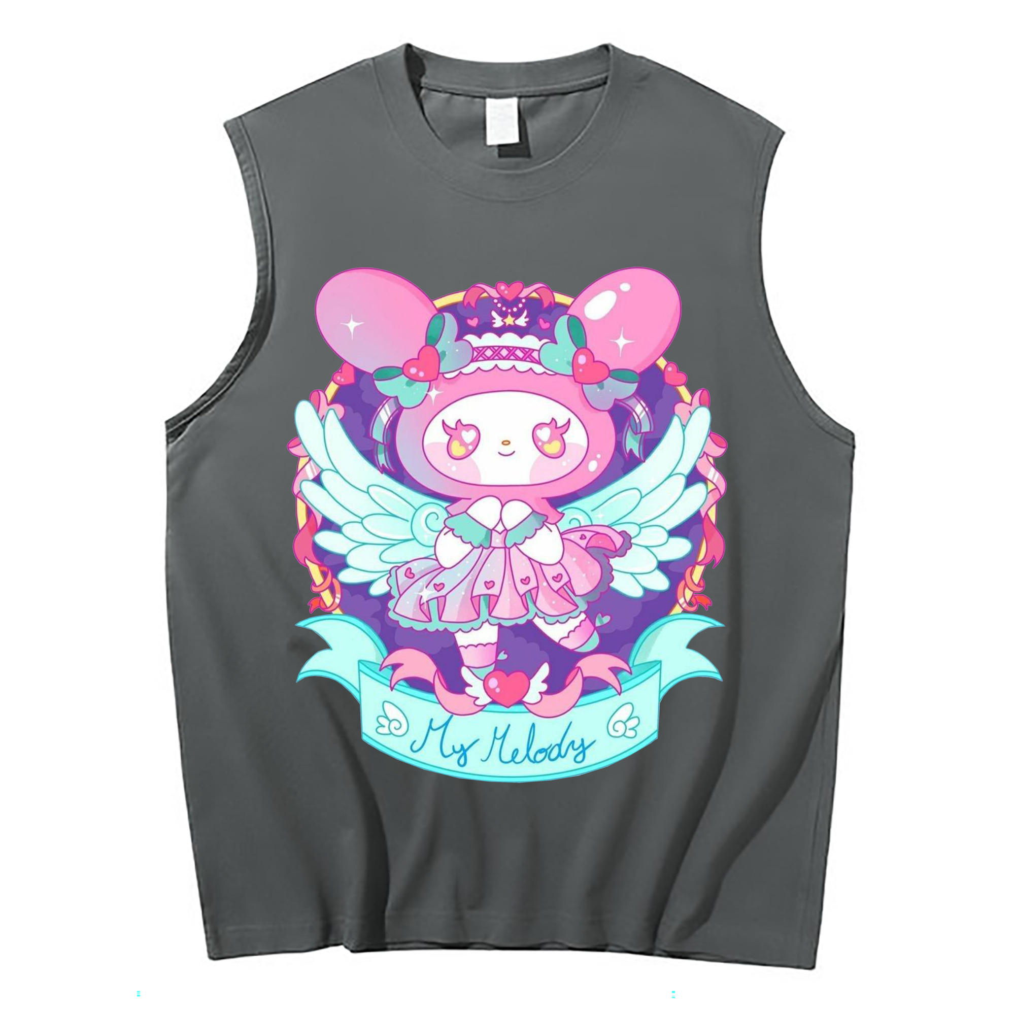 クールなマイメロディ - コットン100% タンクトップ ・ フロントプリント ・ タイトフィット ・ 快適 通気性 ・ スポーツ カジュアル 散歩用