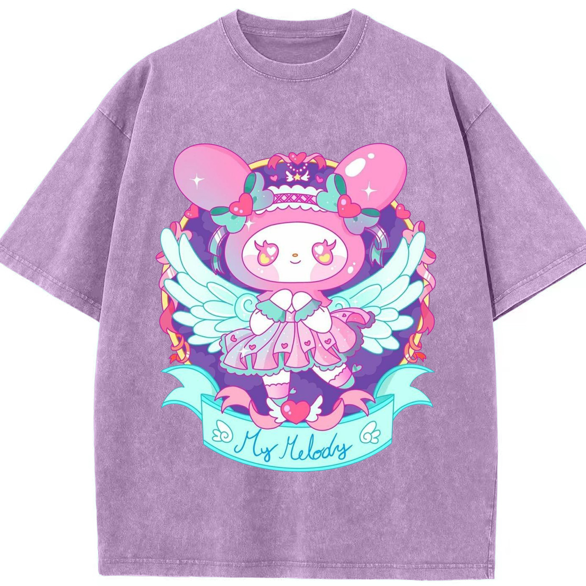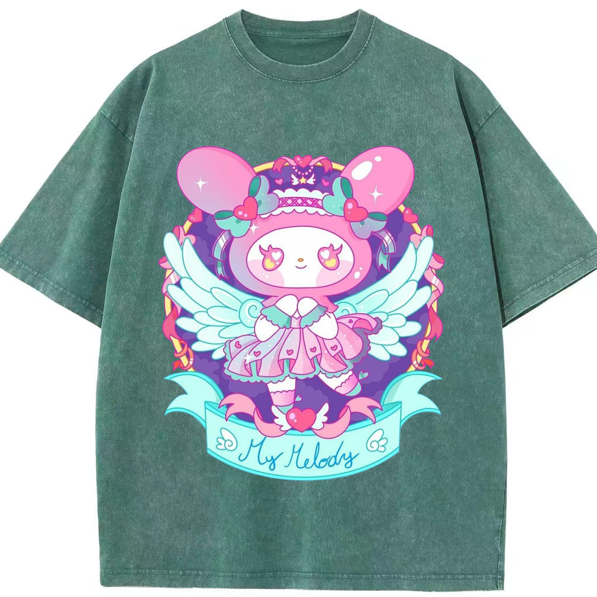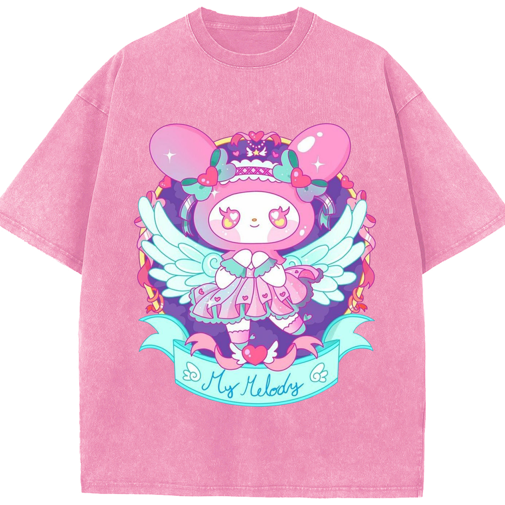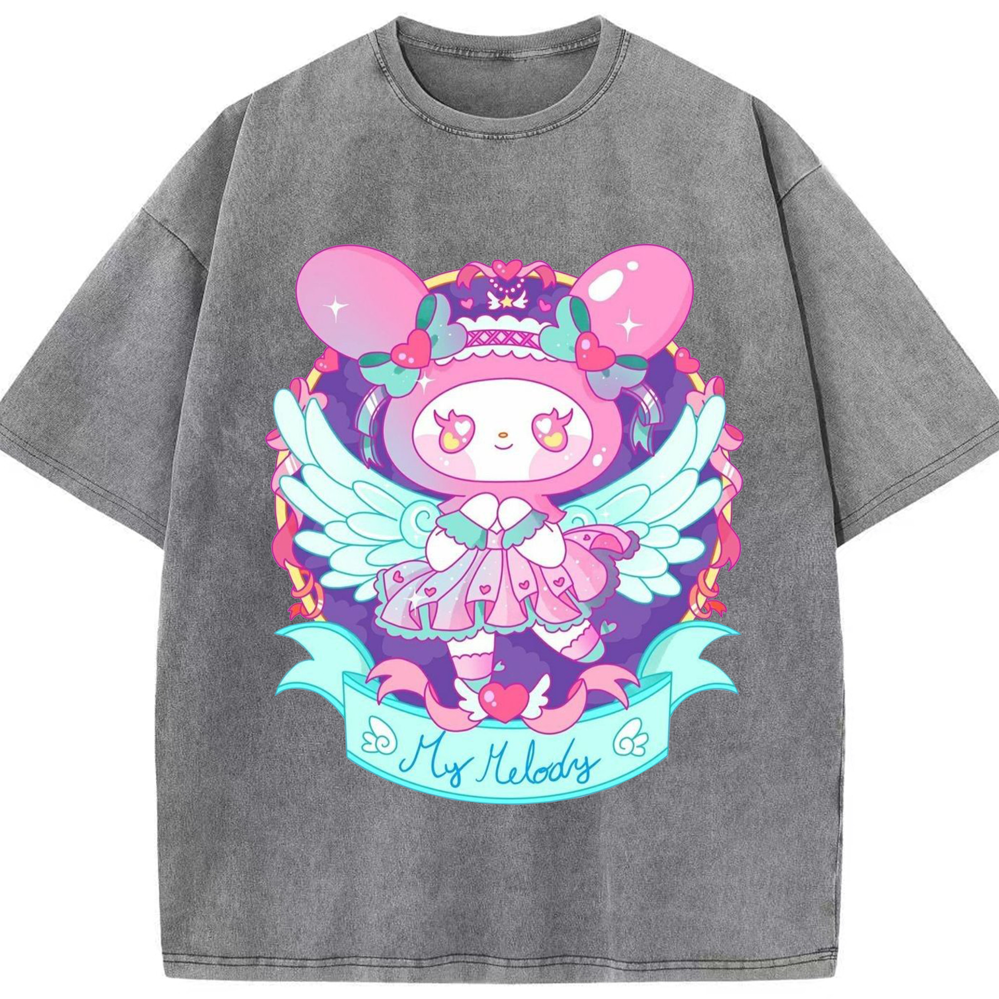 クールなマイメロディ - 綿100% 半袖Tシャツ ・ バックプリント ・ 快適 通気性 ・ 日常使い 散歩 スポーツ用