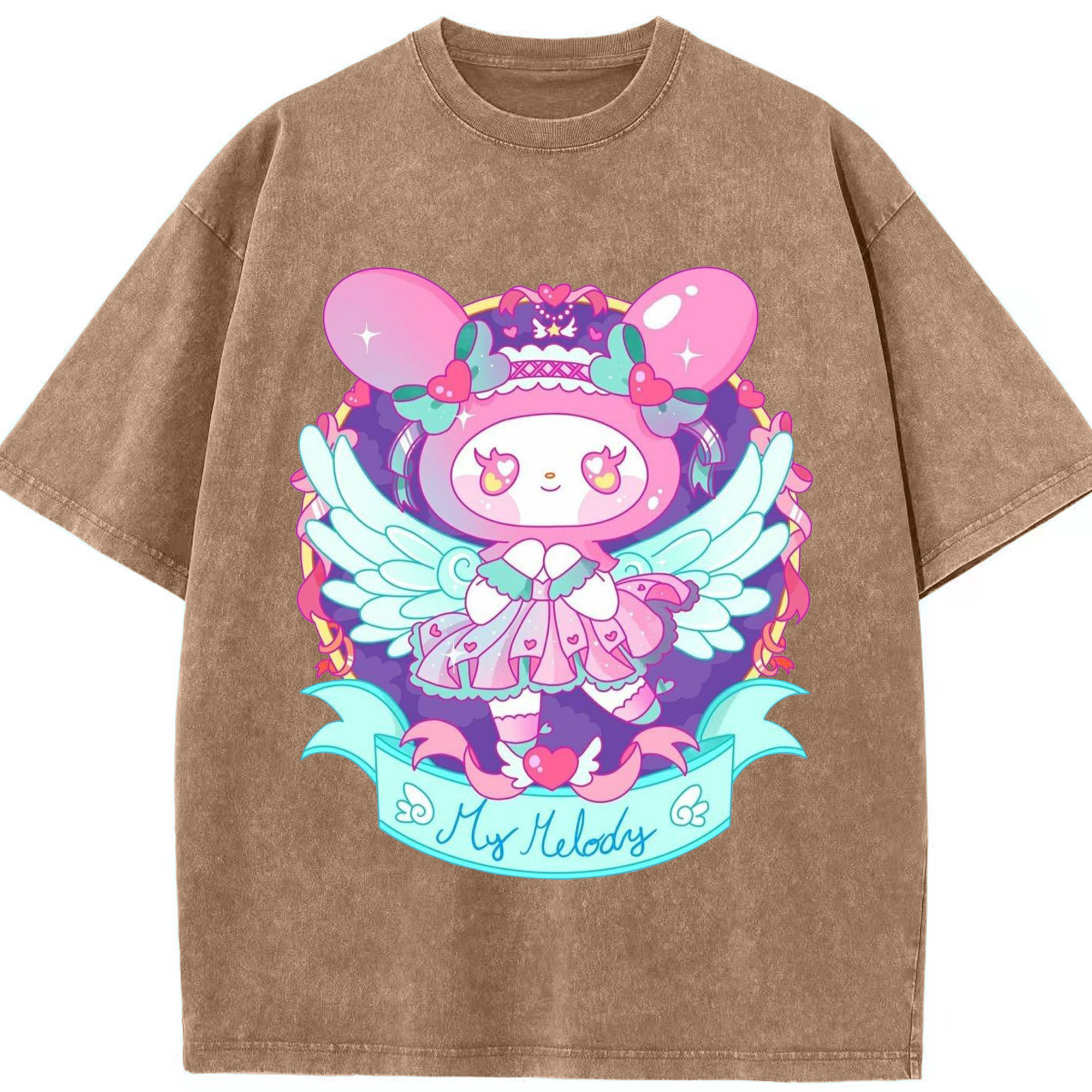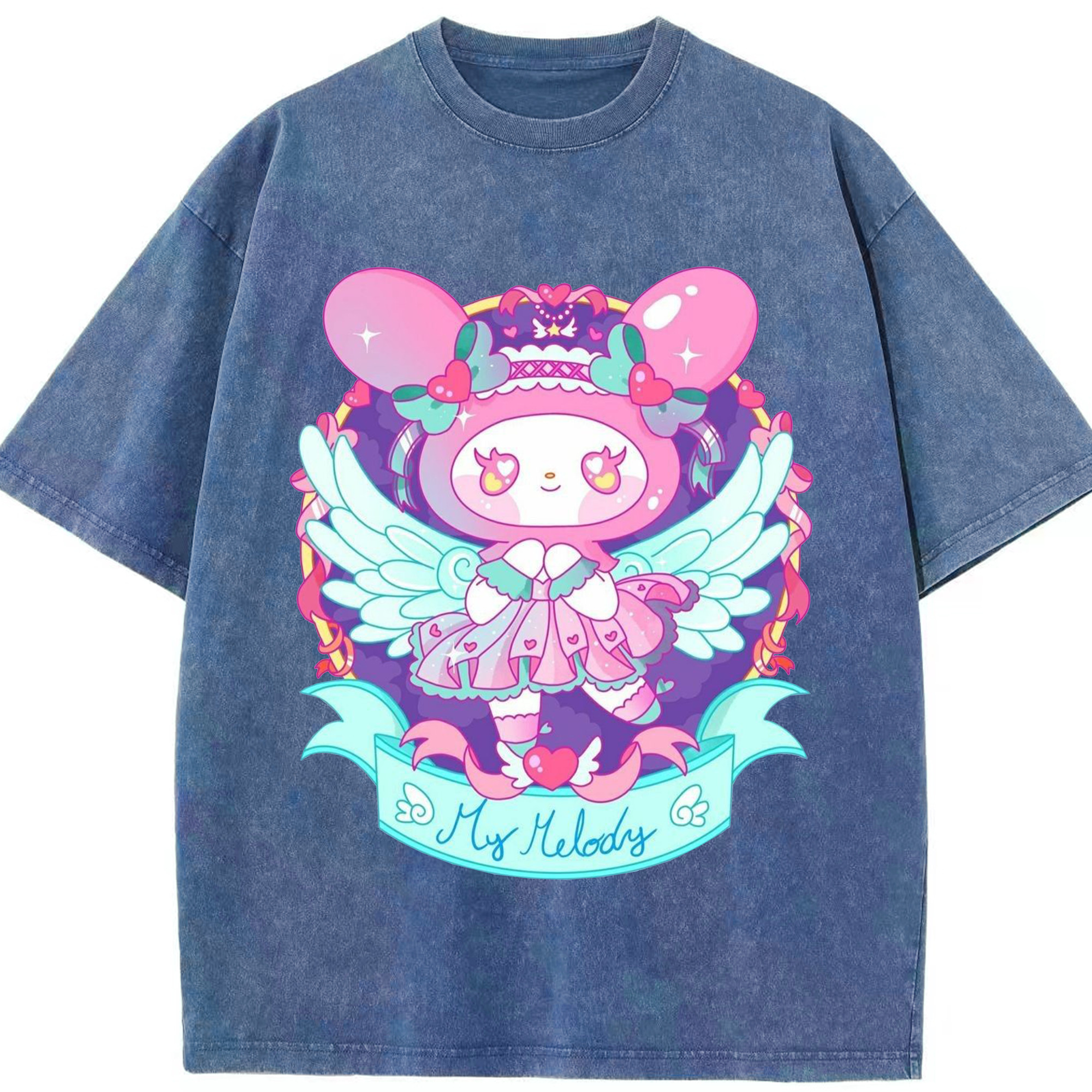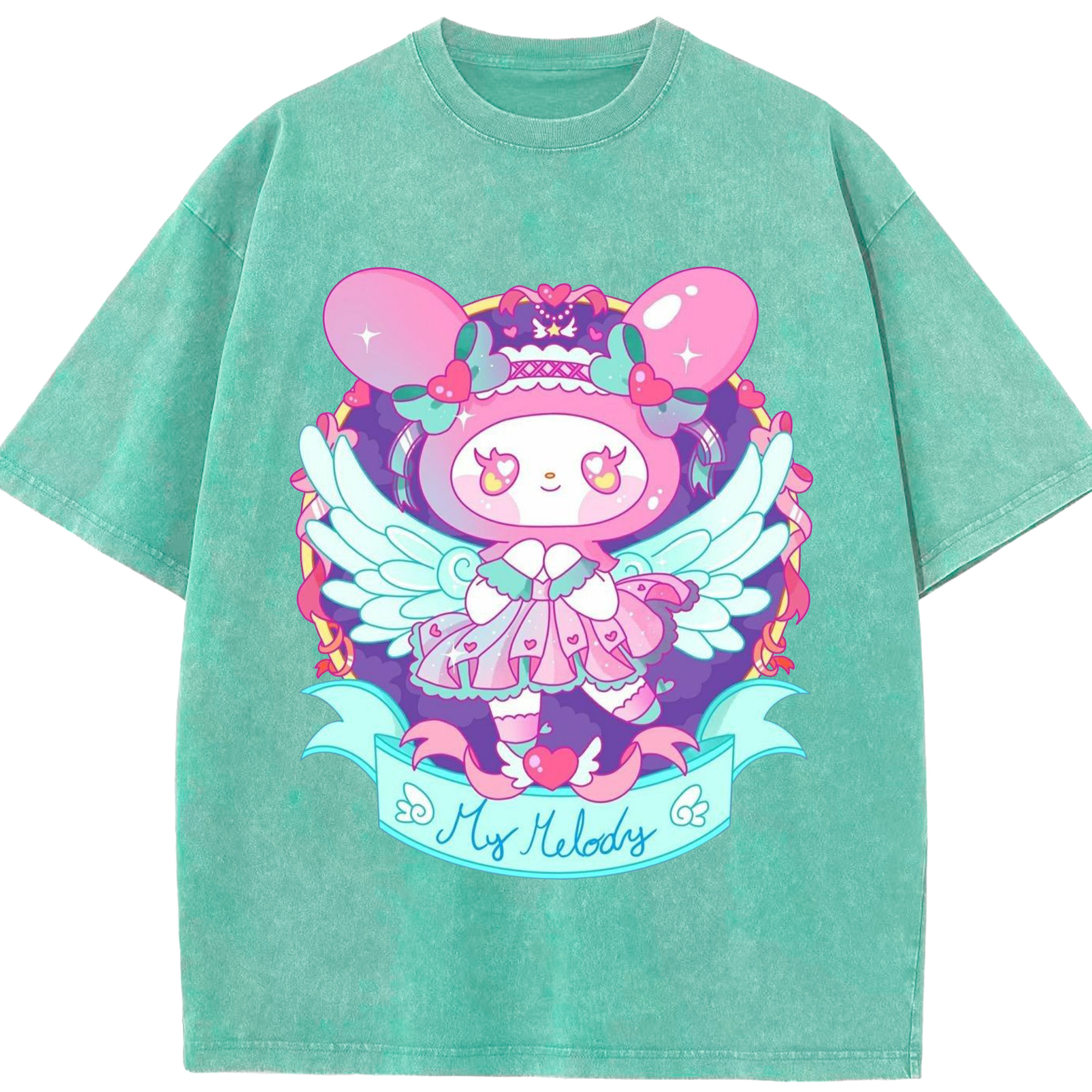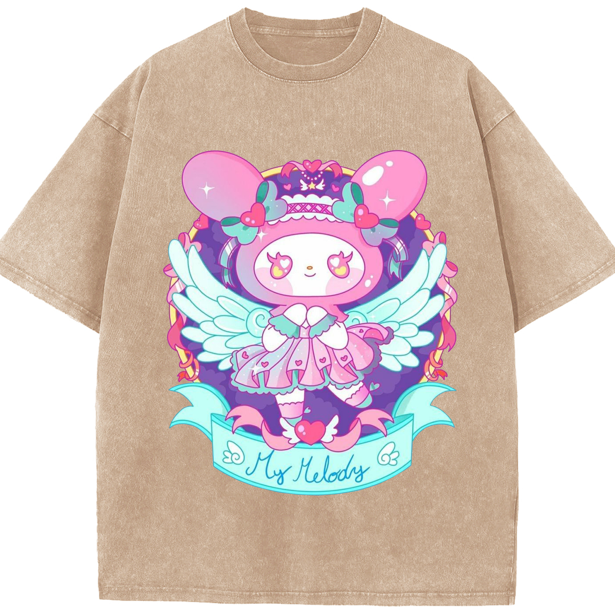 クールなマイメロディ - 綿100% 半袖Tシャツ ・ バックプリント ・ 快適 通気性 ・ 日常使い 散歩 スポーツ用