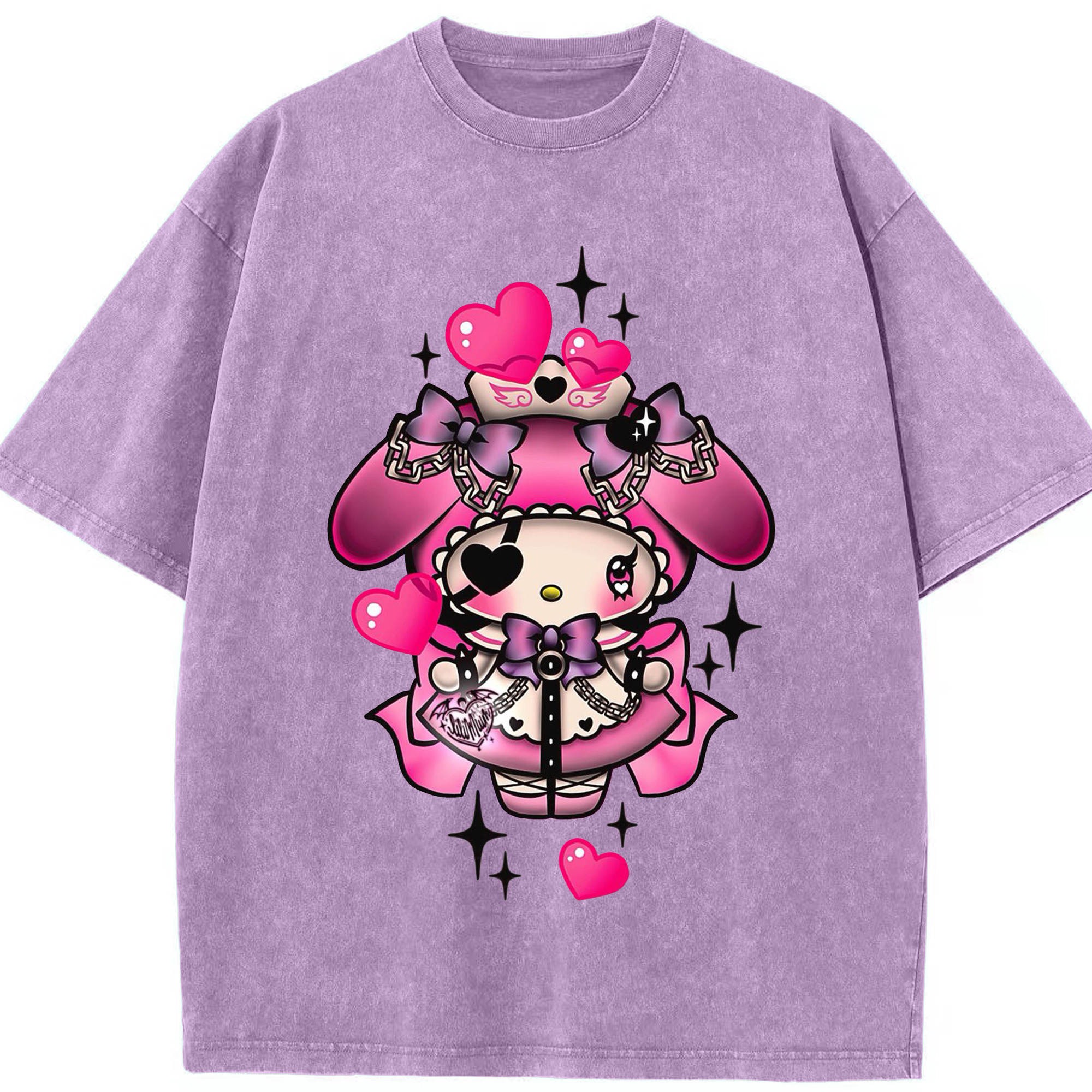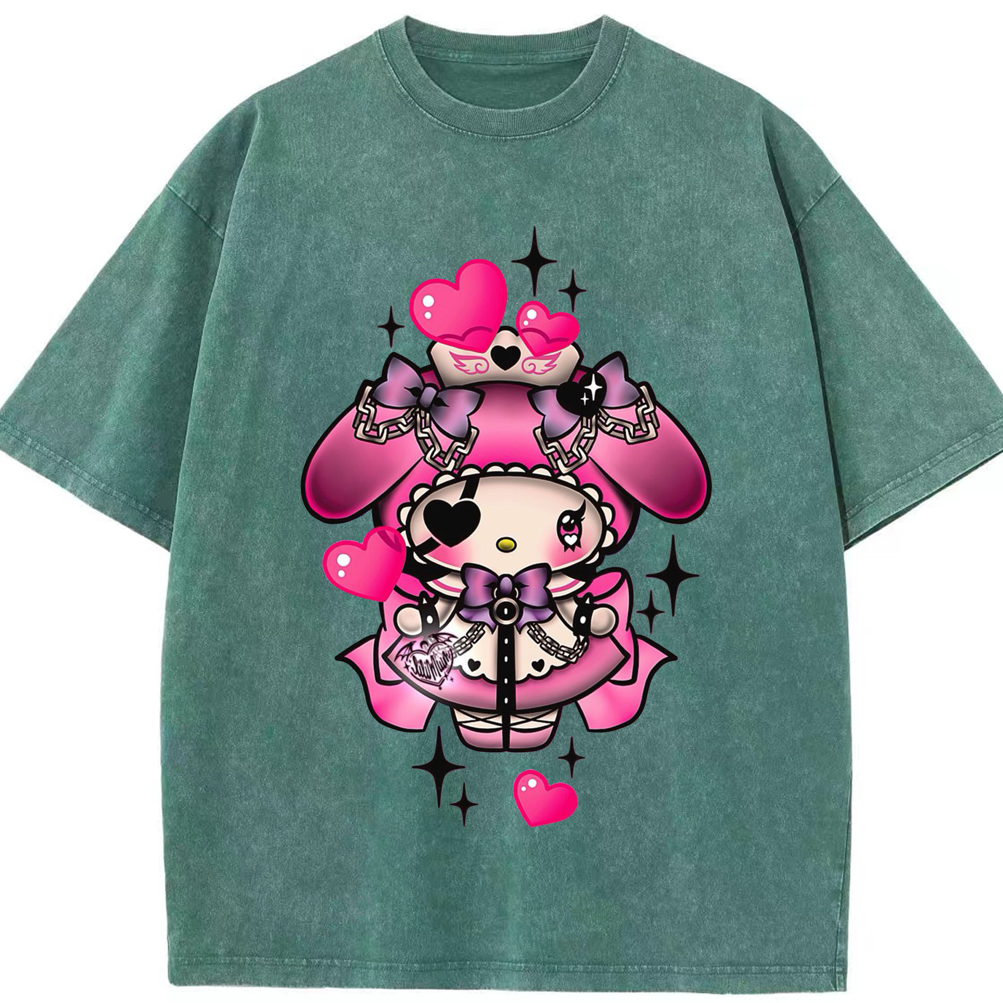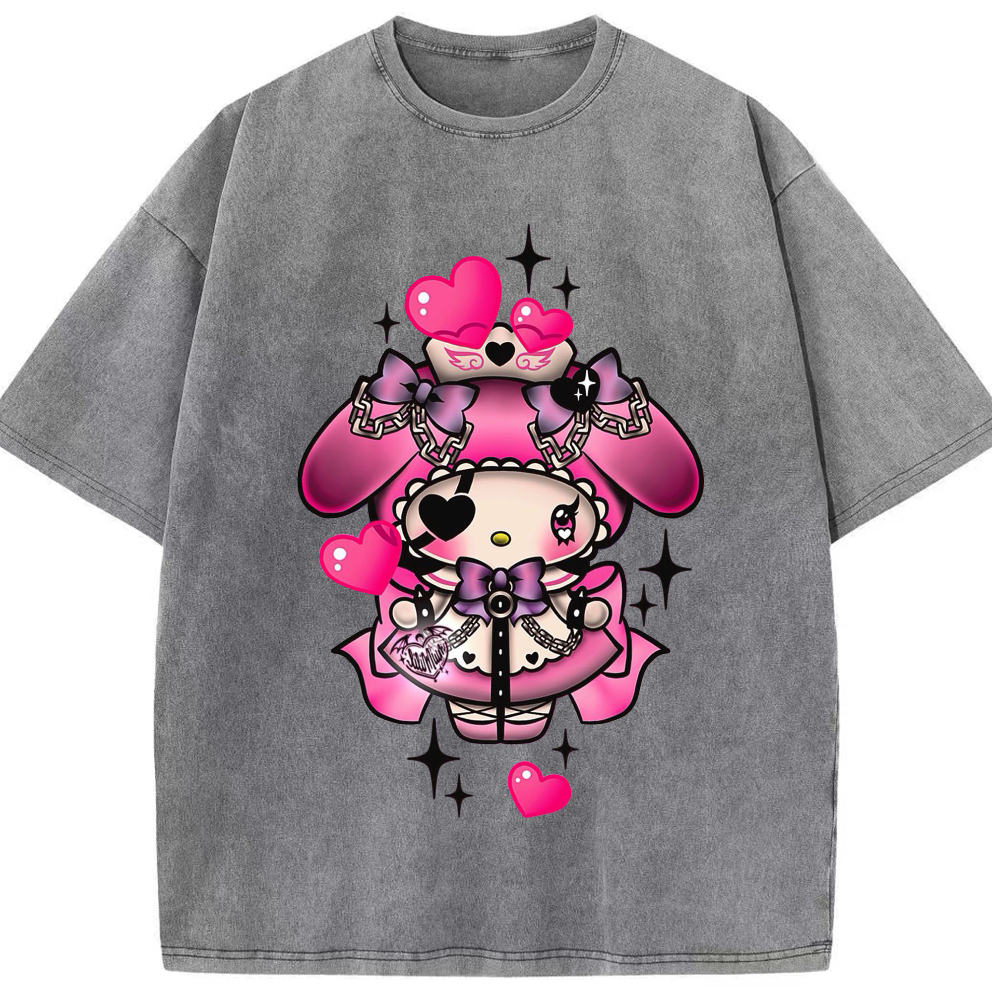 クールなマイメロディ - 綿100% 半袖Tシャツ ・ バックプリント ・ 快適 通気性 ・ 日常使い 散歩 スポーツ用