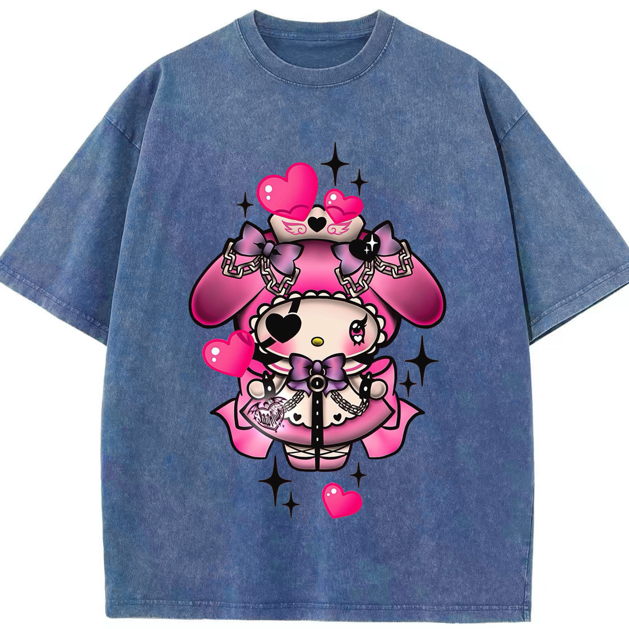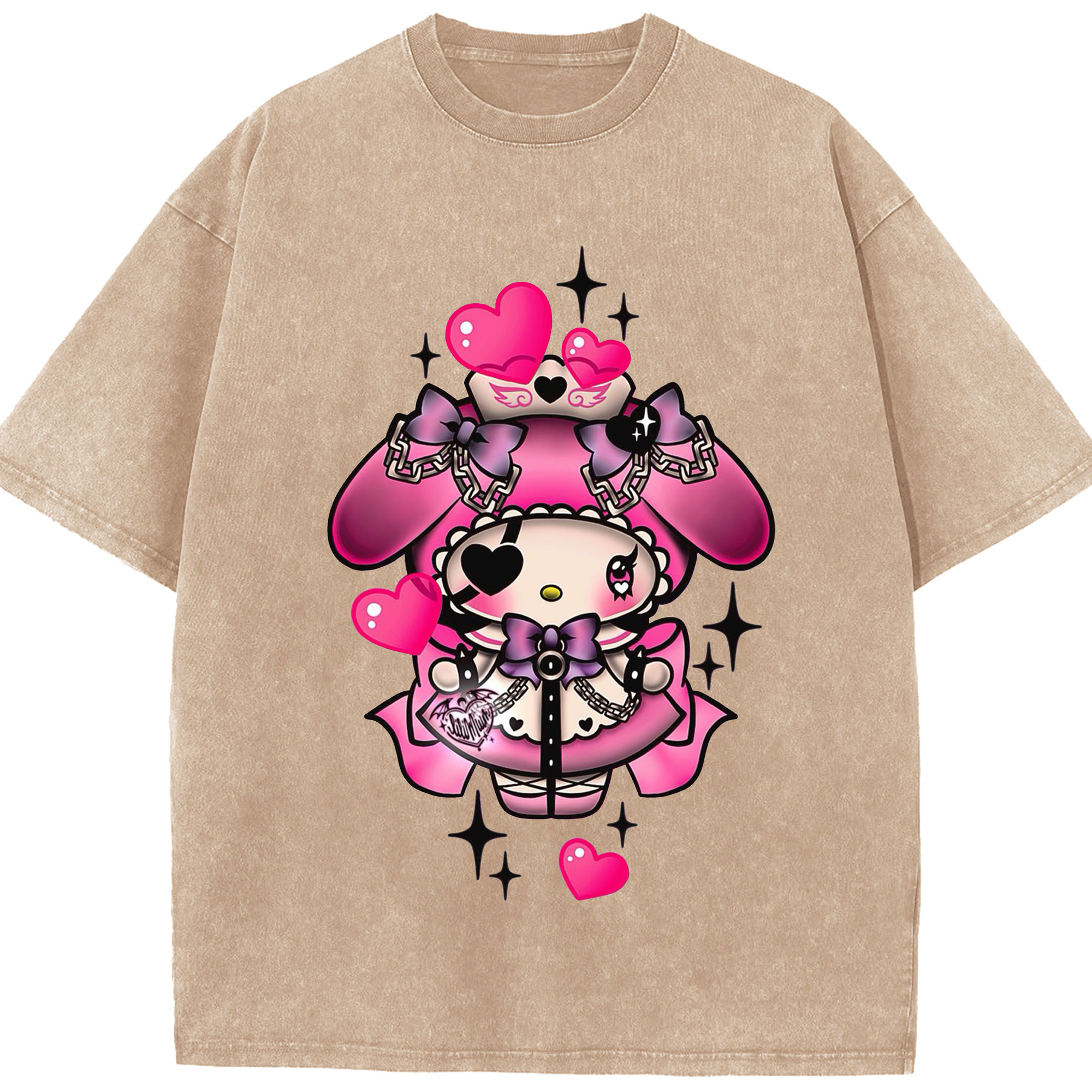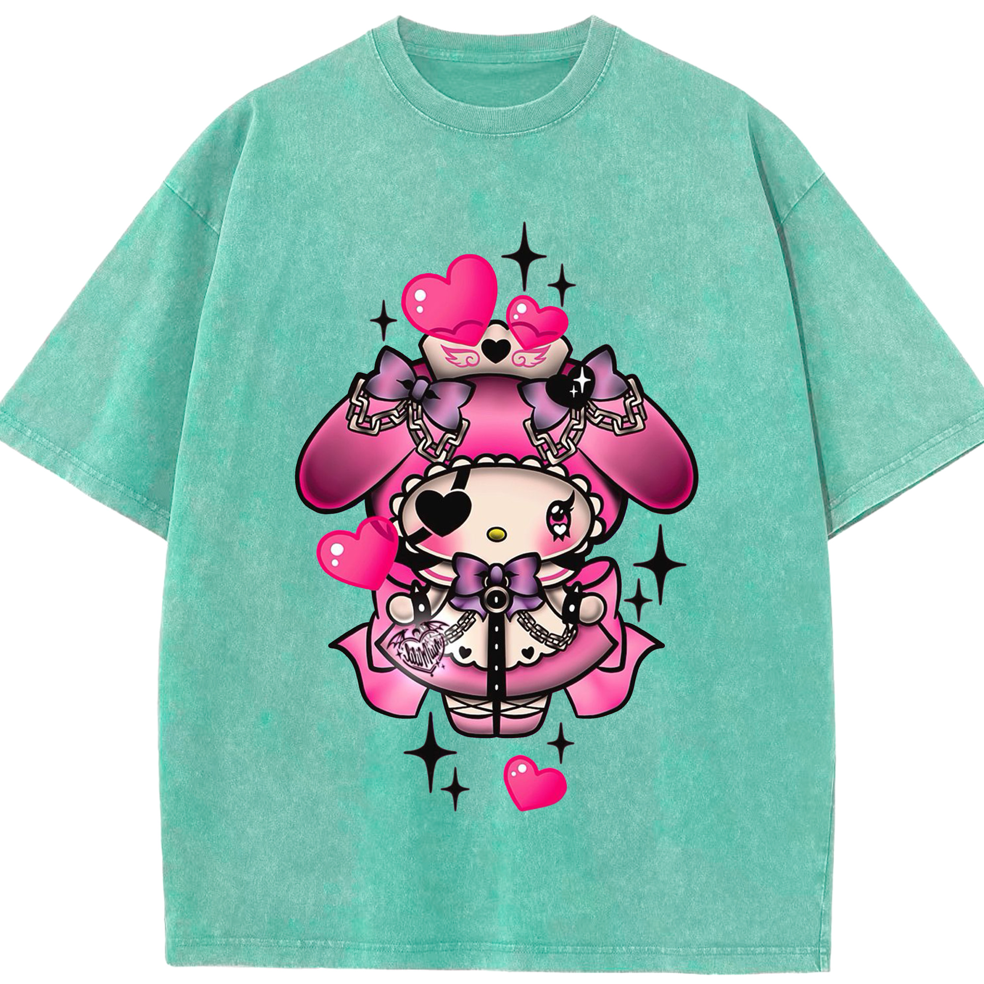 クールなマイメロディ - 綿100% 半袖Tシャツ ・ バックプリント ・ 快適 通気性 ・ 日常使い 散歩 スポーツ用