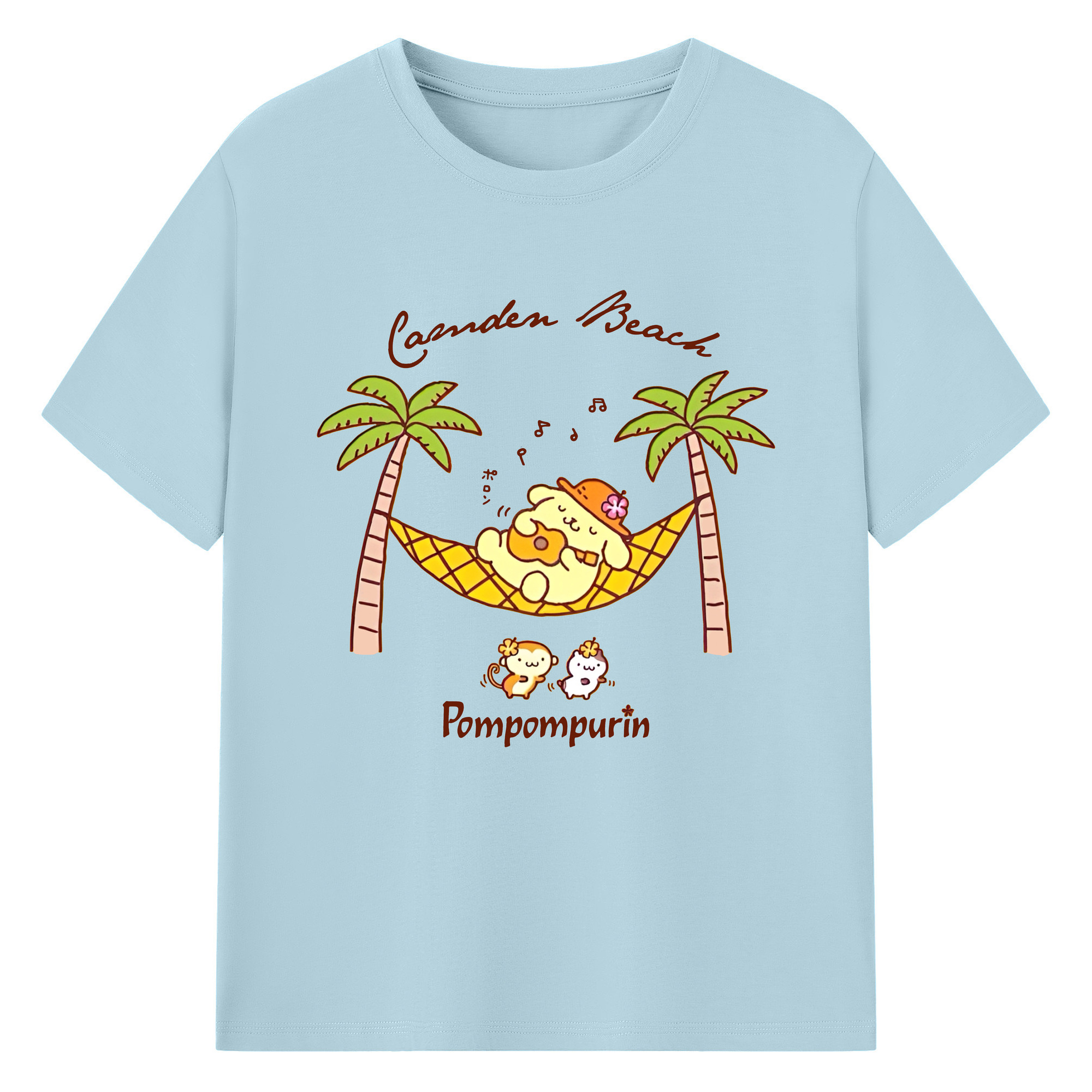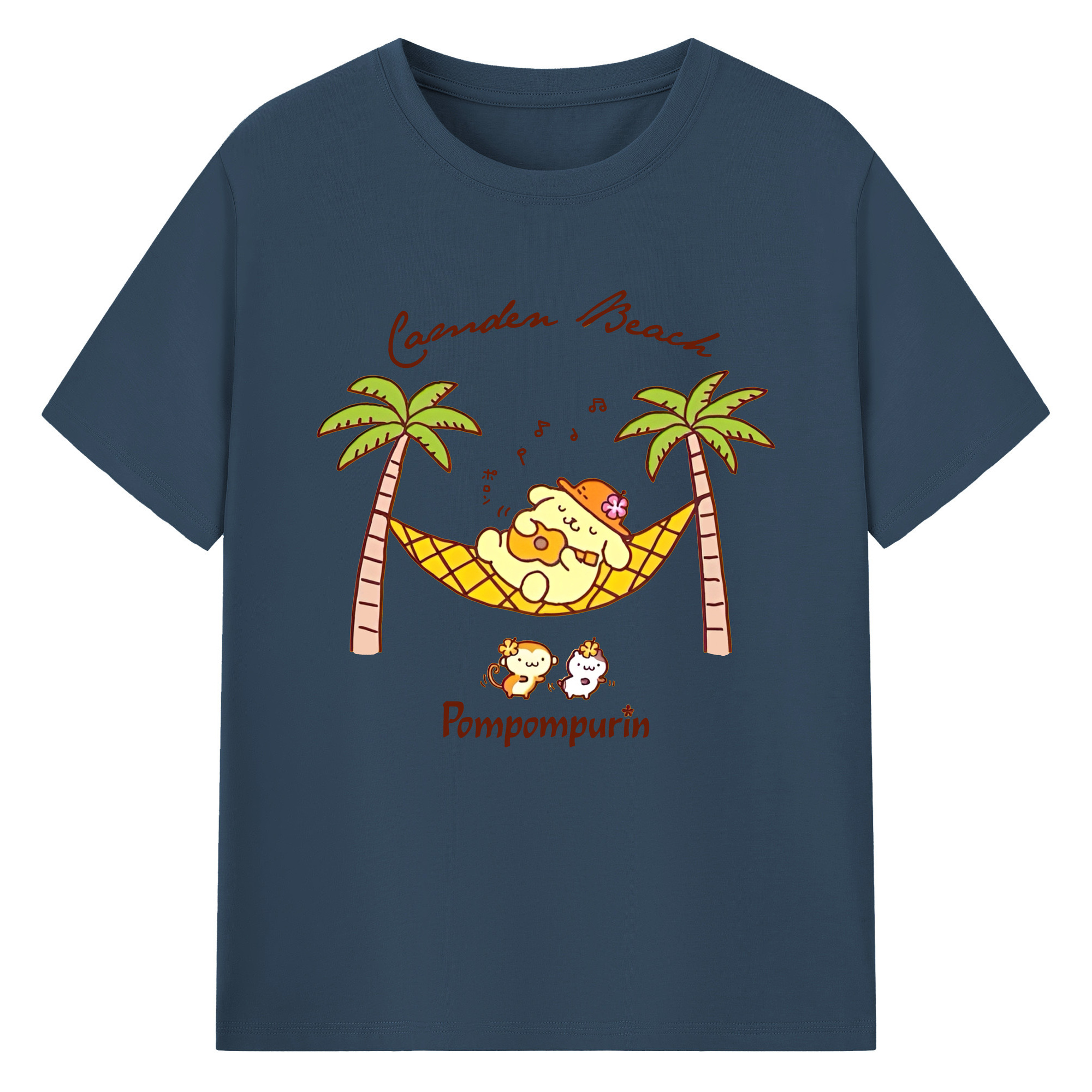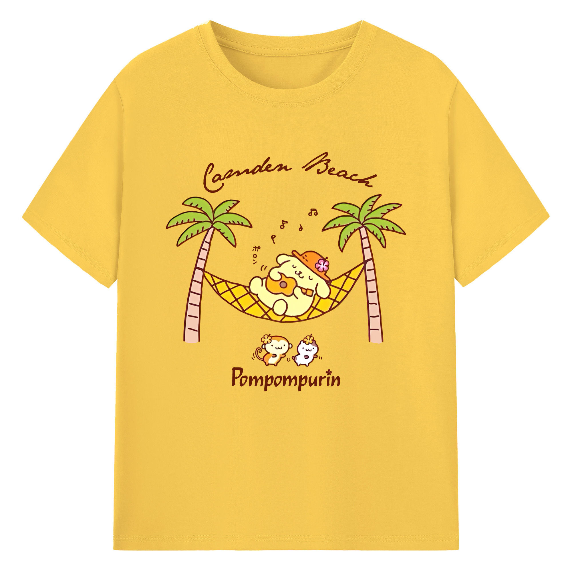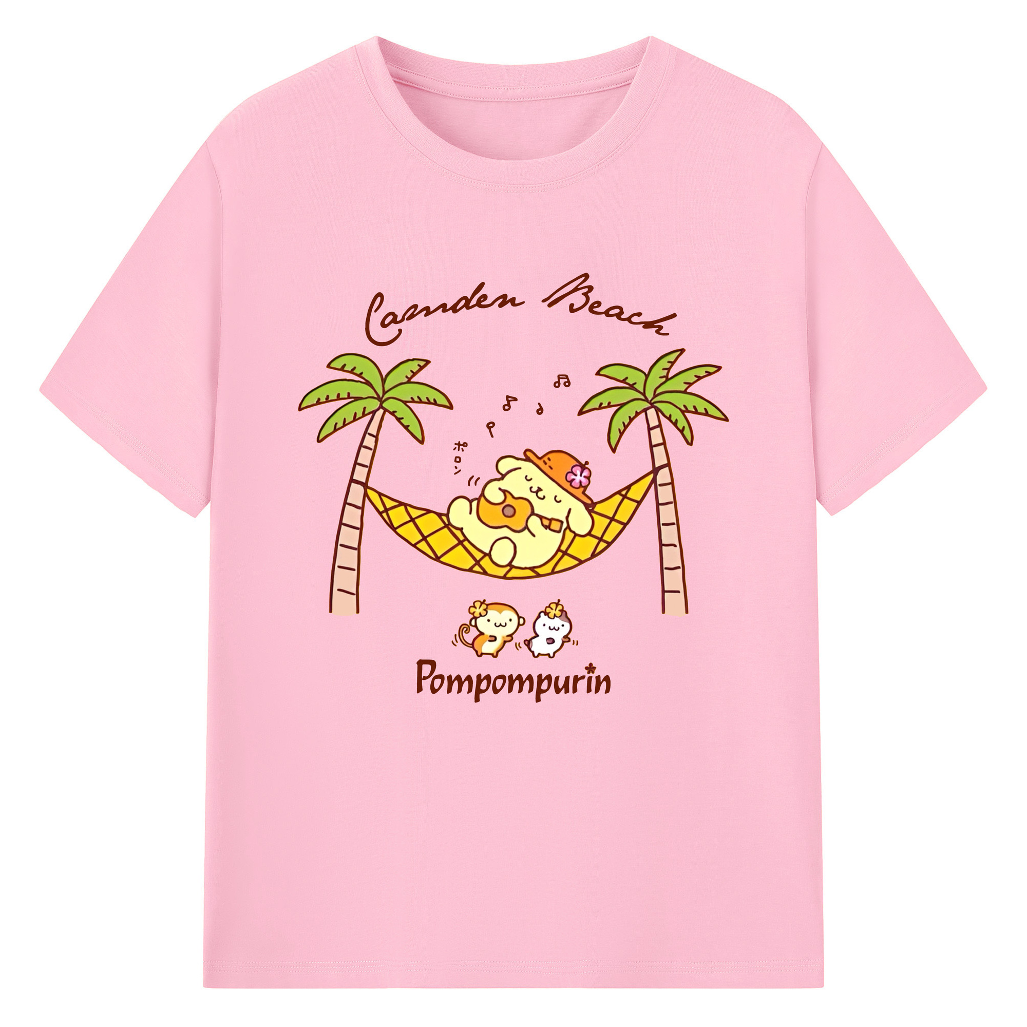 サマーポムポムプリン - 綿100% ヴィンテージ風 半袖Tシャツ ・ フロントプリント ・ 柔らか肌触り ・ 通気性 快適 ・ スポーツ カジュアル 外出用