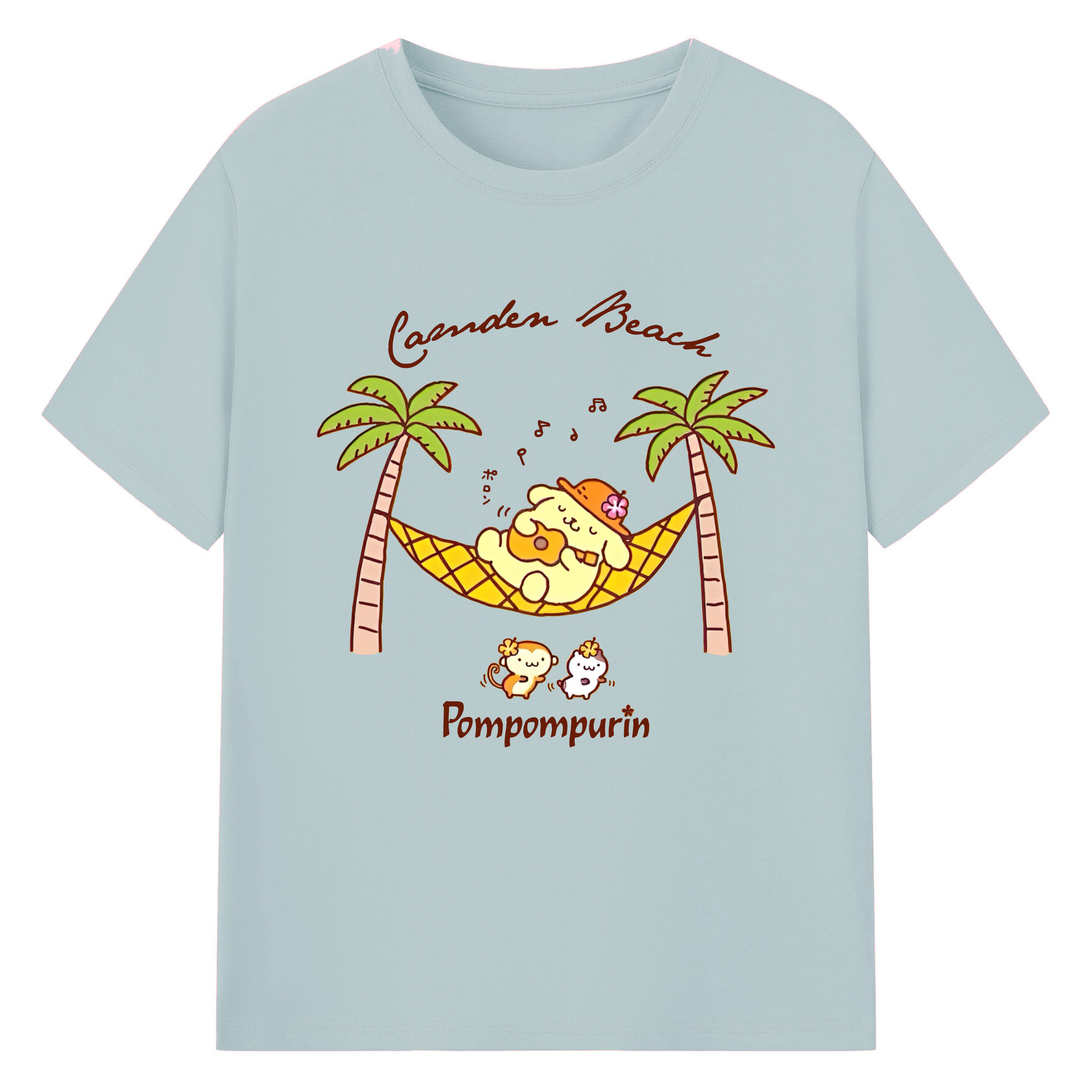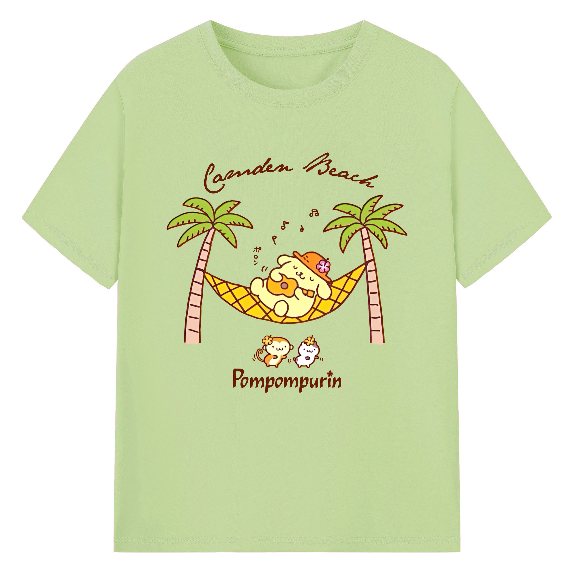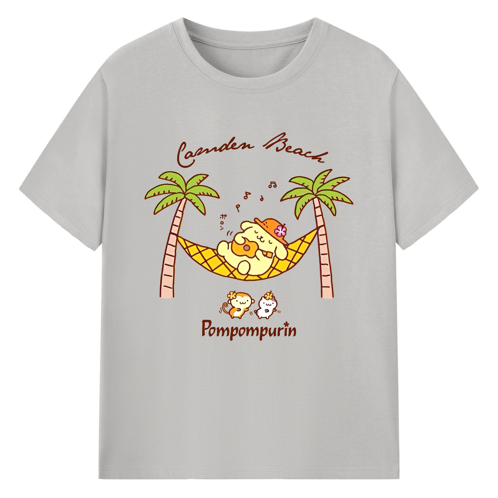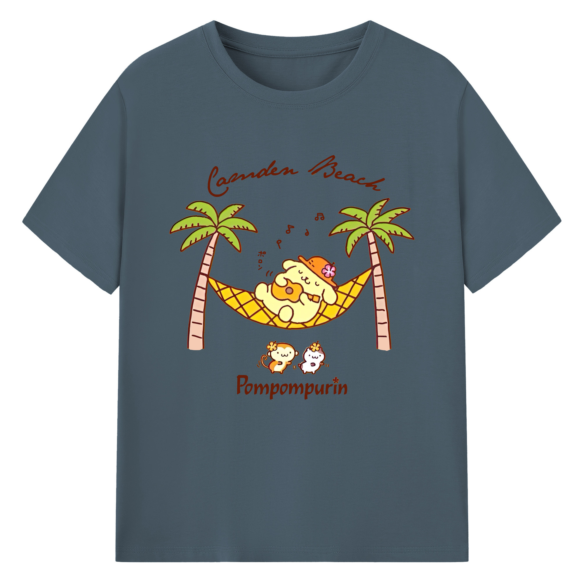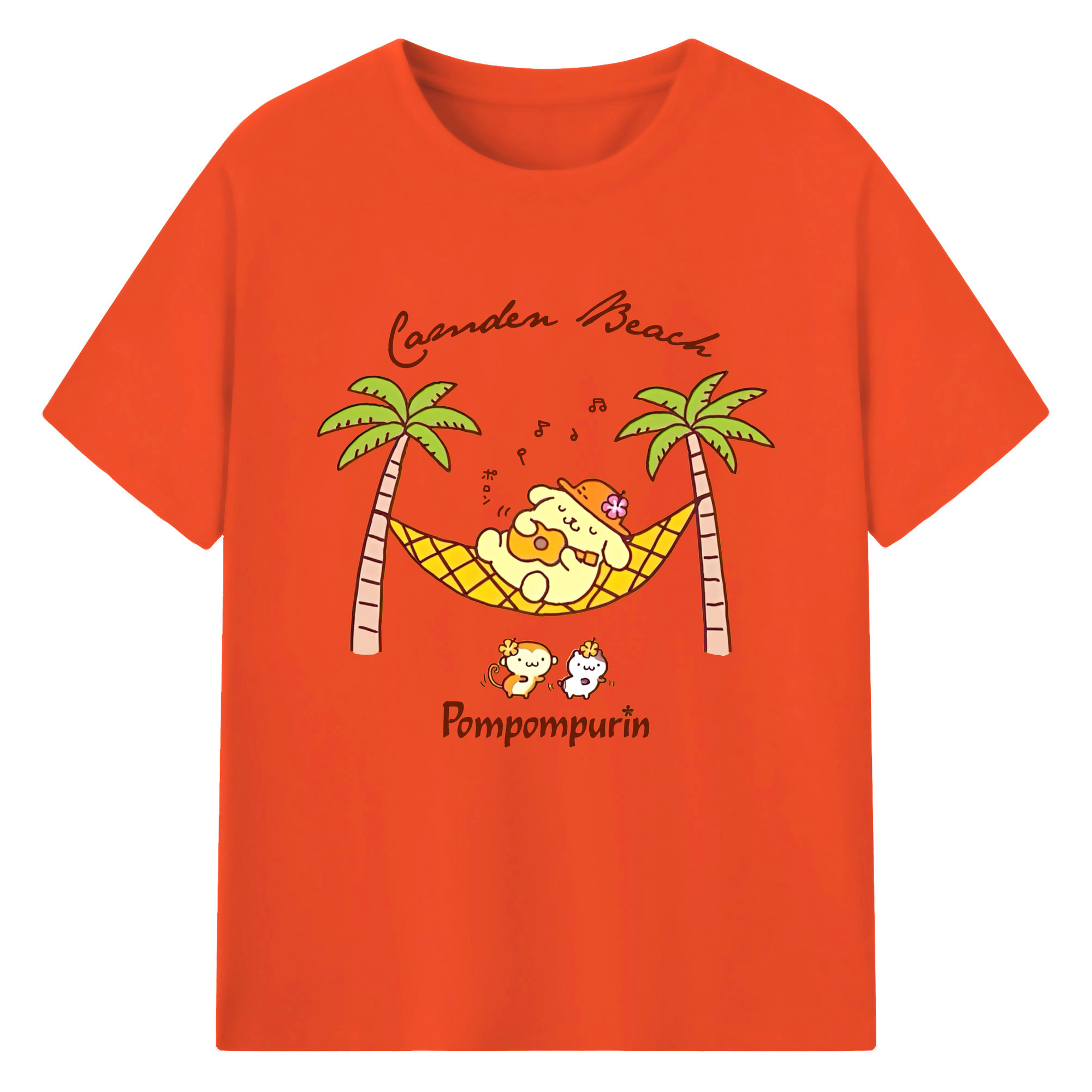 サマーポムポムプリン - 綿100% ヴィンテージ風 半袖Tシャツ ・ フロントプリント ・ 柔らか肌触り ・ 通気性 快適 ・ スポーツ カジュアル 外出用