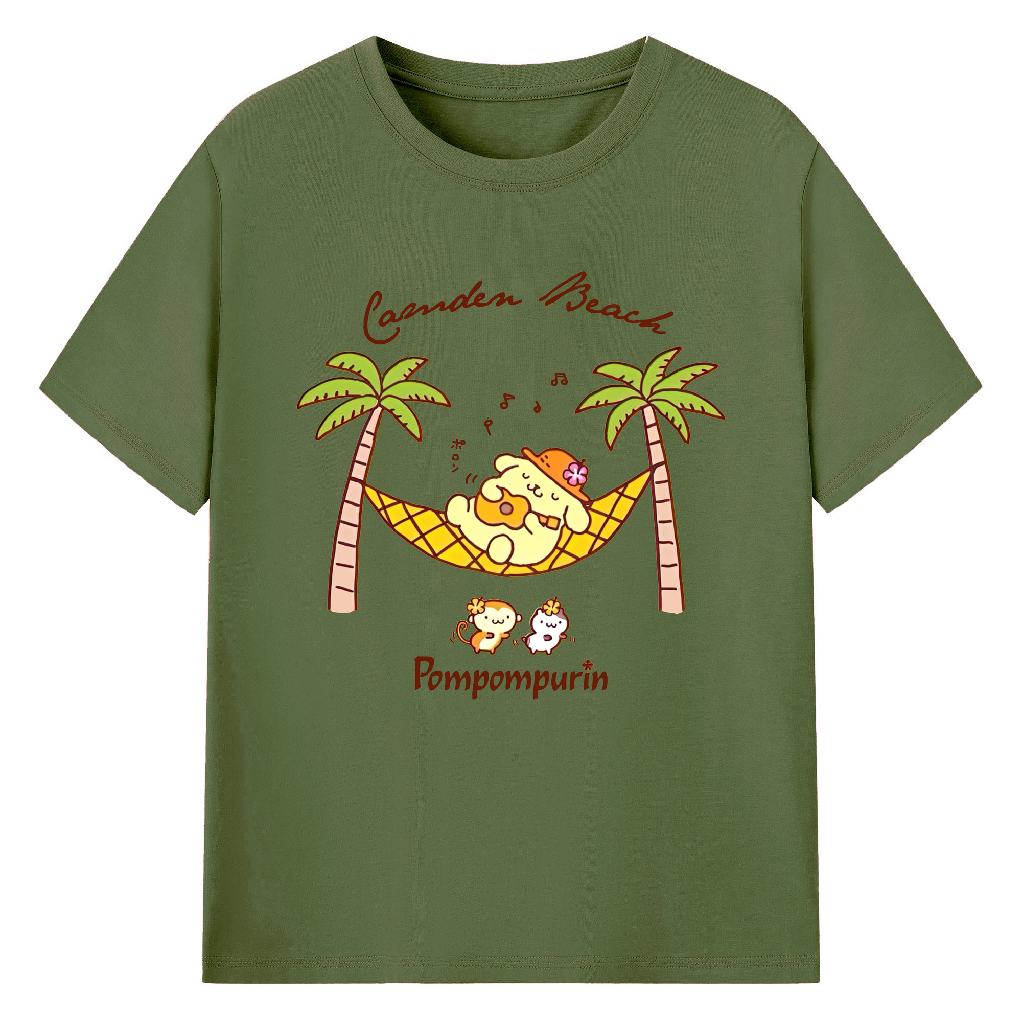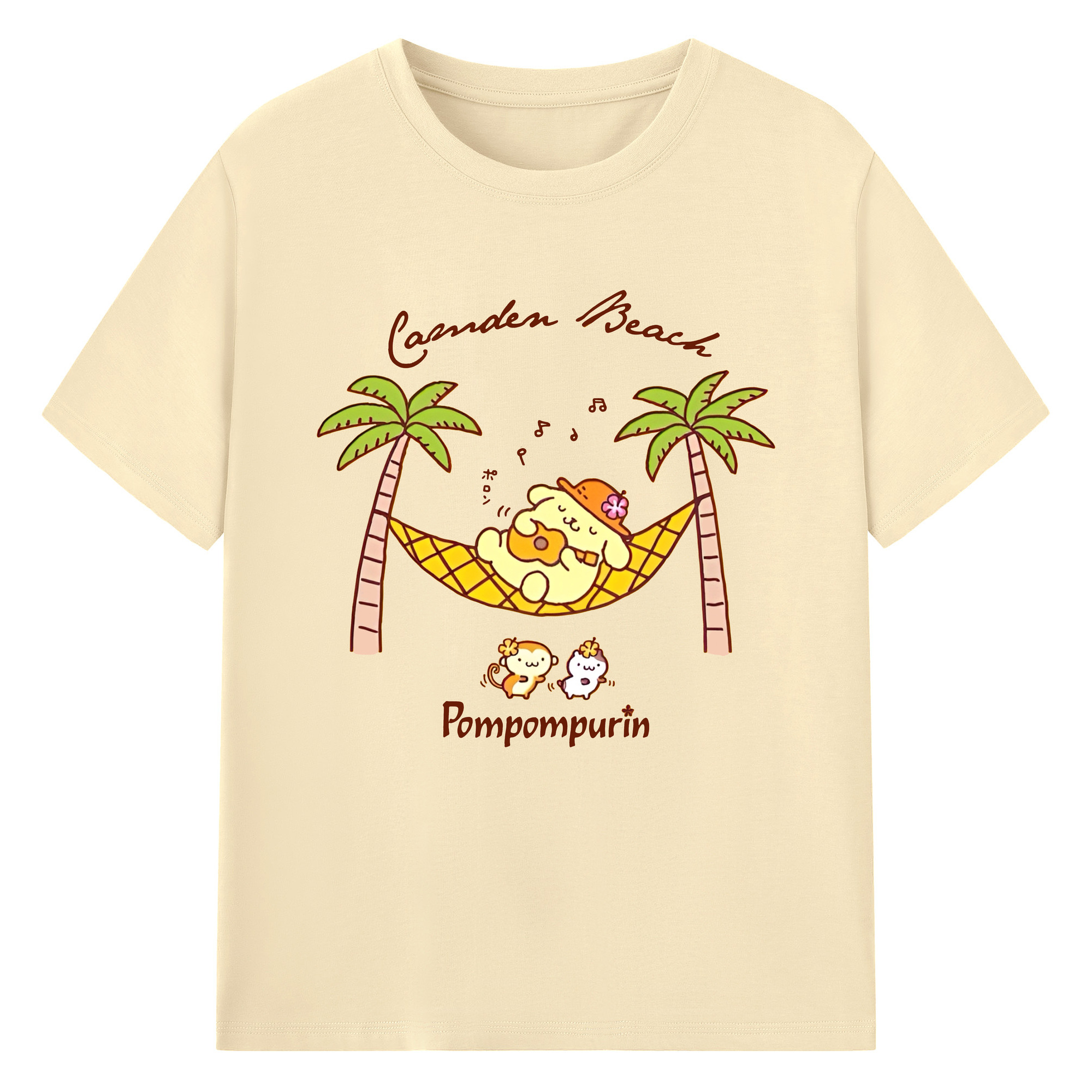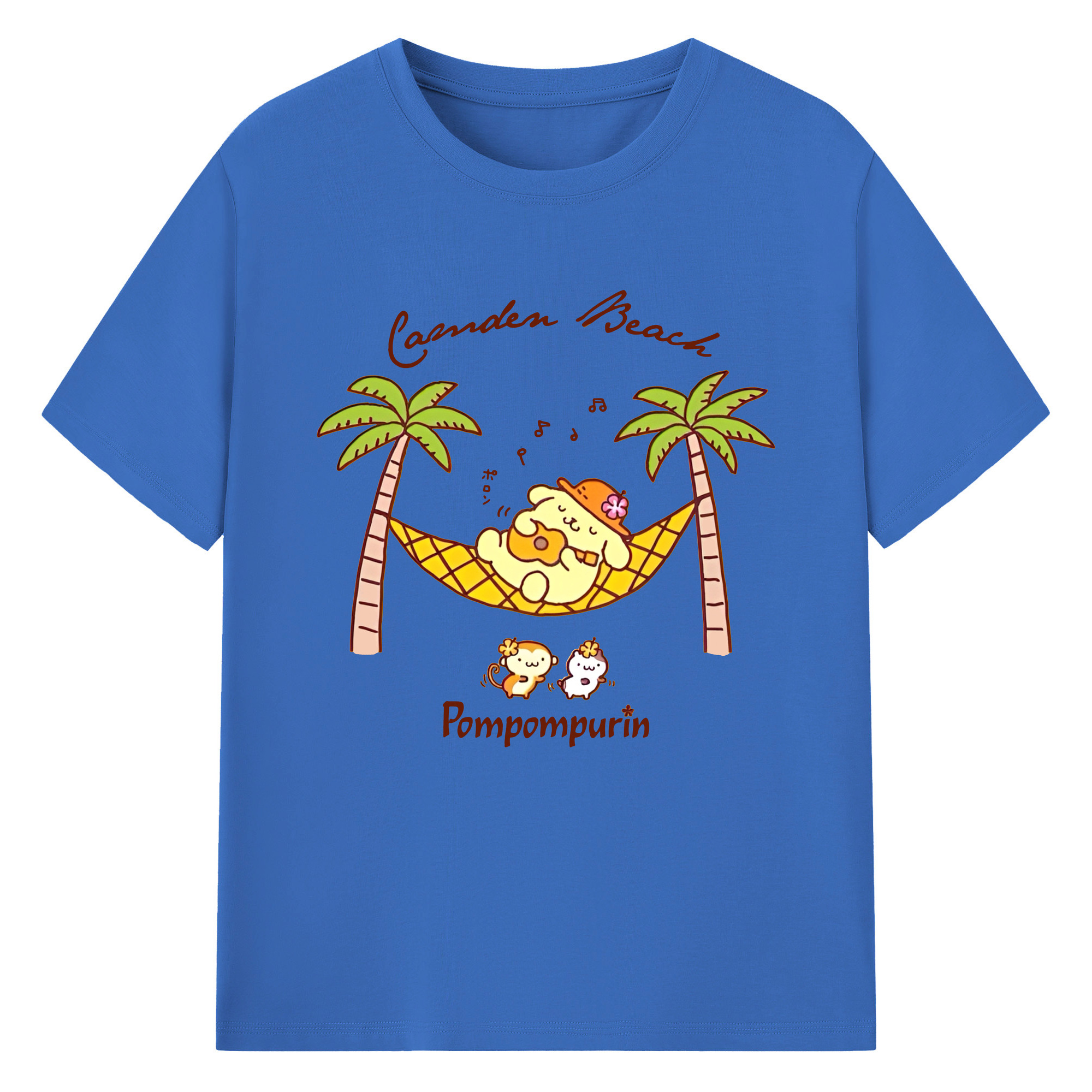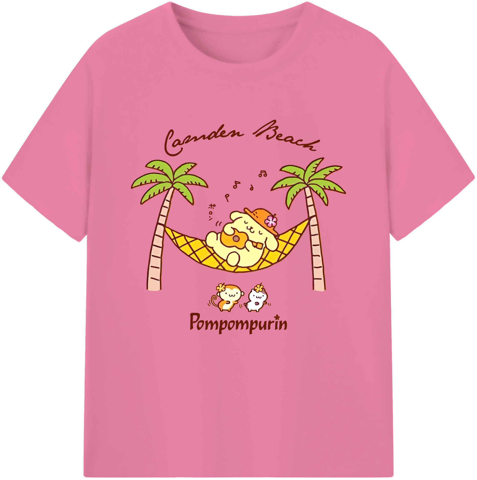 サマーポムポムプリン - 綿100% ヴィンテージ風 半袖Tシャツ ・ フロントプリント ・ 柔らか肌触り ・ 通気性 快適 ・ スポーツ カジュアル 外出用