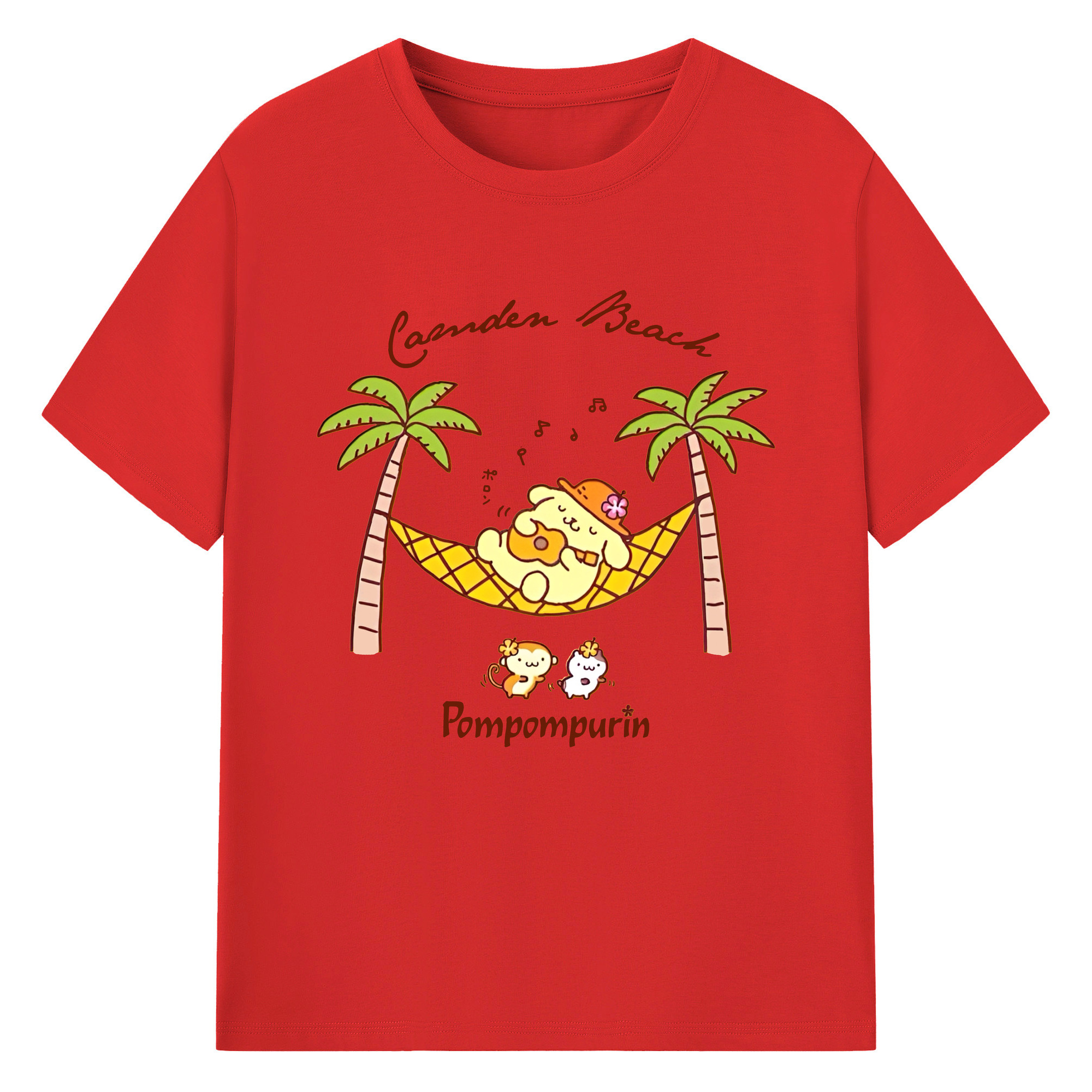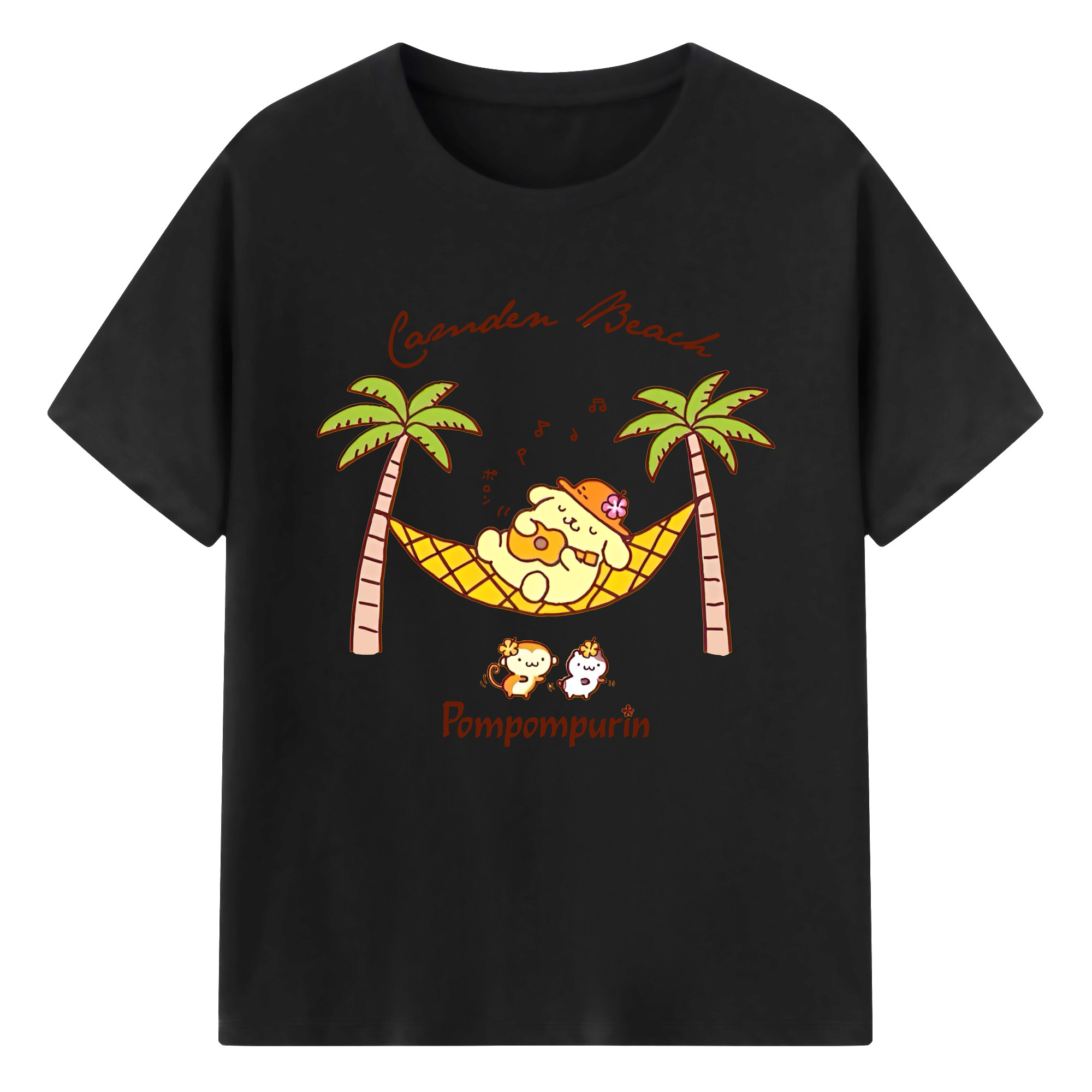 ユニークなデザインのポムポムプリン - 綿100% 半袖Tシャツ ・ フロントプリント ・ 快適 通気性 ・ 日常使い 散歩 スポーツ用