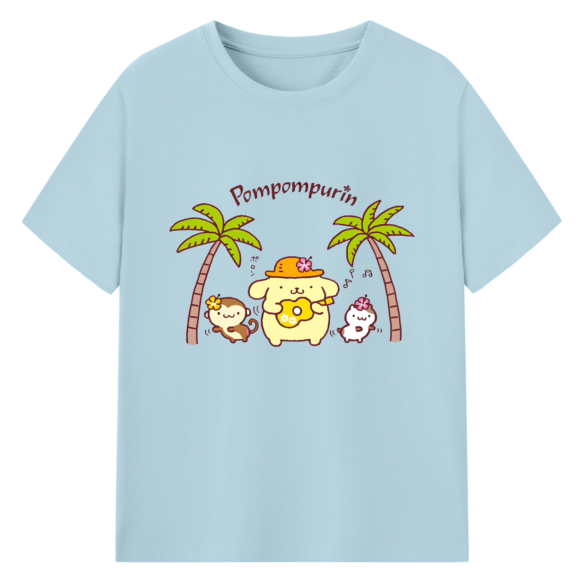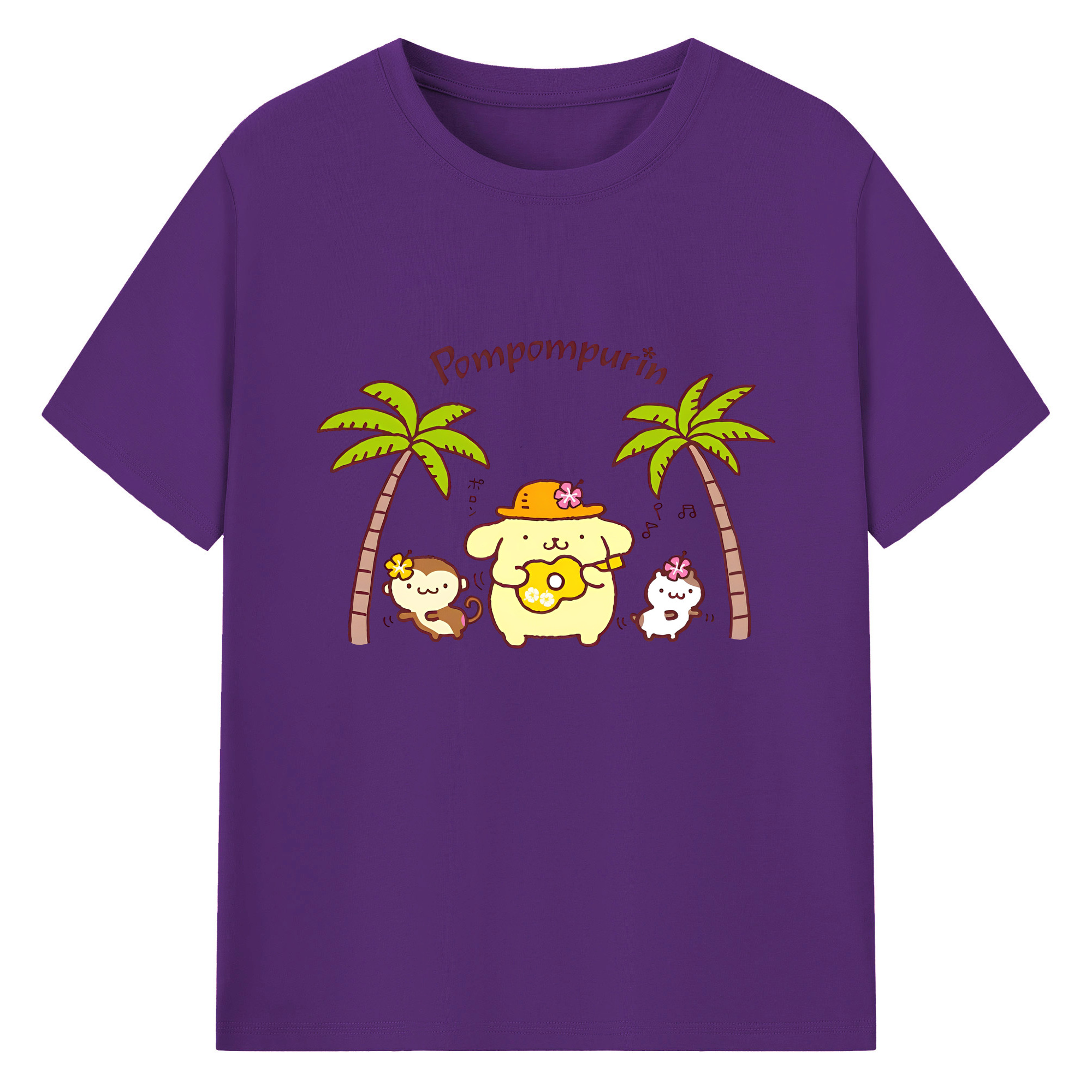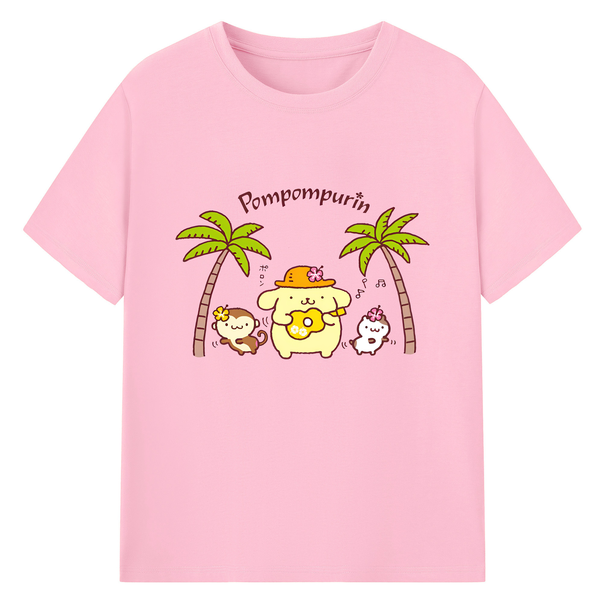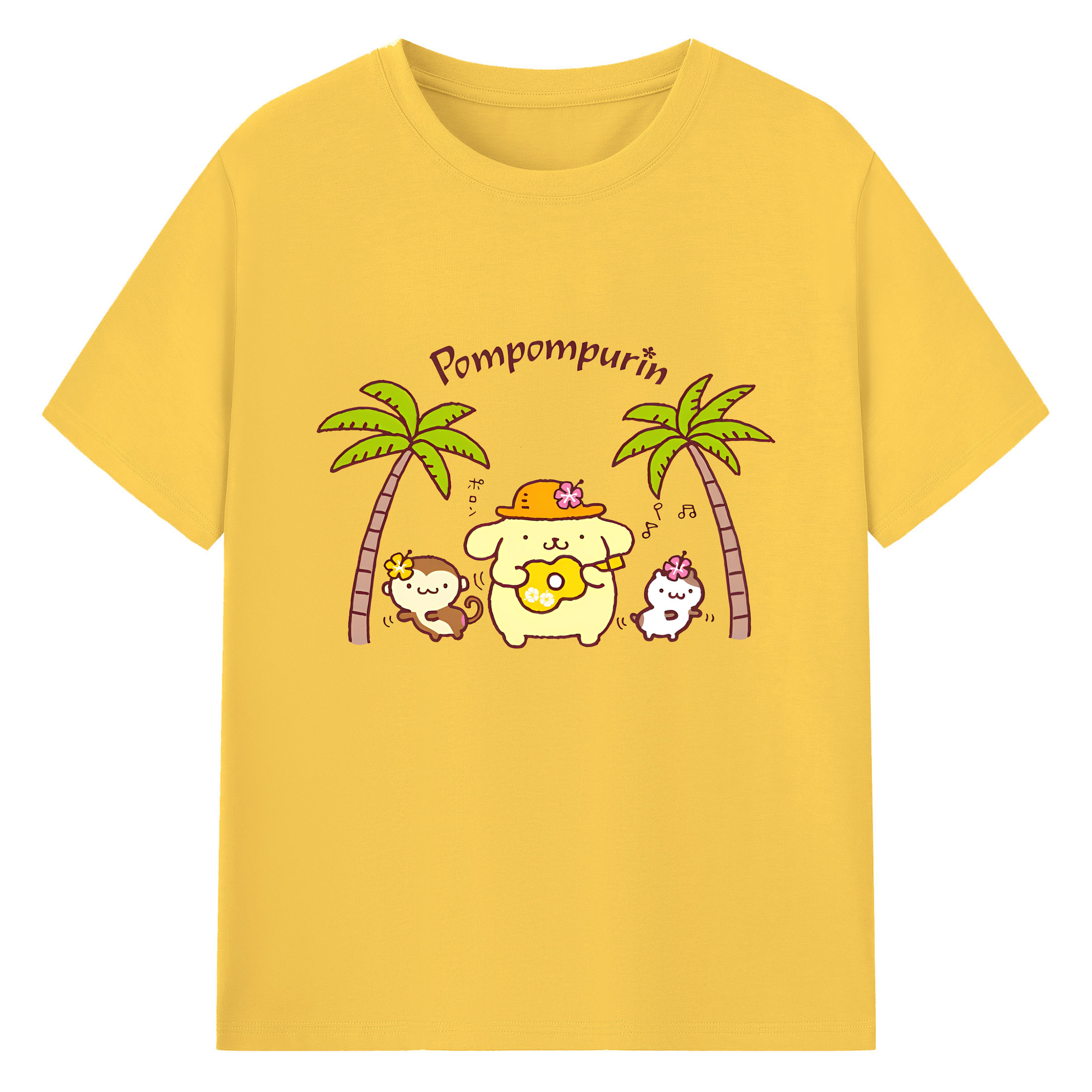 サマーポムポムプリン - 綿100% 半袖Tシャツ ・ フロントプリント ・ 快適 通気性 ・ 日常使い 散歩 スポーツ用