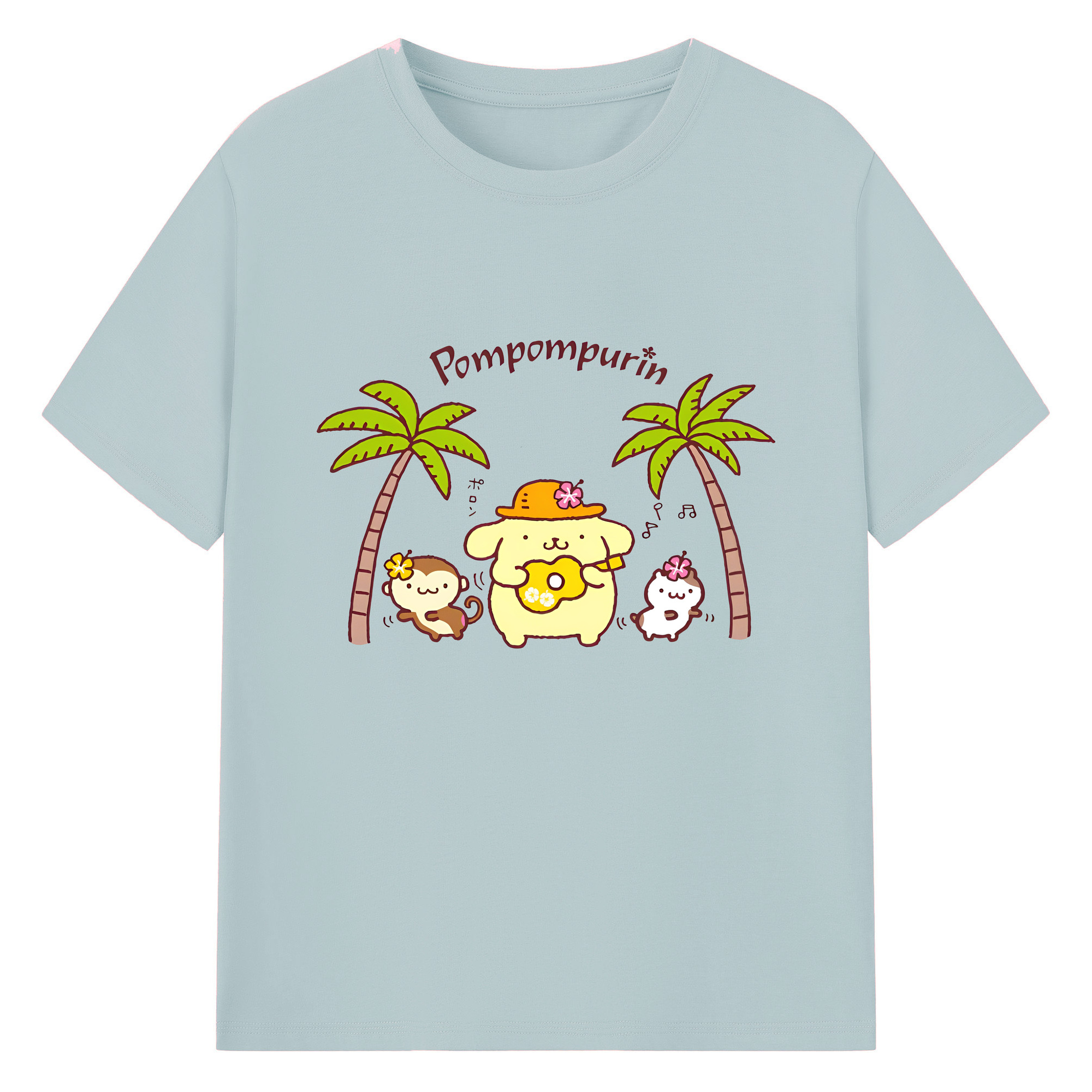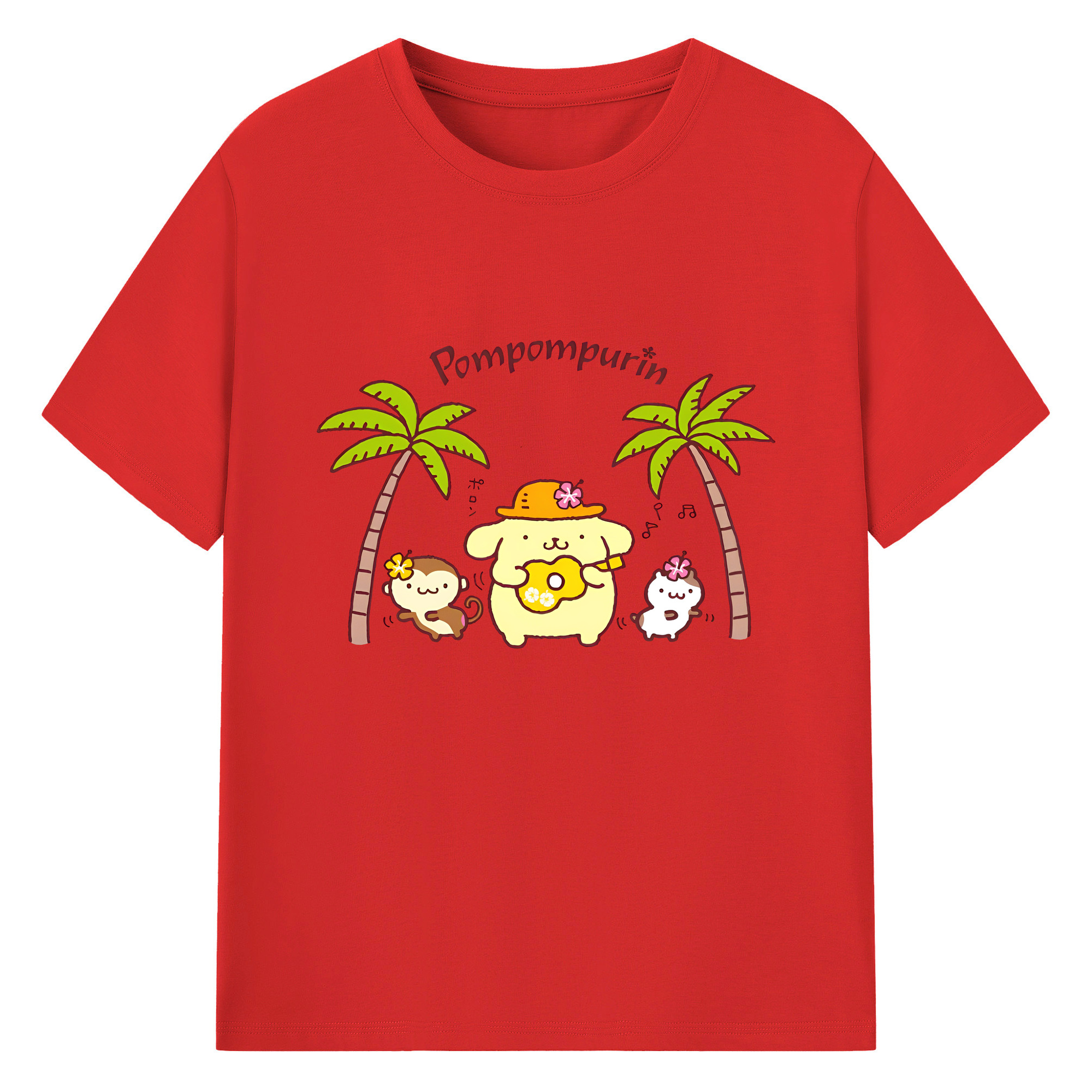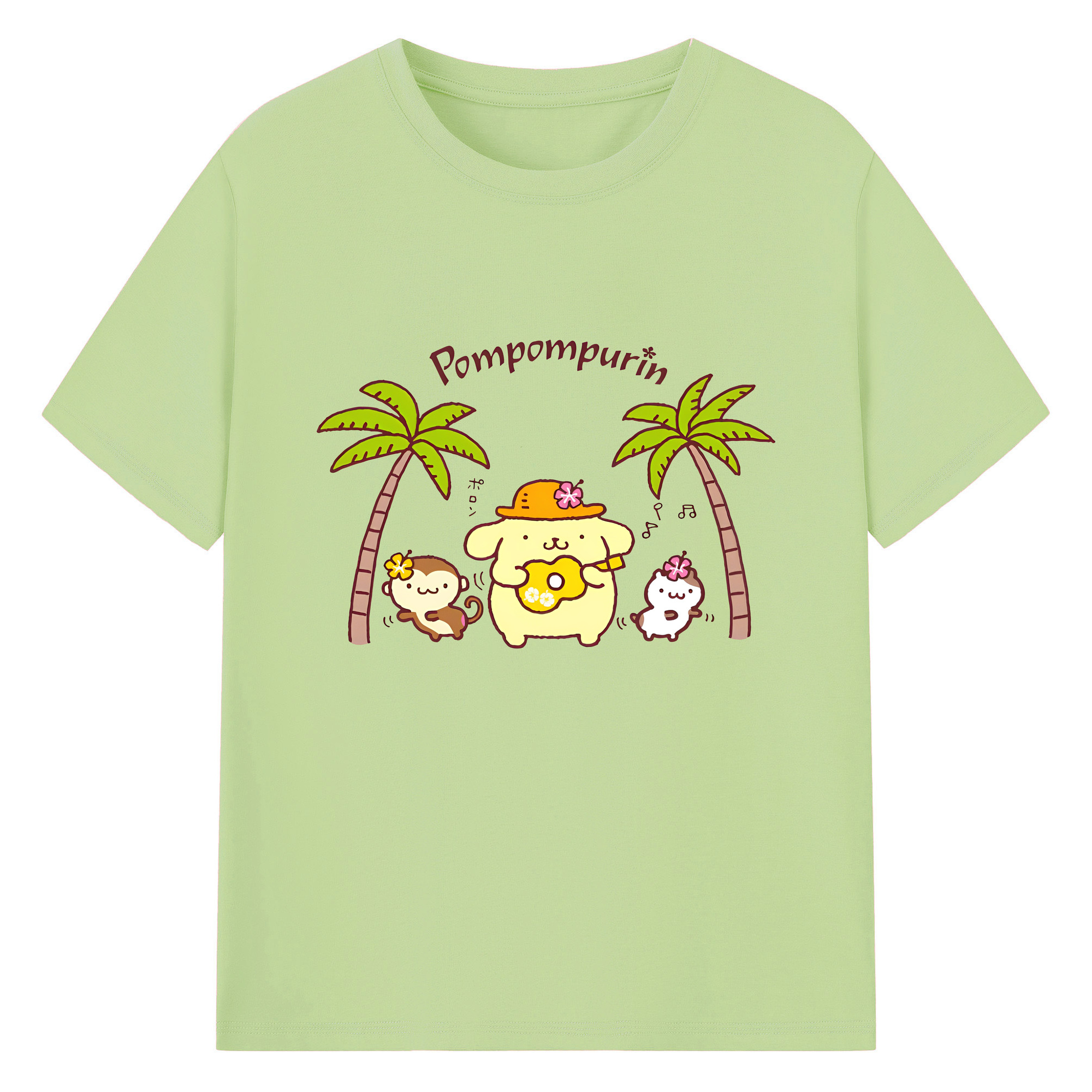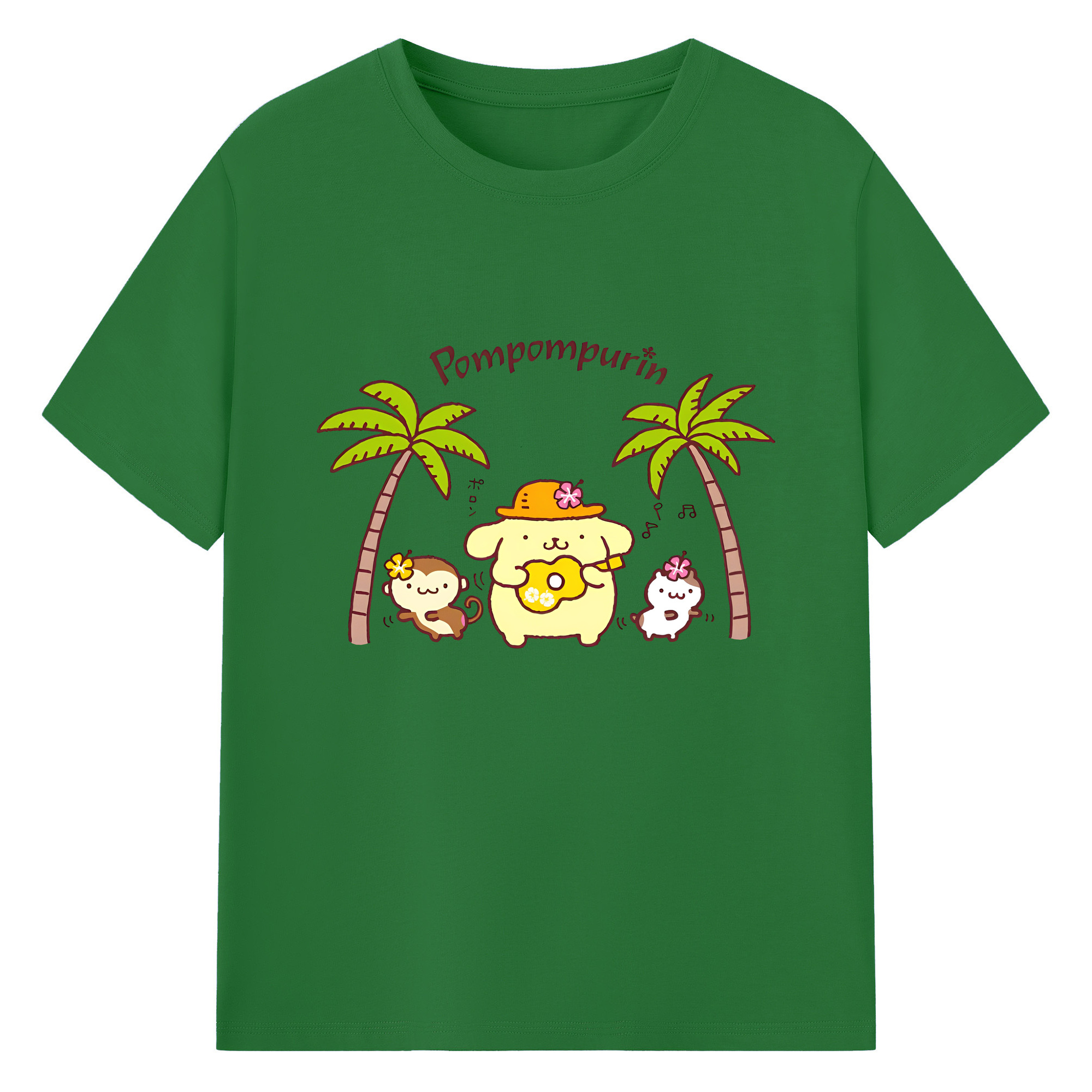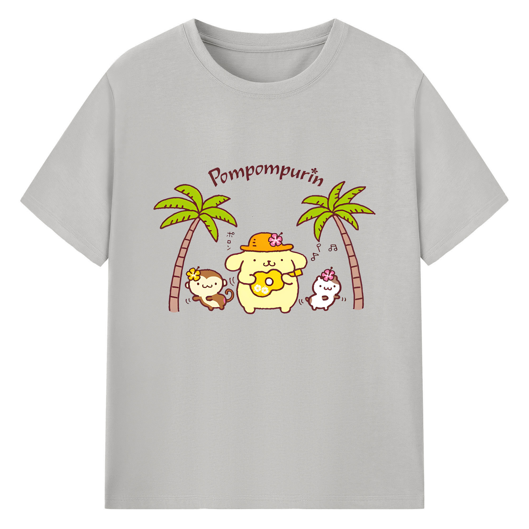 サマーポムポムプリン - 綿100% 半袖Tシャツ ・ フロントプリント ・ 快適 通気性 ・ 日常使い 散歩 スポーツ用