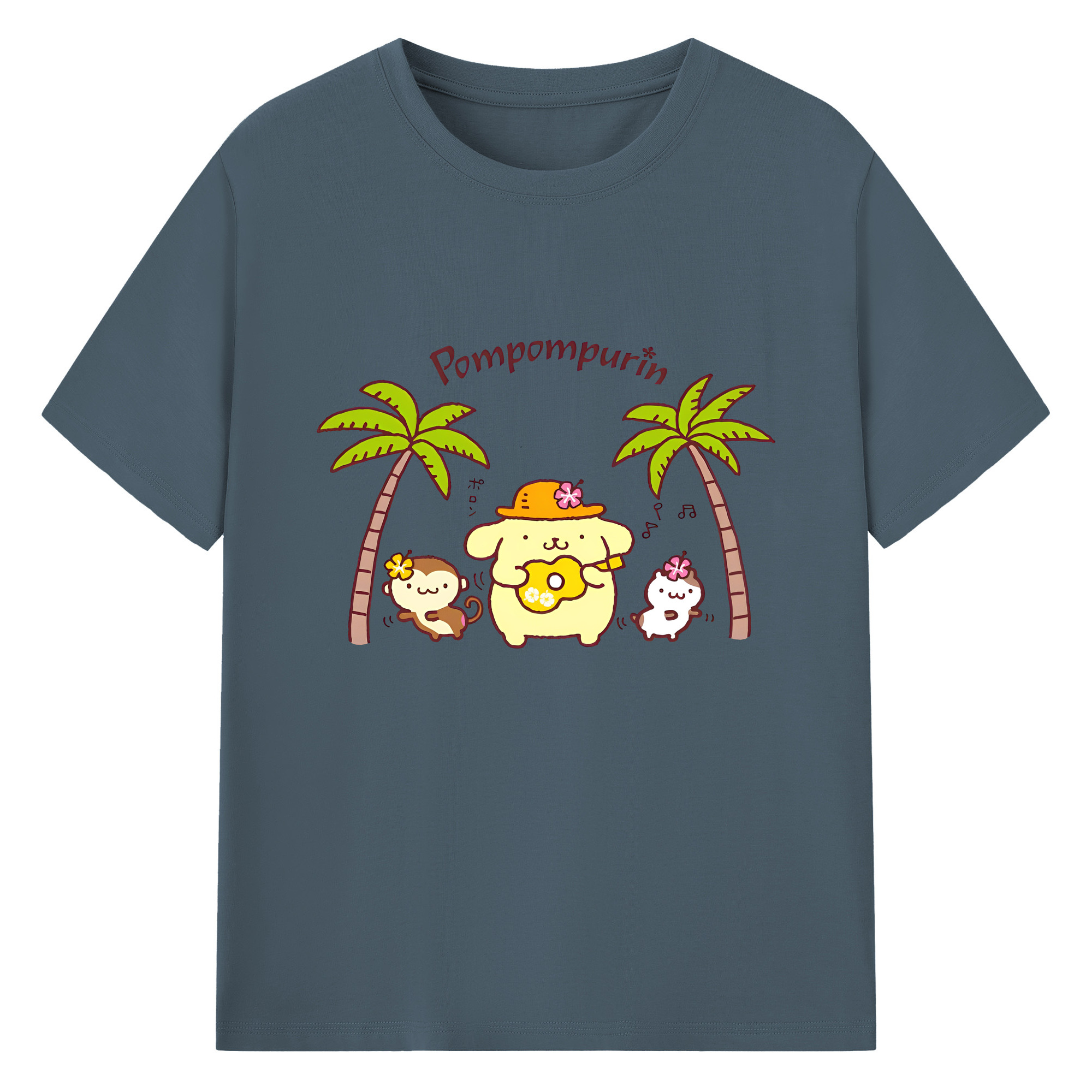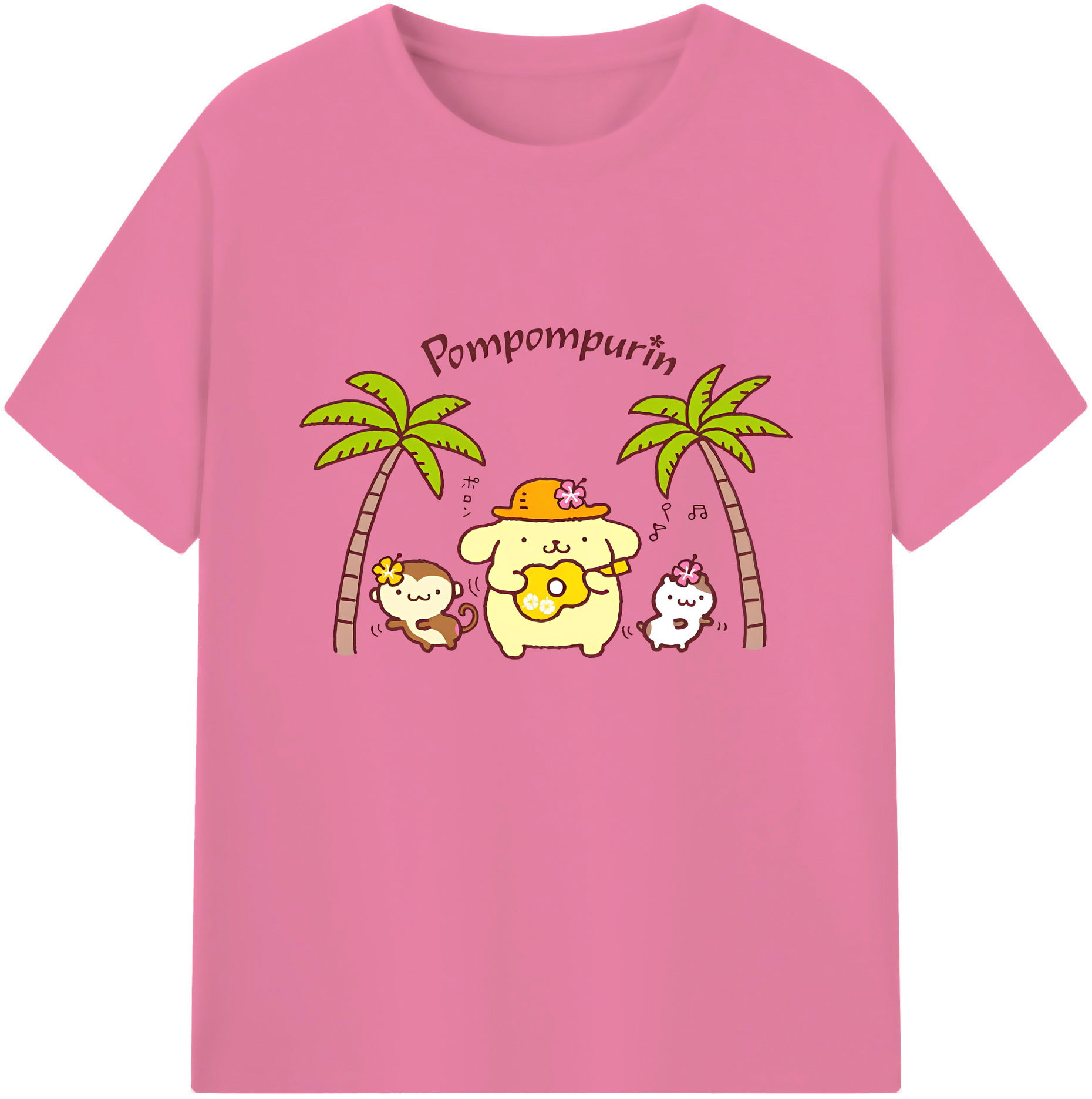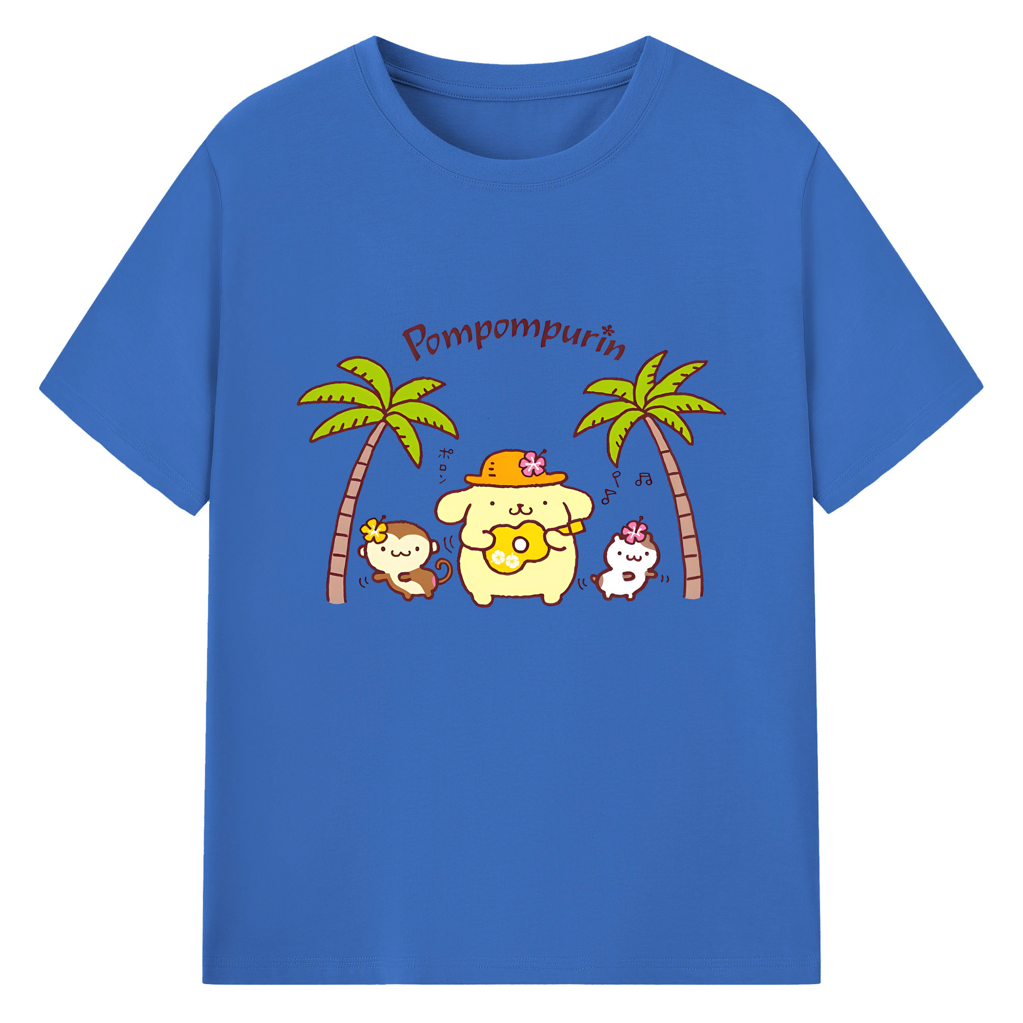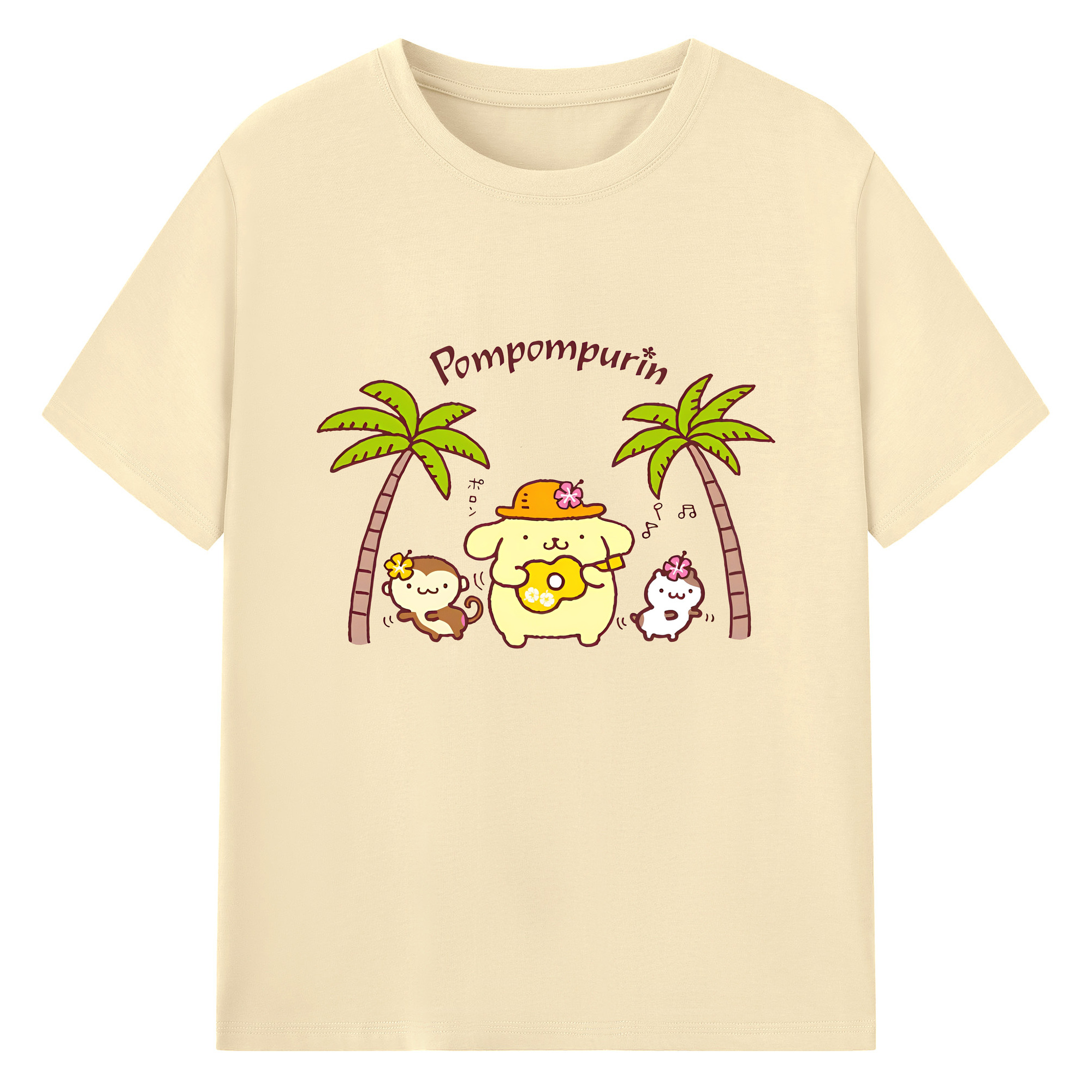 サマーポムポムプリン - 綿100% 半袖Tシャツ ・ フロントプリント ・ 快適 通気性 ・ 日常使い 散歩 スポーツ用