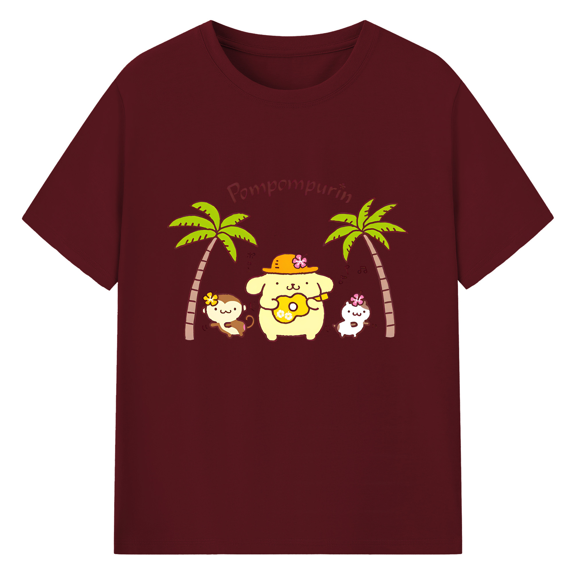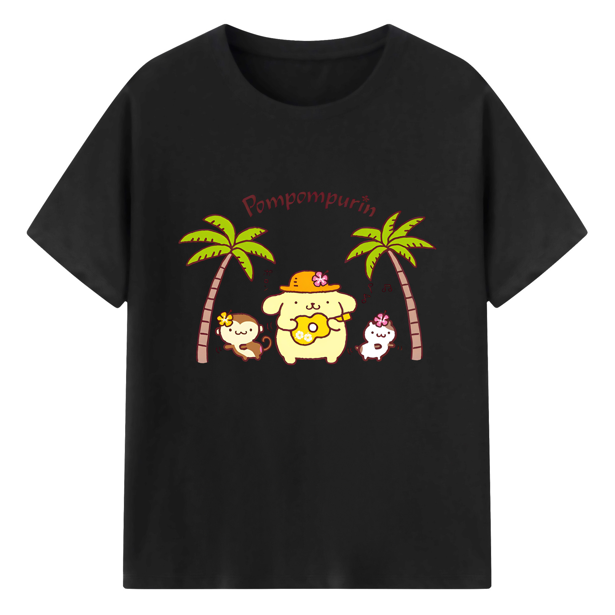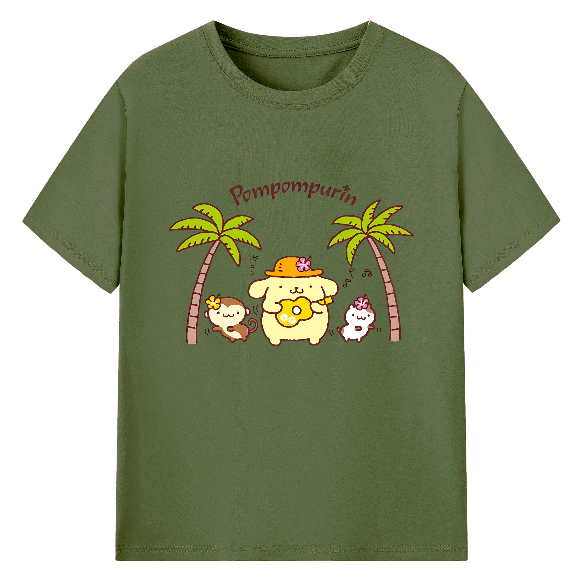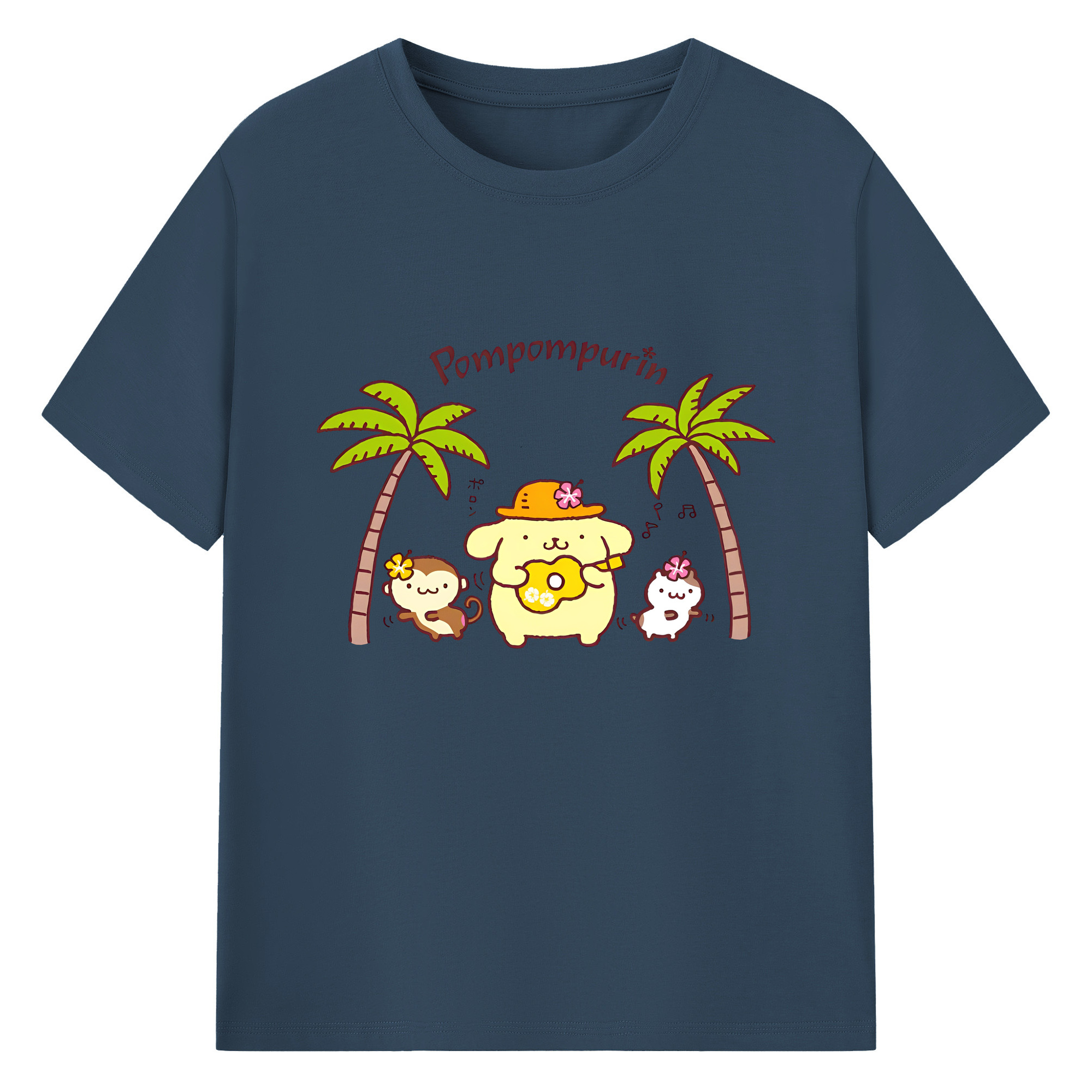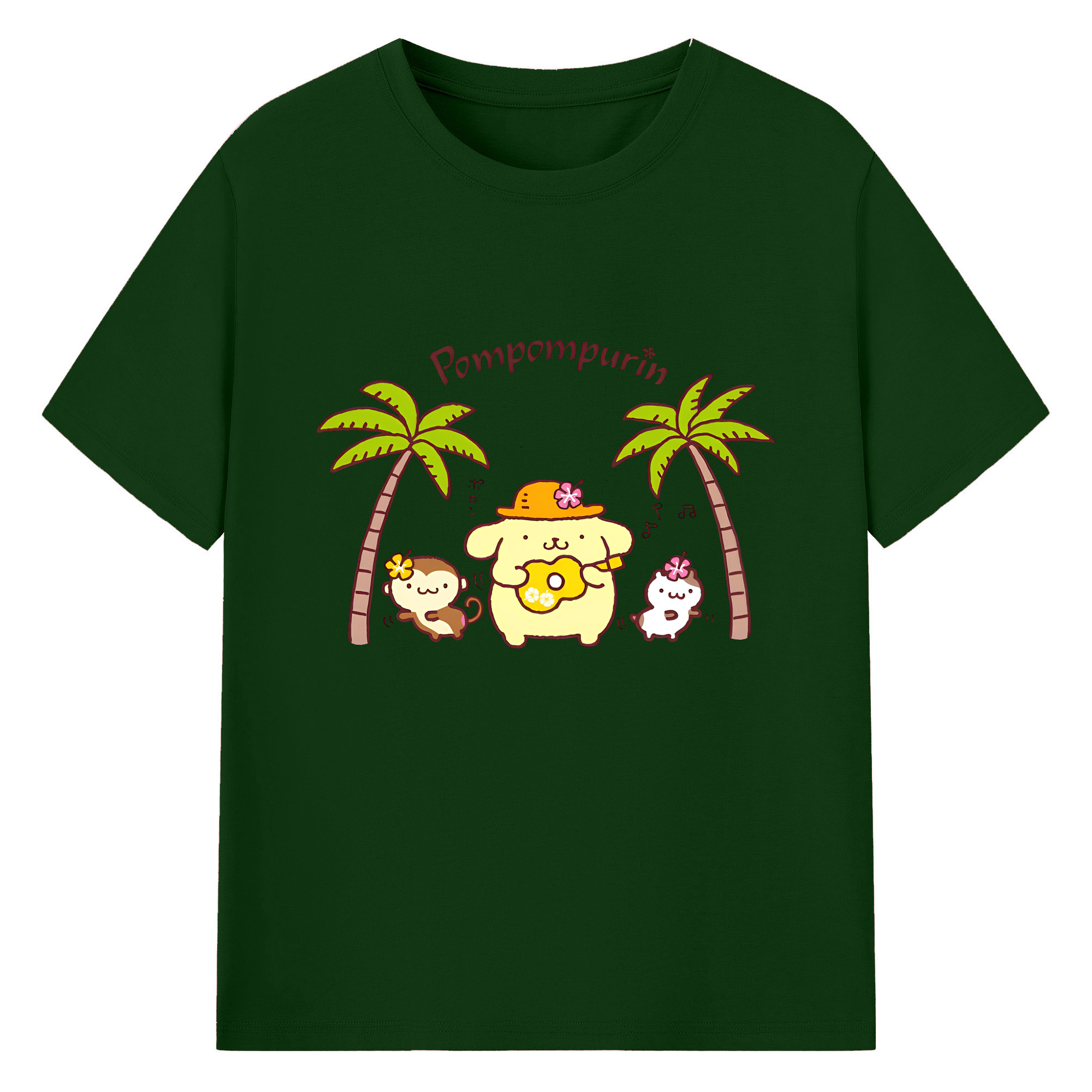 サマーポムポムプリン - 綿100% 半袖Tシャツ ・ フロントプリント ・ 快適 通気性 ・ 日常使い 散歩 スポーツ用