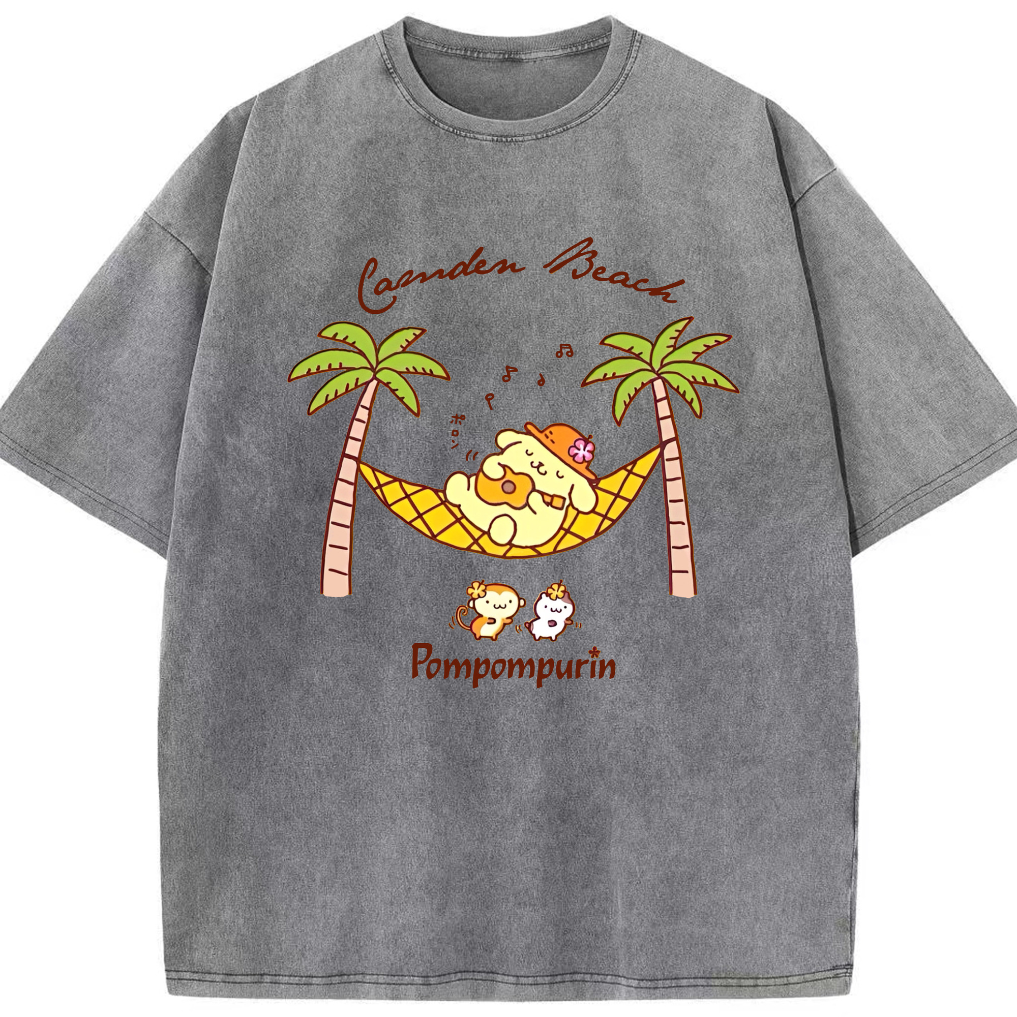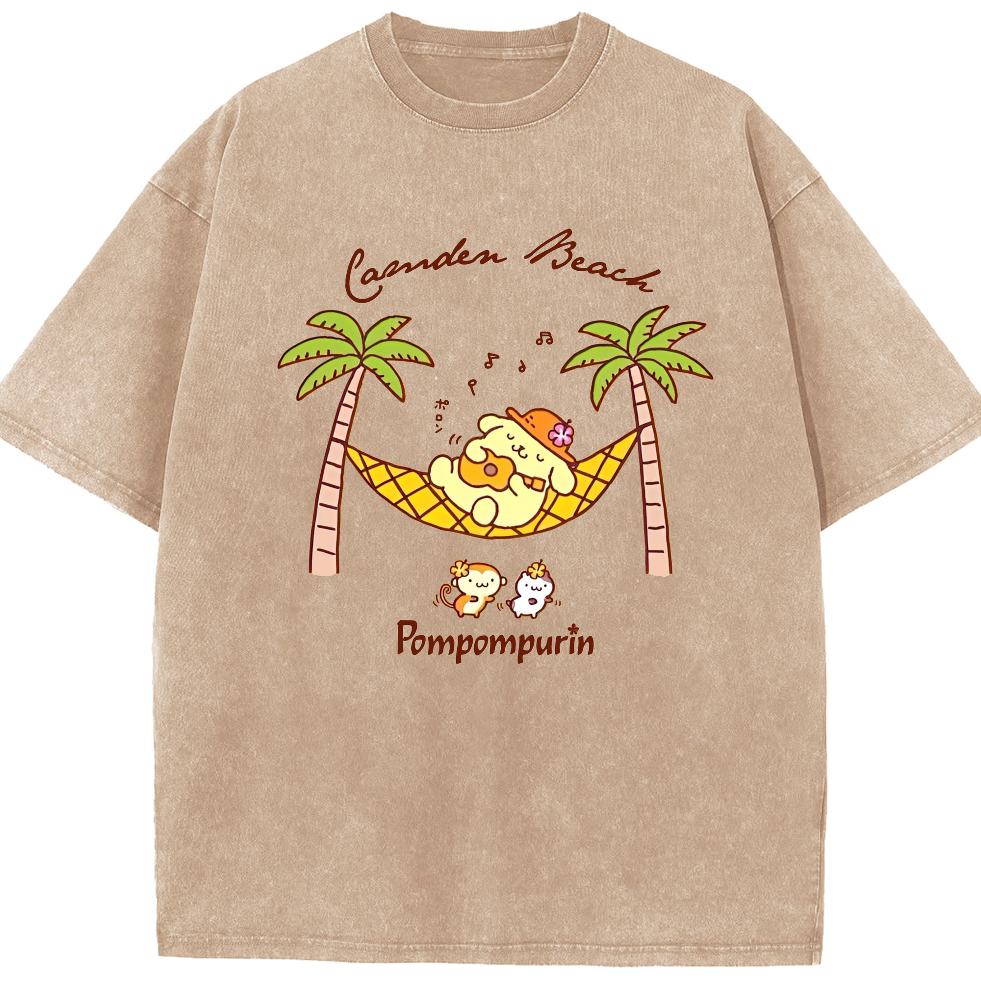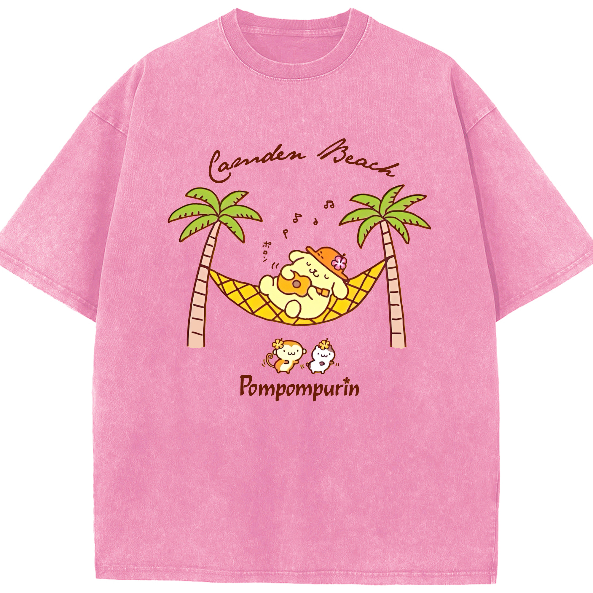 サンリオポムポムプリン - 綿100% ヴィンテージ風 半袖Tシャツ ・ フロントプリント ・ 柔らか肌触り ・ 通気性 快適 ・ スポーツ カジュアル 外出用