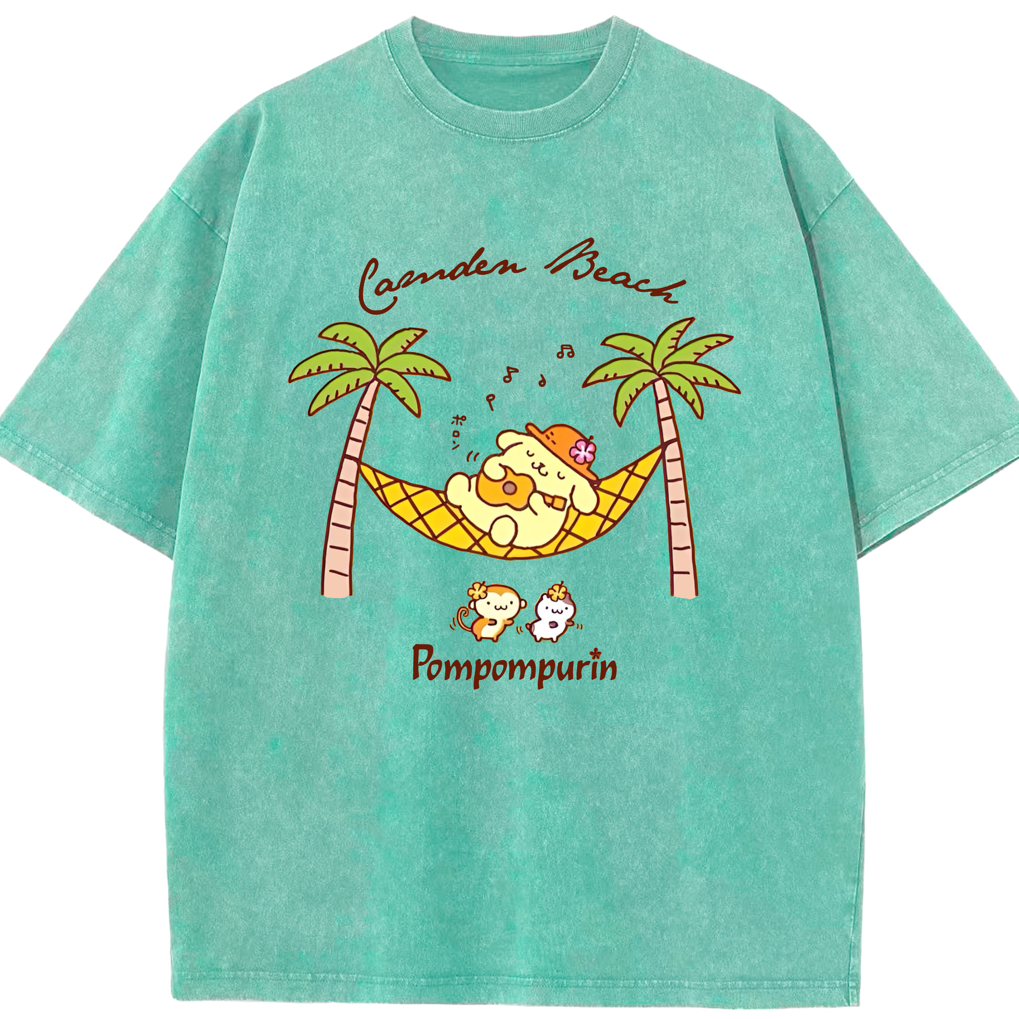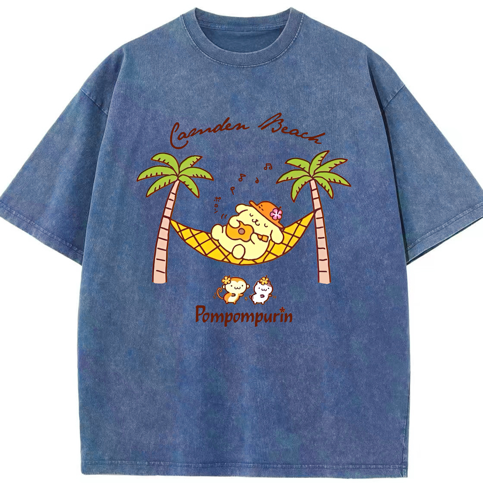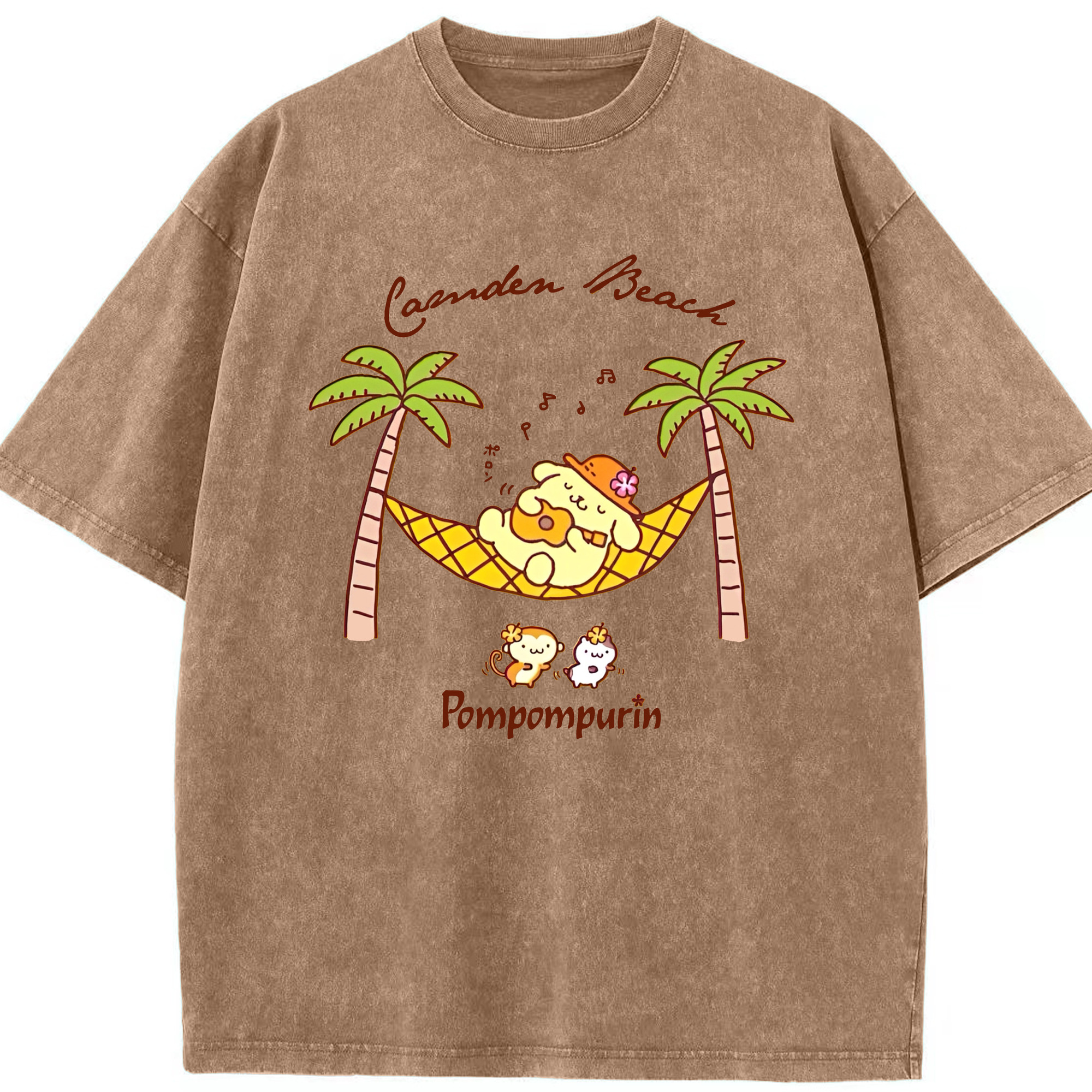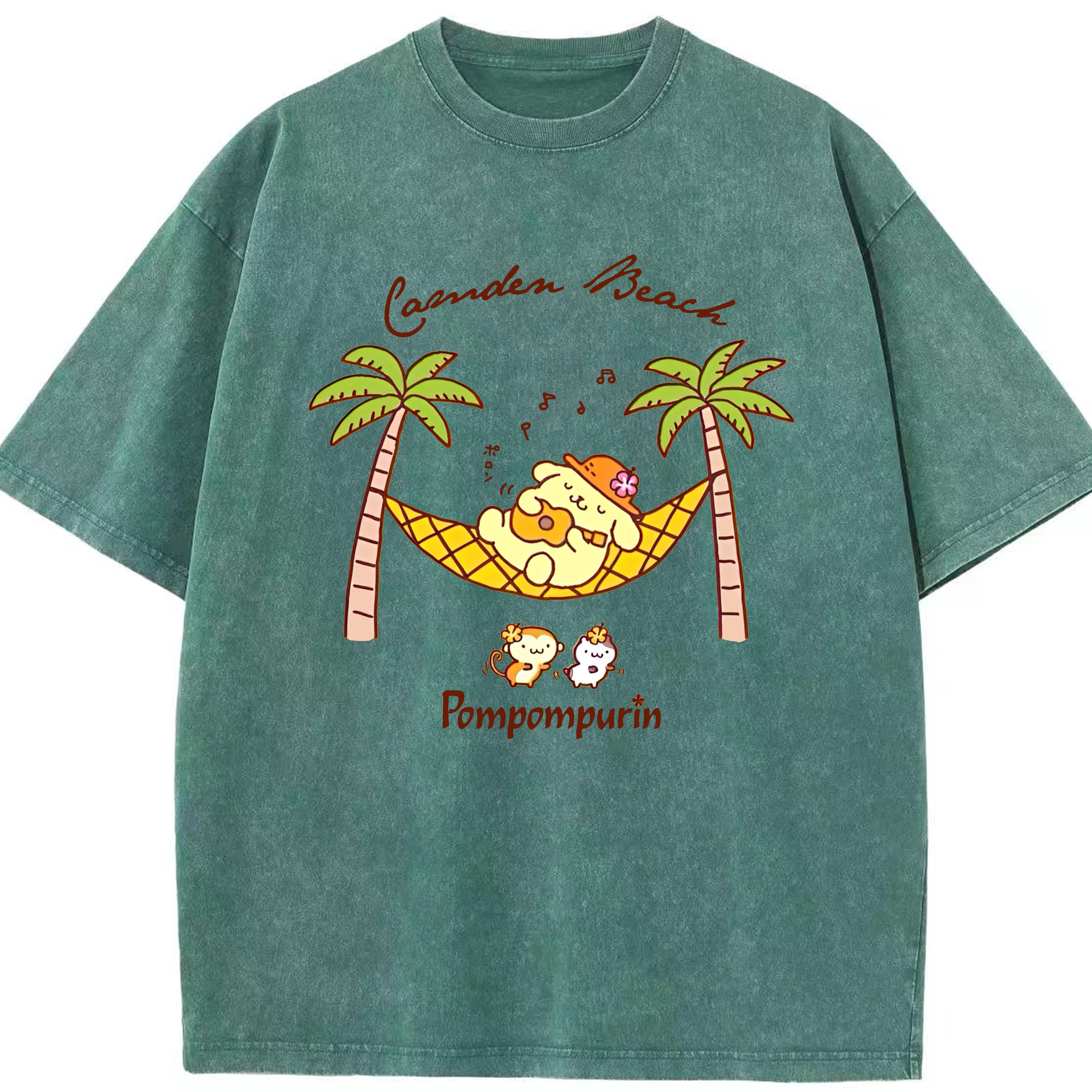 サンリオポムポムプリン - 綿100% ヴィンテージ風 半袖Tシャツ ・ フロントプリント ・ 柔らか肌触り ・ 通気性 快適 ・ スポーツ カジュアル 外出用