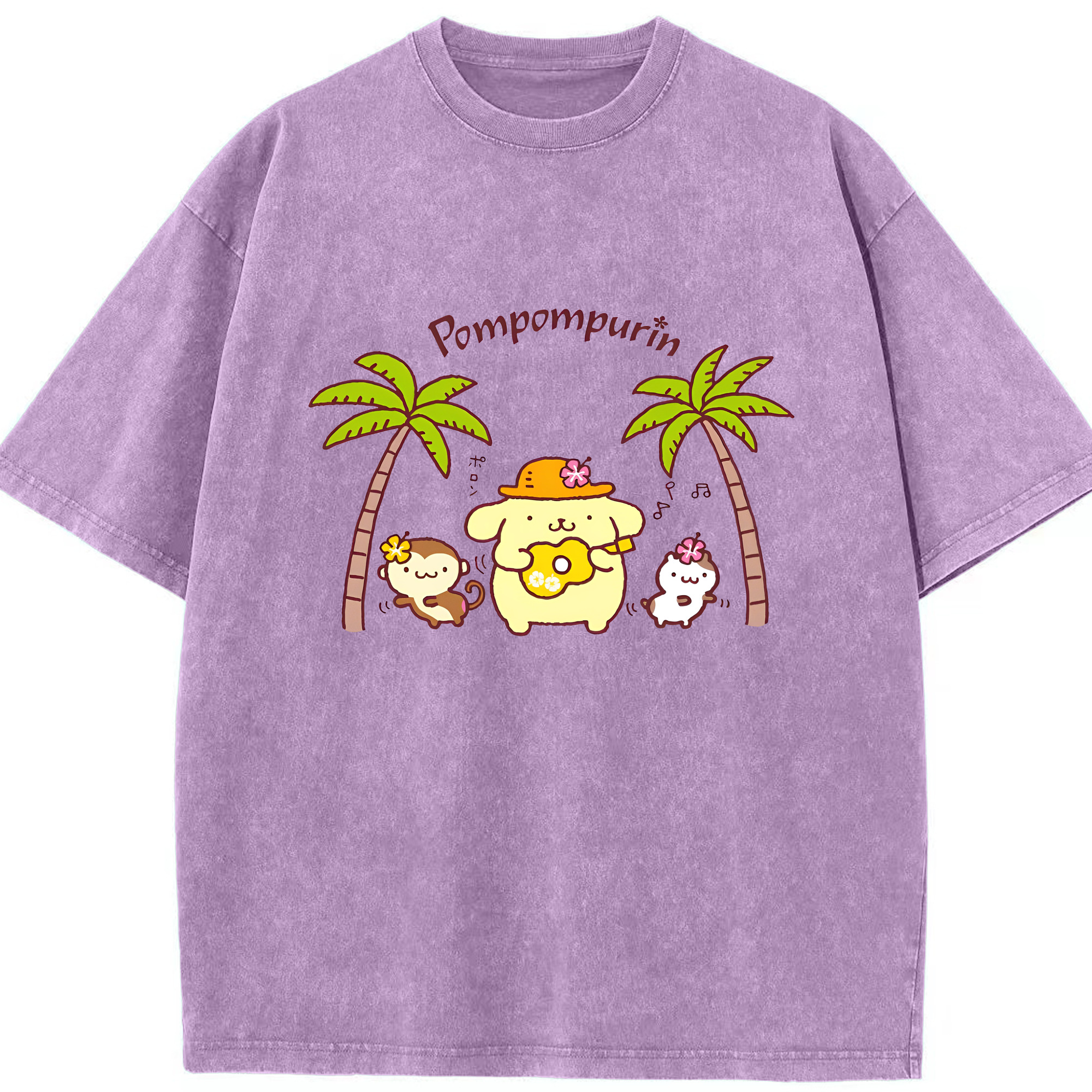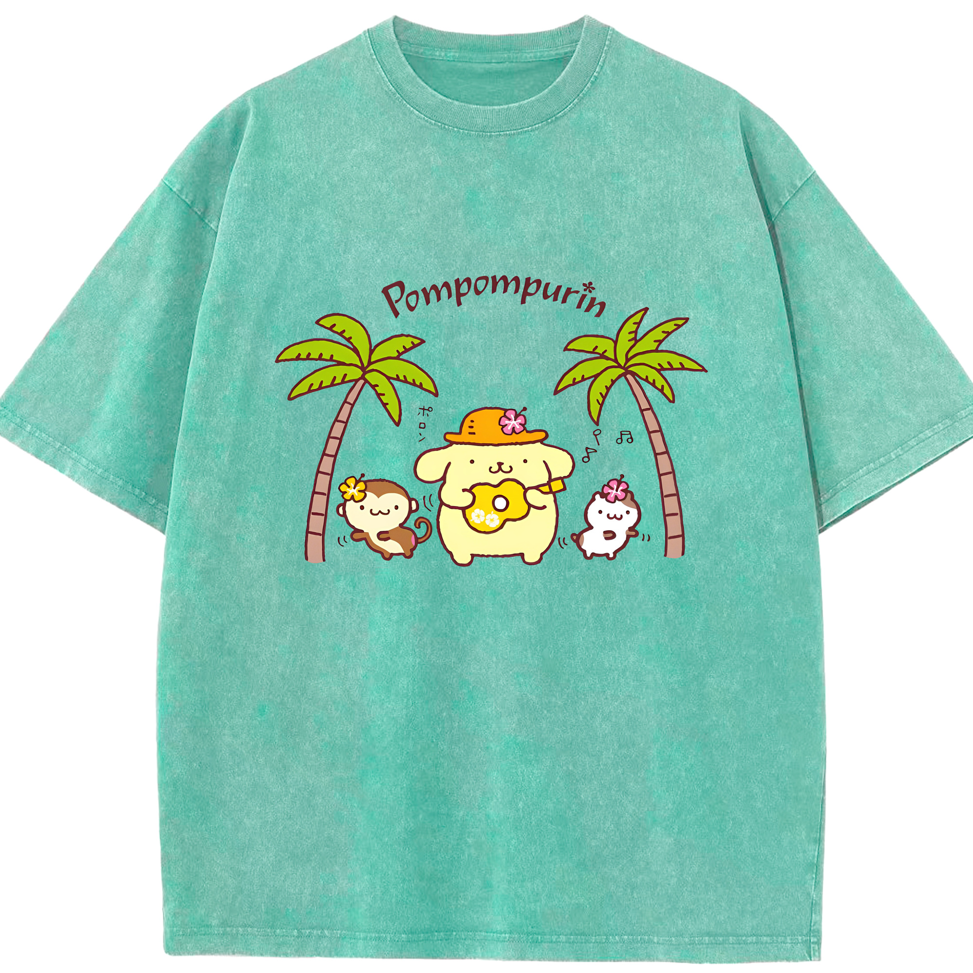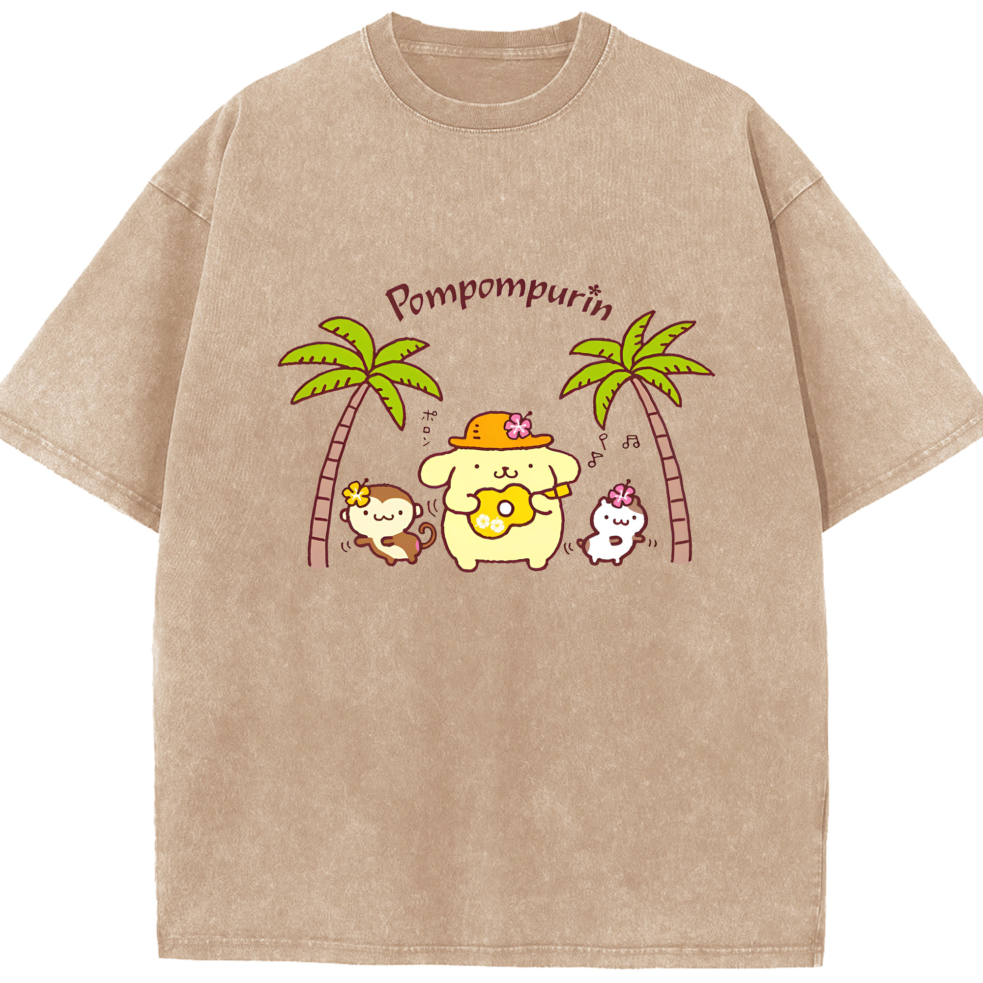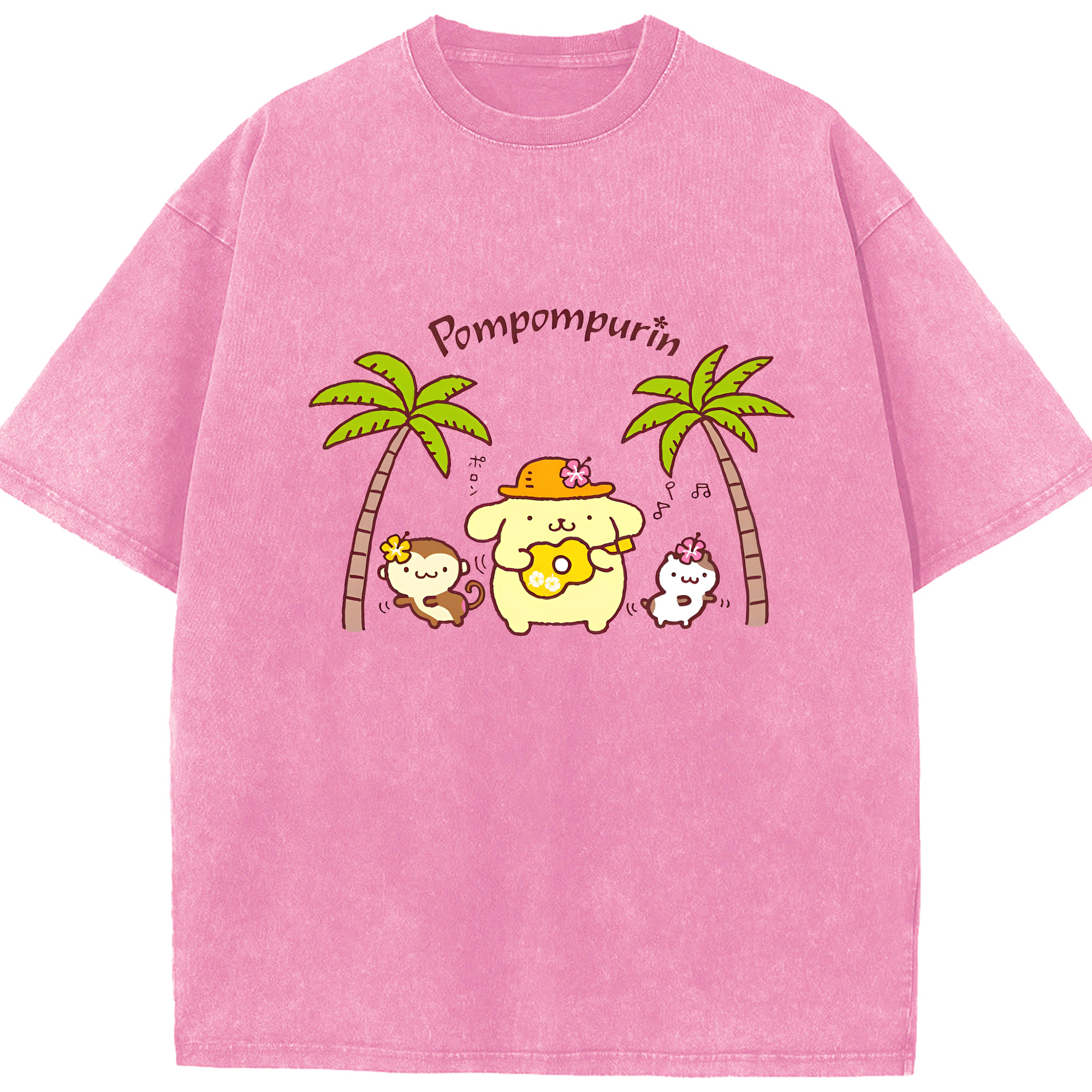 サマーポムポムプリン - 綿100% 半袖Tシャツ ・ フロントプリント ・ 快適 通気性 ・ 日常使い 散歩 スポーツ用