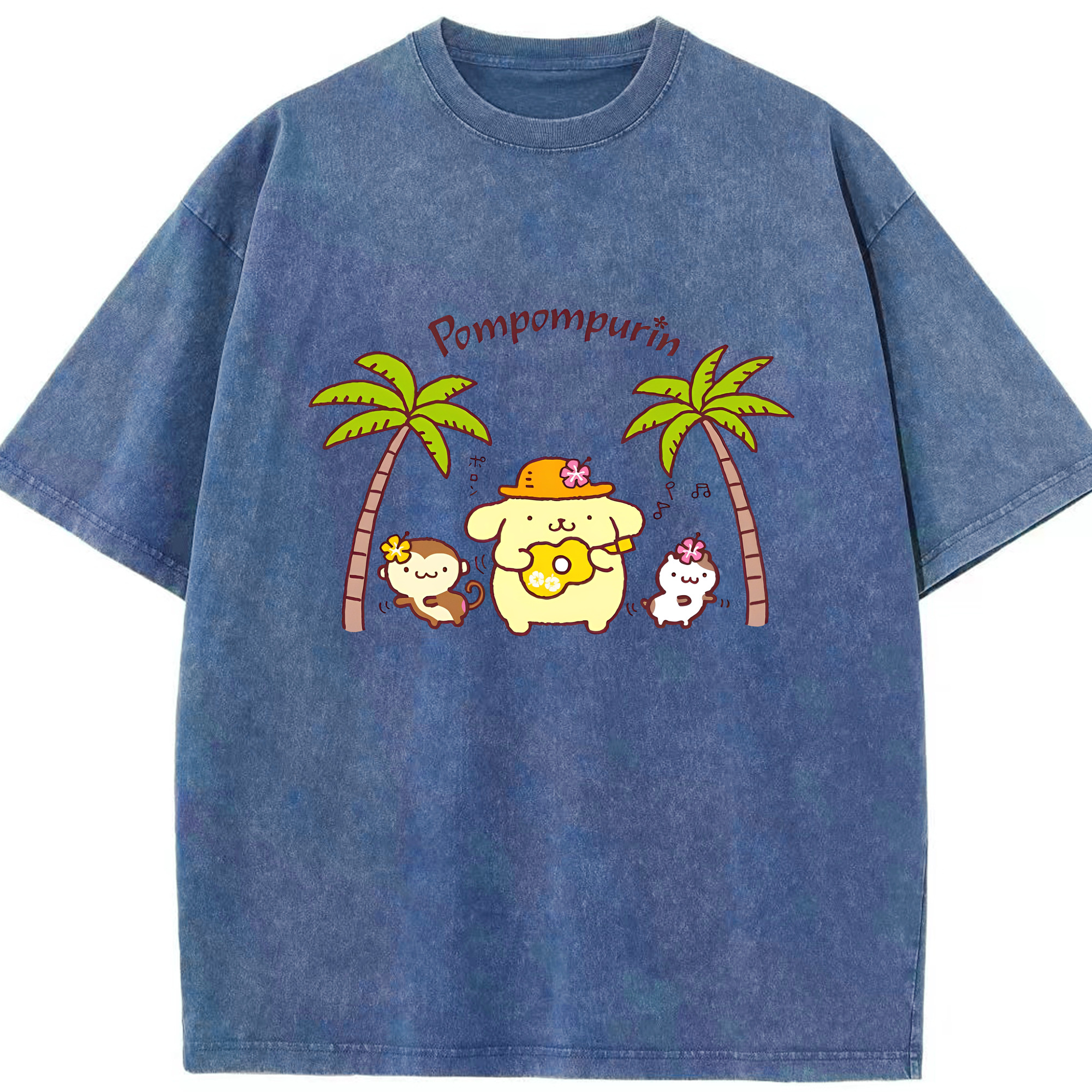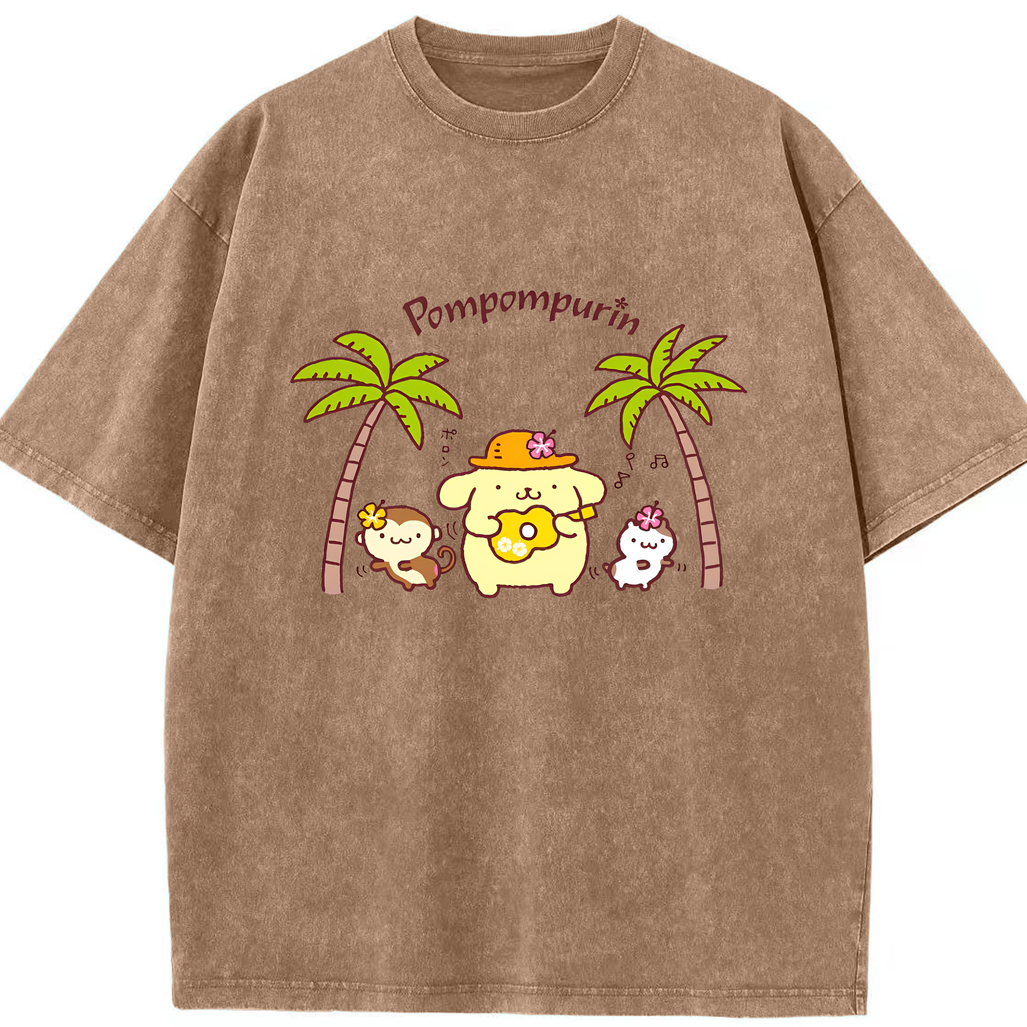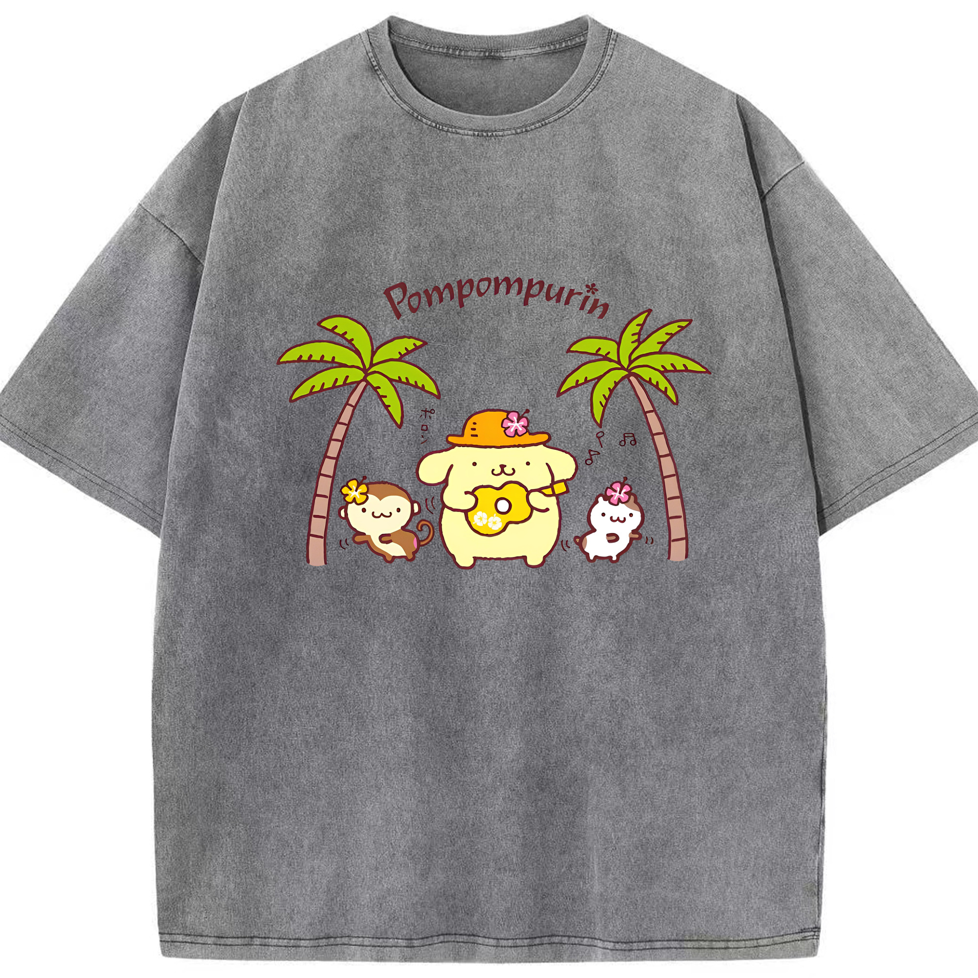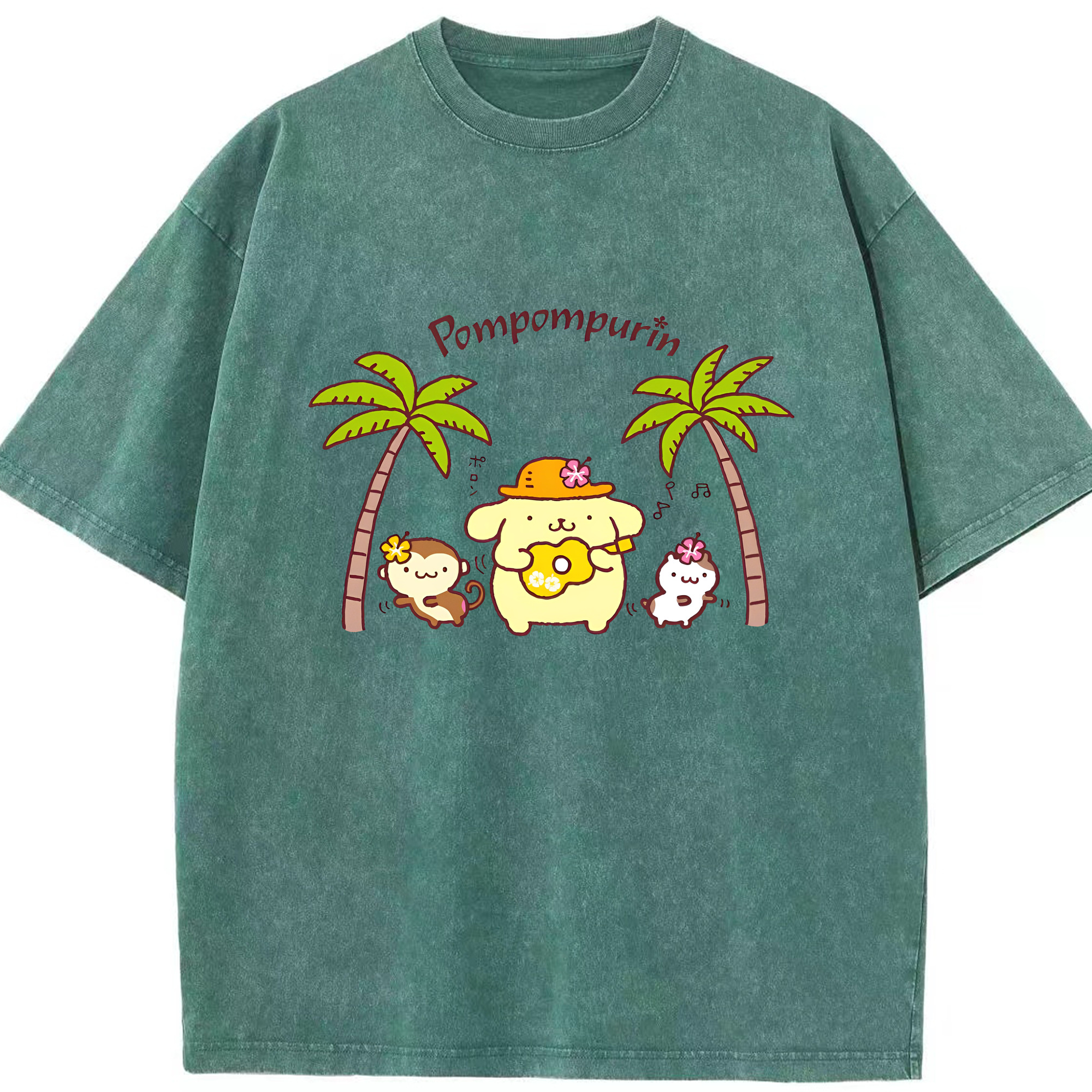 サマーポムポムプリン - 綿100% 半袖Tシャツ ・ フロントプリント ・ 快適 通気性 ・ 日常使い 散歩 スポーツ用