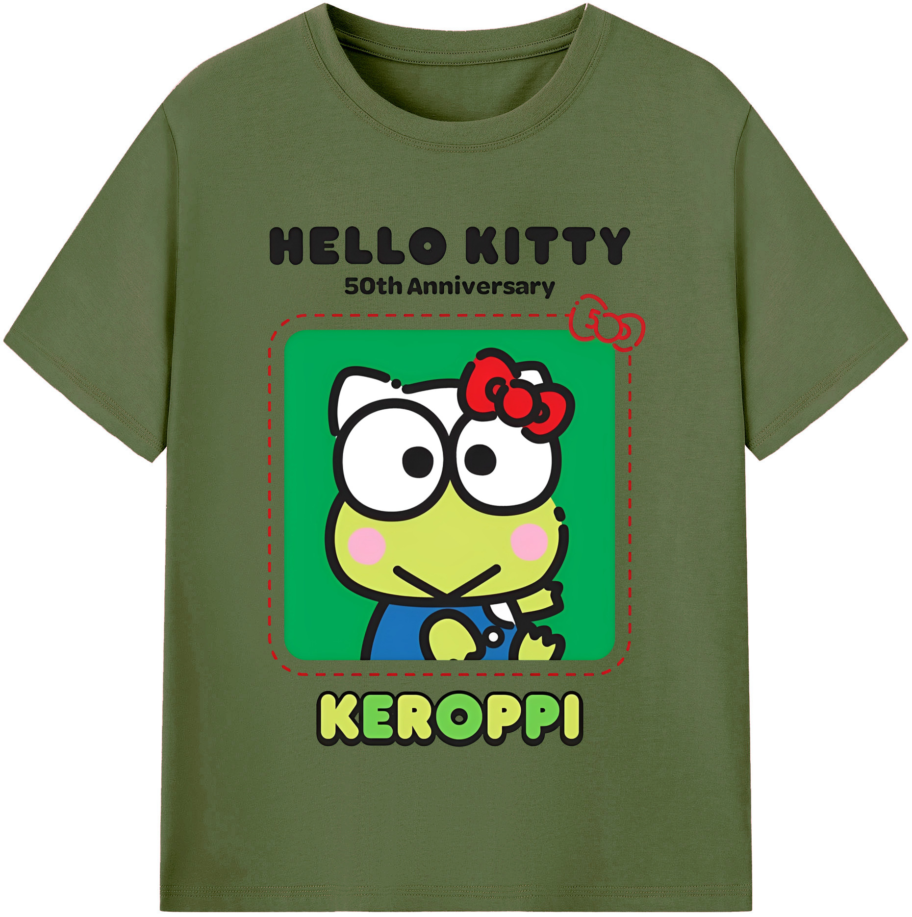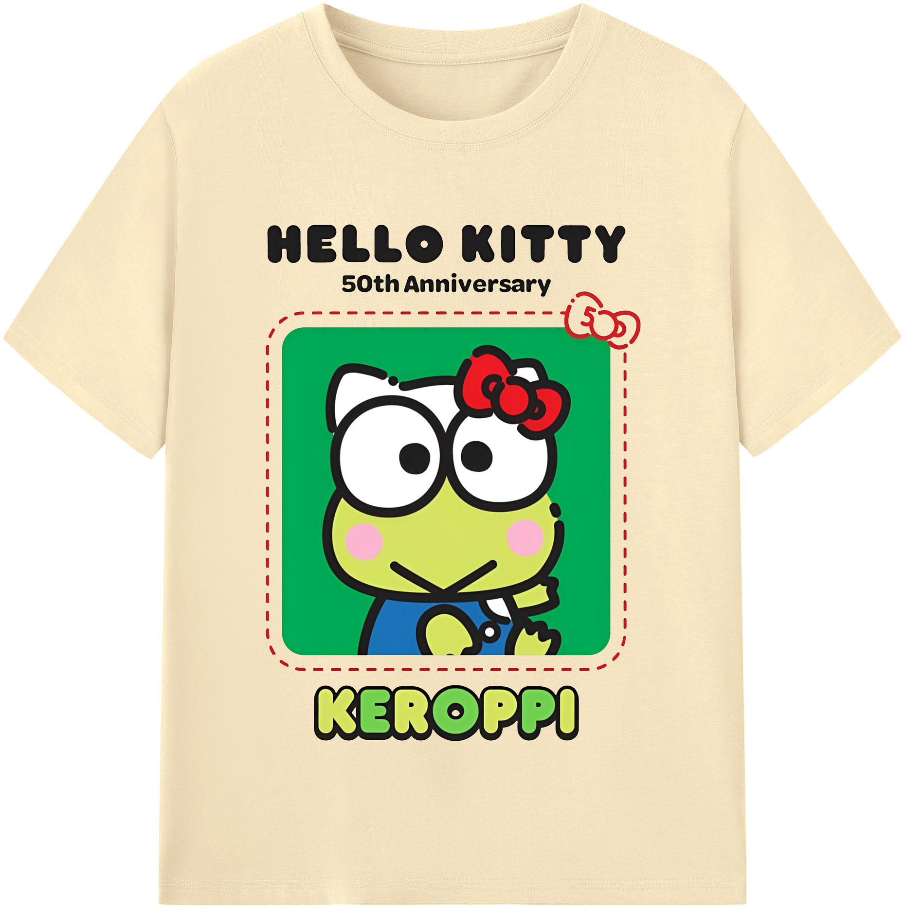 サンリオけろけろけろっぴ - 綿100% ヴィンテージ風 半袖Tシャツ ・ フロントプリント ・ 柔らか肌触り ・ 通気性 快適 ・ スポーツ カジュアル 外出用