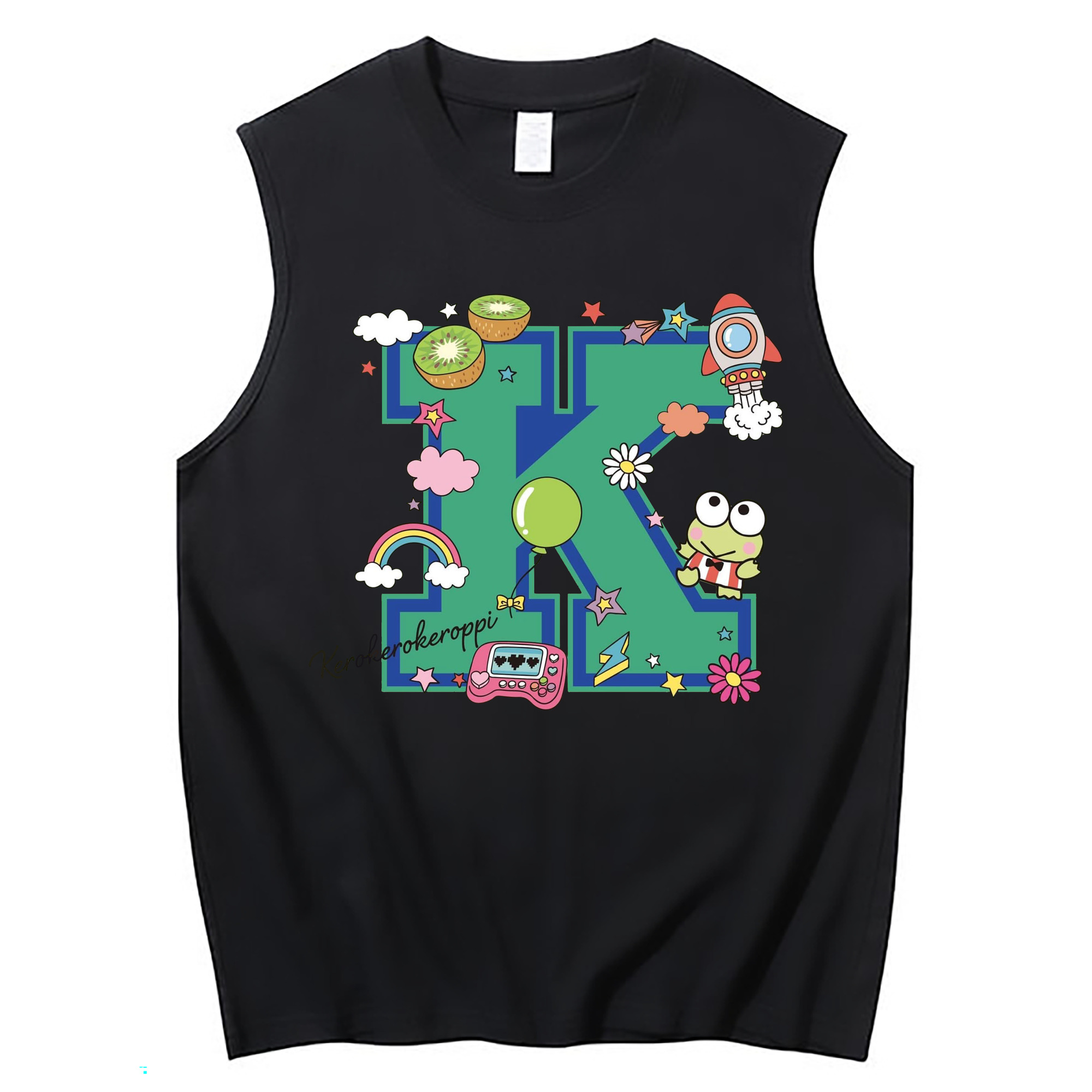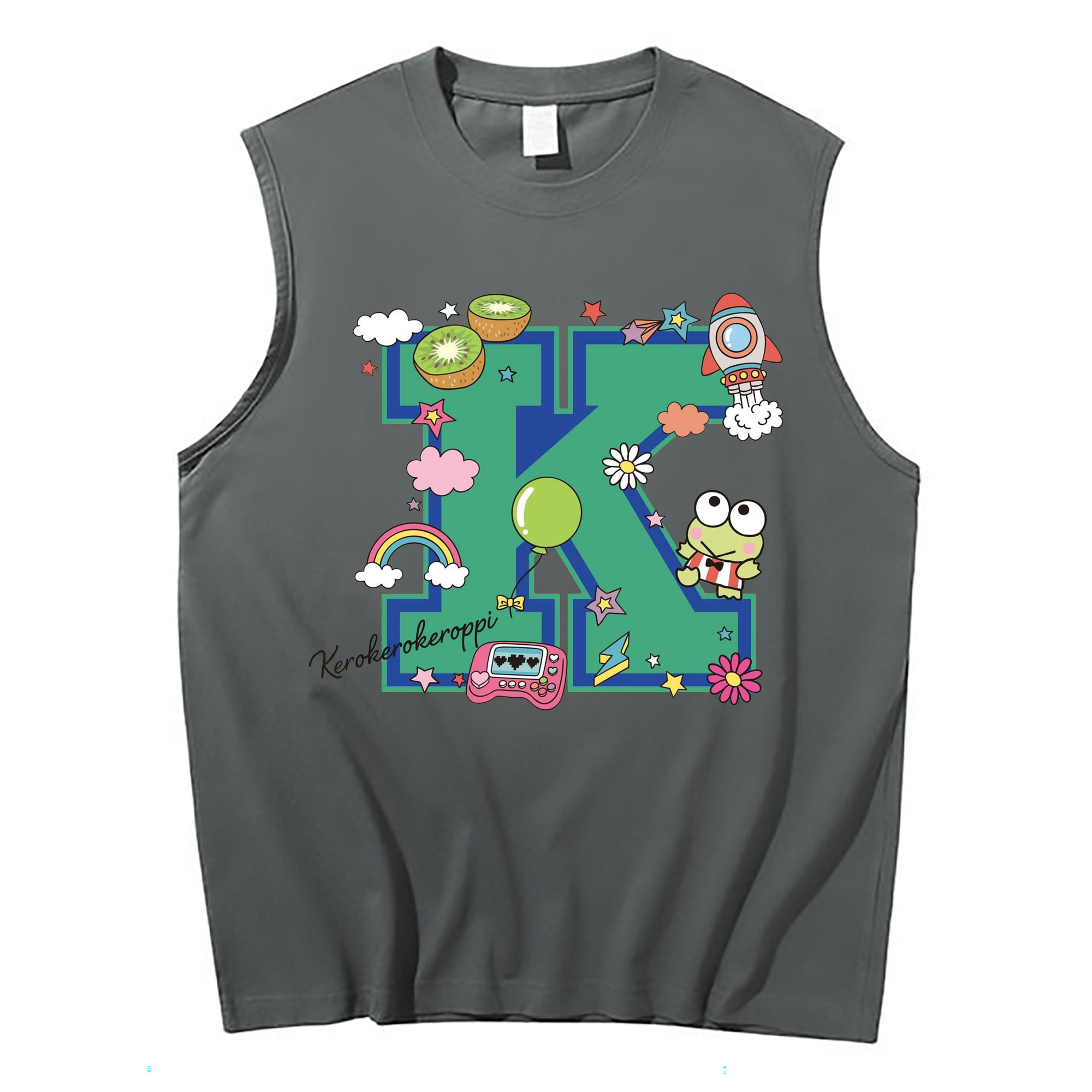 サンリオけろけろけろっぴ - コットン100% タンクトップ ・ フロントプリント ・ タイトフィット ・ 快適 通気性 ・ スポーツ カジュアル 散歩用
