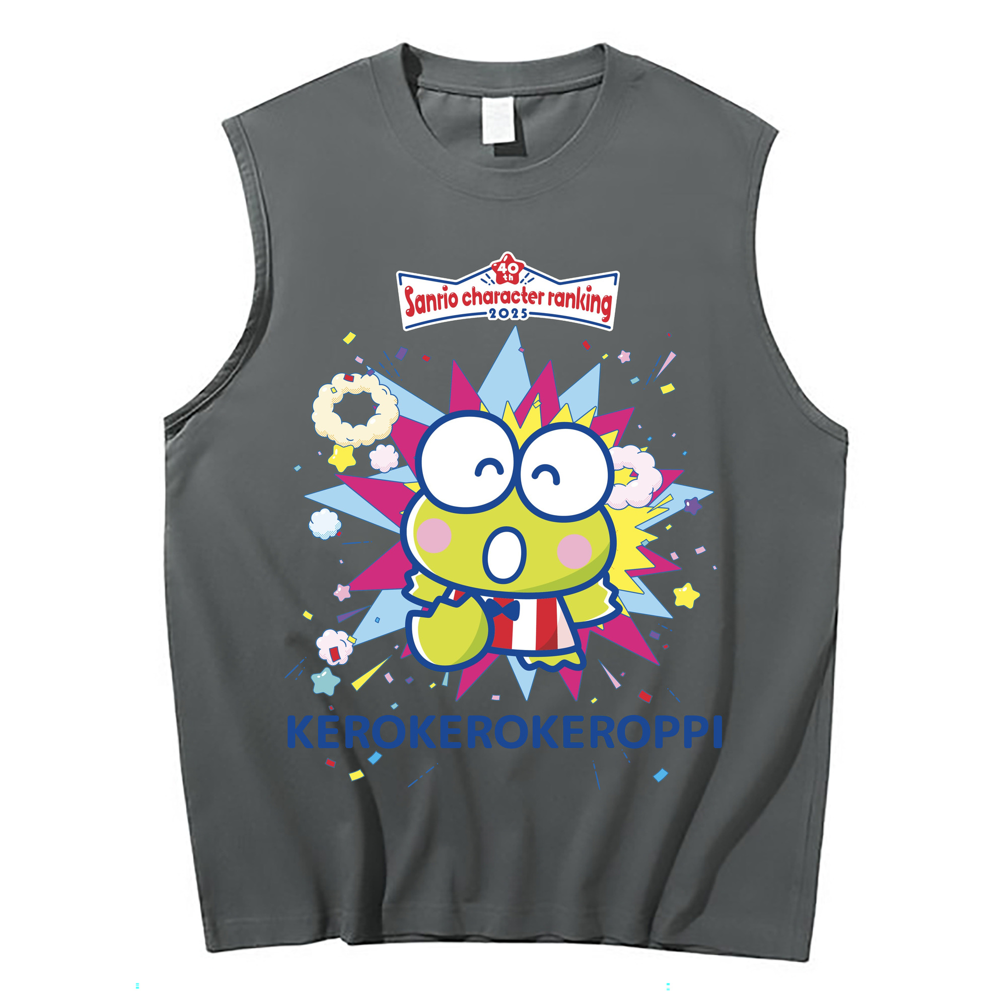 サンリオけろけろけろっぴ - コットン100% タンクトップ ・ フロントプリント ・ タイトフィット ・ 快適 通気性 ・ スポーツ カジュアル 散歩用