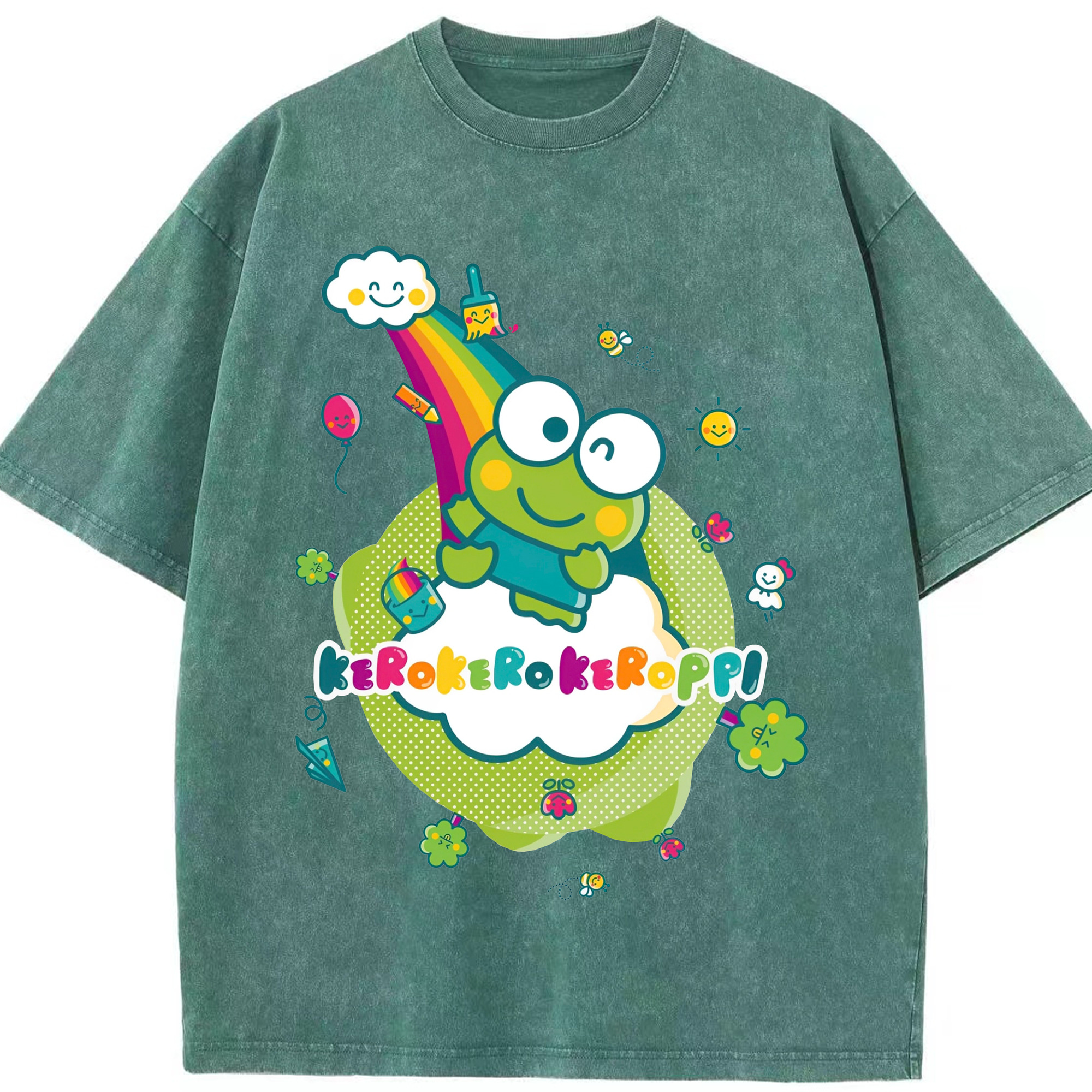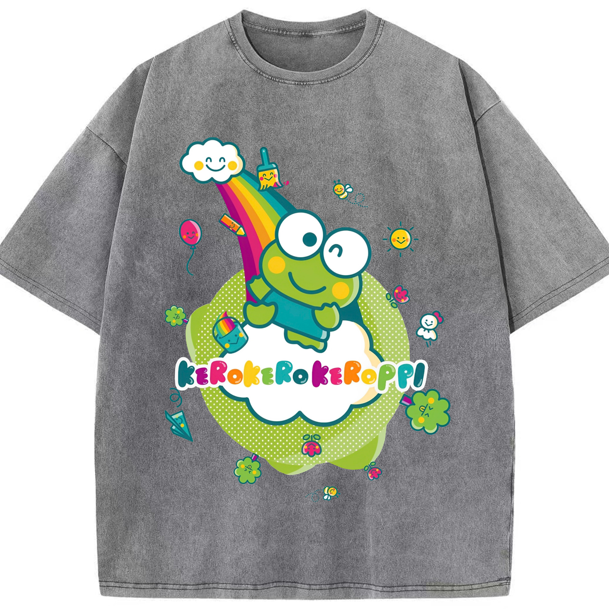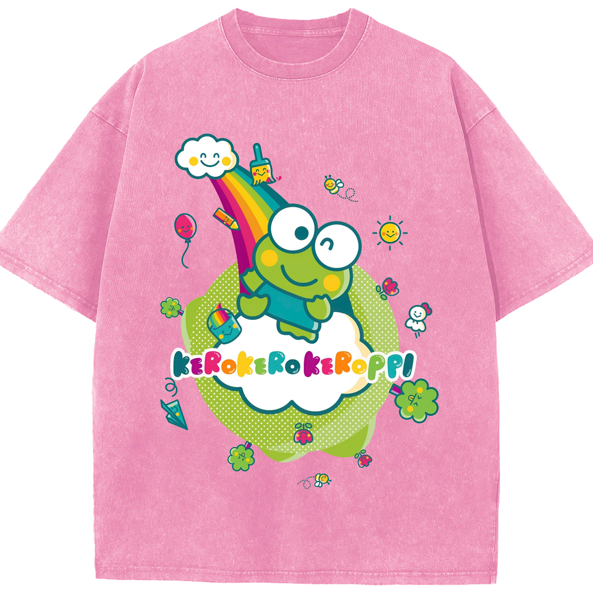 サンリオけろけろけろっぴ - 綿100% 半袖Tシャツ ・ フロントプリント ・ 快適 通気性 ・ 日常使い 散歩 スポーツ用