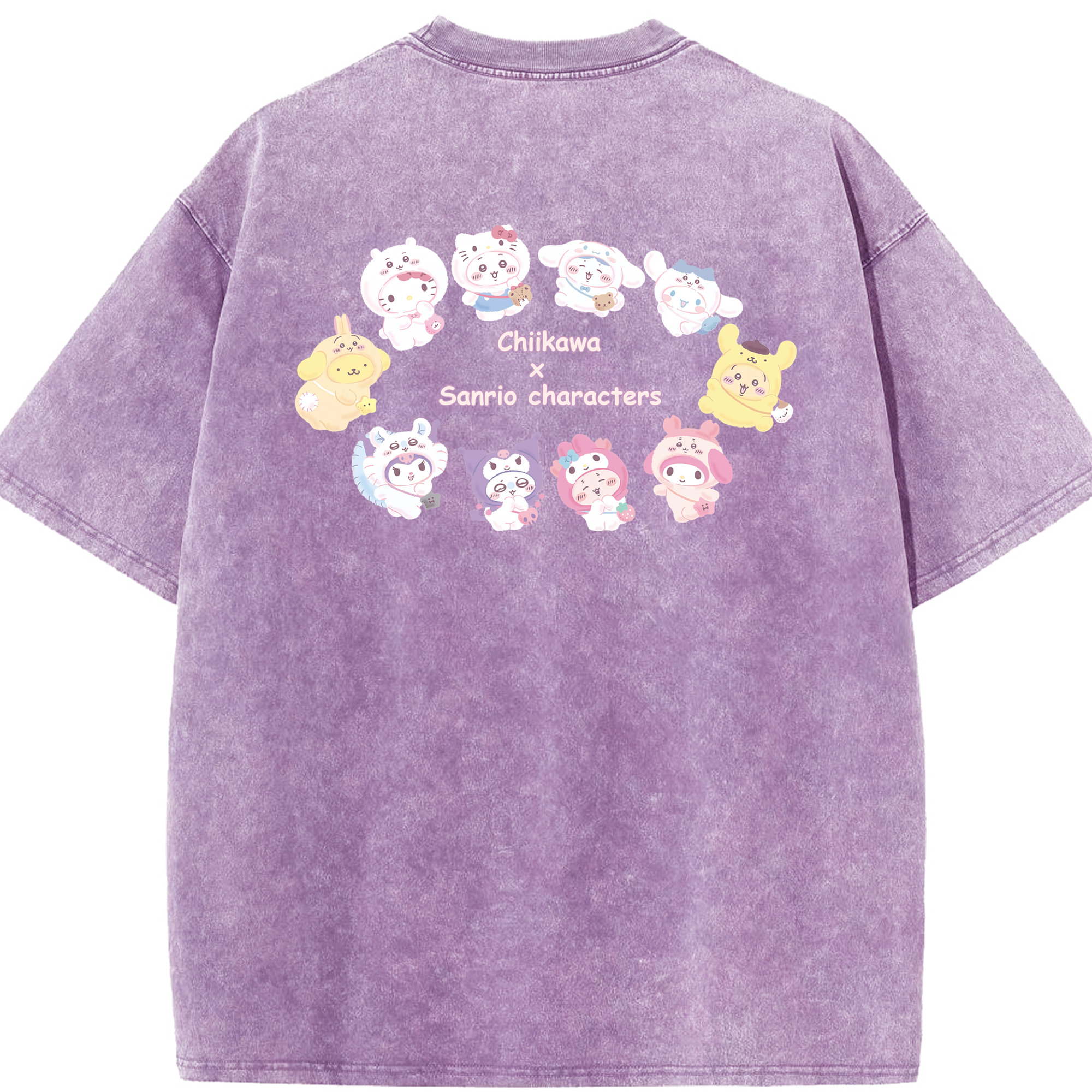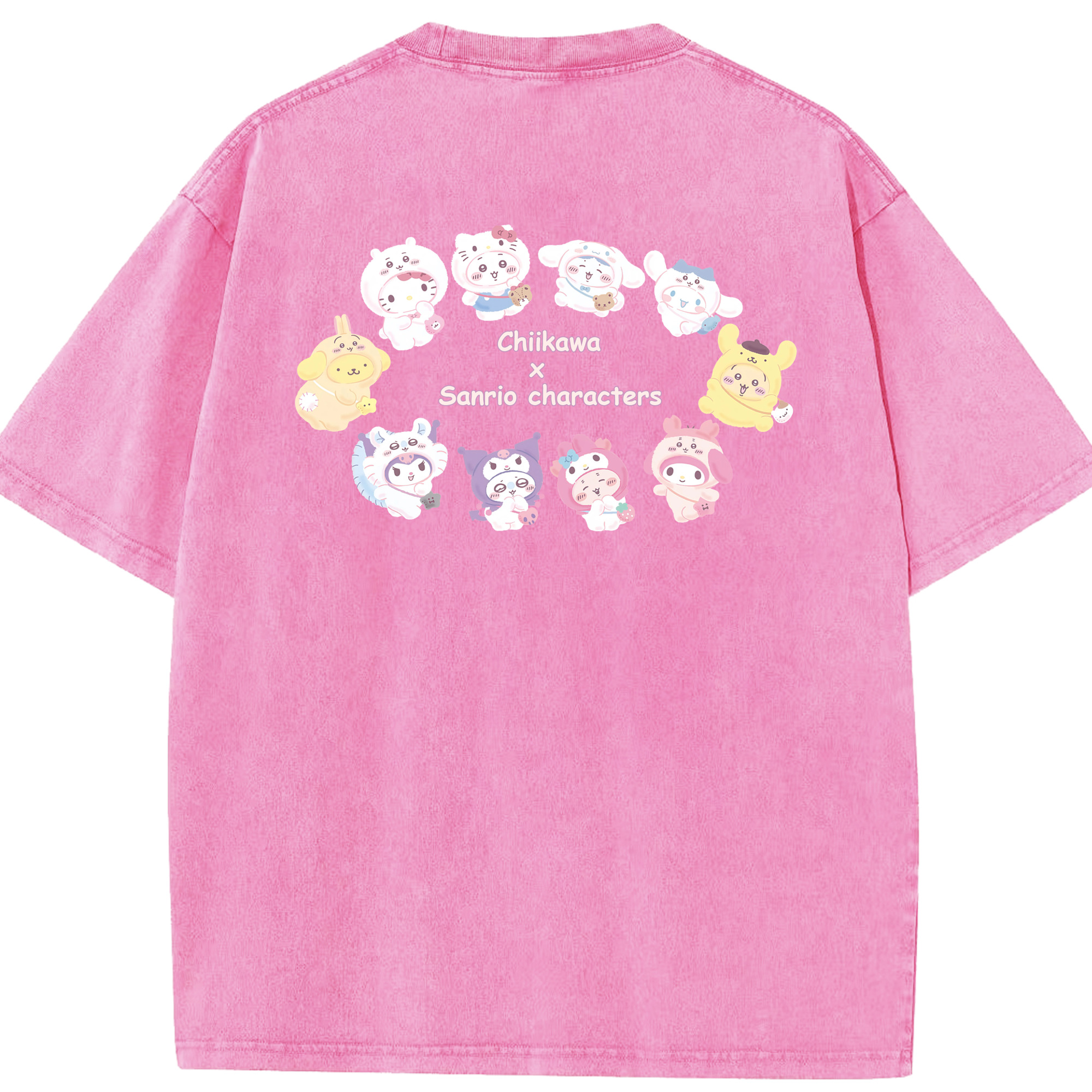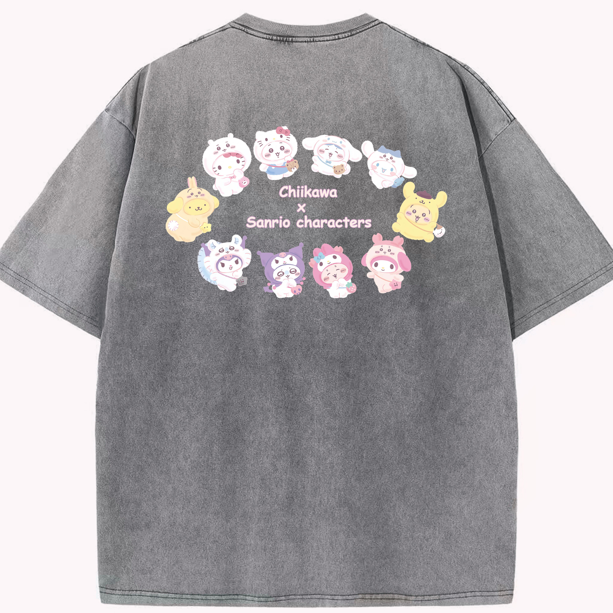 マイメロディ&ちいかわ - 綿100% ヴィンテージ風 半袖Tシャツ ・ 背面プリント ・ 柔らか肌触り ・ 通気性 快適 ・ スポーツ カジュアル 外出用