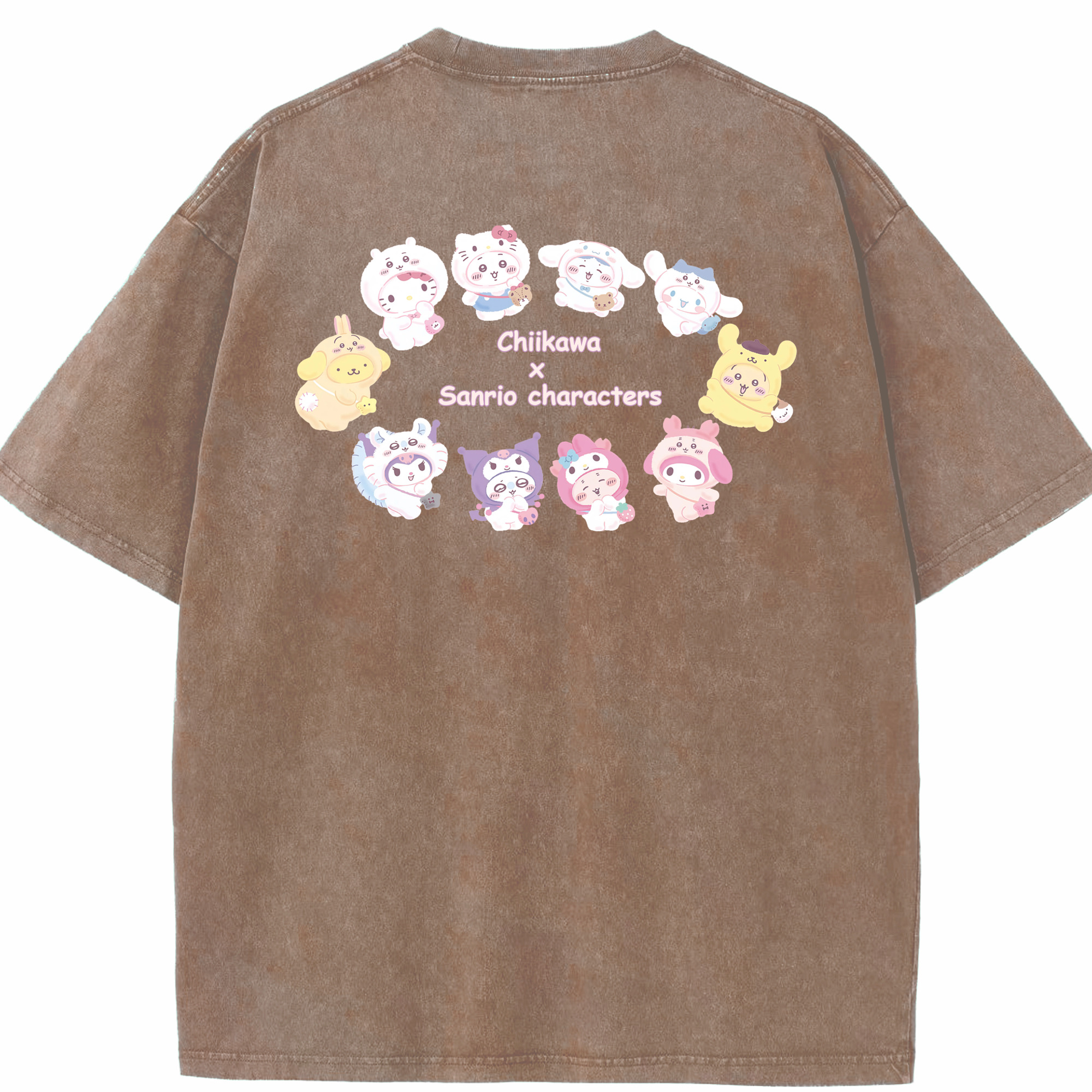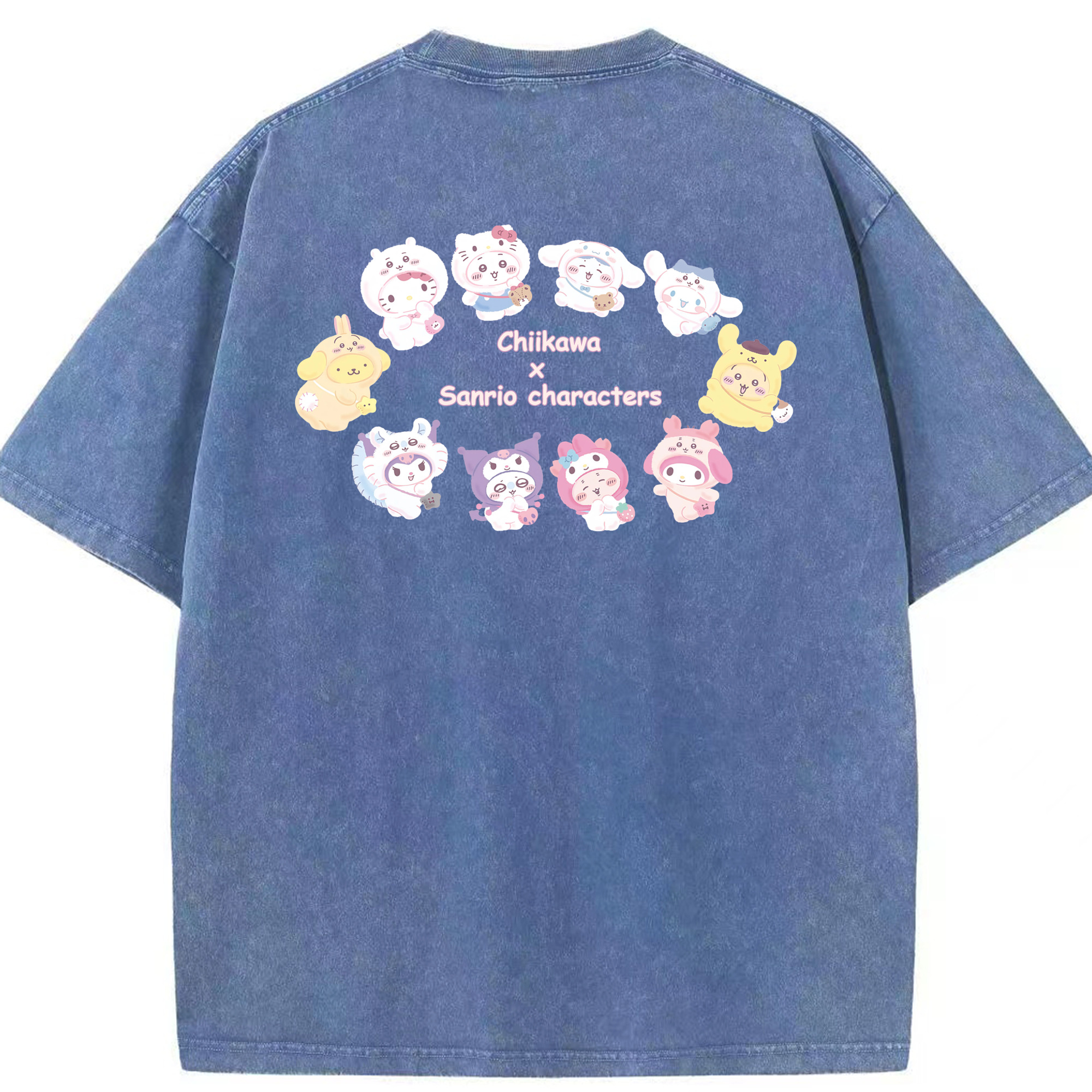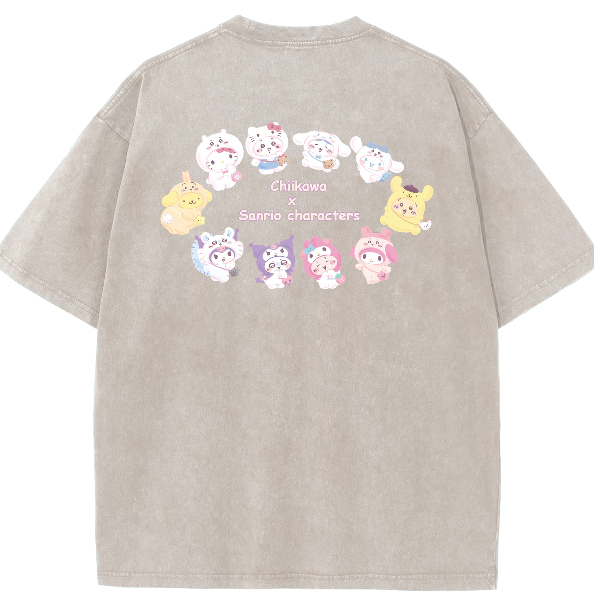 マイメロディ&ちいかわ - 綿100% ヴィンテージ風 半袖Tシャツ ・ 背面プリント ・ 柔らか肌触り ・ 通気性 快適 ・ スポーツ カジュアル 外出用