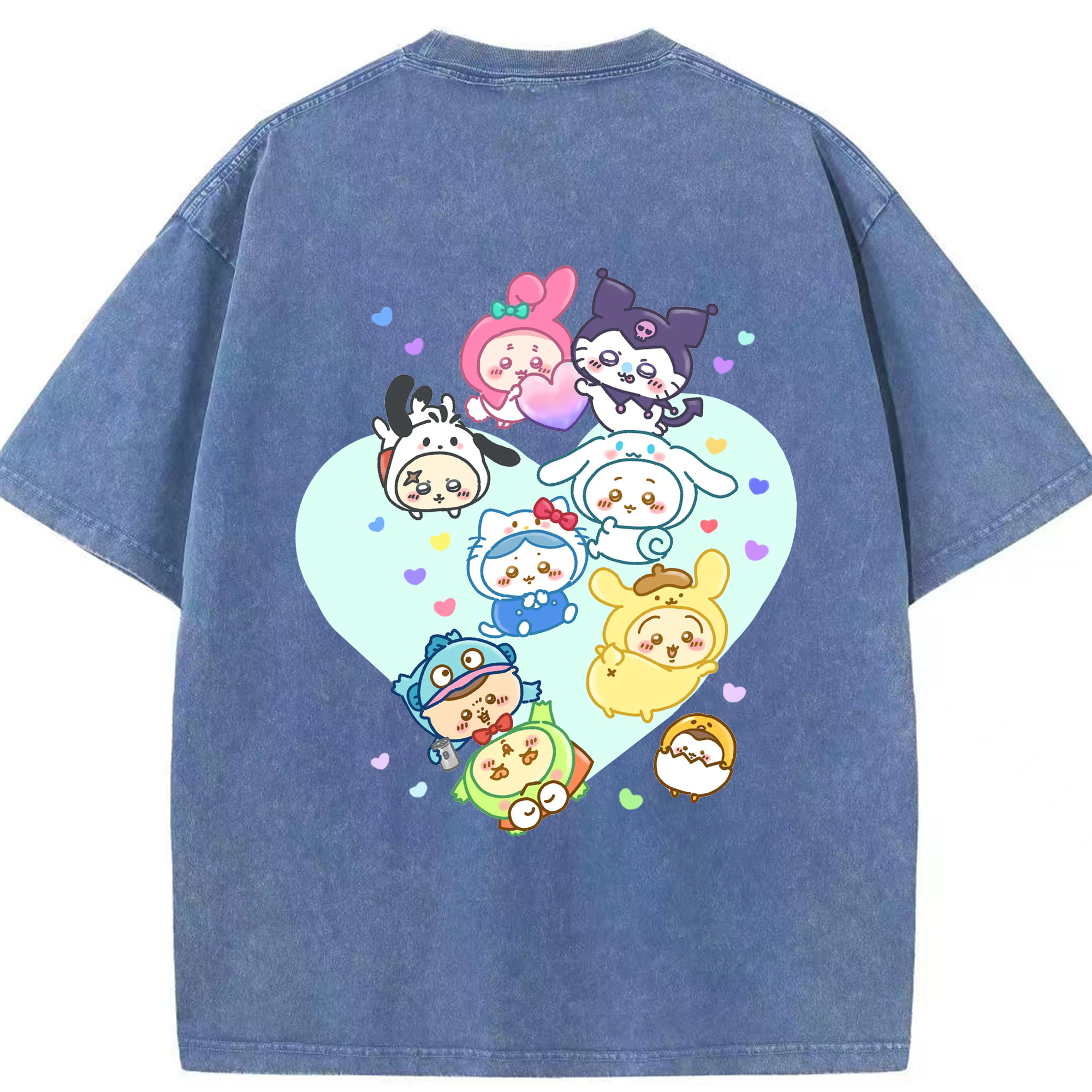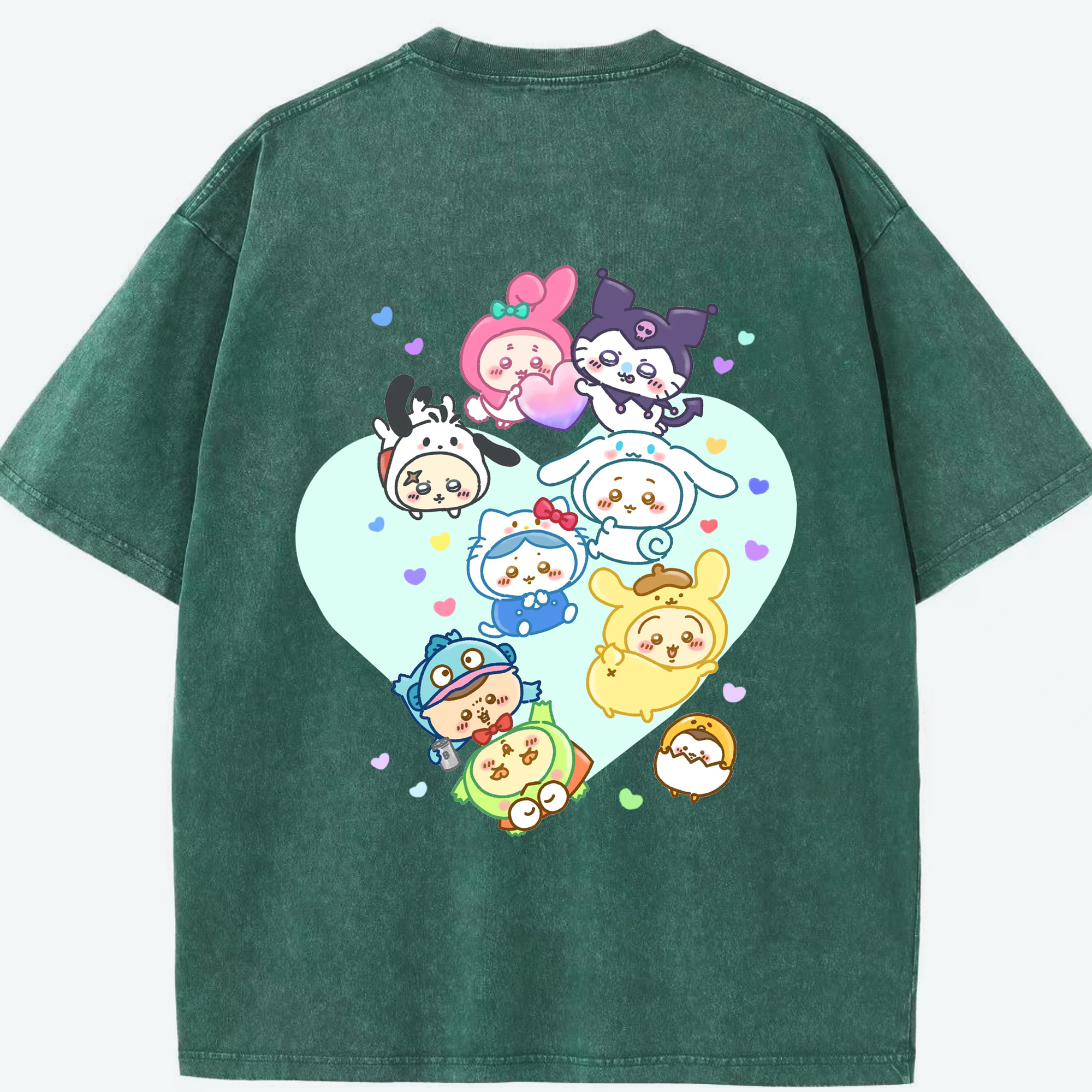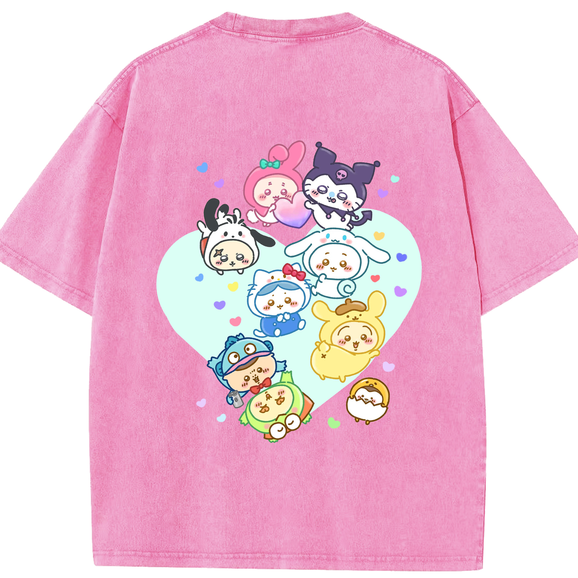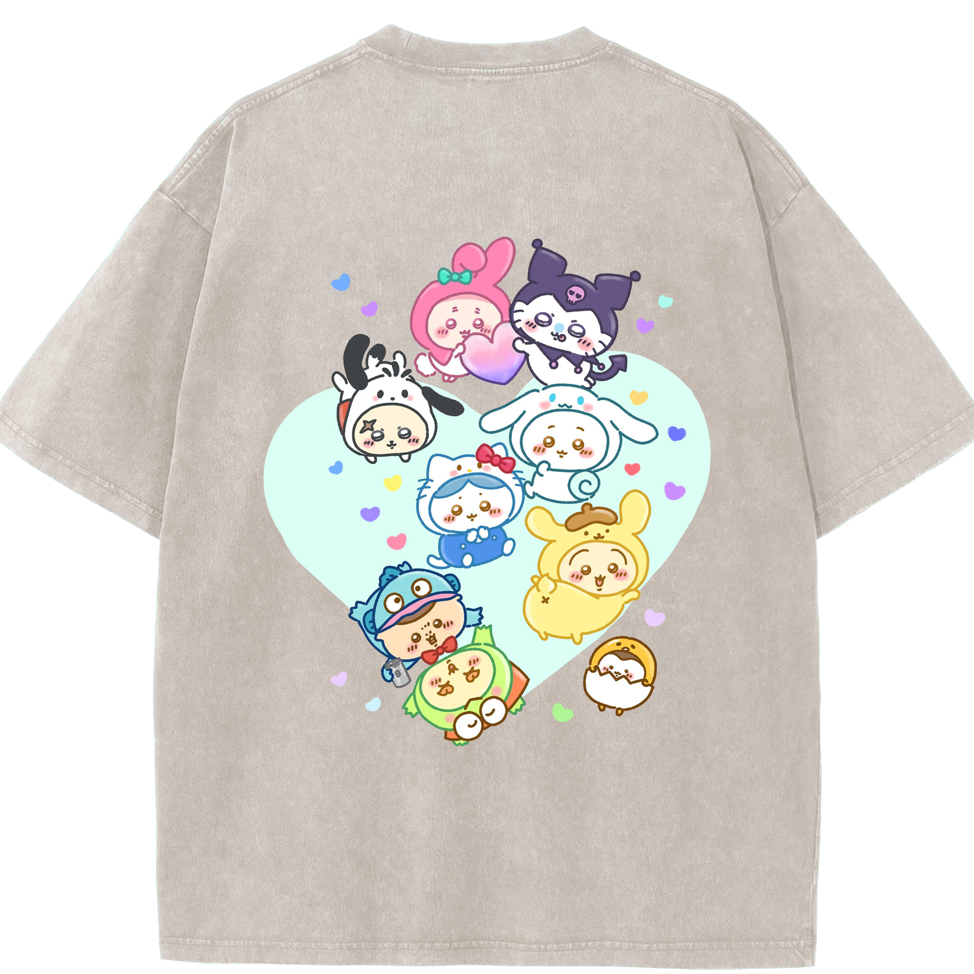 サンリオ&ちいかわ - 綿100% ヴィンテージ風 半袖Tシャツ ・ フロントプリント ・ 柔らか肌触り ・ 通気性 快適 ・ スポーツ カジュアル 外出用