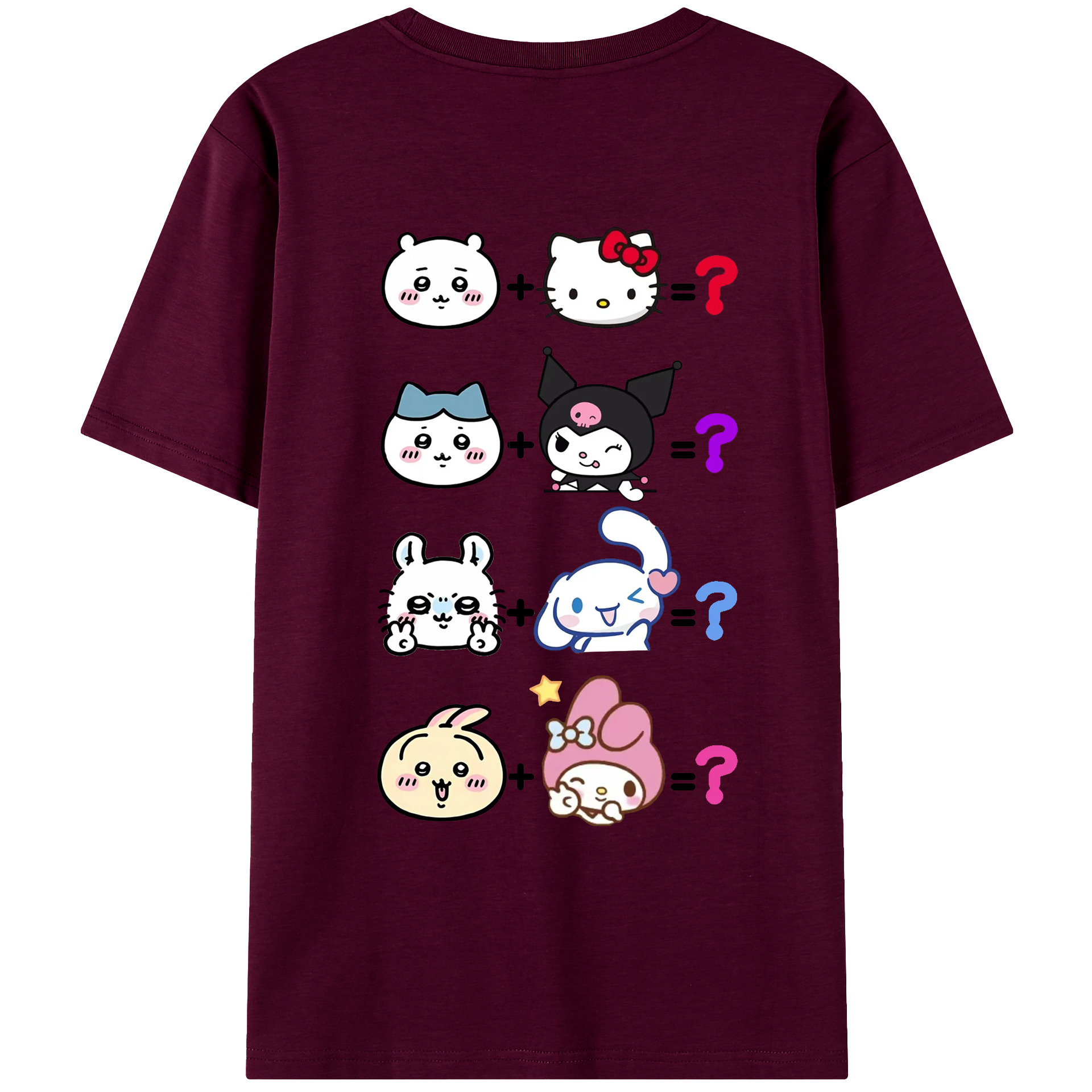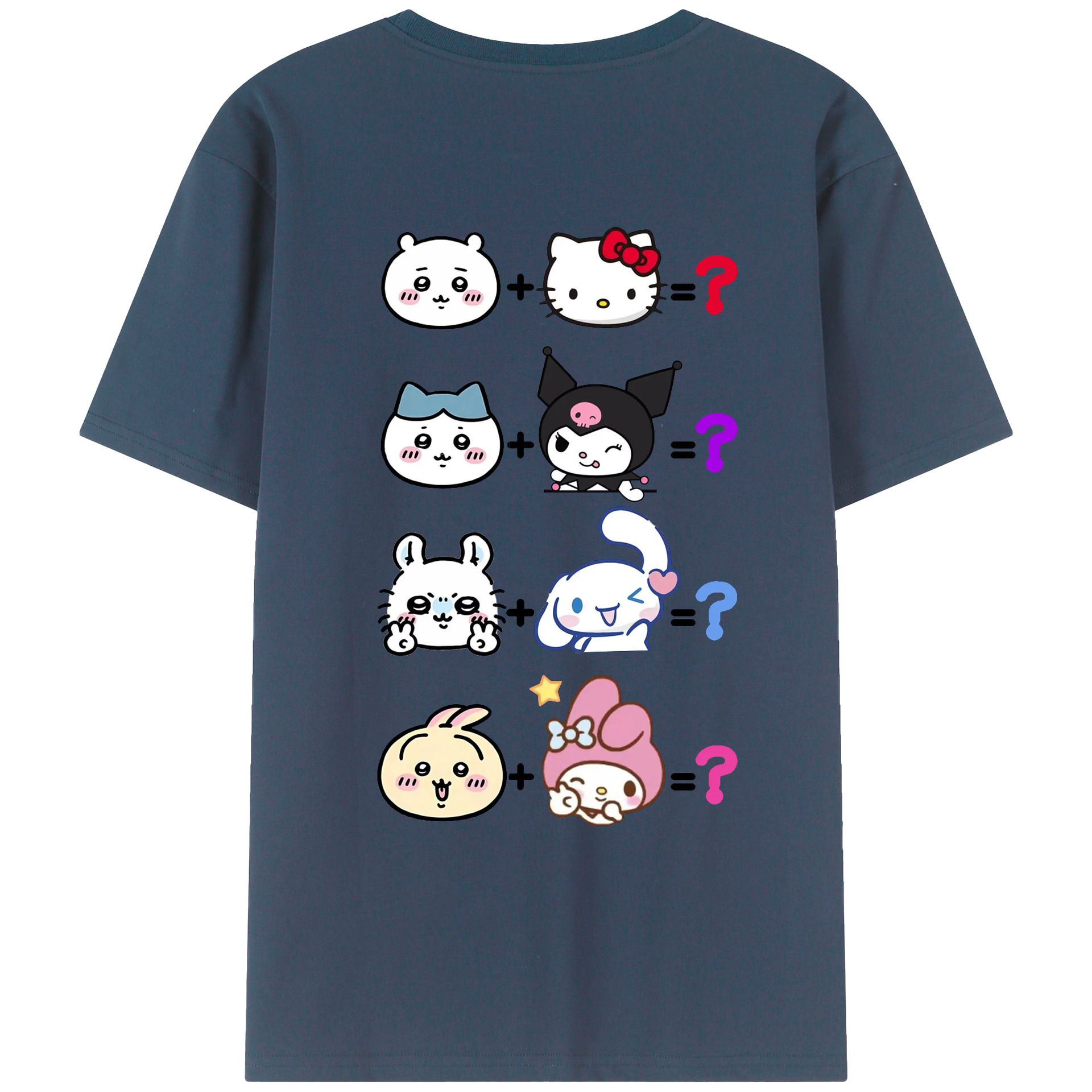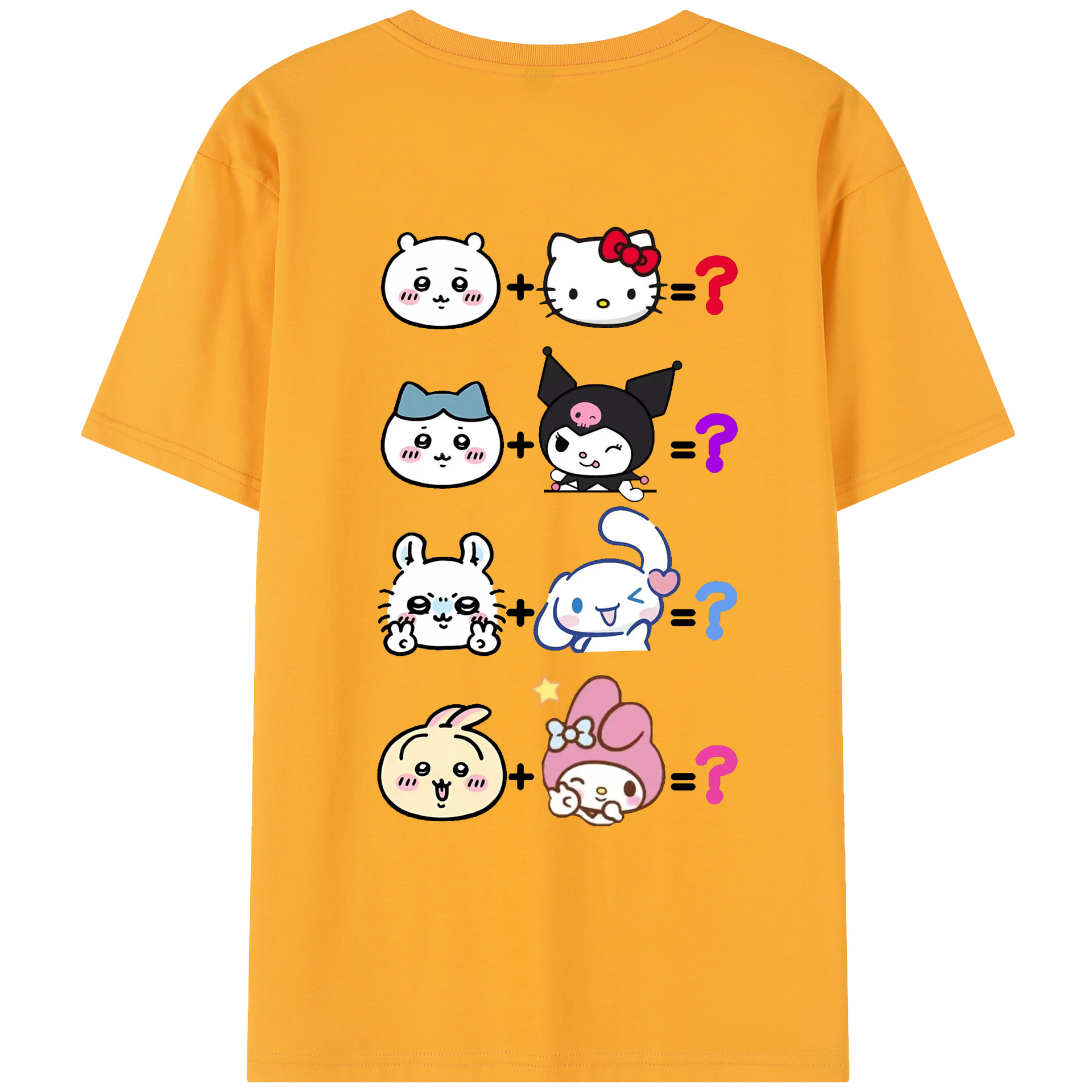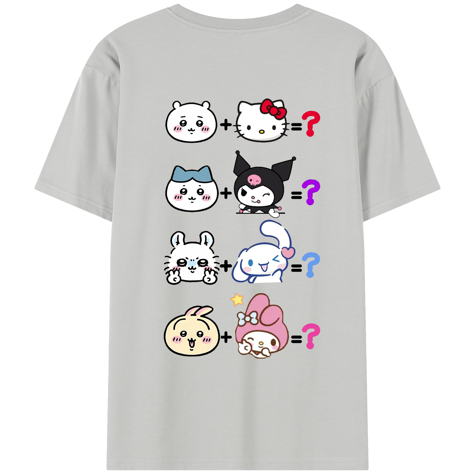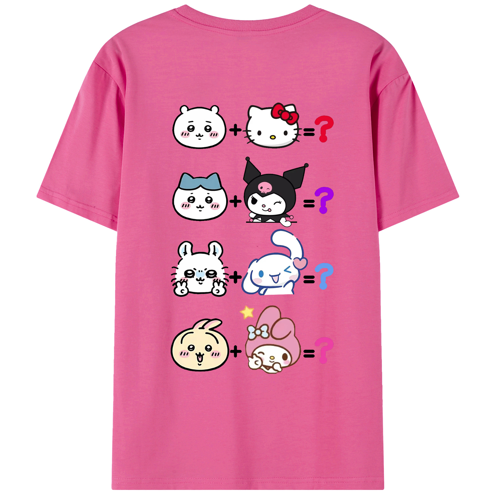 サンリオ&ちいかわ - レディース半袖Tシャツ ・ 綿100% ・ バックプリント ・ 強化クルーネック ・ 二重折り袖口 ・ 快適 通気性 ・ フィットネス カジュアル 旅行用