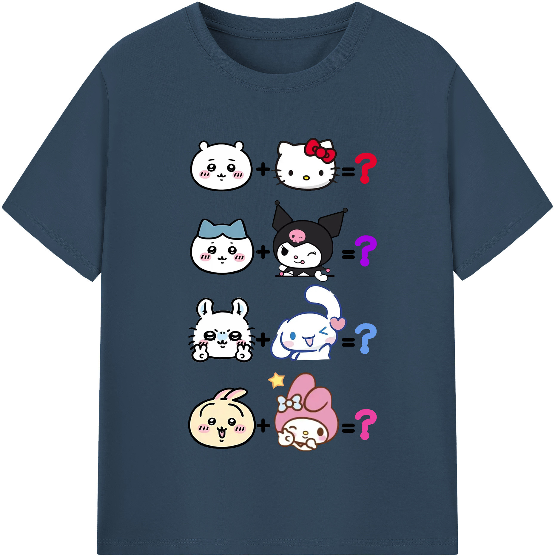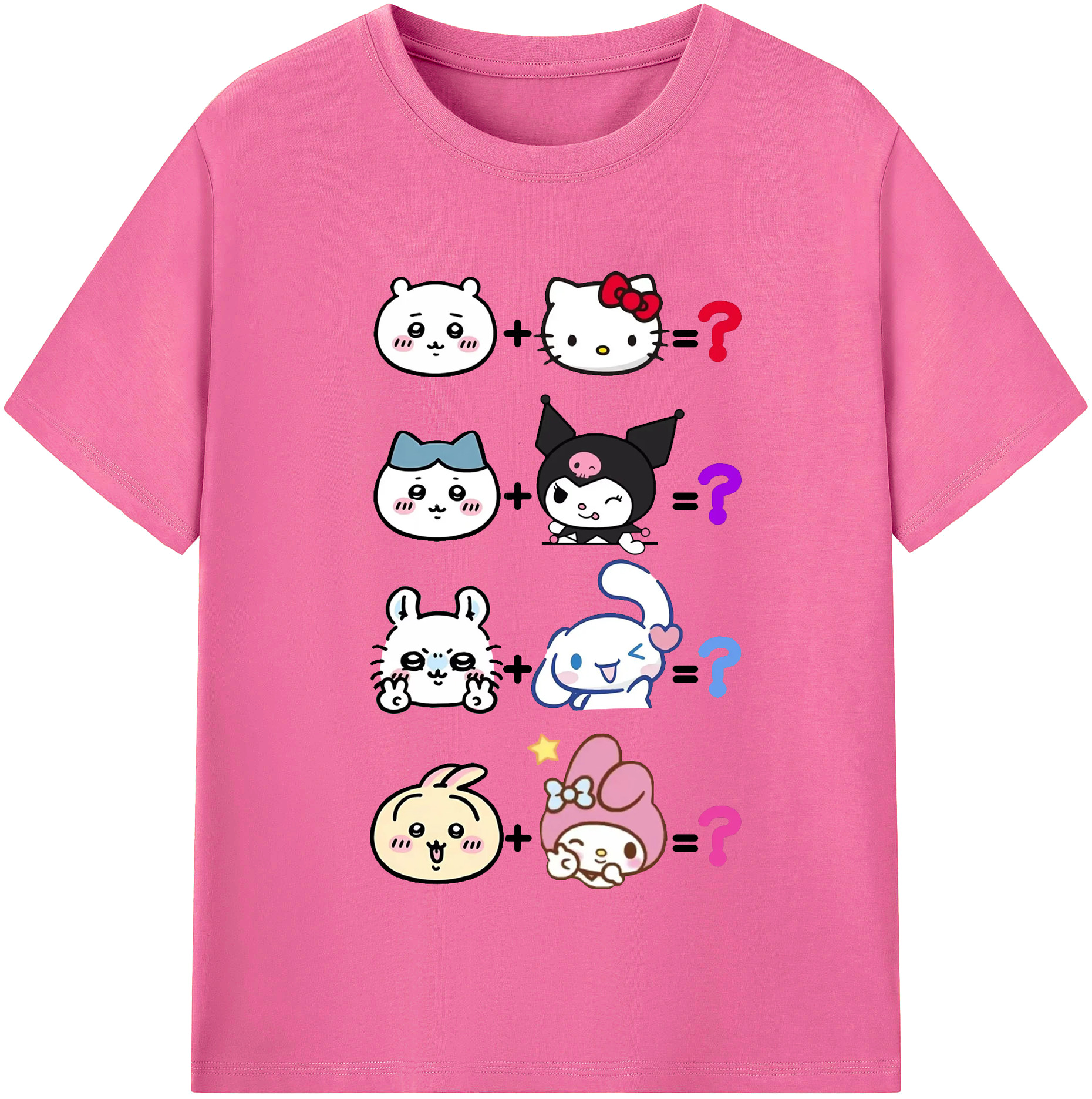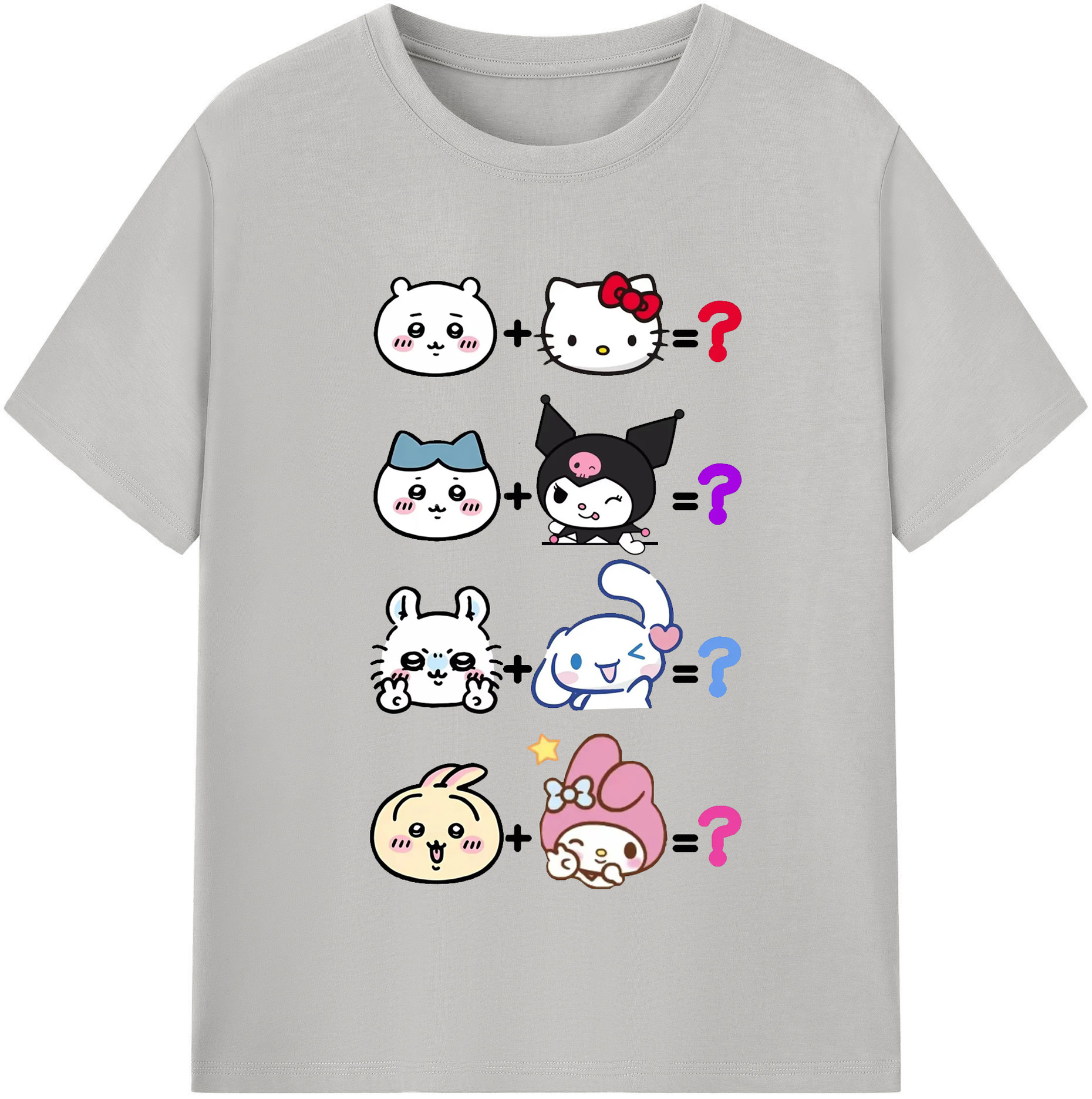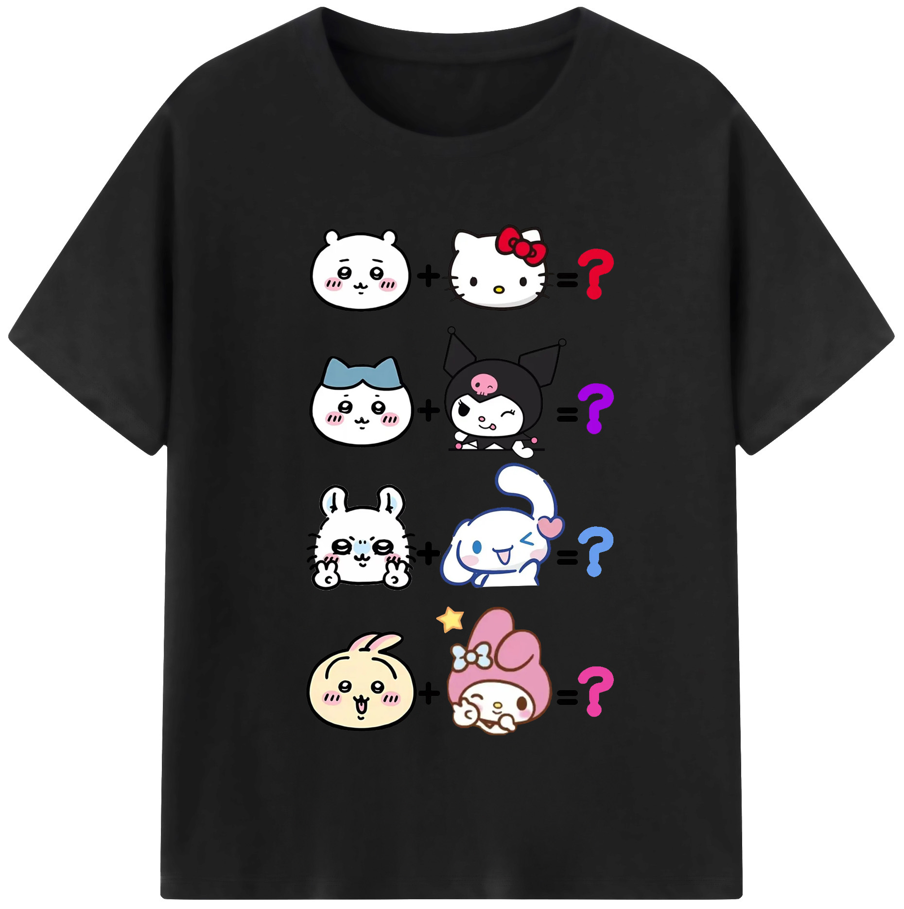 サンリオ&ちいかわ - レディースカジュアルプリントTシャツ ・ 綿100% ・ クルーネック ・ フロントプリント ・ 柔らかく快適 ・ フィットネス カジュアル 旅行用