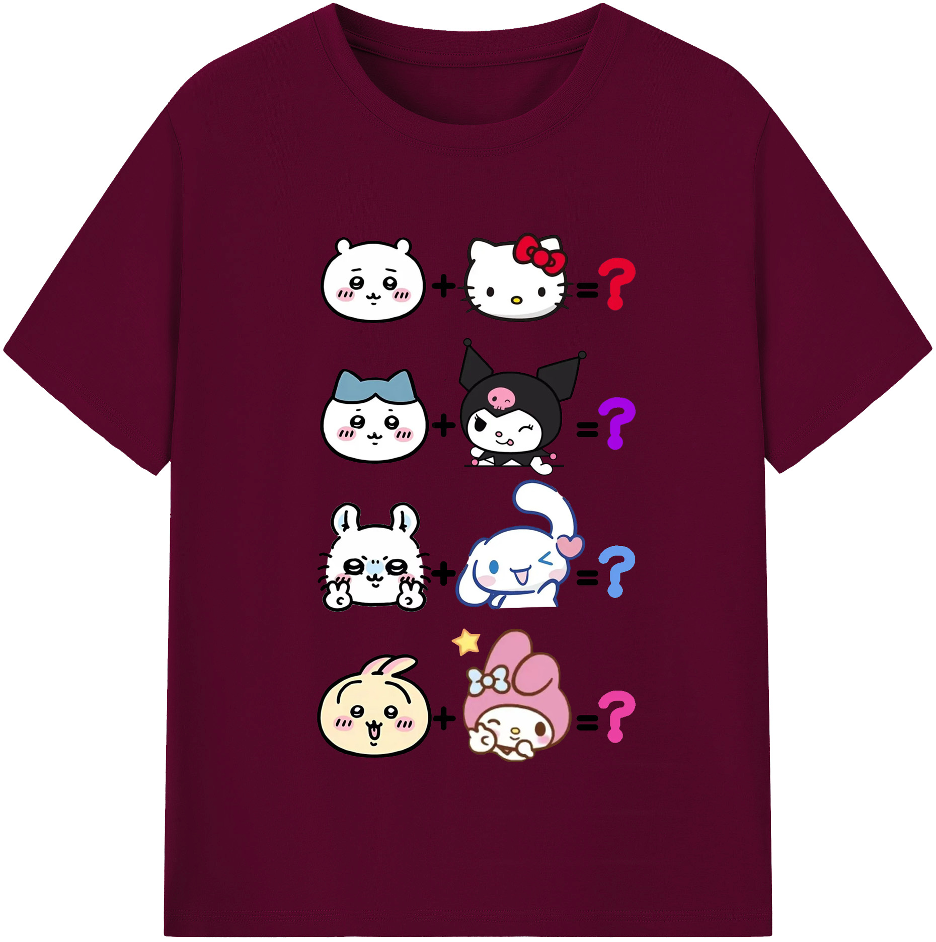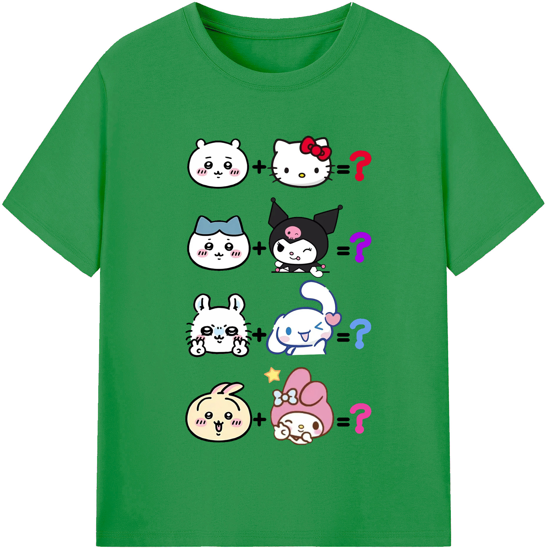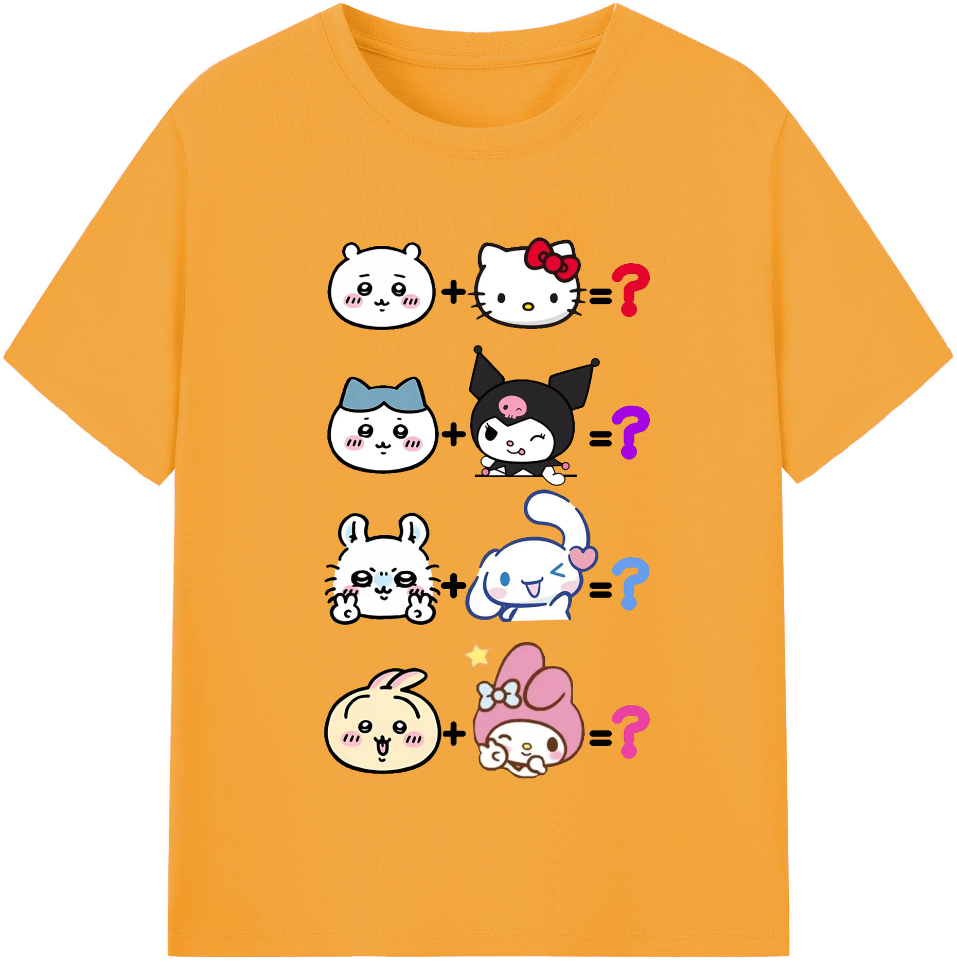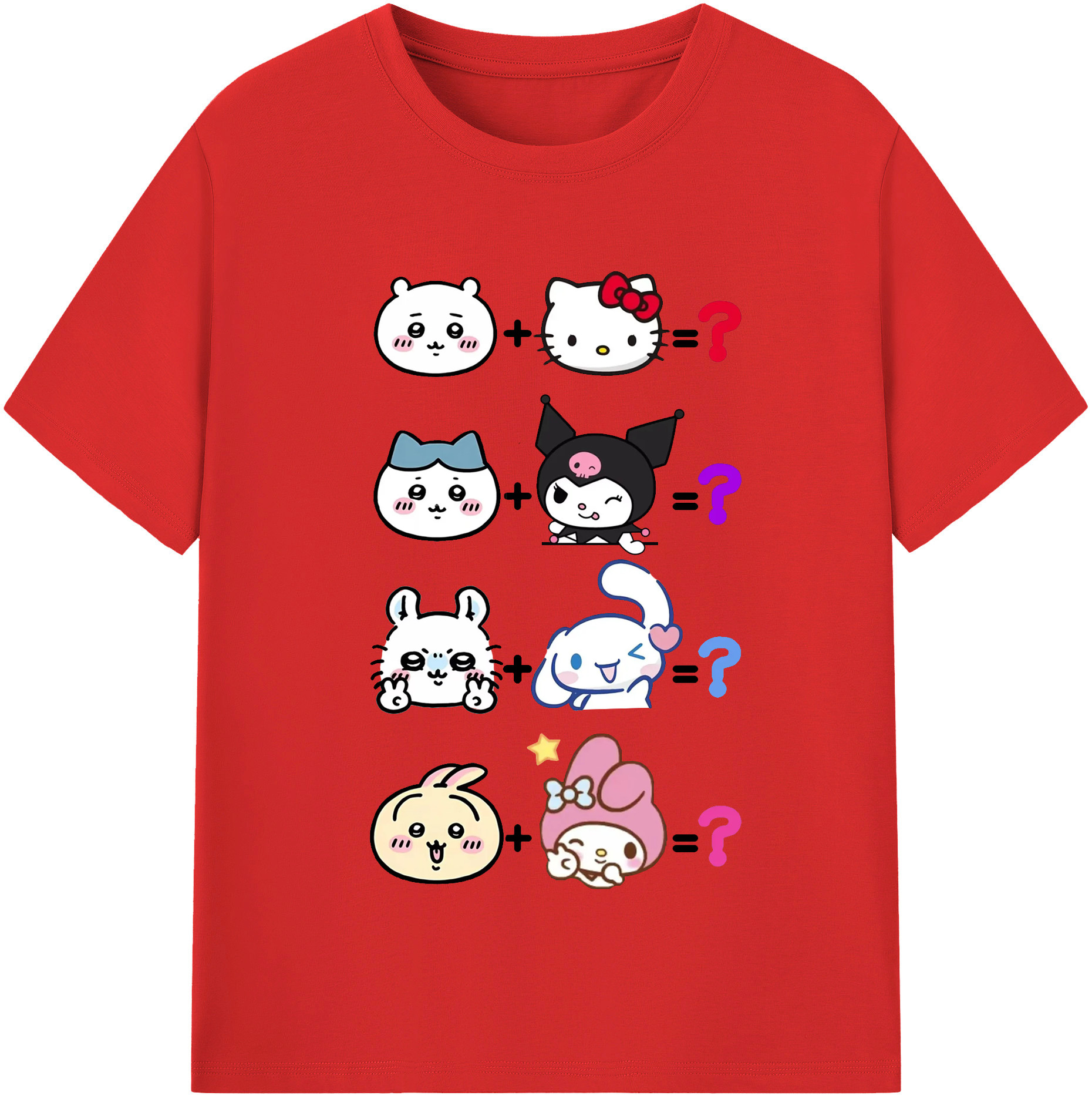 サンリオ&ちいかわ - レディースカジュアルプリントTシャツ ・ 綿100% ・ クルーネック ・ フロントプリント ・ 柔らかく快適 ・ フィットネス カジュアル 旅行用
