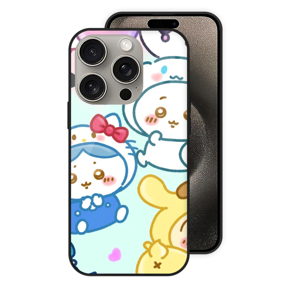サンリオ&なんか小さくてかわいいやつ - IPhone15Pro対応 ・ スマホケース ・ 背面ガラス ・ TPU+強化ガラス ・ 耐衝撃 ・ 黄変防止 ・ ワイヤレス充電対応 ・ 3D立体ボタン