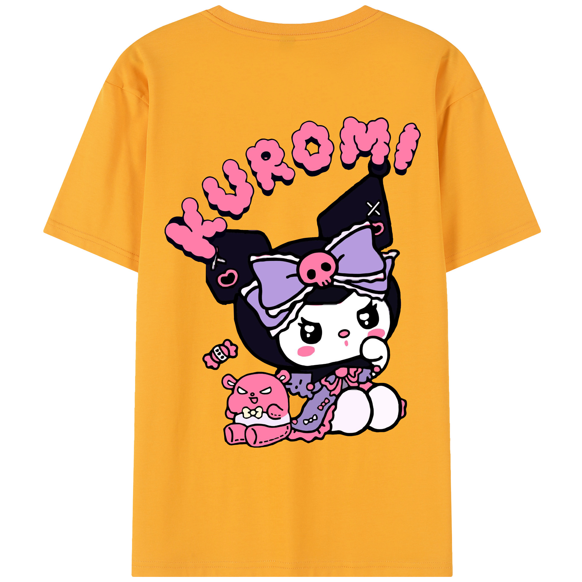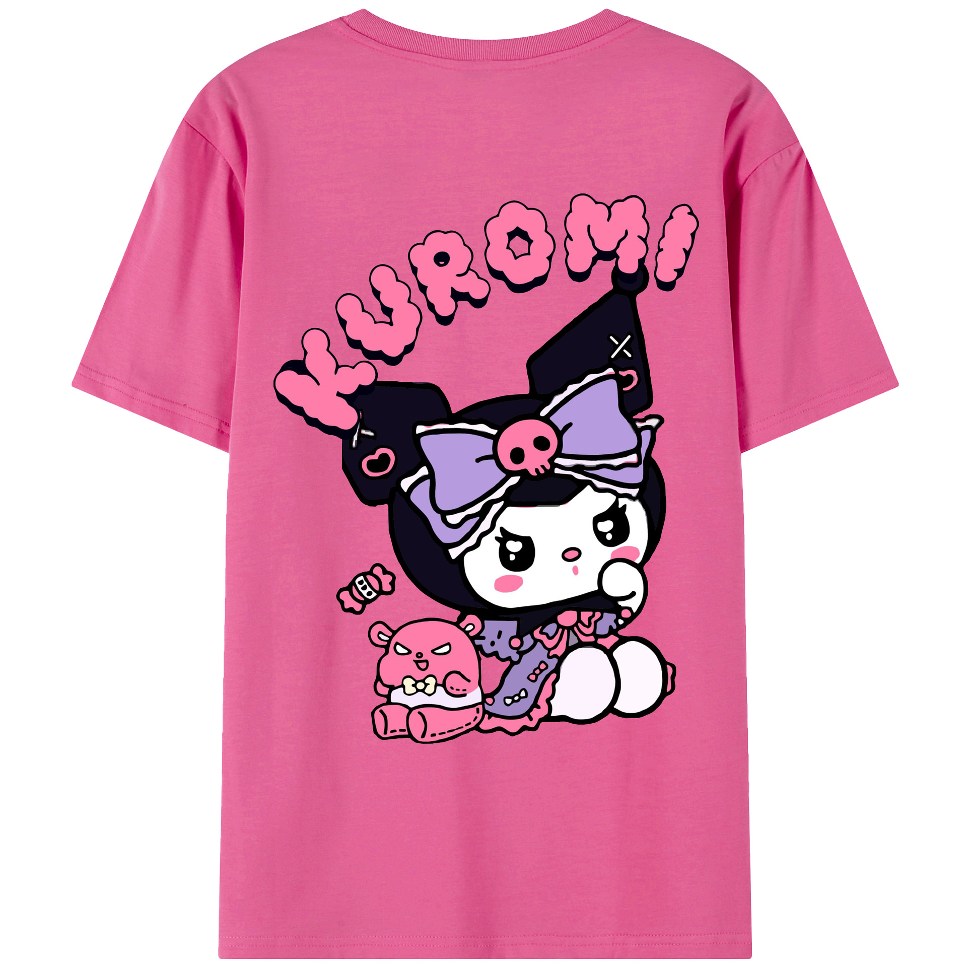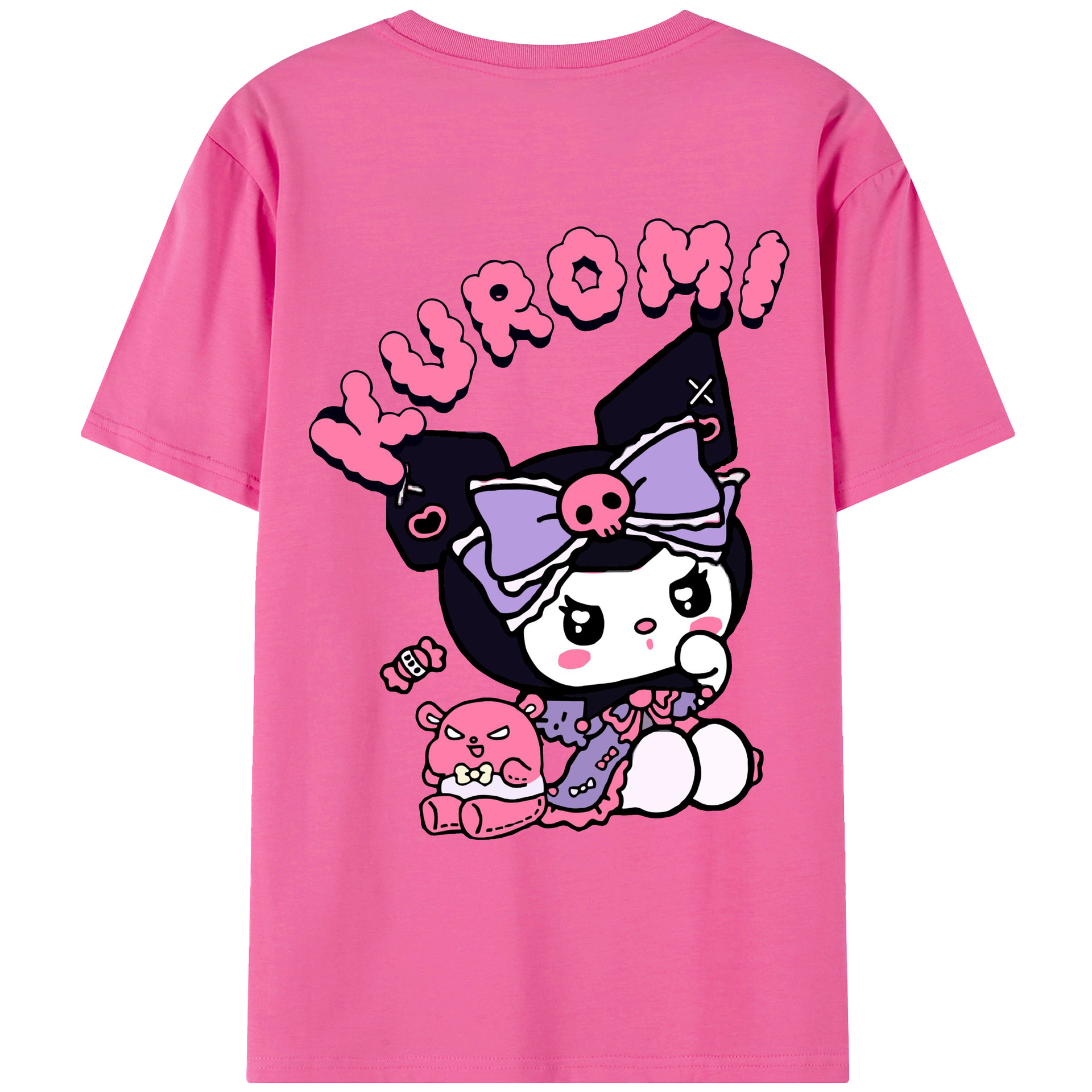 サンリオクロミ - レディース半袖Tシャツ ・ 綿100% ・ バックプリント ・ 強化クルーネック ・ 二重折り袖口 ・ 快適 通気性 ・ フィットネス カジュアル 旅行用