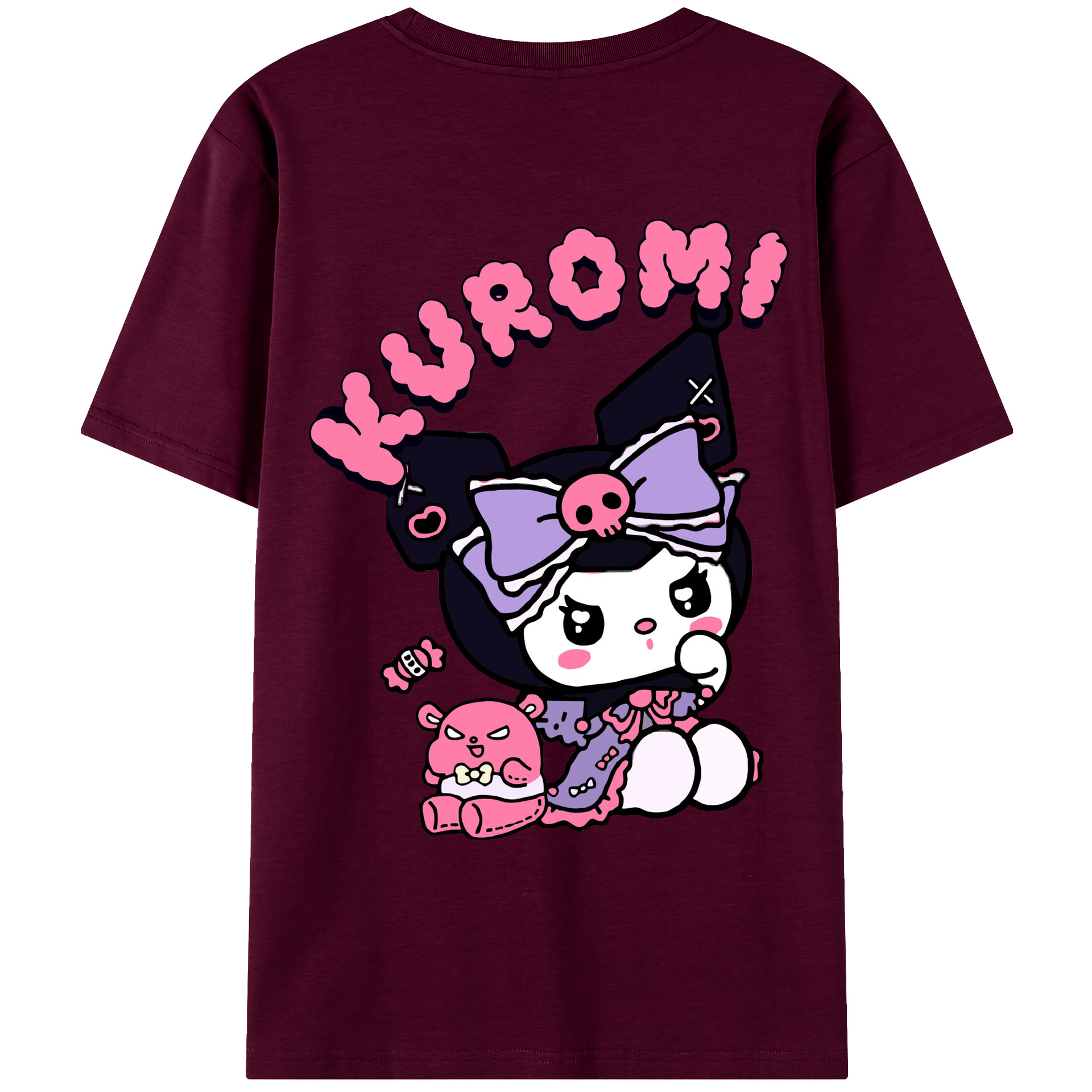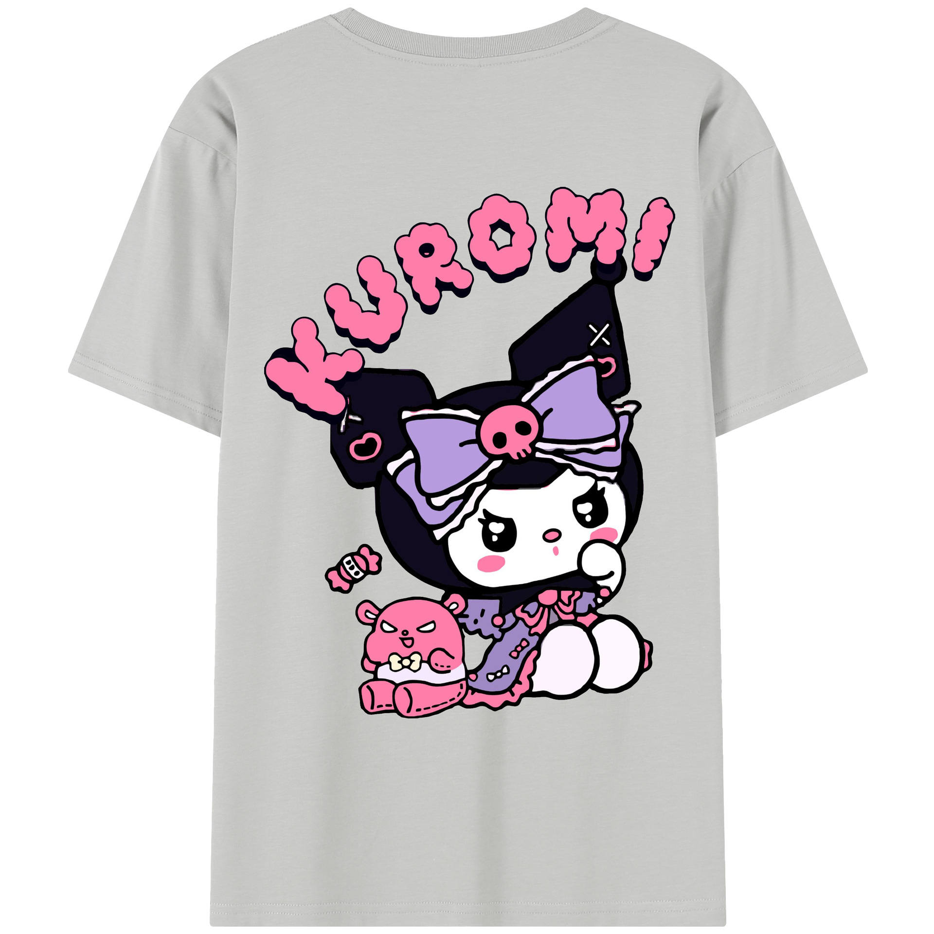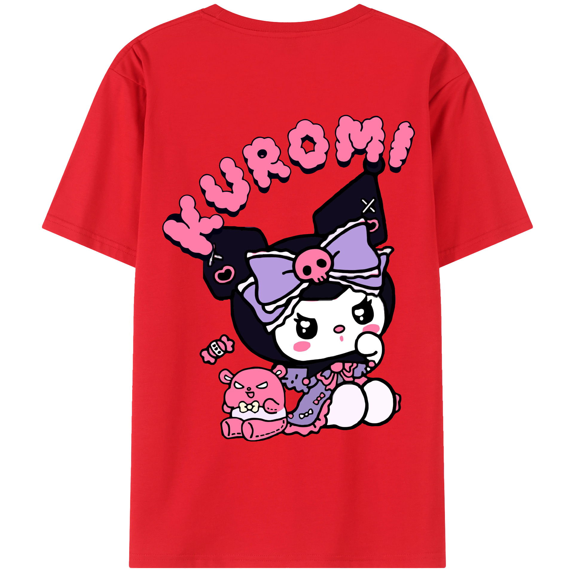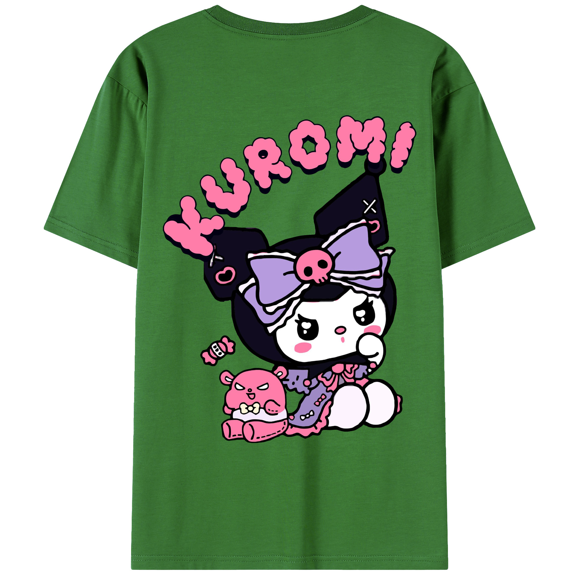 サンリオクロミ - レディース半袖Tシャツ ・ 綿100% ・ バックプリント ・ 強化クルーネック ・ 二重折り袖口 ・ 快適 通気性 ・ フィットネス カジュアル 旅行用