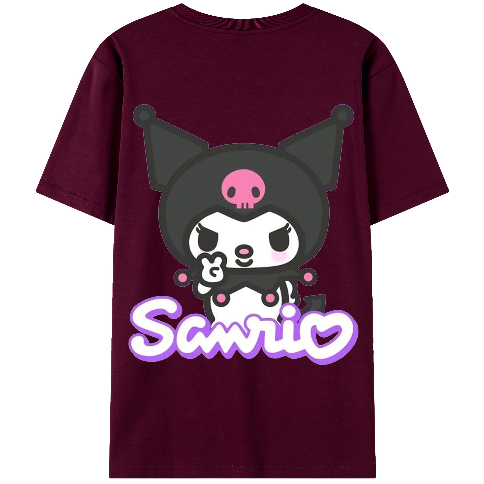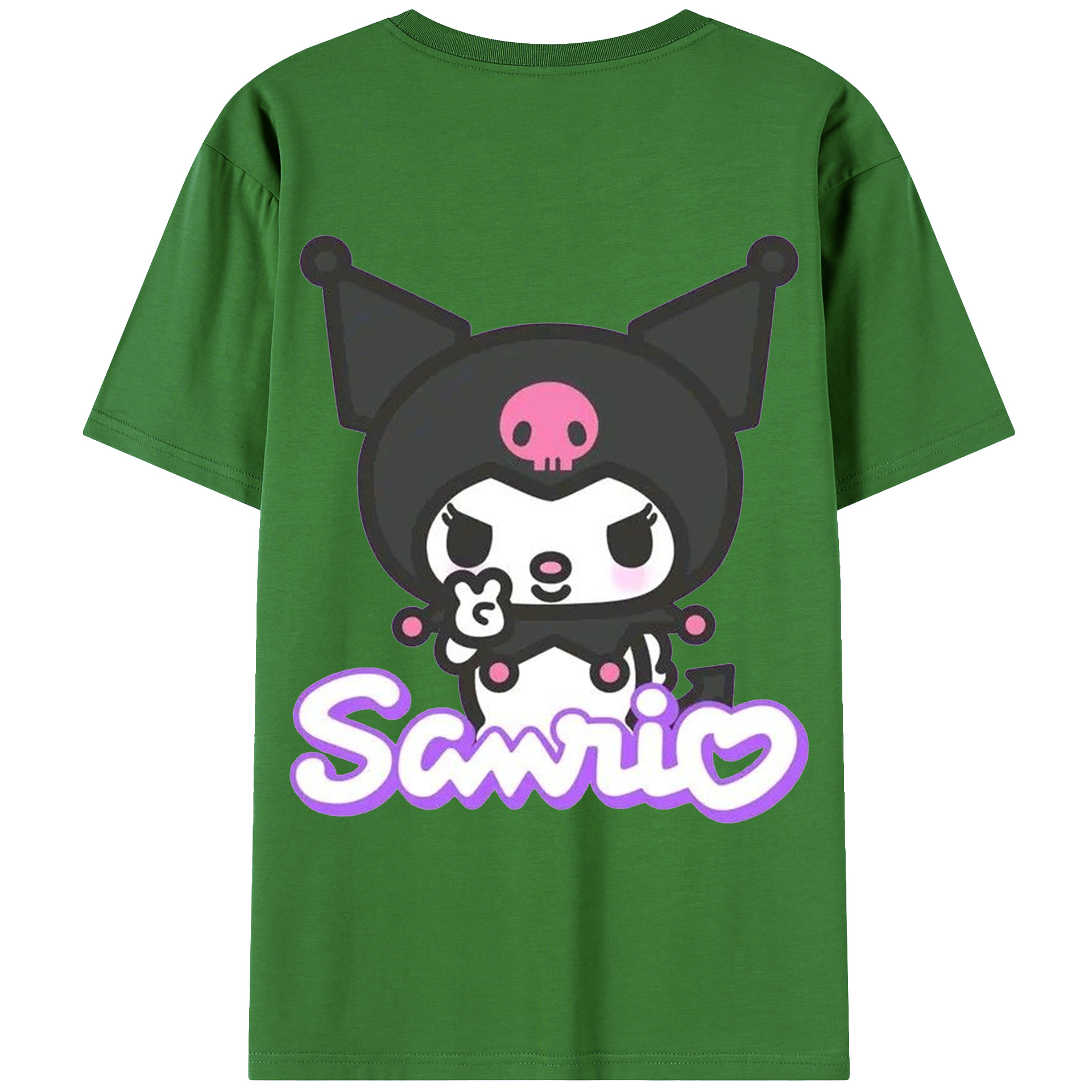 サンリオクロミ - 綿100% ヴィンテージ風 半袖Tシャツ ・ 背面プリント ・ 柔らか肌触り ・ 通気性 快適 ・ スポーツ カジュアル 外出用