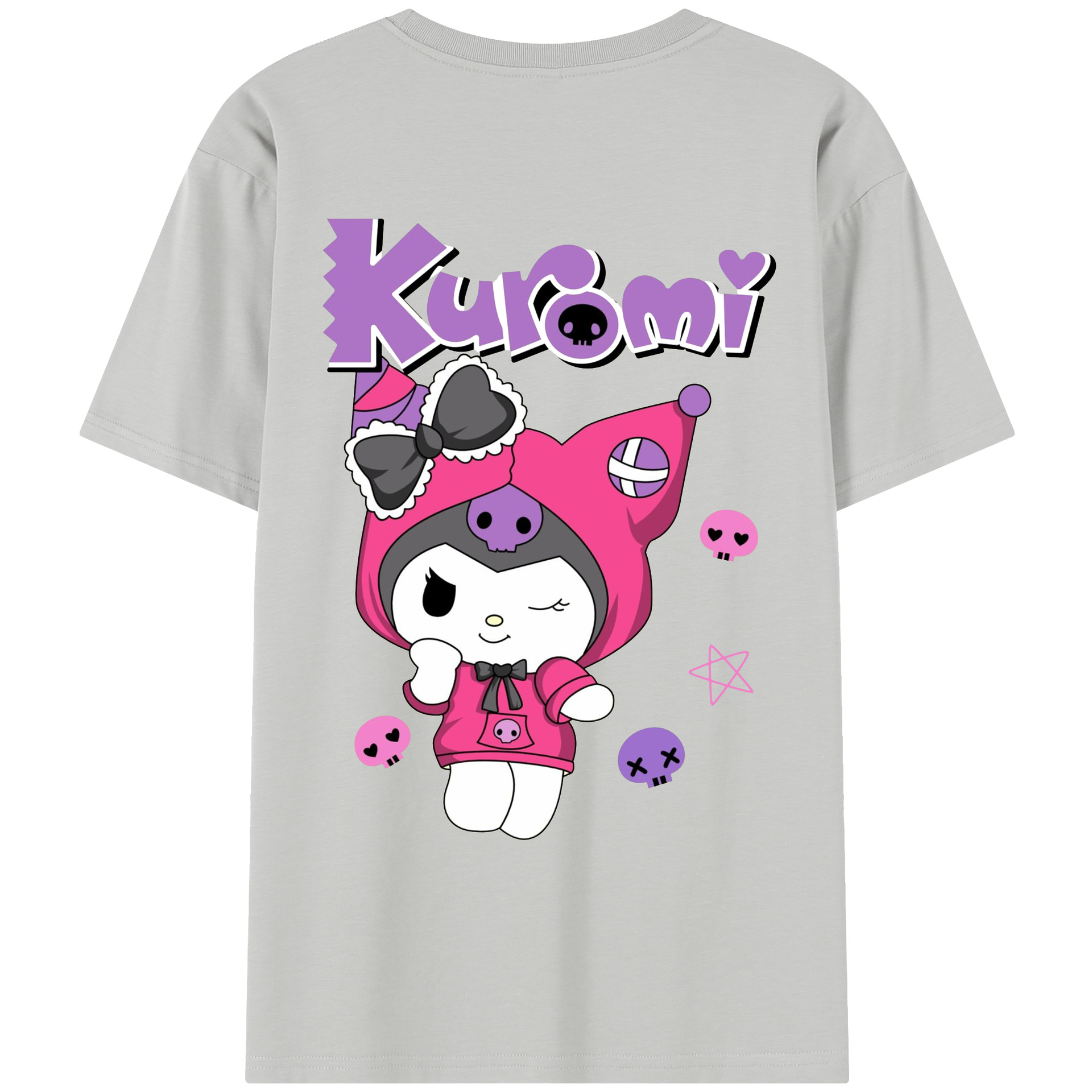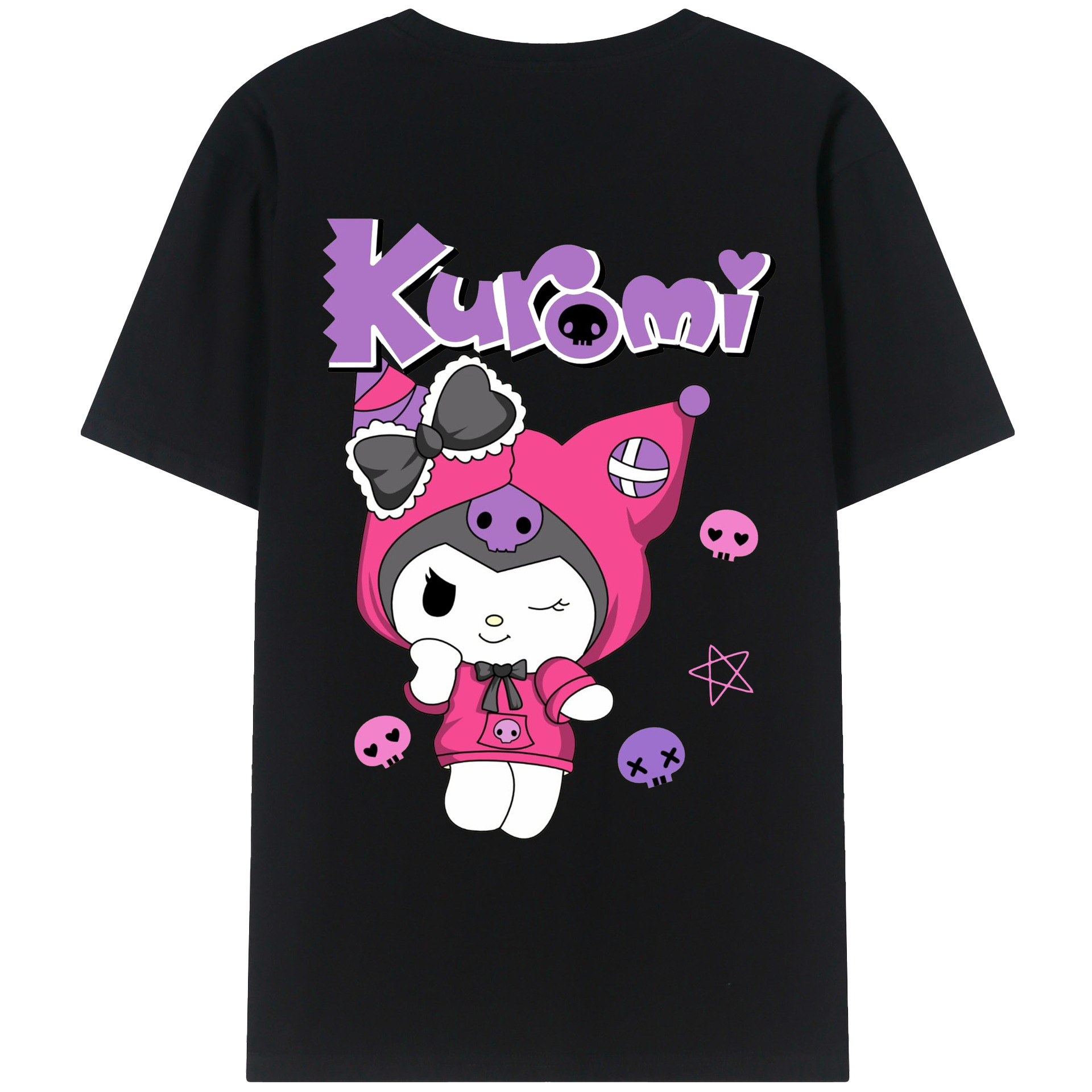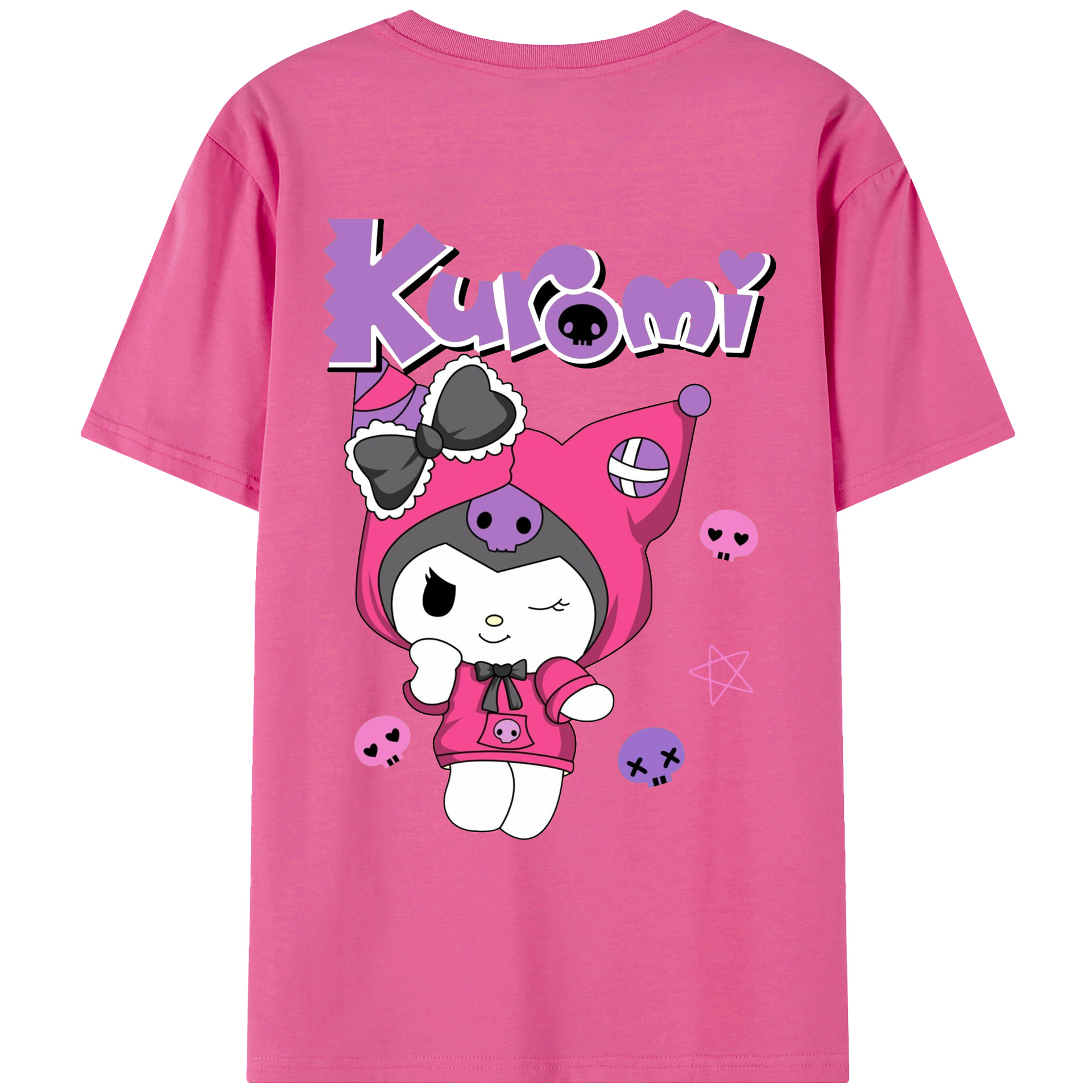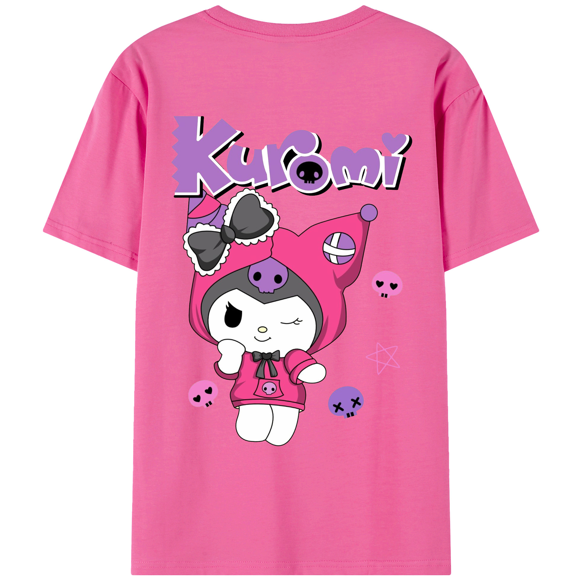サンリオクロミ - レディース半袖Tシャツ ・ 綿100% ・ バックプリント ・ 強化クルーネック ・ 二重折り袖口 ・ 快適 通気性 ・ フィットネス カジュアル 旅行用