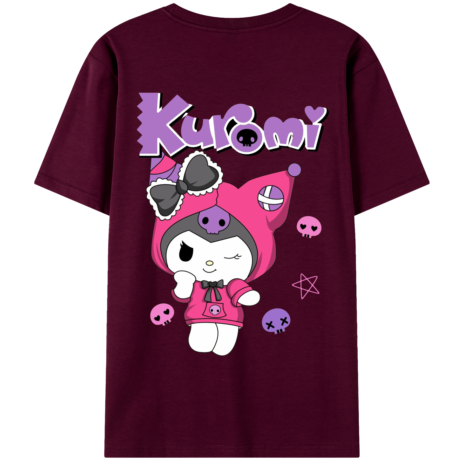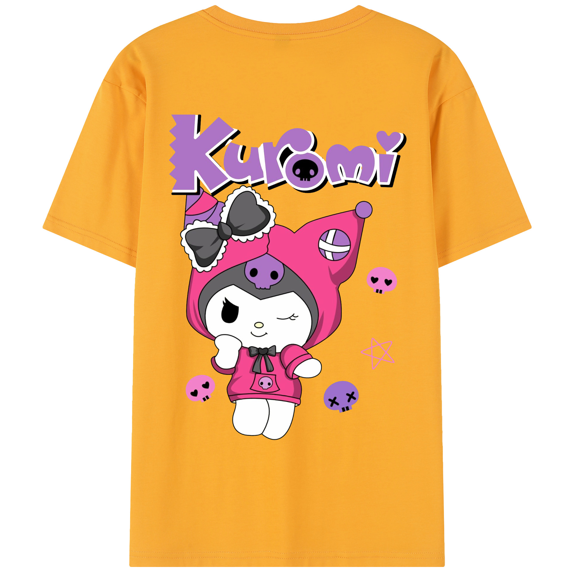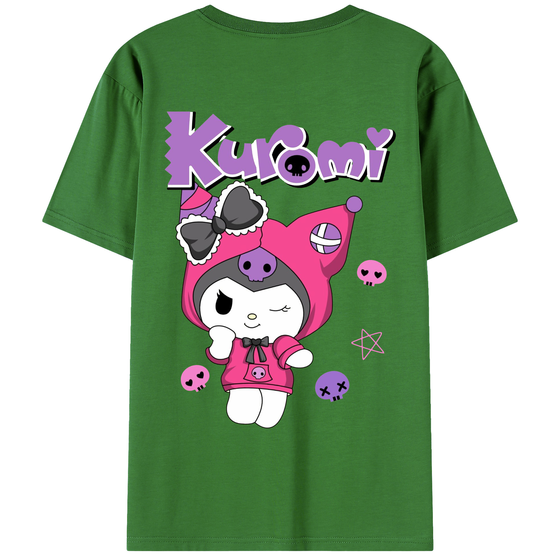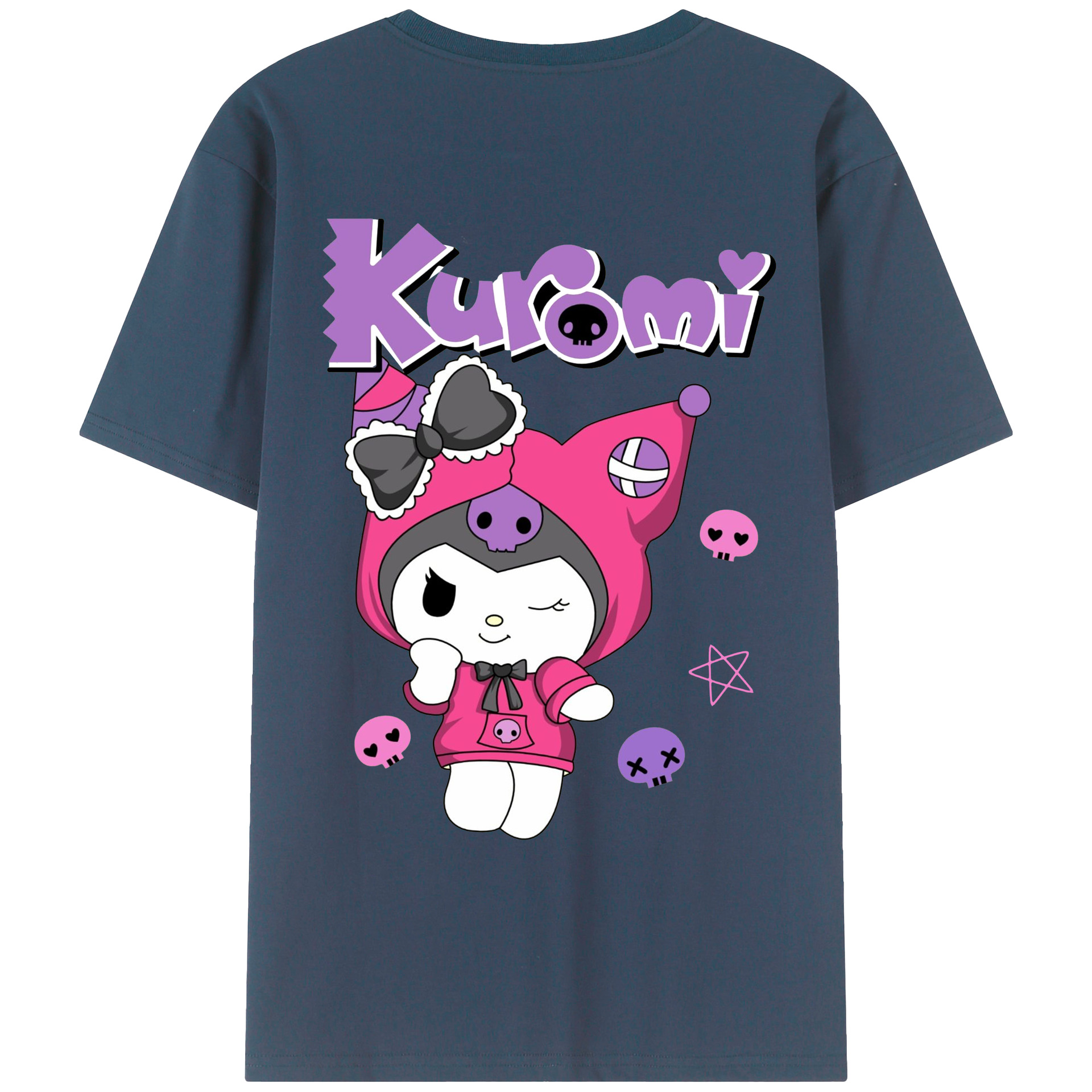 サンリオクロミ - レディース半袖Tシャツ ・ 綿100% ・ バックプリント ・ 強化クルーネック ・ 二重折り袖口 ・ 快適 通気性 ・ フィットネス カジュアル 旅行用