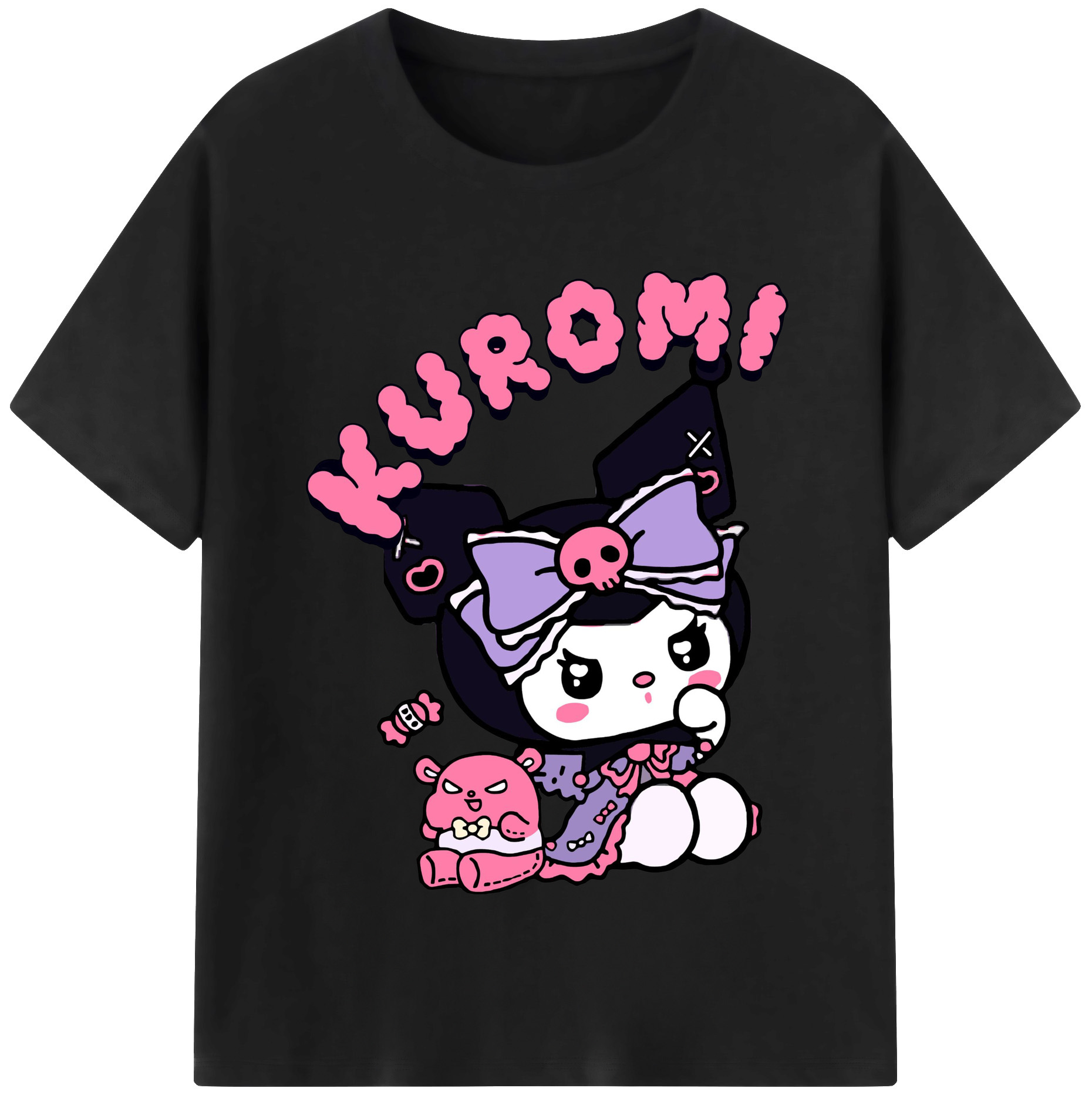 サンリオクロミ - レディースカジュアルプリントTシャツ ・ 綿100% ・ クルーネック ・ フロントプリント ・ 柔らかく快適 ・ フィットネス カジュアル 旅行用