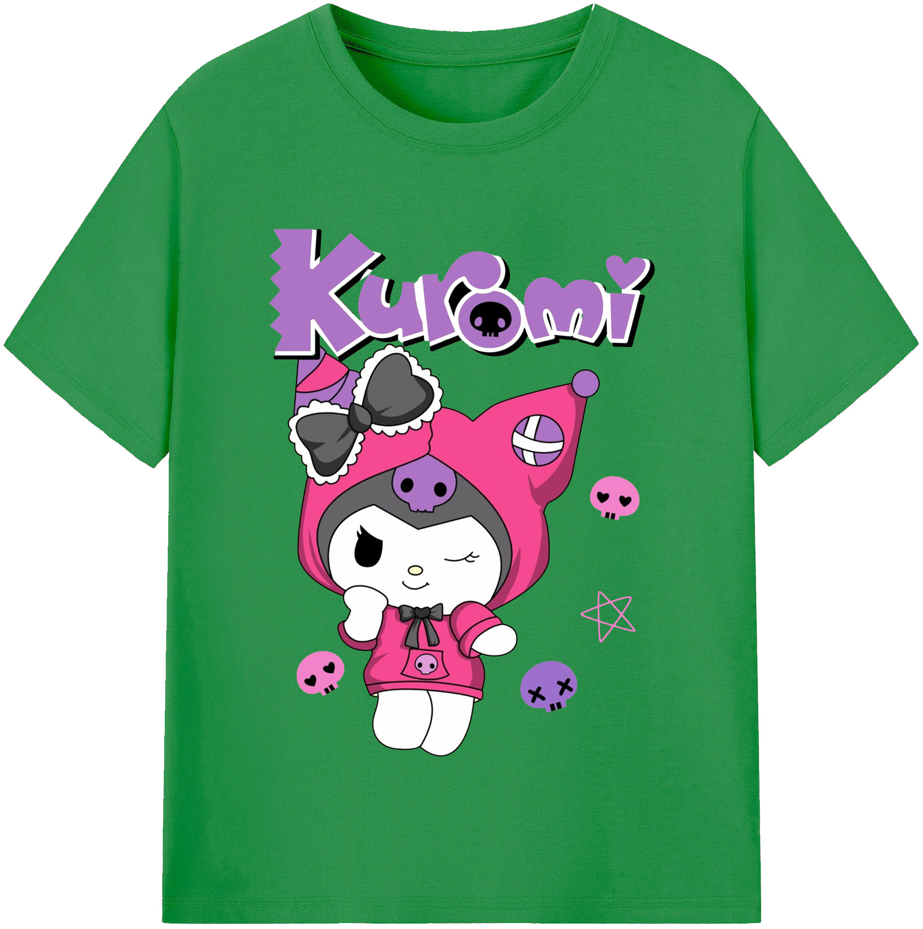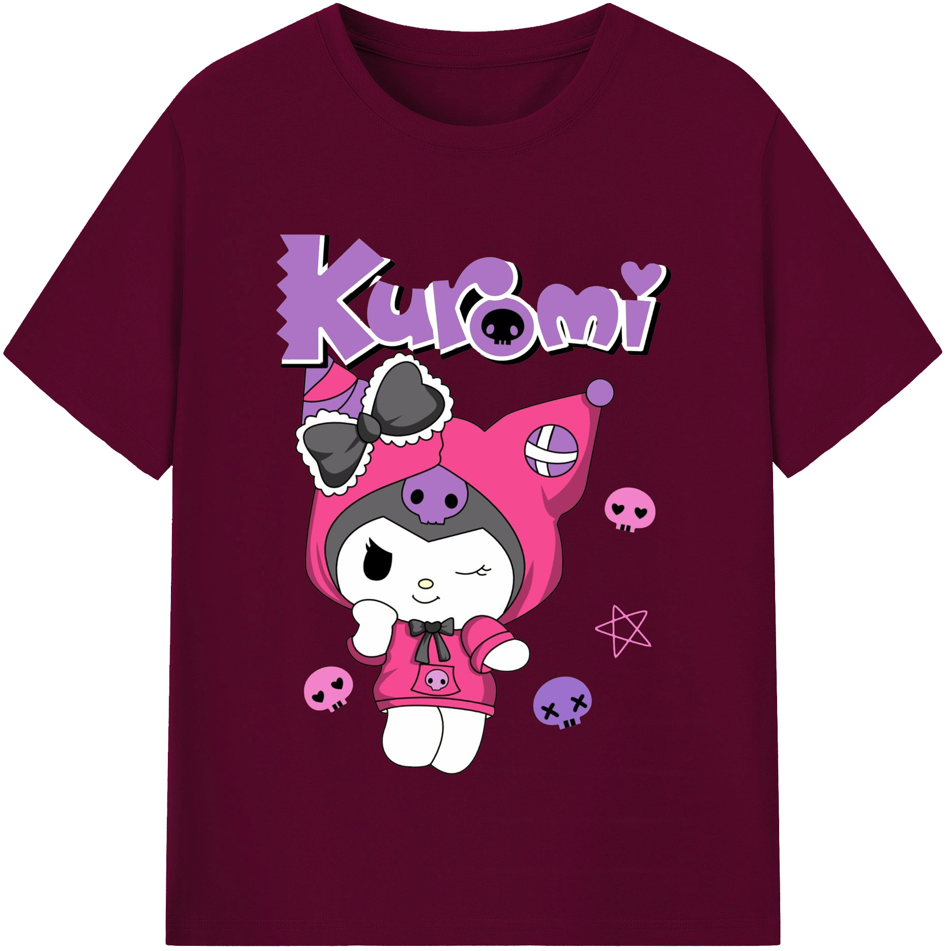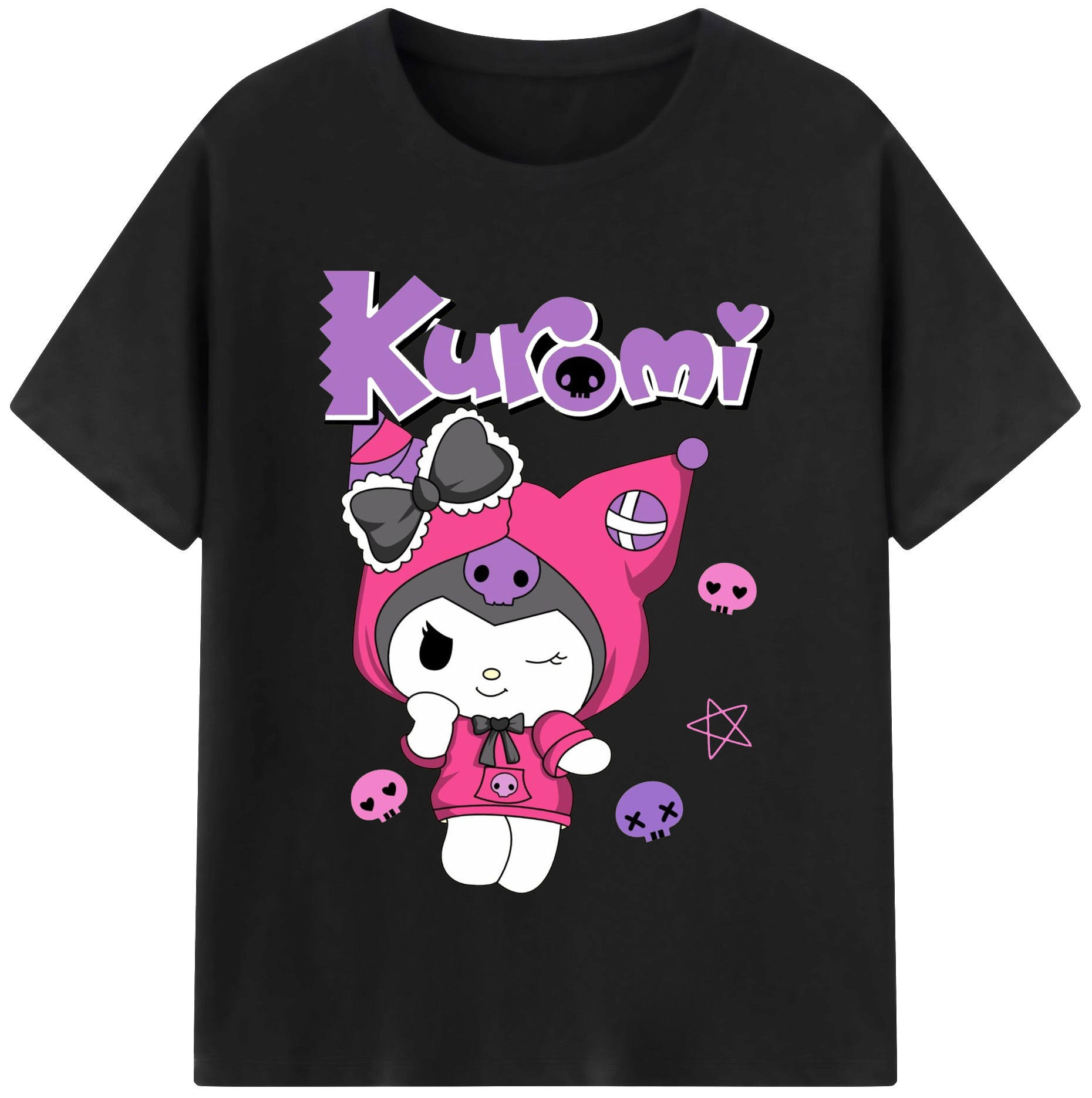 サンリオクロミ - レディースカジュアルプリントTシャツ ・ 綿100% ・ クルーネック ・ フロントプリント ・ 柔らかく快適 ・ フィットネス カジュアル 旅行用