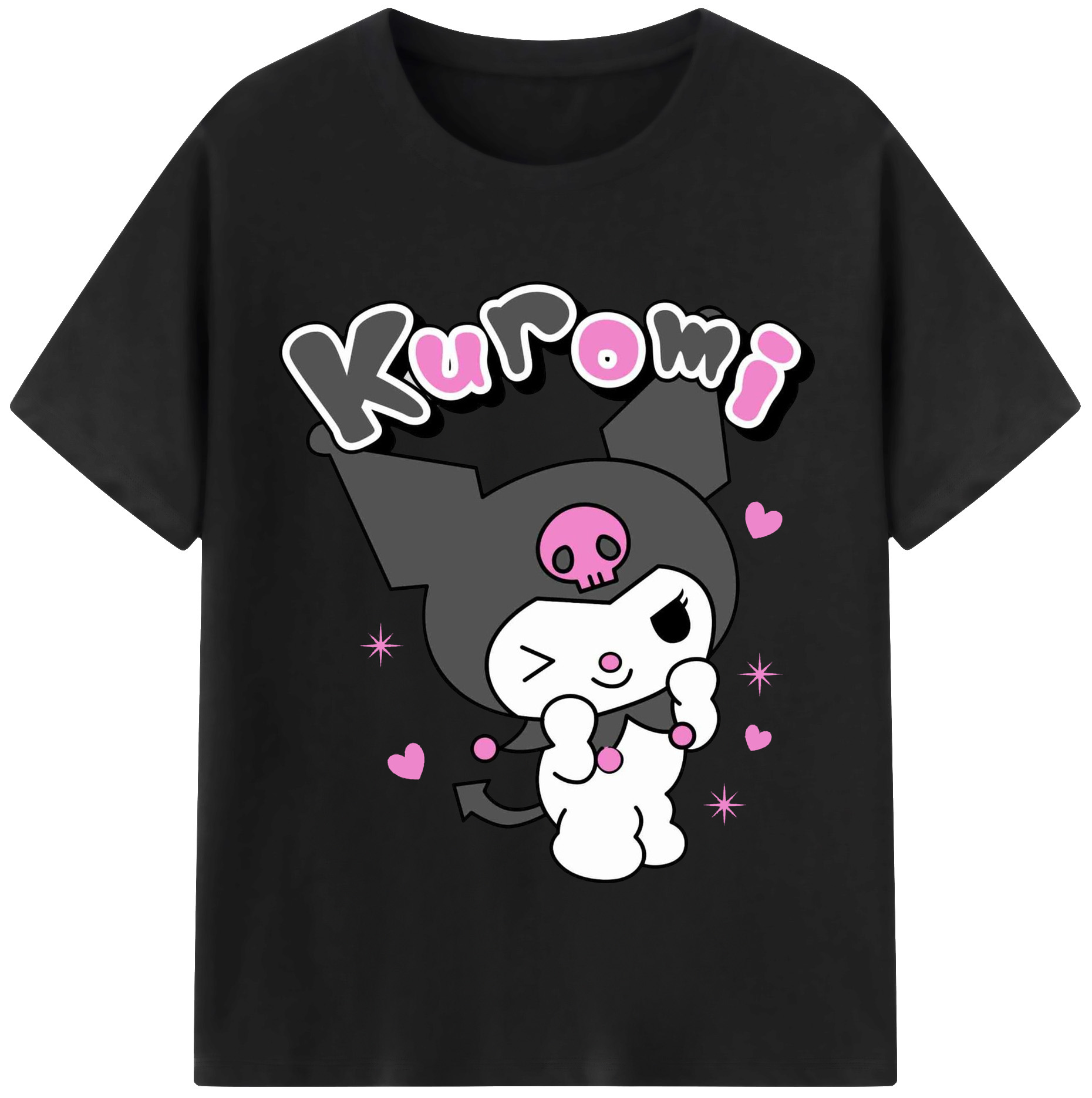 サンリオクロミ - レディースカジュアルプリントTシャツ ・ 綿100% ・ クルーネック ・ フロントプリント ・ 柔らかく快適 ・ フィットネス カジュアル 旅行用