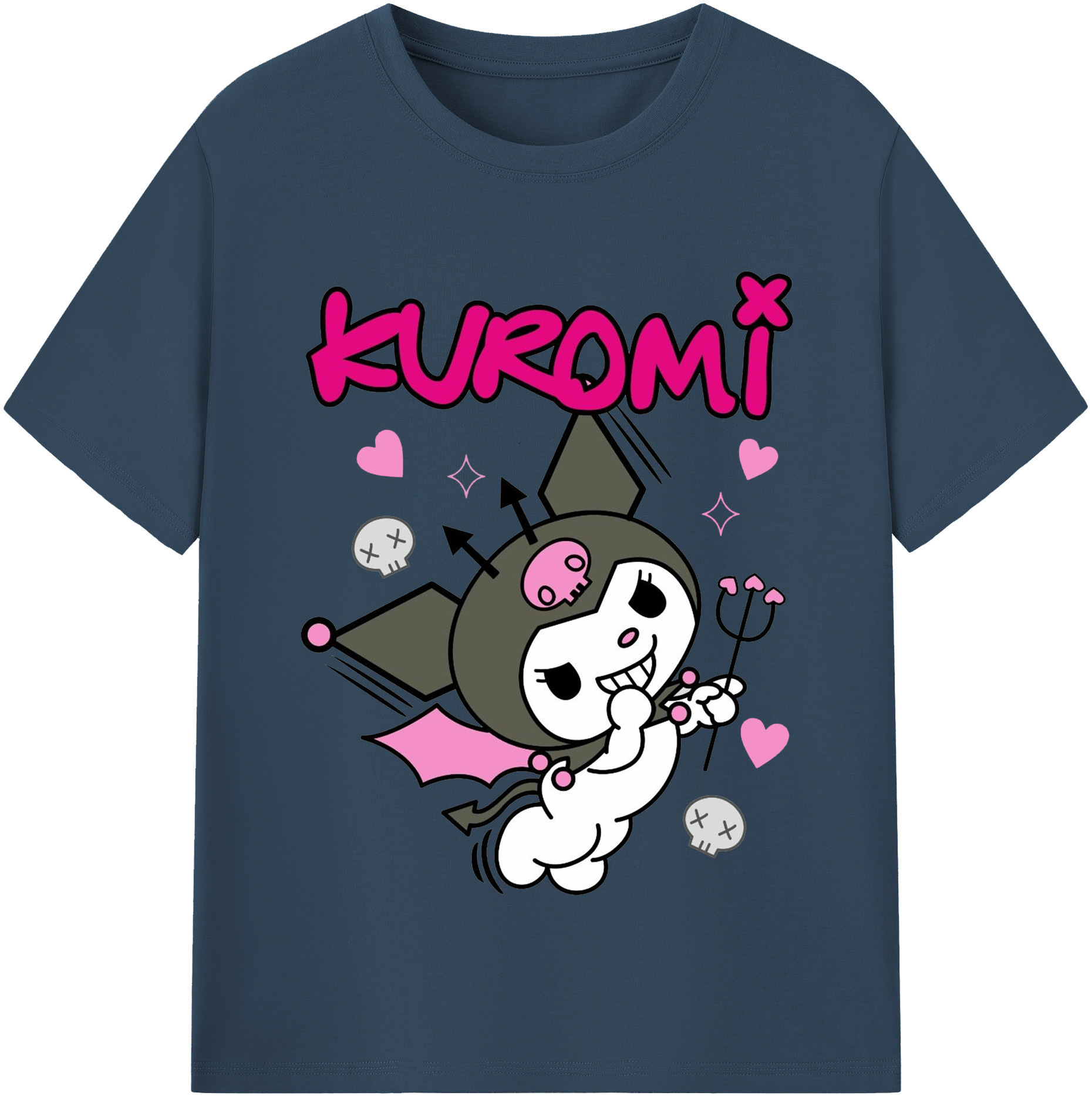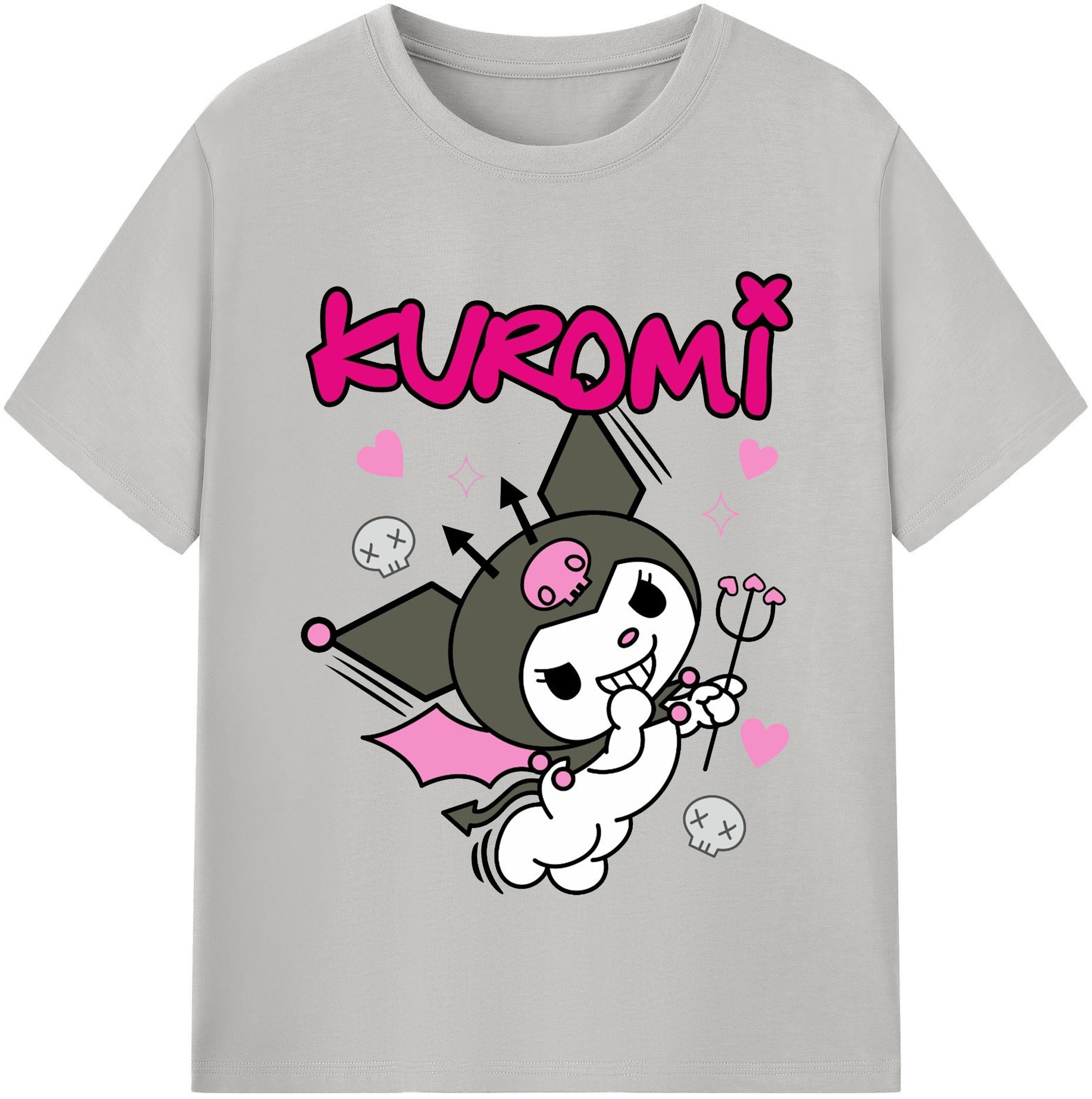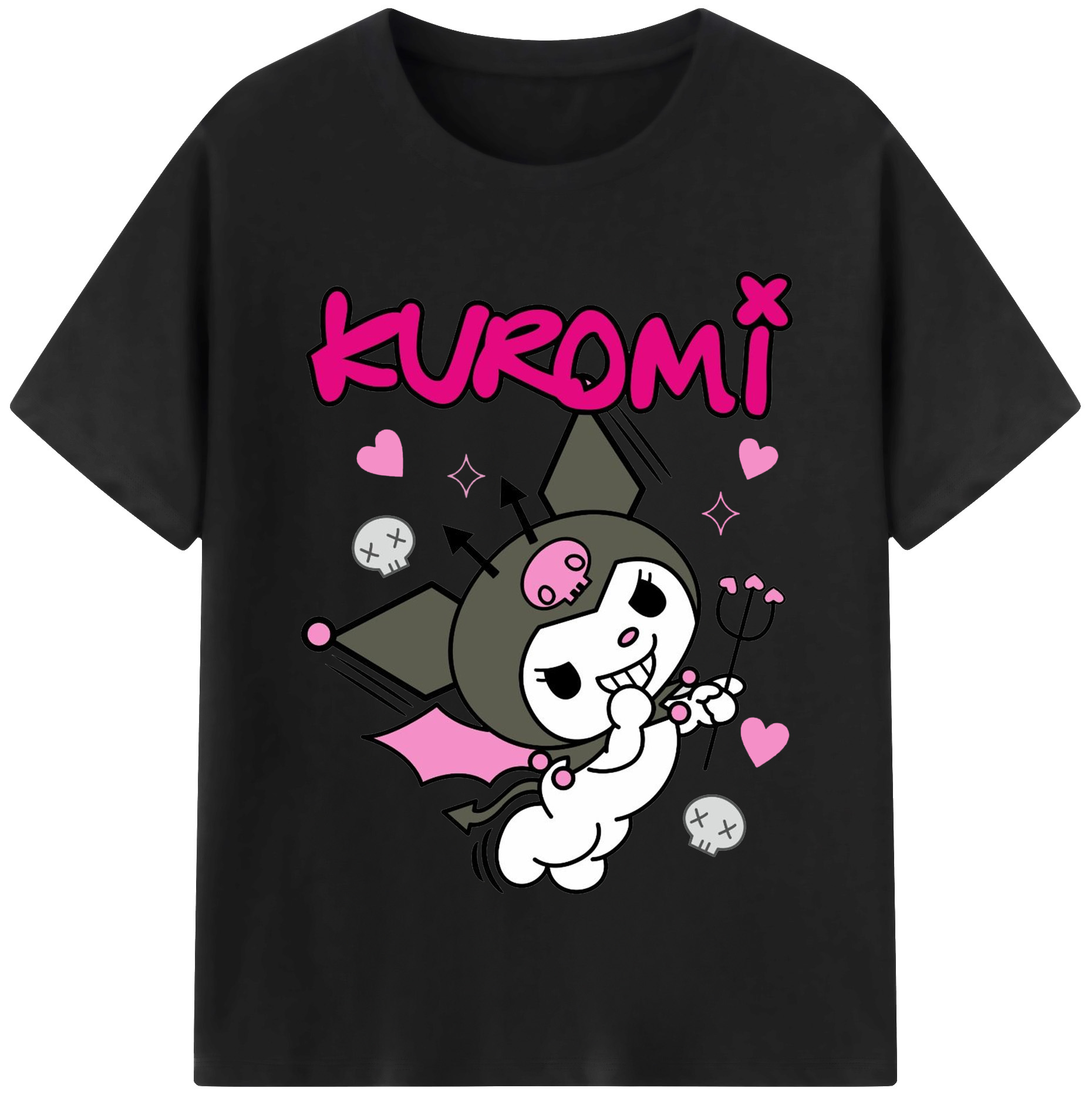 サンリオクロミ - レディースカジュアルプリントTシャツ ・ 綿100% ・ クルーネック ・ フロントプリント ・ 柔らかく快適 ・ フィットネス カジュアル 旅行用
