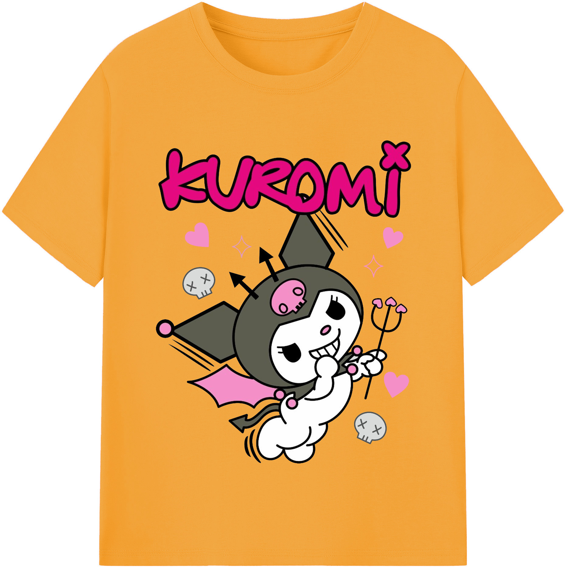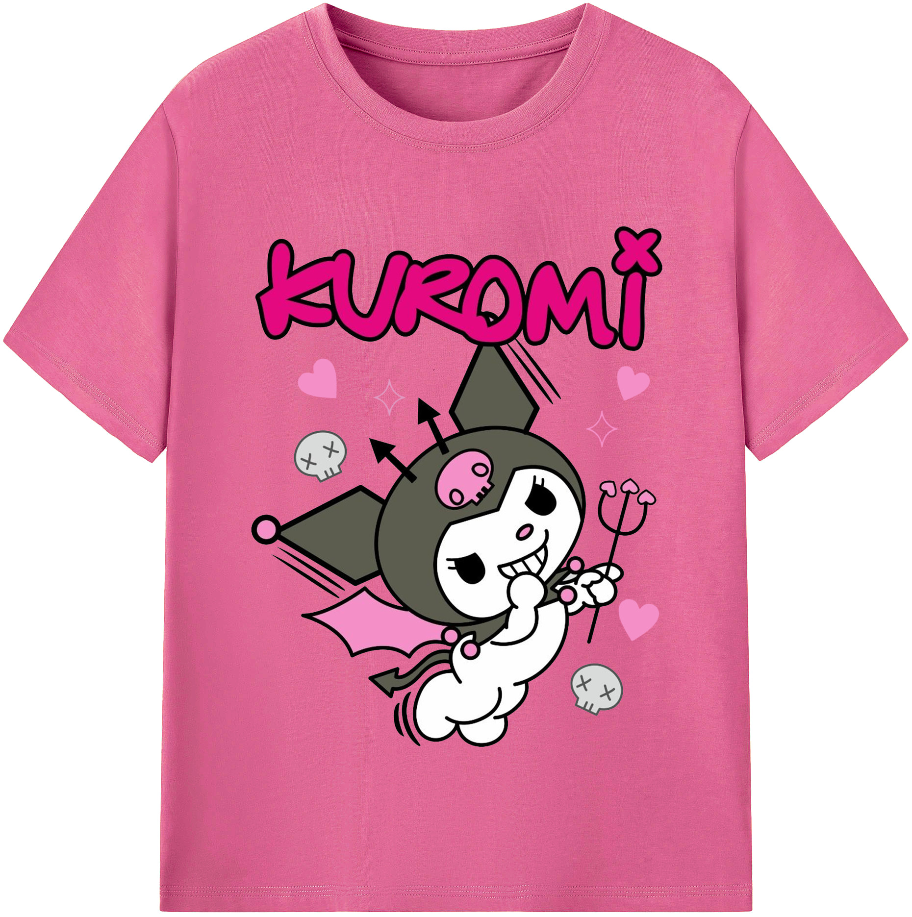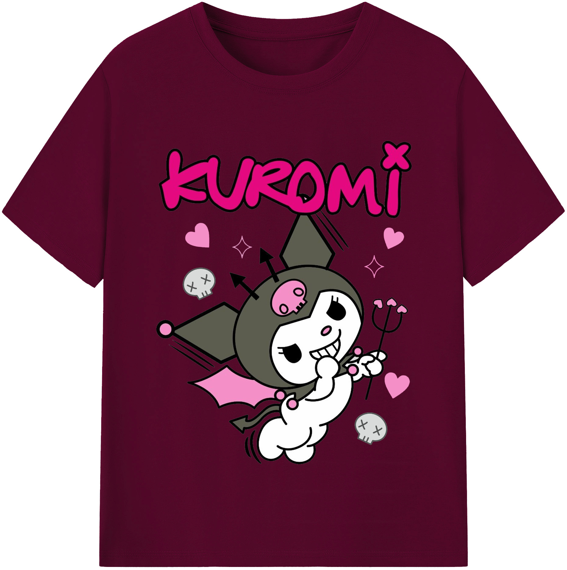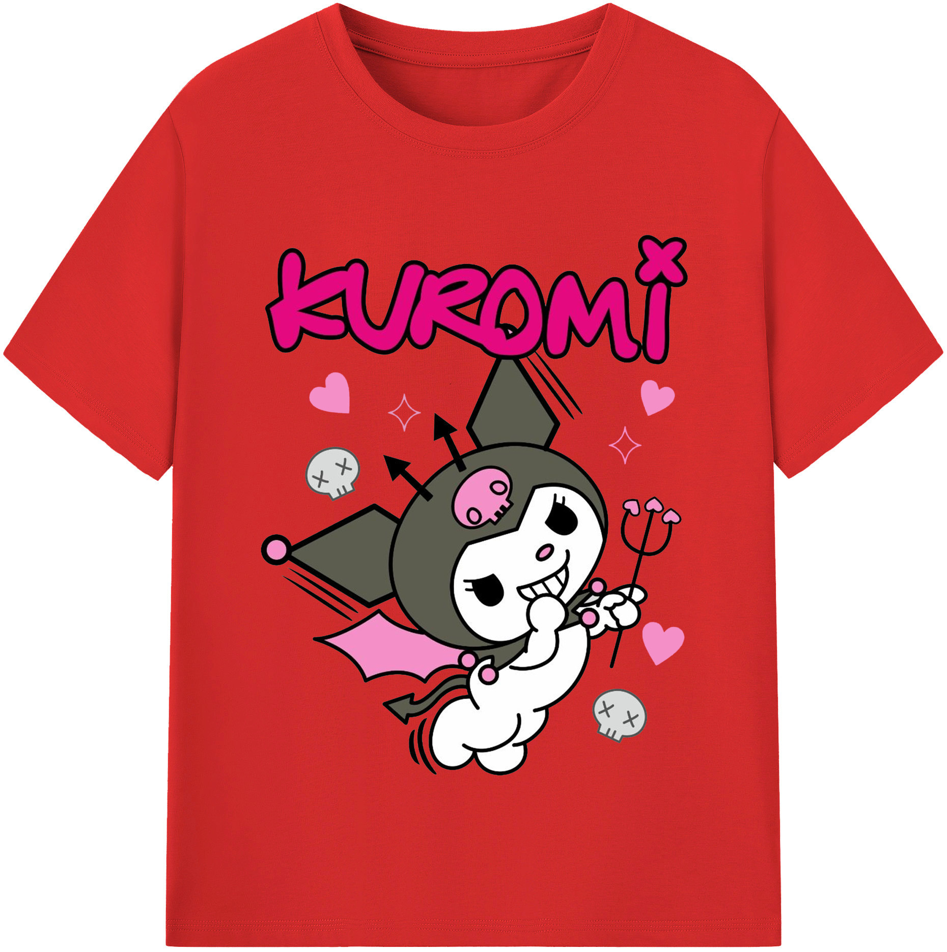 サンリオクロミ - レディースカジュアルプリントTシャツ ・ 綿100% ・ クルーネック ・ フロントプリント ・ 柔らかく快適 ・ フィットネス カジュアル 旅行用