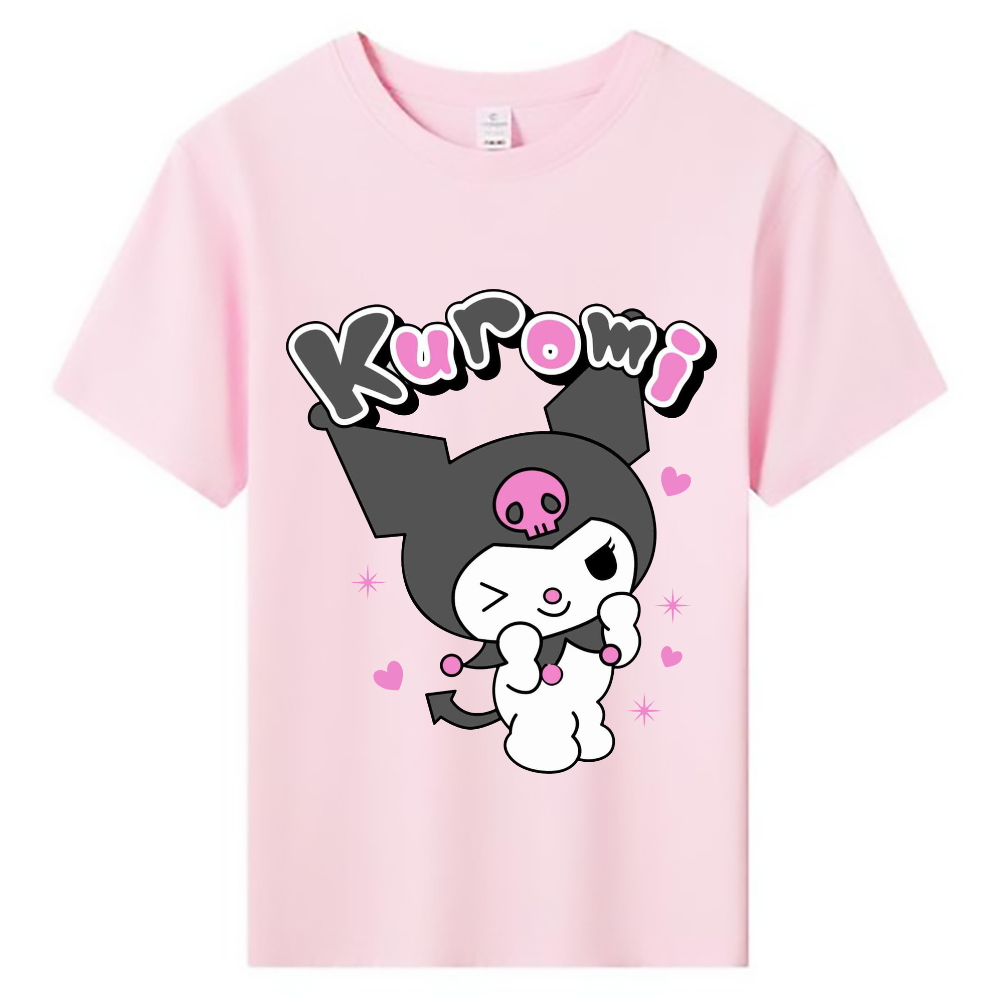 サンリオクロミ - 綿100% ヴィンテージ風 半袖Tシャツ ・ フロントプリント ・ 柔らか肌触り ・ 通気性 快適 ・ スポーツ カジュアル 外出用