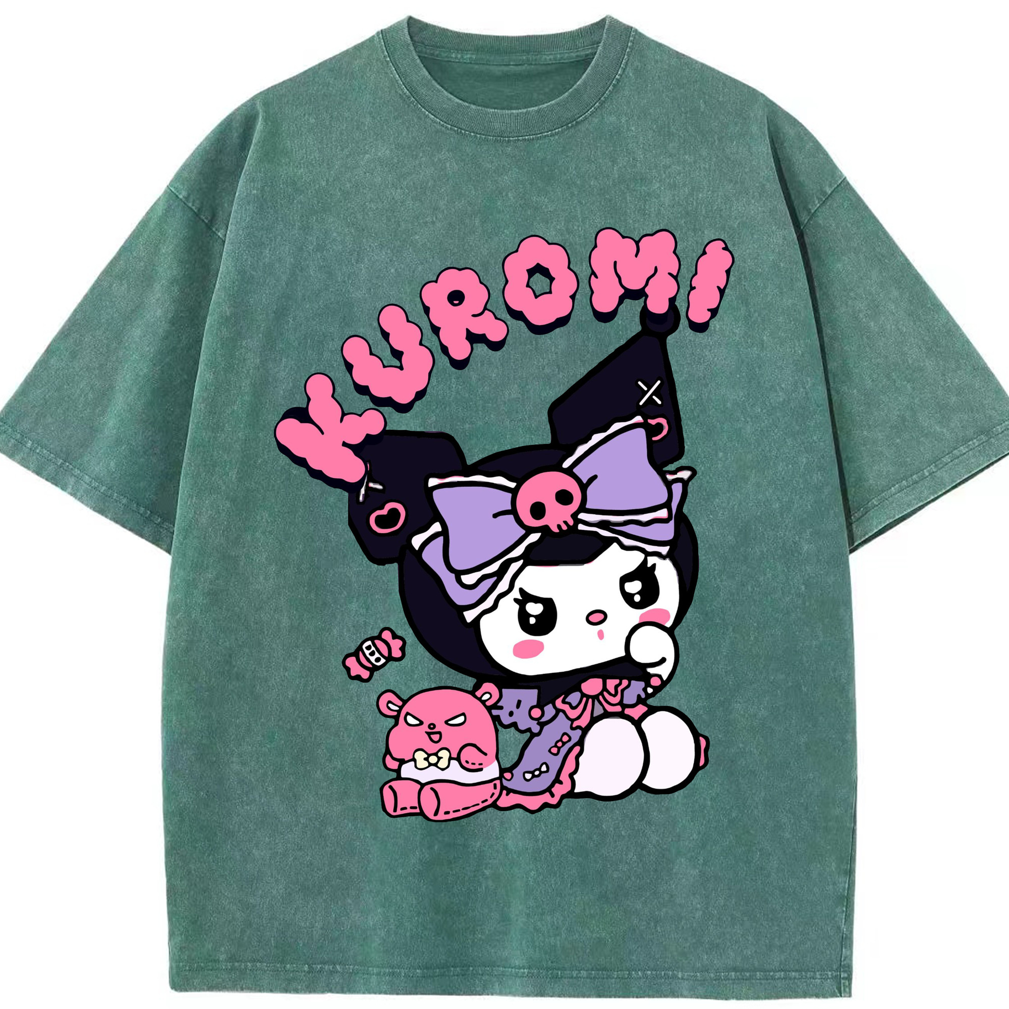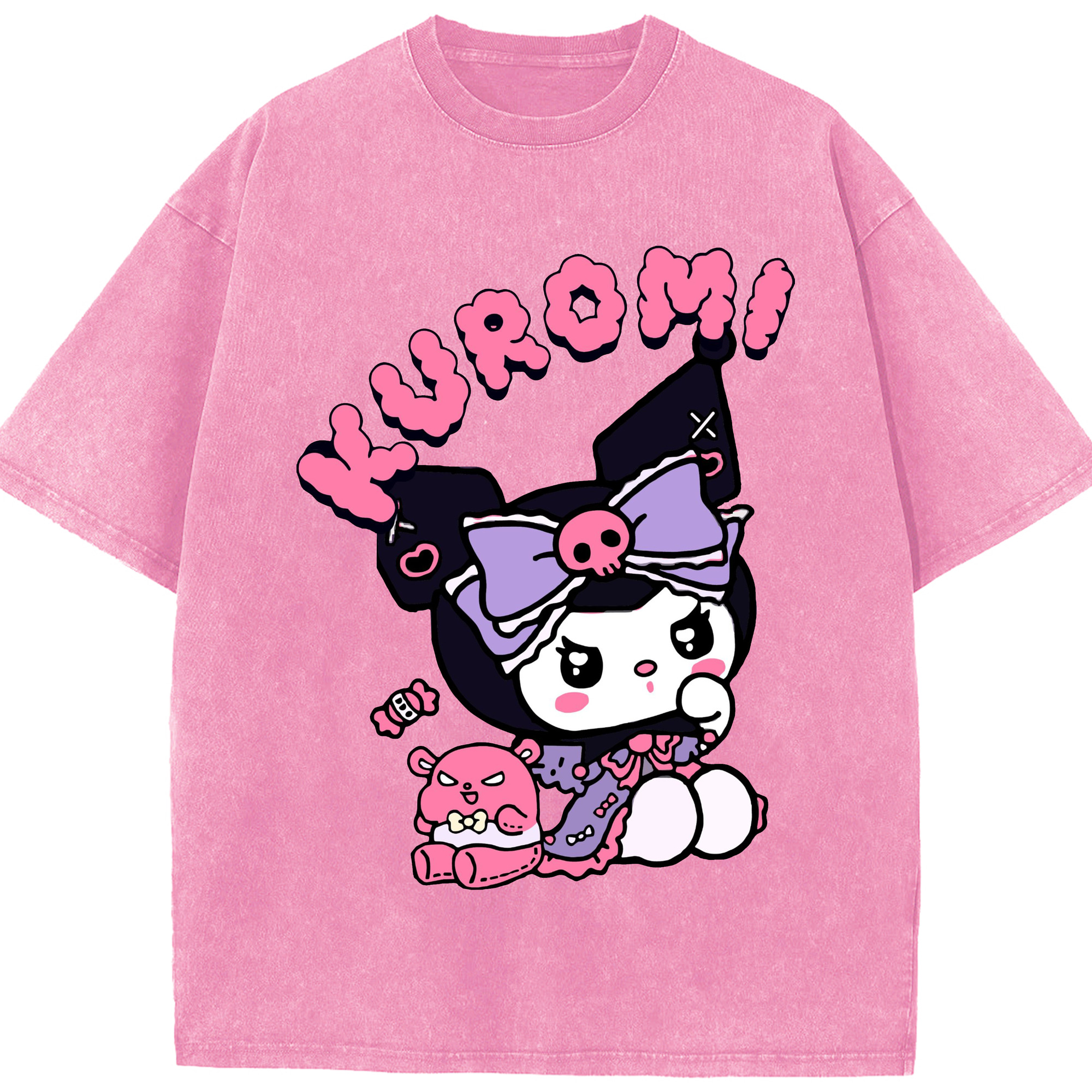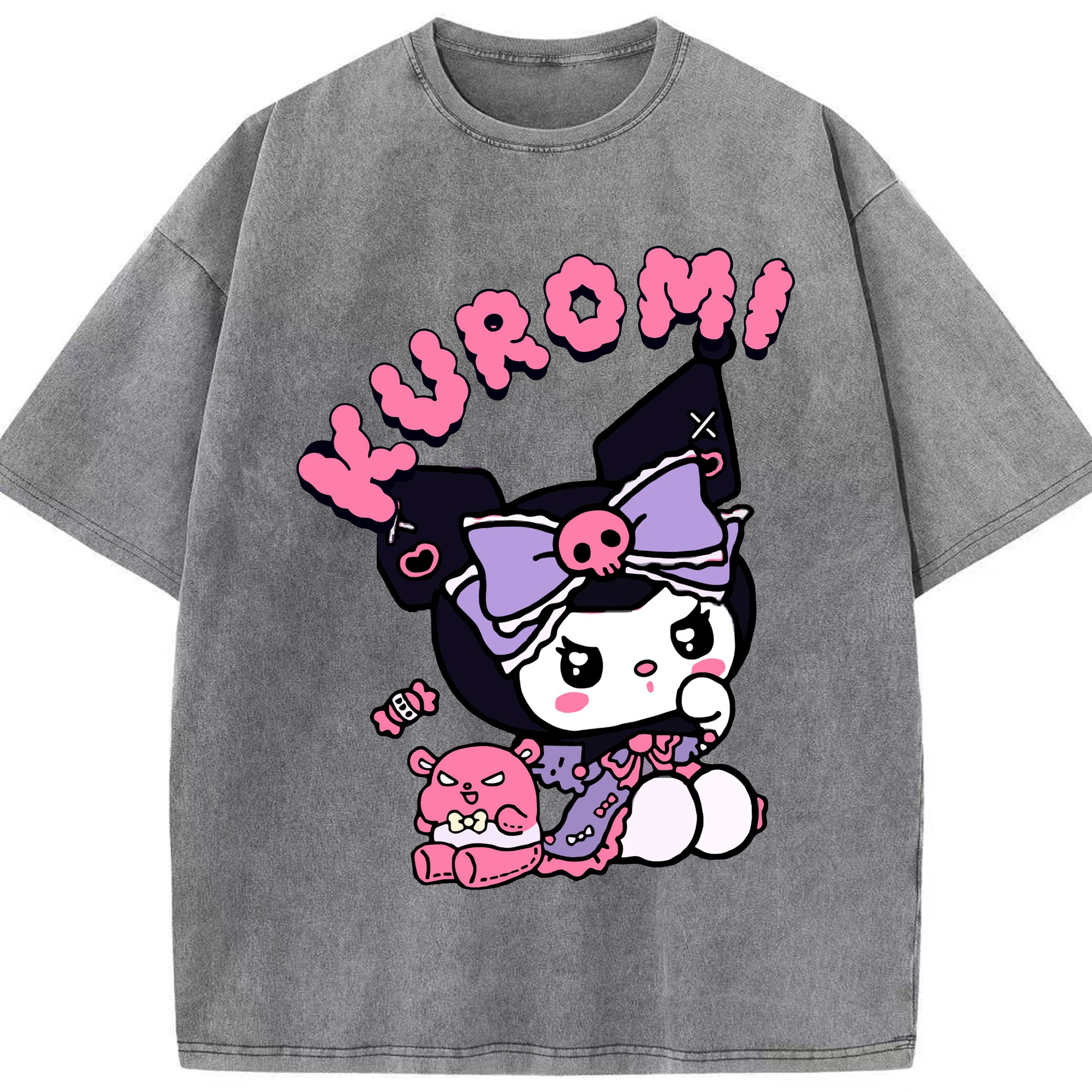 サンリオクロミ - 綿100% ヴィンテージ風 半袖Tシャツ ・ 背面プリント ・ 柔らか肌触り ・ 通気性 快適 ・ スポーツ カジュアル 外出用