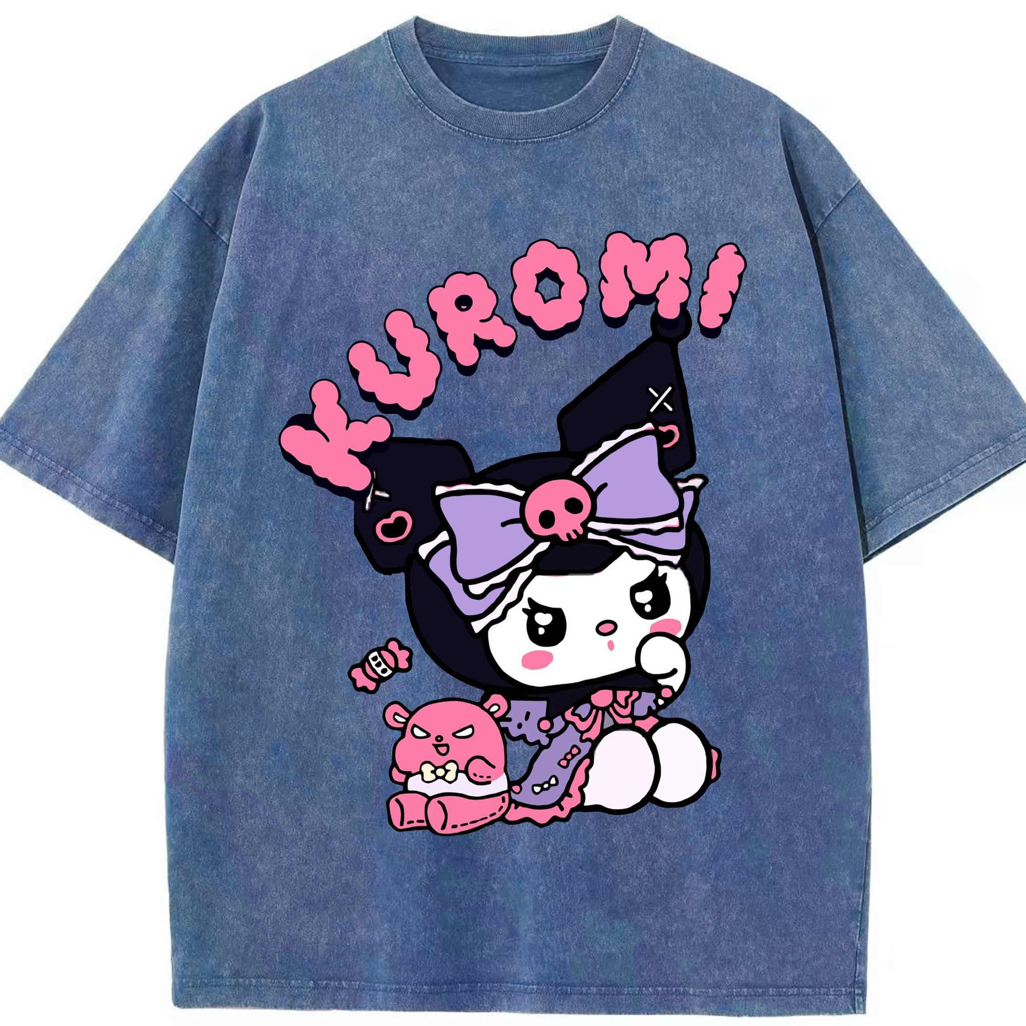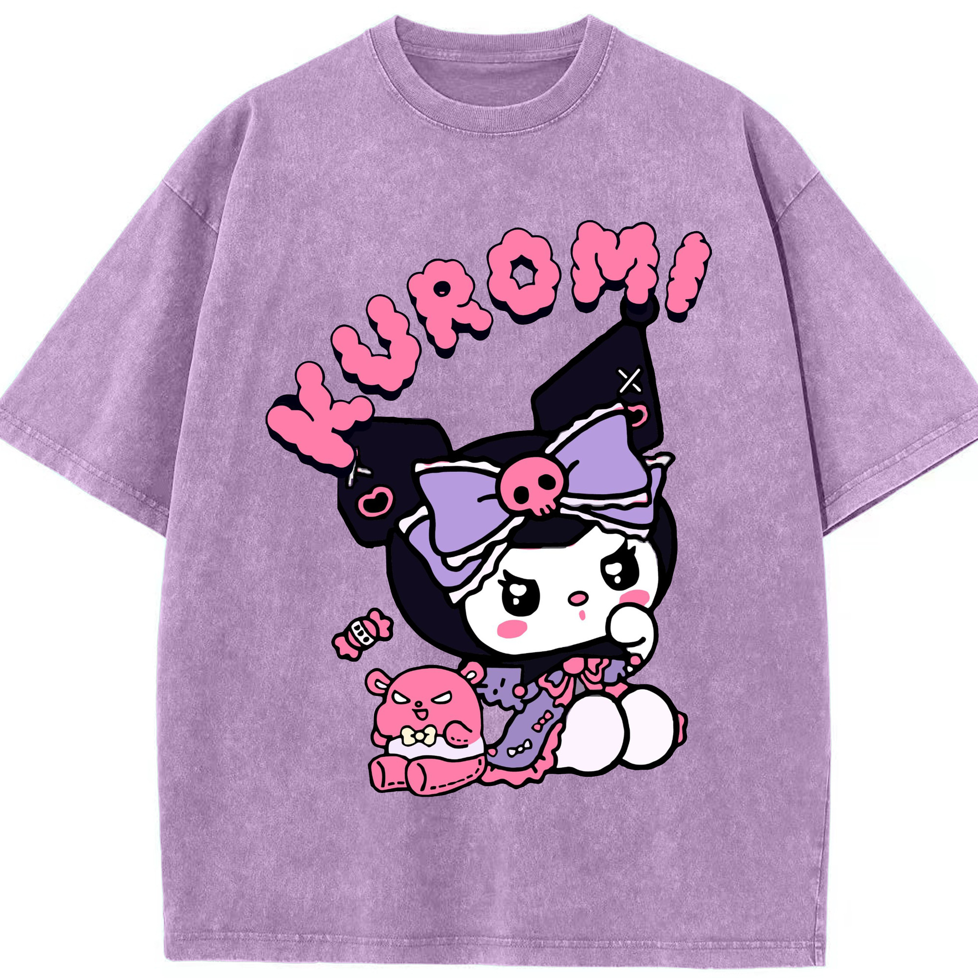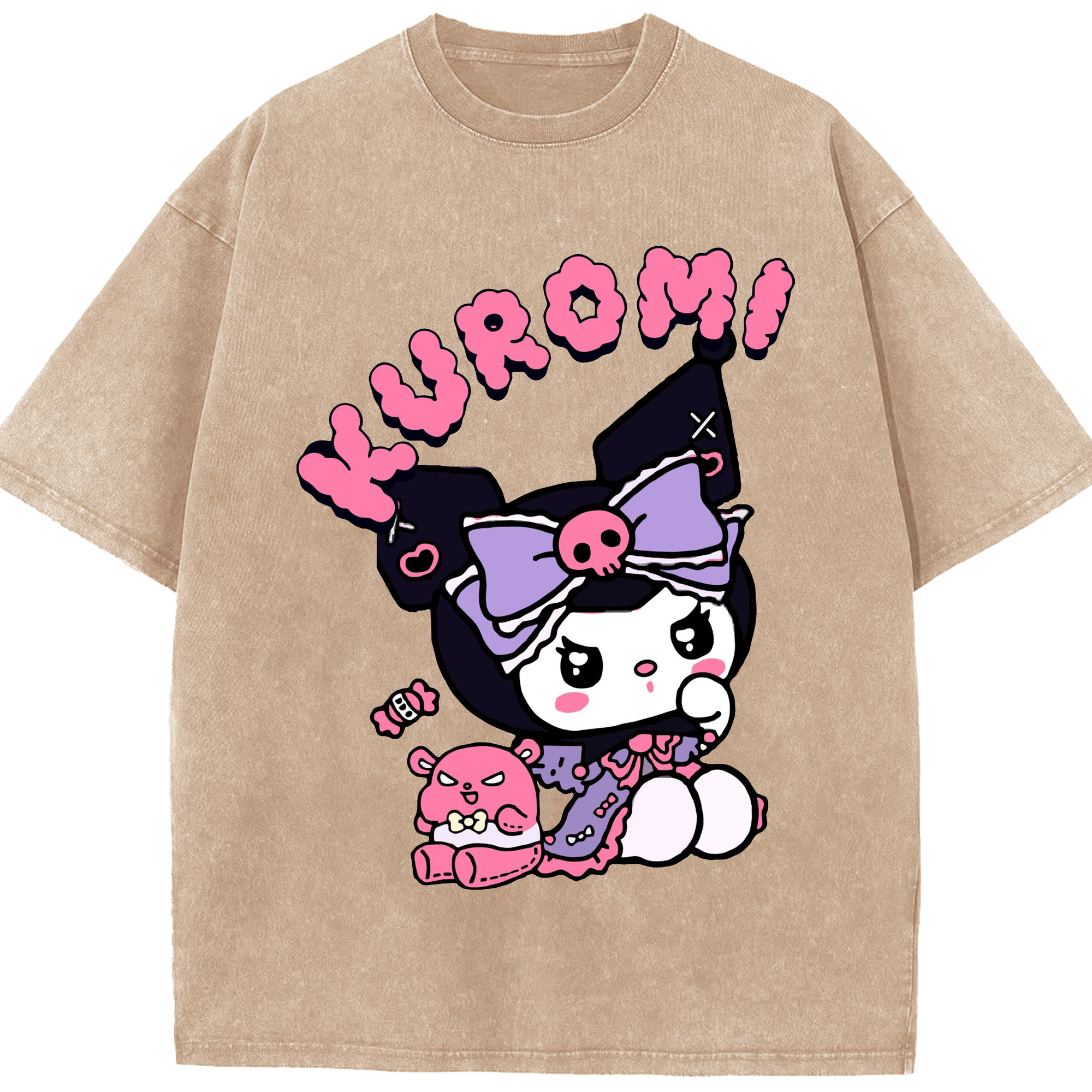 サンリオクロミ - 綿100% ヴィンテージ風 半袖Tシャツ ・ 背面プリント ・ 柔らか肌触り ・ 通気性 快適 ・ スポーツ カジュアル 外出用