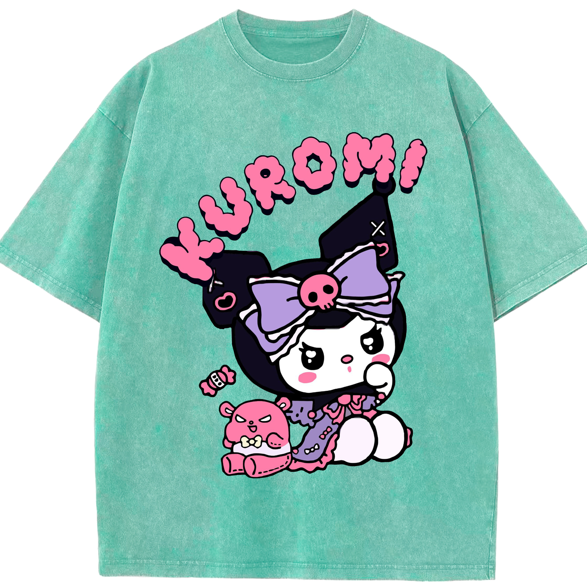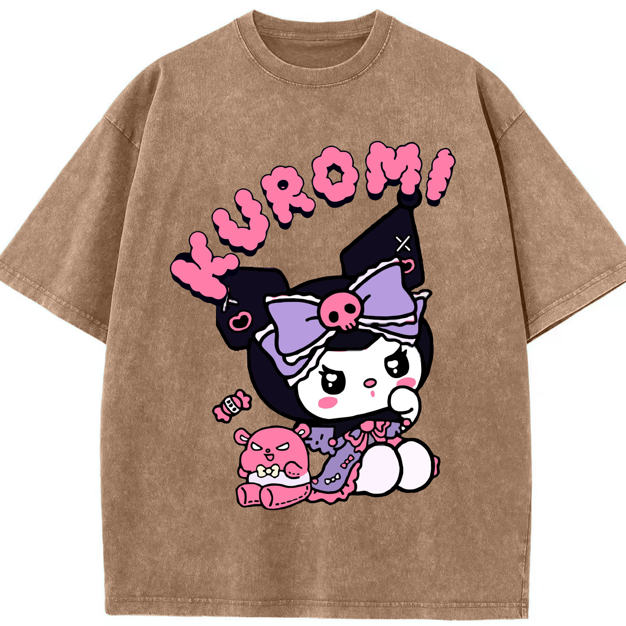 クロミ&ちいかわ - 綿100% ヴィンテージ風 半袖Tシャツ ・ フロントプリント ・ 柔らか肌触り ・ 通気性 快適 ・ スポーツ カジュアル 外出用